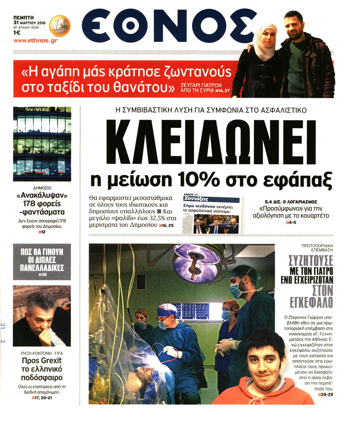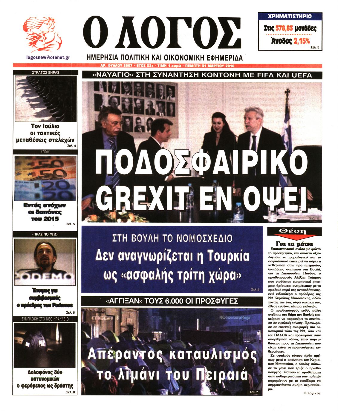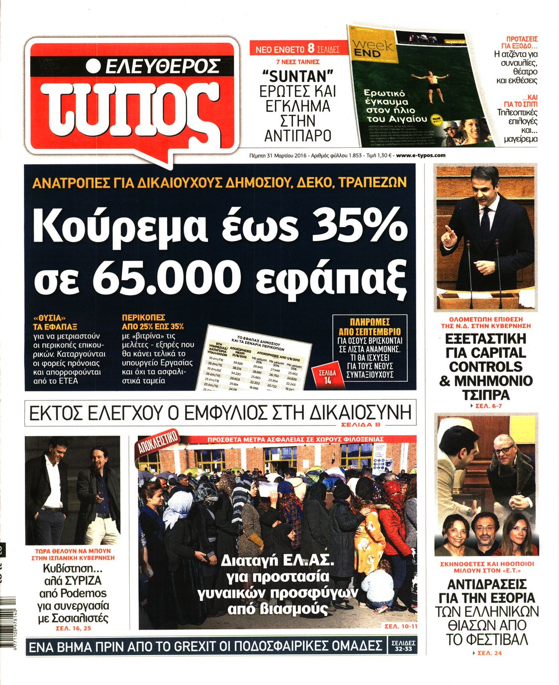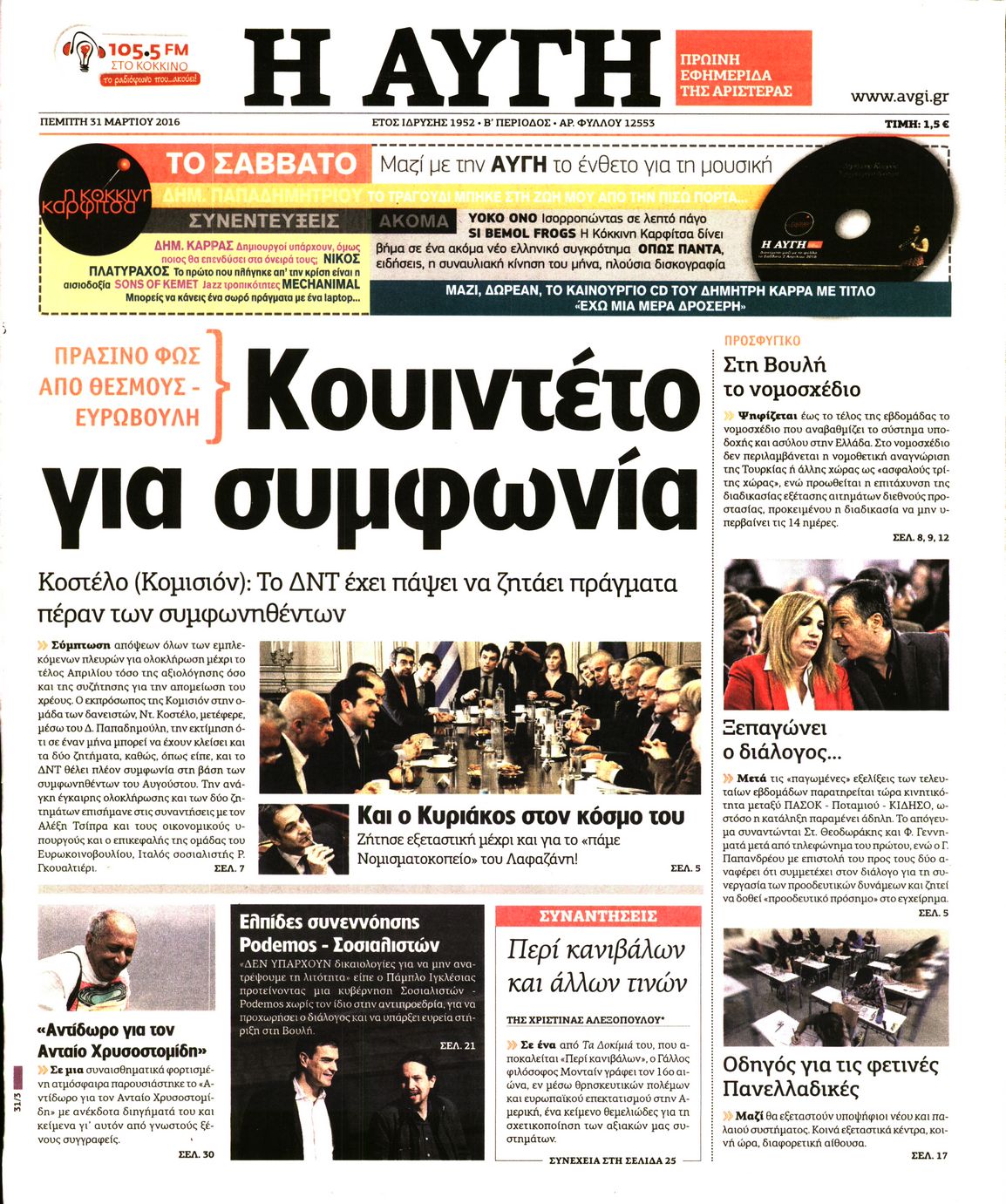 Οι πολιτικές εφημερίδες 31/3/2016 Enikos Newsroom 07:29, Πέμπτη 31 Μαρτίου 2016 Media Διαβάστε τα σημερινά πρωτοσέλιδα των πολιτικών εφημερίδων: ΠΟΛΙΤΙΚΕΣ ΕΦΗΜΕΡΙΔΕΣ ΠΡΩΤΟΣΕΛΙΔΑ Μοιράσου το: σχολίασε κι εσύ (0 σχόλια) Ακολουθήστε το enikos.gr στο Google News και μάθετε πρώτοι όλες τις ειδήσεις Δείτε όλες τις τελευταίες ειδήσεις από την Ελλάδα και τον Κόσμο στο enikos.gr Ειδήσεις Ροή Ειδήσεων 3 ώρες πριν Χριστούγεννα στα μπλόκα: Επιμένουν στις κινητοποιήσεις τους οι αγρότες – Ανοίγουν τα διόδια το Σαββατοκύριακο 3 ώρες πριν Ουκρανία: Η άνευ προηγουμένου επίθεση σε ρωσικό τάνκερ στη Μεσόγειο και το μήνυμα προς στον Πούτιν – Το «μακρύ χέρι» του Κιέβου 2 ώρες πριν Πούτιν: Τα μηνύματα σε Ευρώπη και ΝΑΤΟ από το μαραθώνιο «σόου» του – Η απαίτηση για «σεβασμό» και η ειρήνη «με τους όρους» της Μόσχας 3 ώρες πριν Τραμπ: Δεν αποκλείει την πιθανότητα ενός πολέμου στη Βενεζουέλα – «Ο Μαδούρο ξέρει καλύτερα από τον καθένα τι ακριβώς θέλω» 4 ώρες πριν Συνεχίζει να προκαλεί ο Μίτσκοσκι: «Για μένα το όνομα Μακεδονία είναι ιερό» 2 ώρες πριν Ανακαλύφθηκαν αρχαία χρυσά νομίσματα 2.200 ετών που απεικονίζουν τον θεό Απόλλωνα – Η άγνωστη σύνδεση με τον Φίλιππο Β΄ της Μακεδονίας 3 ώρες πριν Ύπνος: Μια κρυφή κατάσταση του εγκεφάλου πριν από τον ύπνο μπορεί να είναι το “κλειδί” για υψηλή ευφυΐα και δημιουργικότητα 4 ώρες πριν Αριθμολογία: Οι άνθρωποι που έχουν γεννηθεί αυτές τις 4 ημερομηνίες, συχνά παρεξηγούνται – «Η καλοσύνη τους κρύβει τεράστια δύναμη» 5 ώρες πριν Ξεχάστε το καθάρισμα το Σαββατοκύριακο: Ο «κανόνας των 20 λεπτών» που θα σας λύσει τα χέρια 5 λεπτά πριν Συρία: Μαζικά πλήγματα των ΗΠΑ σε θέσεις του Ισλαμικού Κράτους – Χέγκσεθ: «Δεν είναι αρχή πολέμου, είναι μια δήλωση εκδίκησης» για το θάνατο των στρατιωτών μας 18 λεπτά πριν Ουκρανία: Ολοκληρώθηκαν οι συνομιλίες με τους Αμερικανούς κι Ευρωπαίους διαπραγματευτές 33 λεπτά πριν Μπαρτσελόνα – Μπασκόνια 134-124: Οι «μπλαουγκράνα» πήραν το ματς της χρονιάς ύστερα από τρεις παρατάσεις 48 λεπτά πριν Φαίη Σκορδά: «Παλιότερα τα κομπλιμέντα τα προσπερνούσα, τώρα τα έχω ανάγκη» 1 ώρα πριν Βασίλης Σπανούλης: Δεν εμφανίστηκε ούτε ένας δημοσιογράφος στην συνέντευξη Τύπου – «Καλησπέρα στον… κανέναν», δείτε βίντεο ENIKOS NETWORK Το ΕΚΑΒ τιμήθηκε από την Ακαδημία Αθηνών για τα 40 χρόνια προσφοράς του Έχετε πραγματικά μεγάλη καρδιά; 10 χαρακτηριστικά όσων έχουν καλοσύνη Αναστολή μέτρων αναγκαστικής εκτέλεσης για κτηνοτρόφους που πλήττονται από την ευλογιά των αιγοπροβάτων Πλήρης επάρκεια προϊόντων στις λαϊκές της Αττικής, παρά τις αγροτικές κινητοποιήσεις – Τι απαντούν οι πωλητές Χαρτογραφώντας το «σημείο χωρίς επιστροφή»: Για πρώτη φορά αποκαλύπτεται με λεπτομέρεια το ακανθώδες όριο της ατμόσφαιρας τ... Η Google καταργεί τη λειτουργία «dark web report» – Πώς θα μπορούν οι χρήστες να διαγράφουν τα δεδομένα τους περισσότερα 22:42 , Παρασκευή 19 Δεκεμβρίου 2025 Γιώργος Γιαννόπουλος για “Το σόι σου”: “Είναι ευτυχία και ευλογία αυτή η σειρά” «Είναι ευτυχία και ευλογία η συγκυρία αυτής της σειράς», θα πει ο Γιώργος Γιαννόπουλος -ο αγαπ... 20:37 , Παρασκευή 19 Δεκεμβρίου 2025 Don’t Forget The Lyrics: Η Έλλη Κοκκίνου υποδέχεται 4 παίκτες που θα κάνουν τα πάντα για να μη χάσουν ούτε… μισή λέξη από τους στίχους Το «Don’t Forget The Lyrics» επιστρέφει απόψε, Παρασκευή 19 Δεκεμβρίου, στις 21:00 με νέο επει... 19:31 , Παρασκευή 19 Δεκεμβρίου 2025 GNTM: Απόψε ο μεγάλος τελικός για τους 4 φιναλίστ Έπειτα από μήνες γεμάτο