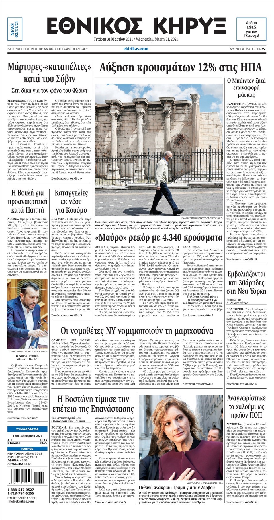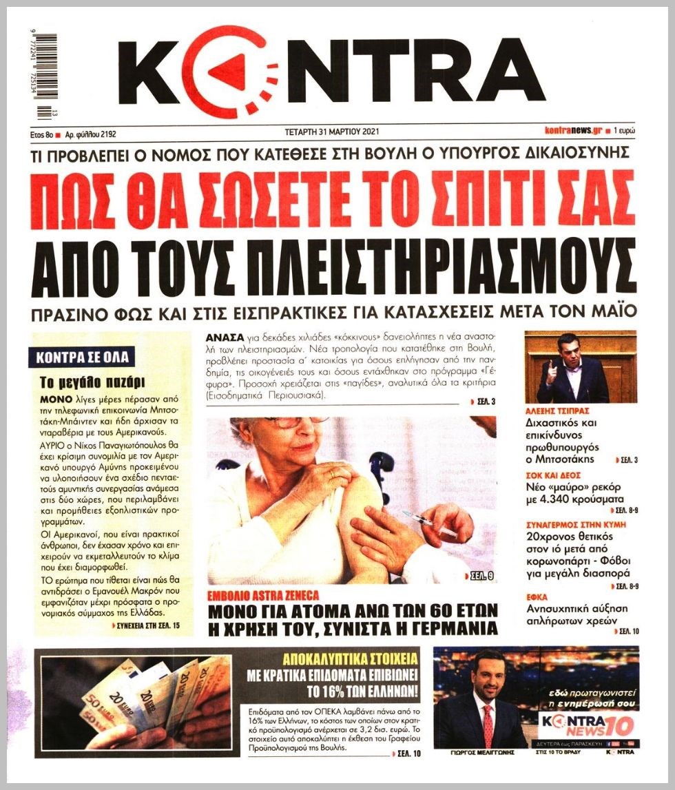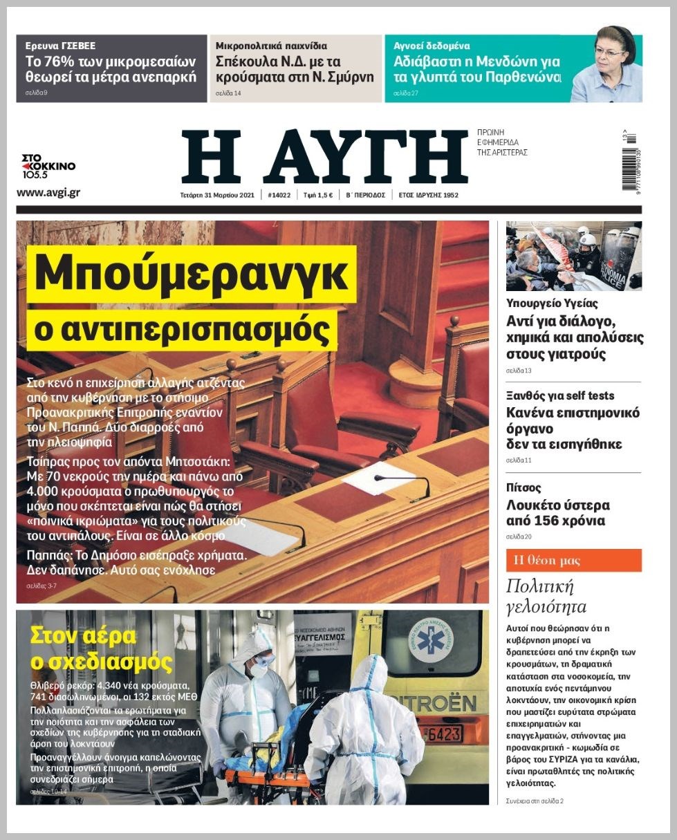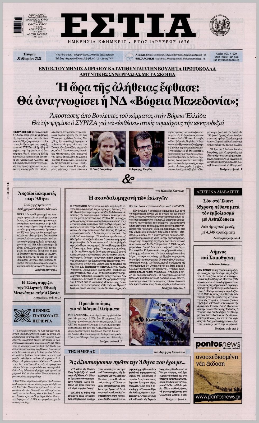 Οι πολιτικές εφημερίδες 31/3/2021 Διονύσης Νίκκας 06:11, Τετάρτη 31 Μαρτίου 2021 Media Διαβάστε τα πρωτοσέλιδα των πολιτικών εφημερίδων… ΕΦΗΜΕΡΙΔΕΣ ΠΡΩΤΟΣΕΛΙΔΑ Μοιράσου το: σχολίασε κι εσύ (0 σχόλια) Ακολουθήστε το enikos.gr στο Google News και μάθετε πρώτοι όλες τις ειδήσεις Δείτε όλες τις τελευταίες ειδήσεις από την Ελλάδα και τον Κόσμο στο enikos.gr Ειδήσεις Ροή Ειδήσεων 4 ώρες πριν Υπόθεση Έπσταϊν: Το Υπουργείο Δικαιοσύνης δημοσιοποίησε μια σειρά από εξαιρετικά επεξεργασμένα αρχεία – «Λείπουν τα πιο σημαντικά έγγραφα», λένε οι Δημοκρατικοί 46 λεπτά πριν Γιορτές με μπλόκα για τους αγρότες: Ανοίγουν διόδια και μοιράζουν προϊόντα στους ταξιδιώτες 1 ώρα πριν Εξαφάνιση 33χρονου γιατρού στην Κρήτη: «Άναψα τα φώτα, τρόμαξε και άρχισε να τρέχει στα χωράφια» – Η τελευταία διαδρομή και η μαρτυρία «κλειδί» 3 ώρες πριν Ο «χάρτης» με τις αυξήσεις και τις φοροελαφρύνσεις του 2026 – Ποιοι και πόσα κερδίζουν 1 ώρα πριν Τα αρχεία του Έπσταϊν αποκαλύπτουν φωτογραφία του έκπτωτου πρίγκιπα Άντριου – Είναι ξαπλωμένος στην αγκαλιά 5 γυναικών 1 ώρα πριν Μία νέα «χρυσή» περίοδος αρχίζει για 3 ζώδια από σήμερα – «Μία αναπάντεχη ευκαιρία οδηγεί στην επιτυχία» 5 ώρες πριν Αυγά: Πόσα μπορείτε να τρώτε την ημέρα με ασφάλεια για μέγιστη πρόσληψη πρωτεΐνης 3 ώρες πριν Αρχαιολόγοι ανακάλυψαν σε χωράφι απεικόνιση 600 ετών ενός Αγίου – Τα στοιχεία που δείχνουν ότι μαρτύρησε 2 ώρες πριν Αγχώνεται για το χριστουγεννιάτικο δώρο που πήρε στην πλούσια σύντροφό του – «Φοβάμαι πως θα το βρει φθηνιάρικο, φοράει βραχιόλια Cartier» 3 λεπτά πριν Τα Labubu «μετακομίζουν» στο Χόλιγουντ: Η Sony Pictures ετοιμάζει live-action ταινία με τον σκηνοθέτη του «Wonka» 11 λεπτά πριν Νέες ταυτότητες: Μεγάλη αναμονή για ραντεβού στην Αττική – Τέλος τα ταξίδια εκτός Ελλάδος από τον Αύγουστο για όσους δεν έχουν αλλάξει 19 λεπτά πριν Οι 7 φράσεις που δεν λένε ποτέ οι συναισθηματικά έξυπνοι άνθρωποι κατά τη διάρκεια ενός καβγά 23 λεπτά πριν Τηλεθέαση (19/12): Ανατροπές και πρωτιές στην πρωινή ζώνη 30 λεπτά πριν Πώς η κλιματική αλλαγή επηρεάζει εγκύους και βρέφη – Οι επιπτώσεις των υψηλών θερμοκρασιών ENIKOS NETWORK Είστε μόνιμα απρόσεκτοι; 3 σημάδια που δείχνουν ότι μπορεί να είναι σύμπτωμα πάθησης Πόσα κιλά παίρνουμε πραγματικά τα Χριστούγεννα, σύμφωνα με την επιστήμη – Πώς να το αποτρέψουμε; e-ΕΦΚΑ και ΔΥΠΑ: Έρχονται νέες πληρωμές έως τις 24 Δεκεμβρίου – Ποιοι πάνε ταμείο Επίδομα παιδιού: Τι αλλάζει από το 2026 – Το όφελος από τις φορολογικές ελαφρύνσεις Χαρτογραφώντας το «σημείο χωρίς επιστροφή»: Για πρώτη φορά αποκαλύπτεται με λεπτομέρεια το ακανθώδες όριο της ατμόσφαιρας τ... Η Google καταργεί τη λειτουργία «dark web report» – Πώς θα μπορούν οι χρήστες να διαγράφουν τα δεδομένα τους περισσότερα 09:30 , Σάββατο 20 Δεκεμβρίου 2025 «Porto Leone: Στη γειτονιά με τα κόκκινα φανάρια» – Ο Χρόνης αποκαλύπτει στην Αλεξάνδρα το μυστικό για το παιδί της Λένας Η μεγάλη δραματική σειρά του Apha «Porto Leone: Στη γειτονιά με τα κόκκινα φανάρια» μας μεταφέ... 08:14 , Σάββατο 20 Δεκεμβρίου 2025 Τρομεροί γονείς: Η Μαρία Καβογιάννη εισβάλλει στο σπίτι της οικογένειας Στεφανίδη Όσα θα δούμε στο νέο διπλό επεισόδιο της σειράς «Τρομεροί γονείς», σήμερα Σάββατο 20 Δεκεμβρίο... 05:48 , Σάββατο 20 Δεκεμβρίου 2025 Οι οικονομικές εφημερίδες 20/12/2025 Διαβάστε τα πρωτοσέλιδα από τις οικονομικές εφημερίδες, σήμερα 20/12/2025. 05:43 , Σάββατο 20 Δεκεμβρίου 2025 Οι αθλητικές εφημερίδες 20/12/2025 Διαβάστε τα πρωτοσέλιδα από τις αθλητι