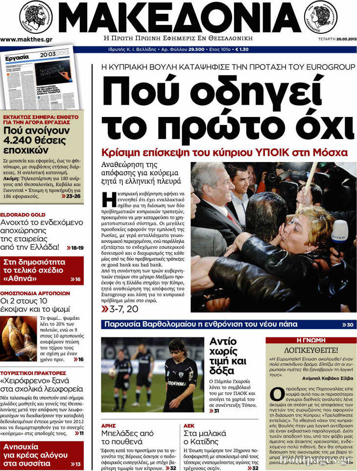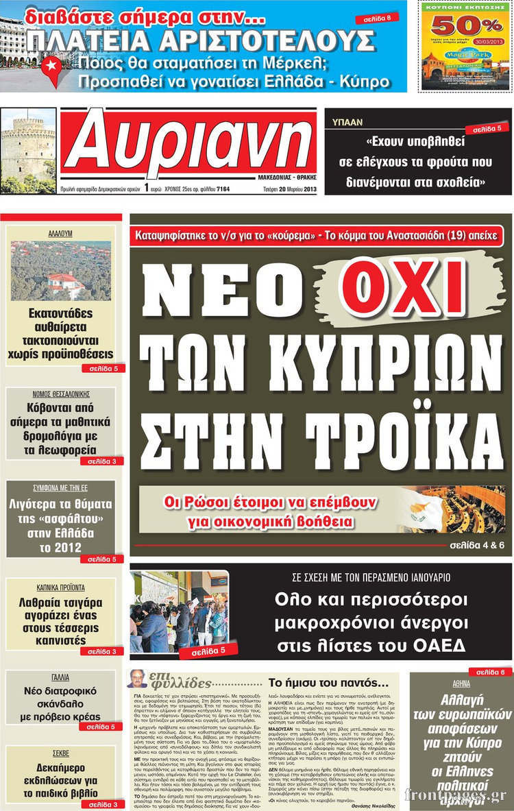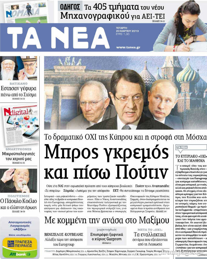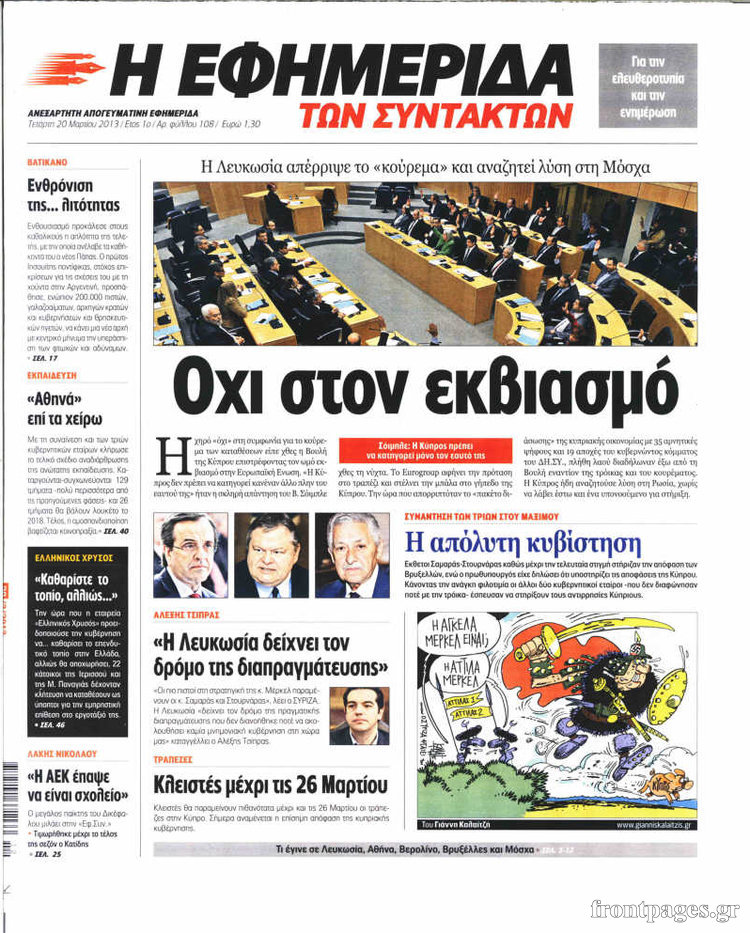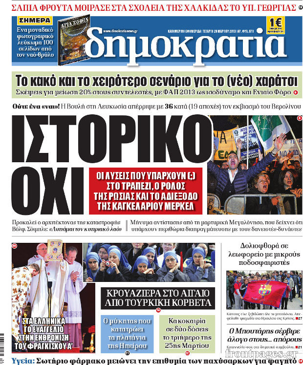 Οι πολιτικές εφημερίδες Enikos Newsroom 08:31, Τετάρτη 20 Μαρτίου 2013 Media Οι πολιτικές εφημερίδες Τα πρωτοσέλιδα των πολιτικών εφημερίδων. ΕΦΗΜΕΡΙΔΕΣ ΟΙ ΠΟΛΙΤΙΚΕΣ ΕΦΗΜΕΡΙΔΕΣ ΠΡΩΤΟΣΕΛΙΔΑ Μοιράσου το: σχολίασε κι εσύ (0 σχόλια) Ακολουθήστε το enikos.gr στο Google News και μάθετε πρώτοι όλες τις ειδήσεις Δείτε όλες τις τελευταίες ειδήσεις από την Ελλάδα και τον Κόσμο στο enikos.gr Ειδήσεις Ροή Ειδήσεων 59 λεπτά πριν Αγρότες: Την Τρίτη η απόφαση για διάλογο ή κλιμάκωση των κινητοποιήσεών τους – Πώς χαρακτηρίζουν τις ανακοινώσεις Τσιάρα και οι επόμενες κινήσεις 34 λεπτά πριν Τραμπ για Ουκρανία: «Είμαστε πιο κοντά σε συμφωνία από ποτέ» – «Πολυεθνική δύναμη» προτείνουν οι Ευρωπαίοι 52 λεπτά πριν Κυψέλη: Η 16χρονη που μαχαίρωσε την 14χρονη είχε συλληφθεί 3 φορές στο παρελθόν – Έβριζε καθηγητές, έβαζε φωτιές σε κάδους και εκβίαζε συμμαθητές της 1 ώρα πριν Χαλκιδική: Πώς δρούσαν οι αστυνομικοί που συνελήφθησαν για κλήσεις που δεν έκοβαν – Η «ετήσια συνδρομή» για τα μπλόκα της Τροχαίας και οι «δωρεές» 17 λεπτά πριν Τρομοκρατική επίθεση στο Σίδνεϊ: Θλίψη για τα 15 θύματα – Οργή στην εβραϊκή κοινότητα που προειδοποιούσε επί δύο χρόνια 2 ώρες πριν Ύπνος: Η αρχαία μορφή άσκησης που αποδεικνύεται αποτελεσματική στην αντιμετώπιση της αϋπνίας, σύμφωνα με μελέτη 3 ώρες πριν Αριθμολογία: Ο τυχερός σας αριθμός, ανάλογα με τον μήνα γέννησής σας 4 ώρες πριν Πώς να μην μαραίνονται γρήγορα τα κομμένα λουλούδια: Το λάθος στην τοποθέτηση του βάζου που πρέπει να αποφεύγετε 37 λεπτά πριν Επιστήμονες ίσως έλυσαν το μυστήριο γύρω από τα Χόμπιτ – Νέα έρευνα αποκαλύπτει πώς εξαφανίστηκαν 11 λεπτά πριν ΚΚΕ: Το νομοσχέδιο – «λαιμητόμος» του υπουργείου Άμυνας δεν πρέπει να περάσει 17 λεπτά πριν Τρομοκρατική επίθεση στο Σίδνεϊ: Θλίψη για τα 15 θύματα – Οργή στην εβραϊκή κοινότητα που προειδοποιούσε επί δύο χρόνια 21 λεπτά πριν Ινστιτούτο Prolepsis: Κρίσιμα εμπόδια και βασικές προϋποθέσεις για την ενίσχυση της υγείας στα σωφρονιστικά ιδρύματα – Ευρήματα από το έργο PARTNER 27 λεπτά πριν Χανιά: Ηλικιωμένες μητέρες κρατουμένων προσπάθησαν να περάσουν ναρκωτικά στις φυλακές 34 λεπτά πριν Τραμπ για Ουκρανία: «Είμαστε πιο κοντά σε συμφωνία από ποτέ» – «Πολυεθνική δύναμη» προτείνουν οι Ευρωπαίοι ENIKOS NETWORK Πότε το χρόνιο ροχαλητό να αποτελέσει ένδειξη κινδύνου για την καρδιά; Τι λένε οι ειδικοί Μάριος Θεμιστοκλέους: Το ΕΣΥ ενισχύεται, εκσυγχρονίζεται, αλλάζει ΕΒΕΠ για αγροτικές κινητοποιήσεις: Κάθε επιπλέον εβδομάδα προσθέτει περίπου 200 εκατ. ευρώ ζημιά Τι προβλέπει το νομοσχέδιο του υπουργείου Εθνικής Άμυνας – Oι αλλαγές στους μισθούς Σύγχρονος Νοστράδαμος: Προειδοποιεί για «μεγάλο γεγονός» τους επόμενους μήνες που θα συγκλονίσει τη Βρετανία και τον κόσμο Τεστ παρατηρητικότητας: Μπορείτε να βρείτε τις 3 διαφορές στις εικόνες με έναν πιγκουίνο σε 14 δευτερόλεπτα περισσότερα 21:35 , Δευτέρα 15 Δεκεμβρίου 2025 Το Σπίτι Δίπλα Στο Ποτάμι: Η Ιουλία και ο Φωκάς μετακομίζουν στη Ρόδο – Δύο νέοι χαρακτήρες μπαίνουν στη σειρά Δύο νέοι, κομβικοί χαρακτήρες κάνουν την εμφάνισή τους αυτή την εβδομάδα στην αγαπημένη σειρά ... 19:46 , Δευτέρα 15 Δεκεμβρίου 2025 Άγιος έρωτας: Η Χριστίνα λέει την αλήθεια στον Αντρέα Ο Βασίλης δέχεται επίθεση από τους συμμαθητές του, η Αναστασία είναι συντετριμμένη με την απώλ... 18:45 , Δευτέρα 15 Δεκεμβρίου 2025 Συνέδριο «Ελληνικός Τουρισμός 2025, Μια εθνική υπόθεση!» – «Ο Θαλάσσιος Πυλώνας ως Ενιαία Στρατηγική: 