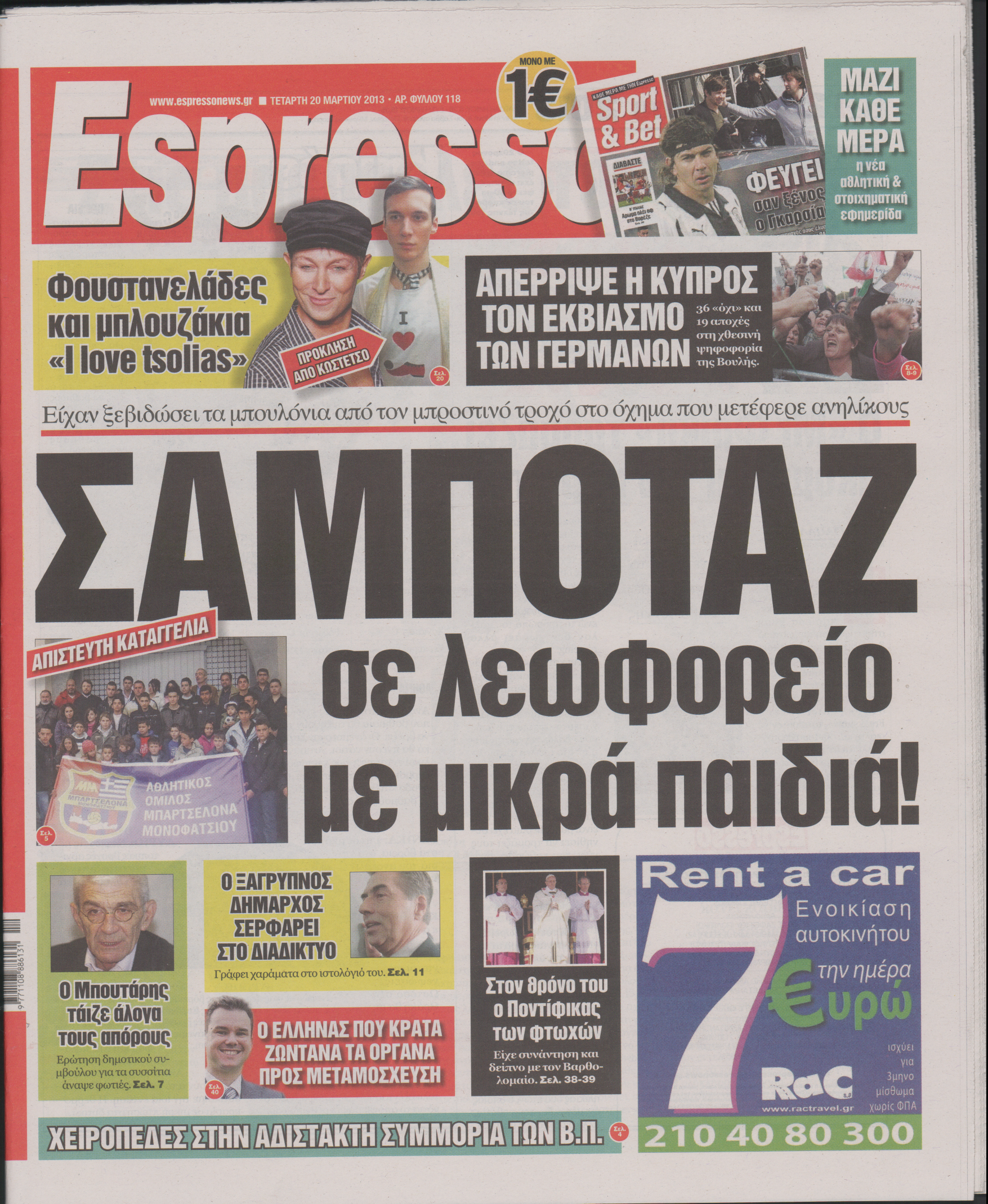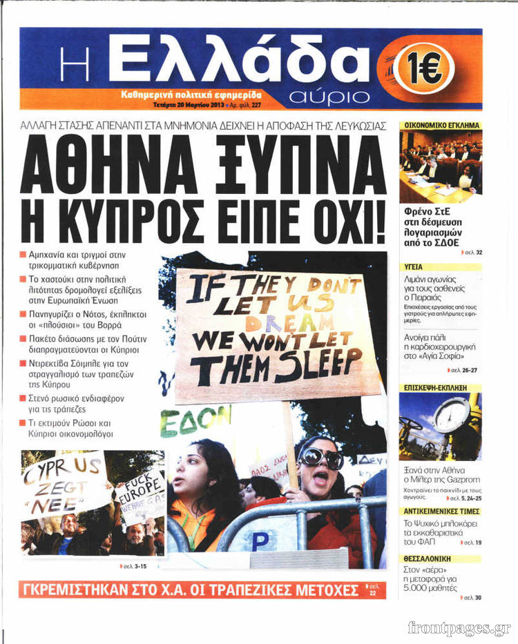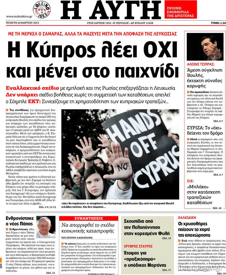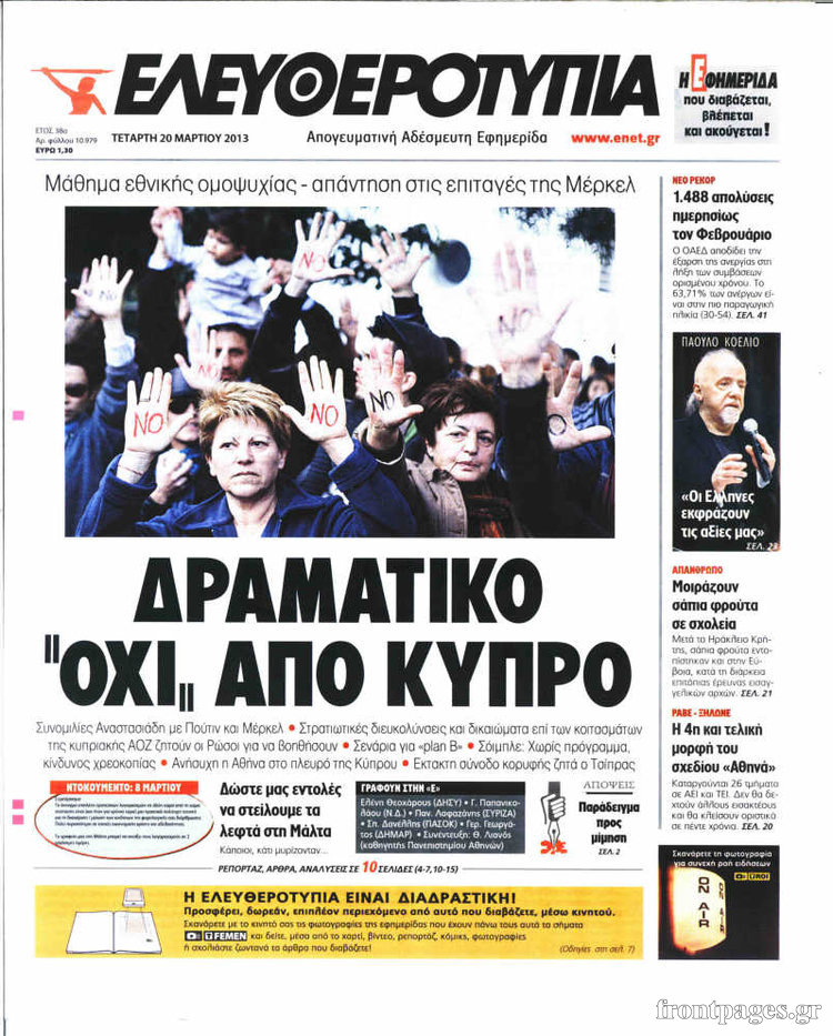 Οι πολιτικές εφημερίδες Enikos Newsroom 08:31, Τετάρτη 20 Μαρτίου 2013 Media Οι πολιτικές εφημερίδες Τα πρωτοσέλιδα των πολιτικών εφημερίδων. ΕΦΗΜΕΡΙΔΕΣ ΟΙ ΠΟΛΙΤΙΚΕΣ ΕΦΗΜΕΡΙΔΕΣ ΠΡΩΤΟΣΕΛΙΔΑ Μοιράσου το: σχολίασε κι εσύ (0 σχόλια) Ακολουθήστε το enikos.gr στο Google News και μάθετε πρώτοι όλες τις ειδήσεις Δείτε όλες τις τελευταίες ειδήσεις από την Ελλάδα και τον Κόσμο στο enikos.gr Ειδήσεις Ροή Ειδήσεων 59 λεπτά πριν Αγρότες: Την Τρίτη η απόφαση για διάλογο ή κλιμάκωση των κινητοποιήσεών τους – Πώς χαρακτηρίζουν τις ανακοινώσεις Τσιάρα και οι επόμενες κινήσεις 34 λεπτά πριν Τραμπ για Ουκρανία: «Είμαστε πιο κοντά σε συμφωνία από ποτέ» – «Πολυεθνική δύναμη» προτείνουν οι Ευρωπαίοι 52 λεπτά πριν Κυψέλη: Η 16χρονη που μαχαίρωσε την 14χρονη είχε συλληφθεί 3 φορές στο παρελθόν – Έβριζε καθηγητές, έβαζε φωτιές σε κάδους και εκβίαζε συμμαθητές της 1 ώρα πριν Χαλκιδική: Πώς δρούσαν οι αστυνομικοί που συνελήφθησαν για κλήσεις που δεν έκοβαν – Η «ετήσια συνδρομή» για τα μπλόκα της Τροχαίας και οι «δωρεές» 17 λεπτά πριν Τρομοκρατική επίθεση στο Σίδνεϊ: Θλίψη για τα 15 θύματα – Οργή στην εβραϊκή κοινότητα που προειδοποιούσε επί δύο χρόνια 2 ώρες πριν Ύπνος: Η αρχαία μορφή άσκησης που αποδεικνύεται αποτελεσματική στην αντιμετώπιση της αϋπνίας, σύμφωνα με μελέτη 3 ώρες πριν Αριθμολογία: Ο τυχερός σας αριθμός, ανάλογα με τον μήνα γέννησής σας 4 ώρες πριν Πώς να μην μαραίνονται γρήγορα τα κομμένα λουλούδια: Το λάθος στην τοποθέτηση του βάζου που πρέπει να αποφεύγετε 37 λεπτά πριν Επιστήμονες ίσως έλυσαν το μυστήριο γύρω από τα Χόμπιτ – Νέα έρευνα αποκαλύπτει πώς εξαφανίστηκαν 11 λεπτά πριν ΚΚΕ: Το νομοσχέδιο – «λαιμητόμος» του υπουργείου Άμυνας δεν πρέπει να περάσει 17 λεπτά πριν Τρομοκρατική επίθεση στο Σίδνεϊ: Θλίψη για τα 15 θύματα – Οργή στην εβραϊκή κοινότητα που προειδοποιούσε επί δύο χρόνια 21 λεπτά πριν Ινστιτούτο Prolepsis: Κρίσιμα εμπόδια και βασικές προϋποθέσεις για την ενίσχυση της υγείας στα σωφρονιστικά ιδρύματα – Ευρήματα από το έργο PARTNER 27 λεπτά πριν Χανιά: Ηλικιωμένες μητέρες κρατουμένων προσπάθησαν να περάσουν ναρκωτικά στις φυλακές 34 λεπτά πριν Τραμπ για Ουκρανία: «Είμαστε πιο κοντά σε συμφωνία από ποτέ» – «Πολυεθνική δύναμη» προτείνουν οι Ευρωπαίοι ENIKOS NETWORK Πότε το χρόνιο ροχαλητό να αποτελέσει ένδειξη κινδύνου για την καρδιά; Τι λένε οι ειδικοί Μάριος Θεμιστοκλέους: Το ΕΣΥ ενισχύεται, εκσυγχρονίζεται, αλλάζει ΕΒΕΠ για αγροτικές κινητοποιήσεις: Κάθε επιπλέον εβδομάδα προσθέτει περίπου 200 εκατ. ευρώ ζημιά Τι προβλέπει το νομοσχέδιο του υπουργείου Εθνικής Άμυνας – Oι αλλαγές στους μισθούς Σύγχρονος Νοστράδαμος: Προειδοποιεί για «μεγάλο γεγονός» τους επόμενους μήνες που θα συγκλονίσει τη Βρετανία και τον κόσμο Τεστ παρατηρητικότητας: Μπορείτε να βρείτε τις 3 διαφορές στις εικόνες με έναν πιγκουίνο σε 14 δευτερόλεπτα περισσότερα 21:35 , Δευτέρα 15 Δεκεμβρίου 2025 Το Σπίτι Δίπλα Στο Ποτάμι: Η Ιουλία και ο Φωκάς μετακομίζουν στη Ρόδο – Δύο νέοι χαρακτήρες μπαίνουν στη σειρά Δύο νέοι, κομβικοί χαρακτήρες κάνουν την εμφάνισή τους αυτή την εβδομάδα στην αγαπημένη σειρά ... 19:46 , Δευτέρα 15 Δεκεμβρίου 2025 Άγιος έρωτας: Η Χριστίνα λέει την αλήθεια στον Αντρέα Ο Βασίλης δέχεται επίθεση από τους συμμαθητές του, η Αναστασία είναι συντετριμμένη με την απώλ... 18:45 , Δευτέρα 15 Δεκεμβρίου 2025 Συνέδριο «Ελληνικός Τουρισμός 2025, Μια εθνική υπόθεση!» – «Ο Θαλάσσιος Πυλώνας ως Ενιαία Στρατηγική: 