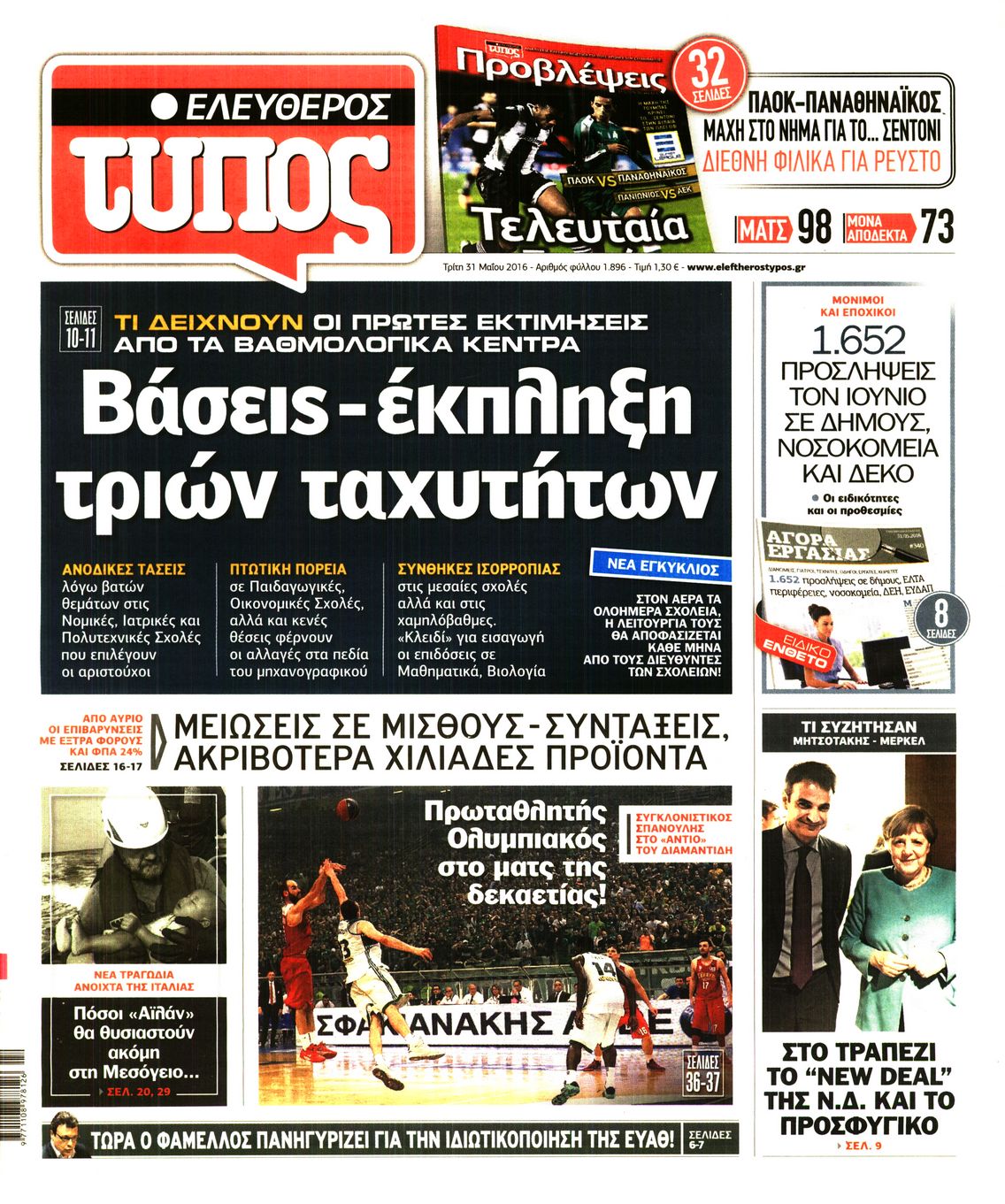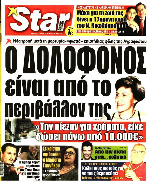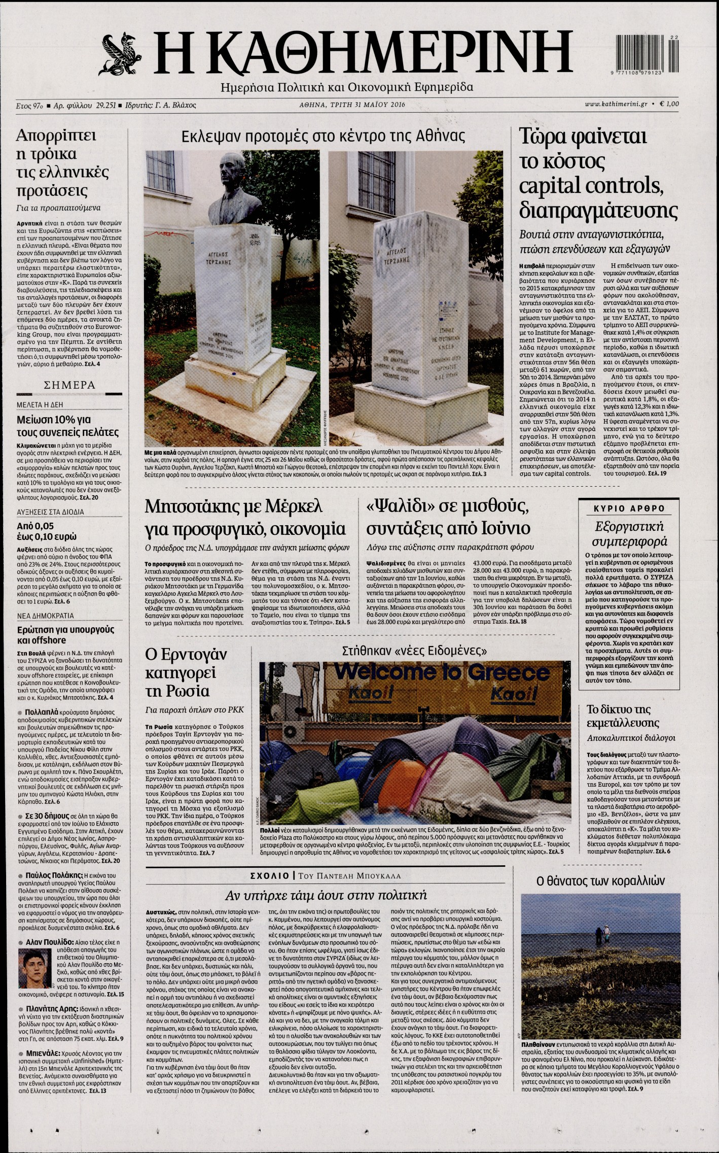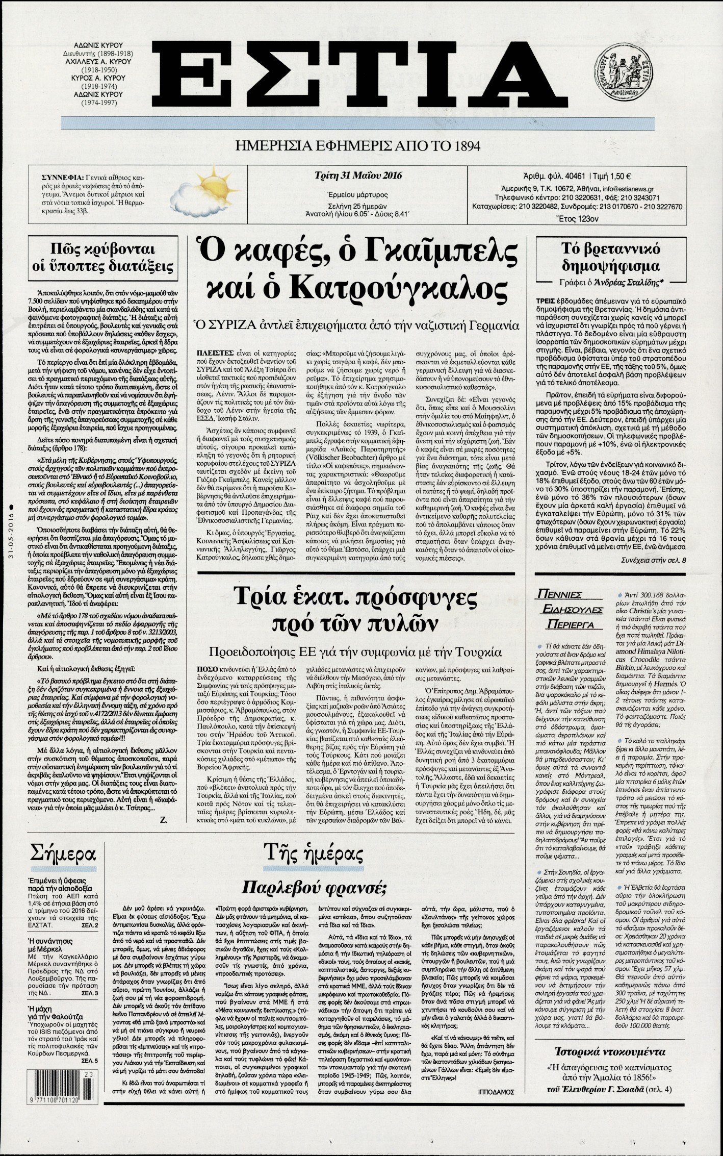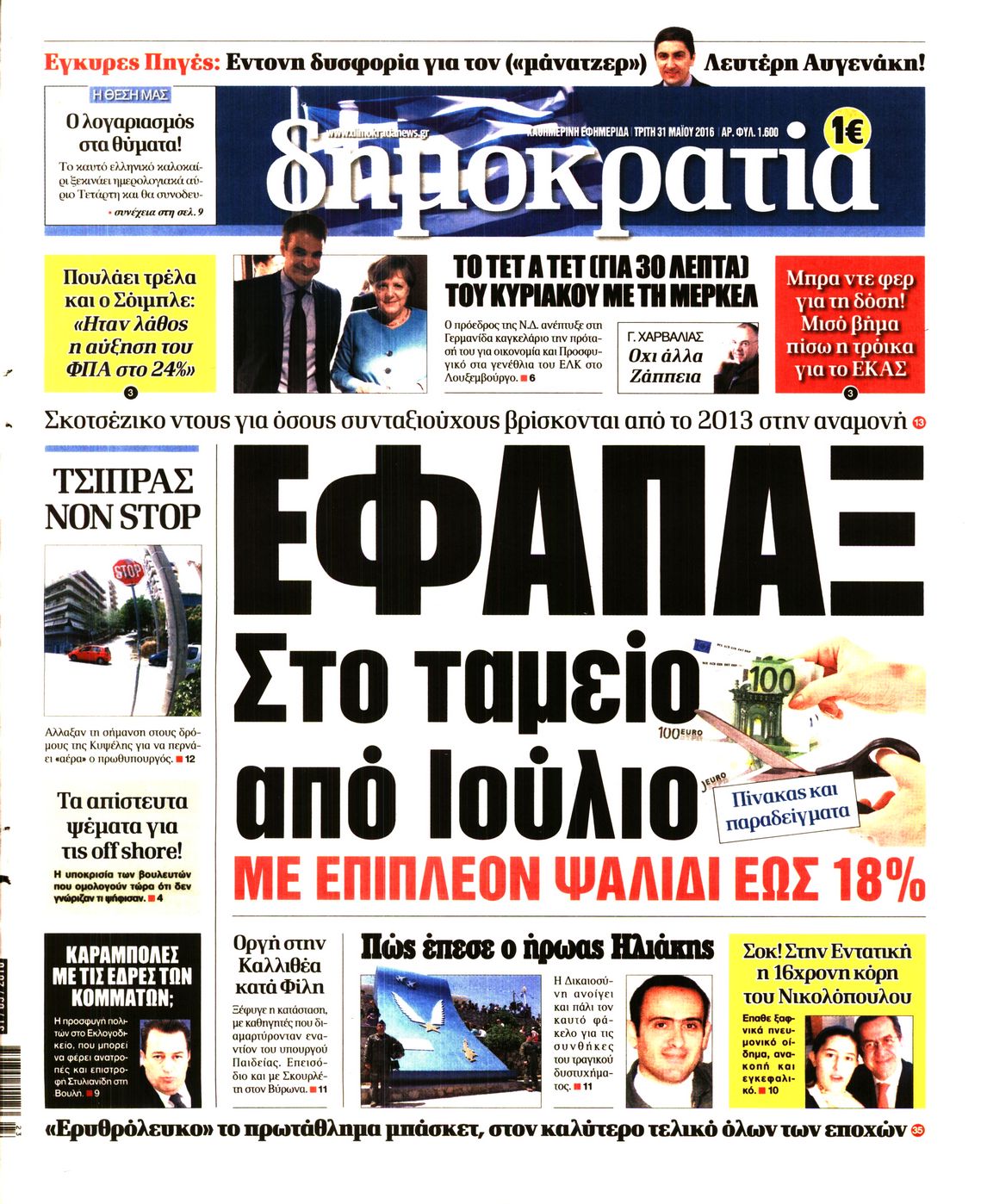 Oι πολιτικές εφημερίδες 31/5/2016 Enikos Newsroom 05:21, Τρίτη 31 Μαΐου 2016 Media Διαβάστε τα σημερινά πρωτοσέλιδα των πολιτικών εφημερίδων: ΠΟΛΙΤΙΚΕΣ ΕΦΗΜΕΡΙΔΕΣ ΠΡΩΤΟΣΕΛΙΔΑ Μοιράσου το: σχολίασε κι εσύ (0 σχόλια) Ακολουθήστε το enikos.gr στο Google News και μάθετε πρώτοι όλες τις ειδήσεις Δείτε όλες τις τελευταίες ειδήσεις από την Ελλάδα και τον Κόσμο στο enikos.gr Ειδήσεις Ροή Ειδήσεων 5 ώρες πριν Χριστούγεννα στα μπλόκα: Επιμένουν στις κινητοποιήσεις τους οι αγρότες – Ανοίγουν τα διόδια το Σαββατοκύριακο 5 ώρες πριν Ουκρανία: Η άνευ προηγουμένου επίθεση σε ρωσικό τάνκερ στη Μεσόγειο και το μήνυμα προς στον Πούτιν – Το «μακρύ χέρι» του Κιέβου 4 ώρες πριν Πούτιν: Τα μηνύματα σε Ευρώπη και ΝΑΤΟ από το μαραθώνιο «σόου» του – Η απαίτηση για «σεβασμό» και η ειρήνη «με τους όρους» της Μόσχας 5 ώρες πριν Τραμπ: Δεν αποκλείει την πιθανότητα ενός πολέμου στη Βενεζουέλα – «Ο Μαδούρο ξέρει καλύτερα από τον καθένα τι ακριβώς θέλω» 6 ώρες πριν Συνεχίζει να προκαλεί ο Μίτσκοσκι: «Για μένα το όνομα Μακεδονία είναι ιερό» 4 ώρες πριν Ανακαλύφθηκαν αρχαία χρυσά νομίσματα 2.200 ετών που απεικονίζουν τον θεό Απόλλωνα – Η άγνωστη σύνδεση με τον Φίλιππο Β΄ της Μακεδονίας 5 ώρες πριν Ύπνος: Μια κρυφή κατάσταση του εγκεφάλου πριν από τον ύπνο μπορεί να είναι το “κλειδί” για υψηλή ευφυΐα και δημιουργικότητα 6 ώρες πριν Αριθμολογία: Οι άνθρωποι που έχουν γεννηθεί αυτές τις 4 ημερομηνίες, συχνά παρεξηγούνται – «Η καλοσύνη τους κρύβει τεράστια δύναμη» 7 ώρες πριν Ξεχάστε το καθάρισμα το Σαββατοκύριακο: Ο «κανόνας των 20 λεπτών» που θα σας λύσει τα χέρια 10 λεπτά πριν Ταμίλα Κουλίεβα: «Δεν θέλω να είμαι κάποια που πορεύεται συνεχώς με τις ίδιες αναφορές» 25 λεπτά πριν Η Ελλάδα προσχωρεί στη Διεθνή Επιτροπή Αποζημιώσεων για την Ουκρανία 39 λεπτά πριν GNTM: Η Ξένια Τσίρκοβα αναδείχθηκε μεγάλη νικήτρια και πήρε τις 50.000 ευρώ – Ποιος βρέθηκε σε απόσταση αναπνοής; 54 λεπτά πριν Θεσσαλονίκη: Εξαφανίστηκε 13χρονος από χώρο φιλοξενίας ασυνόδευτων ανηλίκων στο Ωραιόκαστρο 1 ώρα πριν Ντόναλντ Τραμπ: «Πολύ βαριά αντίποινα» στη Συρία – «Πλήττουμε πολύ δυνατά οχυρά του Ισλαμικού Κράτους» ENIKOS NETWORK Το ΕΚΑΒ τιμήθηκε από την Ακαδημία Αθηνών για τα 40 χρόνια προσφοράς του Έχετε πραγματικά μεγάλη καρδιά; 10 χαρακτηριστικά όσων έχουν καλοσύνη Αναστολή μέτρων αναγκαστικής εκτέλεσης για κτηνοτρόφους που πλήττονται από την ευλογιά των αιγοπροβάτων Πλήρης επάρκεια προϊόντων στις λαϊκές της Αττικής, παρά τις αγροτικές κινητοποιήσεις – Τι απαντούν οι πωλητές Χαρτογραφώντας το «σημείο χωρίς επιστροφή»: Για πρώτη φορά αποκαλύπτεται με λεπτομέρεια το ακανθώδες όριο της ατμόσφαιρας τ... Η Google καταργεί τη λειτουργία «dark web report» – Πώς θα μπορούν οι χρήστες να διαγράφουν τα δεδομένα τους περισσότερα 02:50 , Σάββατο 20 Δεκεμβρίου 2025 GNTM: Η Ξένια Τσίρκοβα αναδείχθηκε μεγάλη νικήτρια και πήρε τις 50.000 ευρώ – Ποιος βρέθηκε σε απόσταση αναπνοής; Με φαντασμαγορικό τρόπο ολοκληρώθηκε το βράδυ της Παρασκευής ο μεγάλος τελικός του GNTM, μέσα ... 22:42 , Παρασκευή 19 Δεκεμβρίου 2025 Γιώργος Γιαννόπουλος για “Το σόι σου”: “Είναι ευτυχία και ευλογία αυτή η σειρά” «Είναι ευτυχία και ευλογία η συγκυρία αυτής της σειράς», θα πει ο Γιώργος Γιαννόπουλος -ο αγαπ... 20:37 , Παρασκευή 19 Δεκεμβρίου 2025 Don’t Forget The Lyrics: Η Έλλη Κοκκίνου υποδέχεται 4 παίκτες που θα κάνουν τα πάντα για να μη χάσουν ούτε… μισή λέξη από τους στίχους Το «Don’t Forget The Lyrics» επιστρέφει απόψε, Παρασκ