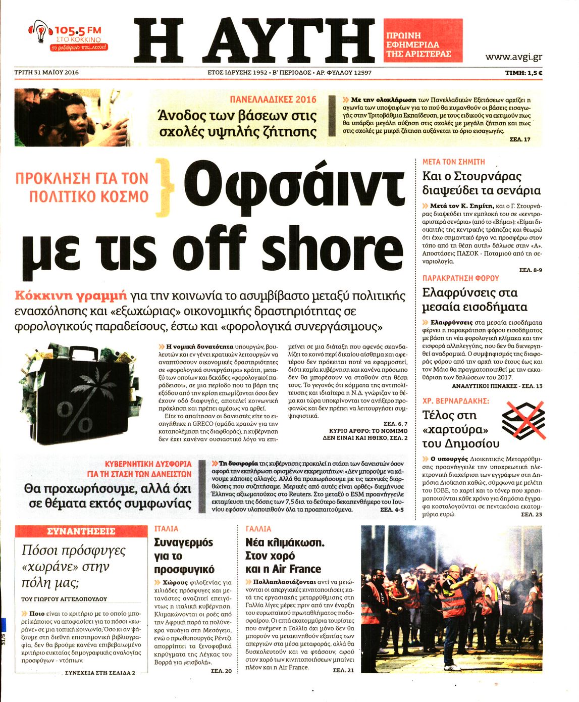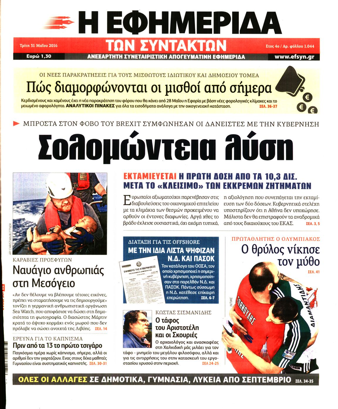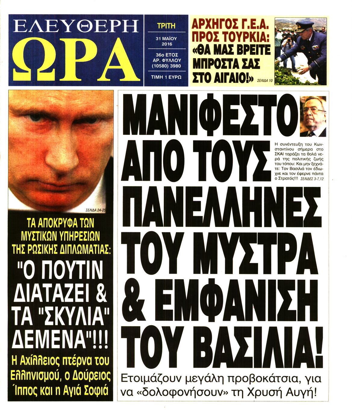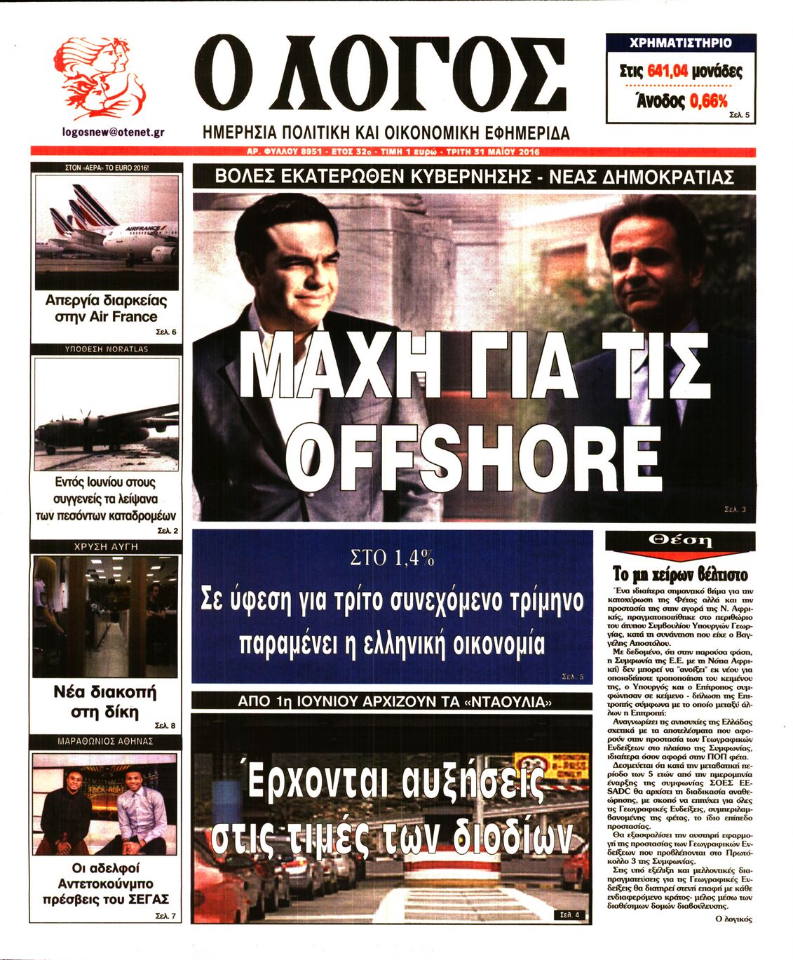 Oι πολιτικές εφημερίδες 31/5/2016 Enikos Newsroom 05:21, Τρίτη 31 Μαΐου 2016 Media Διαβάστε τα σημερινά πρωτοσέλιδα των πολιτικών εφημερίδων: ΠΟΛΙΤΙΚΕΣ ΕΦΗΜΕΡΙΔΕΣ ΠΡΩΤΟΣΕΛΙΔΑ Μοιράσου το: σχολίασε κι εσύ (0 σχόλια) Ακολουθήστε το enikos.gr στο Google News και μάθετε πρώτοι όλες τις ειδήσεις Δείτε όλες τις τελευταίες ειδήσεις από την Ελλάδα και τον Κόσμο στο enikos.gr Ειδήσεις Ροή Ειδήσεων 5 ώρες πριν Χριστούγεννα στα μπλόκα: Επιμένουν στις κινητοποιήσεις τους οι αγρότες – Ανοίγουν τα διόδια το Σαββατοκύριακο 5 ώρες πριν Ουκρανία: Η άνευ προηγουμένου επίθεση σε ρωσικό τάνκερ στη Μεσόγειο και το μήνυμα προς στον Πούτιν – Το «μακρύ χέρι» του Κιέβου 4 ώρες πριν Πούτιν: Τα μηνύματα σε Ευρώπη και ΝΑΤΟ από το μαραθώνιο «σόου» του – Η απαίτηση για «σεβασμό» και η ειρήνη «με τους όρους» της Μόσχας 5 ώρες πριν Τραμπ: Δεν αποκλείει την πιθανότητα ενός πολέμου στη Βενεζουέλα – «Ο Μαδούρο ξέρει καλύτερα από τον καθένα τι ακριβώς θέλω» 6 ώρες πριν Συνεχίζει να προκαλεί ο Μίτσκοσκι: «Για μένα το όνομα Μακεδονία είναι ιερό» 4 ώρες πριν Ανακαλύφθηκαν αρχαία χρυσά νομίσματα 2.200 ετών που απεικονίζουν τον θεό Απόλλωνα – Η άγνωστη σύνδεση με τον Φίλιππο Β΄ της Μακεδονίας 5 ώρες πριν Ύπνος: Μια κρυφή κατάσταση του εγκεφάλου πριν από τον ύπνο μπορεί να είναι το “κλειδί” για υψηλή ευφυΐα και δημιουργικότητα 6 ώρες πριν Αριθμολογία: Οι άνθρωποι που έχουν γεννηθεί αυτές τις 4 ημερομηνίες, συχνά παρεξηγούνται – «Η καλοσύνη τους κρύβει τεράστια δύναμη» 7 ώρες πριν Ξεχάστε το καθάρισμα το Σαββατοκύριακο: Ο «κανόνας των 20 λεπτών» που θα σας λύσει τα χέρια 10 λεπτά πριν Ταμίλα Κουλίεβα: «Δεν θέλω να είμαι κάποια που πορεύεται συνεχώς με τις ίδιες αναφορές» 25 λεπτά πριν Η Ελλάδα προσχωρεί στη Διεθνή Επιτροπή Αποζημιώσεων για την Ουκρανία 39 λεπτά πριν GNTM: Η Ξένια Τσίρκοβα αναδείχθηκε μεγάλη νικήτρια και πήρε τις 50.000 ευρώ – Ποιος βρέθηκε σε απόσταση αναπνοής; 54 λεπτά πριν Θεσσαλονίκη: Εξαφανίστηκε 13χρονος από χώρο φιλοξενίας ασυνόδευτων ανηλίκων στο Ωραιόκαστρο 1 ώρα πριν Ντόναλντ Τραμπ: «Πολύ βαριά αντίποινα» στη Συρία – «Πλήττουμε πολύ δυνατά οχυρά του Ισλαμικού Κράτους» ENIKOS NETWORK Το ΕΚΑΒ τιμήθηκε από την Ακαδημία Αθηνών για τα 40 χρόνια προσφοράς του Έχετε πραγματικά μεγάλη καρδιά; 10 χαρακτηριστικά όσων έχουν καλοσύνη Αναστολή μέτρων αναγκαστικής εκτέλεσης για κτηνοτρόφους που πλήττονται από την ευλογιά των αιγοπροβάτων Πλήρης επάρκεια προϊόντων στις λαϊκές της Αττικής, παρά τις αγροτικές κινητοποιήσεις – Τι απαντούν οι πωλητές Χαρτογραφώντας το «σημείο χωρίς επιστροφή»: Για πρώτη φορά αποκαλύπτεται με λεπτομέρεια το ακανθώδες όριο της ατμόσφαιρας τ... Η Google καταργεί τη λειτουργία «dark web report» – Πώς θα μπορούν οι χρήστες να διαγράφουν τα δεδομένα τους περισσότερα 02:50 , Σάββατο 20 Δεκεμβρίου 2025 GNTM: Η Ξένια Τσίρκοβα αναδείχθηκε μεγάλη νικήτρια και πήρε τις 50.000 ευρώ – Ποιος βρέθηκε σε απόσταση αναπνοής; Με φαντασμαγορικό τρόπο ολοκληρώθηκε το βράδυ της Παρασκευής ο μεγάλος τελικός του GNTM, μέσα ... 22:42 , Παρασκευή 19 Δεκεμβρίου 2025 Γιώργος Γιαννόπουλος για “Το σόι σου”: “Είναι ευτυχία και ευλογία αυτή η σειρά” «Είναι ευτυχία και ευλογία η συγκυρία αυτής της σειράς», θα πει ο Γιώργος Γιαννόπουλος -ο αγαπ... 20:37 , Παρασκευή 19 Δεκεμβρίου 2025 Don’t Forget The Lyrics: Η Έλλη Κοκκίνου υποδέχεται 4 παίκτες που θα κάνουν τα πάντα για να μη χάσουν ούτε… μισή λέξη από τους στίχους Το «Don’t Forget The Lyrics» επιστρέφει απόψε, Παρασκ