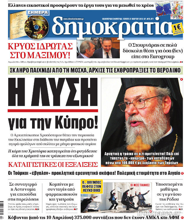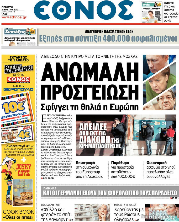Οι πολιτικές εφημερίδες Enikos Newsroom 08:26, Πέμπτη 21 Μαρτίου 2013 Media Οι πολιτικές εφημερίδες ΕΦΗΜΕΡΙΔΕΣ ΠΟΛΙΤΙΚΕΣ ΕΦΗΜΕΡΙΔΕΣ ΠΡΩΤΟΣΕΛΙΔΑ Μοιράσου το: σχολίασε κι εσύ (0 σχόλια) Ακολουθήστε το enikos.gr στο Google News και μάθετε πρώτοι όλες τις ειδήσεις Δείτε όλες τις τελευταίες ειδήσεις από την Ελλάδα και τον Κόσμο στο enikos.gr Ειδήσεις Ροή Ειδήσεων 1 ώρα πριν Ζελένσκι: Μόνο οι ΗΠΑ και ο Τραμπ μπορούν να πιέσουν τη Ρωσία να βάλει τέλος στον πόλεμο 2 ώρες πριν Φοινικούντα: Προφυλακιστέος ο 30χρονος για συνέργεια στη διπλή δολοφονία – Και άλλα πρόσωπα στο «μικροσκόπιο» 3 ώρες πριν Κυριάκος Μητσοτάκης: Στην Ιερουσαλήμ την Τρίτη ο Πρωθυπουργός για την τριμερή Ελλάδας, Κύπρου, Ισραήλ – Θα συναντηθεί και με τον Αμπάς 6 ώρες πριν Πώς δρούσε το κύκλωμα που διακινούσε ναρκωτικά σε σχολεία – Υπέβαλαν σε βασανιστήρια όσους δεν τηρούσαν τους «κανόνες πειθαρχίας» 2 ώρες πριν Πάπας Λέων: Όταν έχει αϋπνίες επενδύει παραγωγικά τον χρόνο του – Ποιο παιχνίδι παίζει στο κινητό 2 ώρες πριν Αριθμολογία: Ο αριθμός του φύλακα αγγέλου σας, με βάση τον μήνα γέννησής σας – «Έτσι σας στέλνει σημάδια το σύμπαν» 3 ώρες πριν Πώς να απαλλαγείτε από τη μυρωδιά του τηγανητού φαγητού: Το μυστικό βρίσκεται στην κουζίνα σας 4 ώρες πριν Μήπως οι γιορτές σας δεν είναι τόσο τέλειες; 7 χριστουγεννιάτικες συνήθειες που μαρτυρούν ότι μια οικογένεια είναι δυσλειτουργική 14 ώρες πριν Enerwave: Το νέο «ρεύμα» στη λιανική ενέργειας που αλλάζει την εμπειρία του καταναλωτή 11 λεπτά πριν Κύκλωμα διακίνησης ναρκωτικών σε σχολεία: Τηλεφωνούσαν στους ανηλίκους την ώρα του μαθήματος – Οι διάλογοι-σοκ, τα «ψευδώνυμα» και τα βασανιστήρια 20 λεπτά πριν Χαβιέρ Μιλέι: Ο πρόεδρος της Αργεντινής χαιρετίζει την «πίεση των ΗΠΑ» στη Βενεζουέλα 28 λεπτά πριν Ξένια Τσίρκοβα: Έμαθε από την τηλεόραση ότι είναι η μεγάλη νικήτρια του GNTM – Η αντίδρασή της – ΒΙΝΤΕΟ 36 λεπτά πριν Ύπνος: Η διατροφή που μπορεί να σας βοηθήσει να κοιμάστε καλύτερα και να ζήσετε περισσότερο 47 λεπτά πριν Ιταλία: Επεισόδια και τραυματίες σε διαδήλωση μελών ακροαριστερού “κοινωνικού κέντρου ” στο Τορίνο ENIKOS NETWORK Οι γυναίκες αποκαλύπτουν το πιο ελκυστικό πράγμα που μπορεί να κάνει ένας άνδρας Ομορφιά και αντιγήρανση: Ειδικοί μιλούν για συσκευές περιποίησης του δέρματος Ρεύμα: Πώς μπορείτε να αλλάξετε πάροχο γρήγορα και εύκολα – Τα βήματα της διαδικασίας Εφορία: 7 αλλαγές σε δηλώσεις και ελέγχους ακινήτων – Όλα όσα πρέπει να γνωρίζετε Χαρτογραφώντας το «σημείο χωρίς επιστροφή»: Για πρώτη φορά αποκαλύπτεται με λεπτομέρεια το ακανθώδες όριο της ατμόσφαιρας τ... Η Google καταργεί τη λειτουργία «dark web report» – Πώς θα μπορούν οι χρήστες να διαγράφουν τα δεδομένα τους περισσότερα 20:30 , Σάββατο 20 Δεκεμβρίου 2025 Αυτή την Κυριακή με τη Realnews: Instyle, μαζί Drive και Realnews Geopolitics Αυτή την Κυριακή με τη Realnews: Instyle, μαζί Drive και Realnews Geopolitics Instyle Η Άννα Ρ... 20:28 , Σάββατο 20 Δεκεμβρίου 2025 Ο ΑΝΤ1 γεμίζει τις γιορτές με μουσική – Ποιους καλλιτέχνες θα απολαύσουμε Φέτος στον ΑΝΤ1 γιορτάζουμε τις νύχτες μας παρέα με αγαπημένους καλλιτέχνες και μεγάλες μουσι... 18:19 , Σάββατο 20 Δεκεμβρίου 2025 HOTΕΛ ΕΛVIRA: Η Ελβίρα μαθαίνει πως ο Χάρι μένει κρυφά στο ξενοδοχείο του Παντελή Συνεχίζονται οι εκλογές για πρόεδρο, στο νέο επεισόδιο της κωμικής σειράς του MEGA, HOTΕΛ ΕΛVI... 14:04 , Σάββατο 20 Δεκεμβρίου 2025 Η Realnews αυτής της Κυριακής (21/12/2025) Με τίτλο: «Ασπίδα προστασίας για την Ελλάδα» κυκλοφορεί, αυτήν την Κυριακή, η Realne