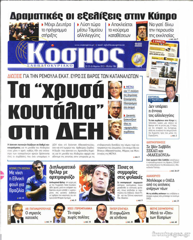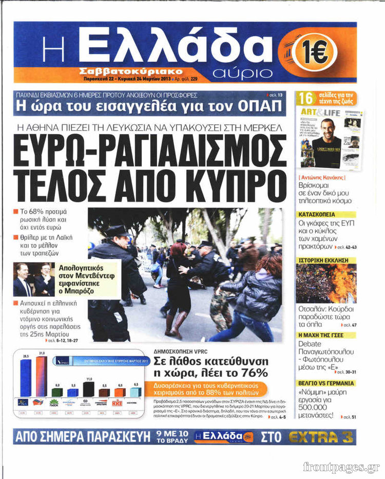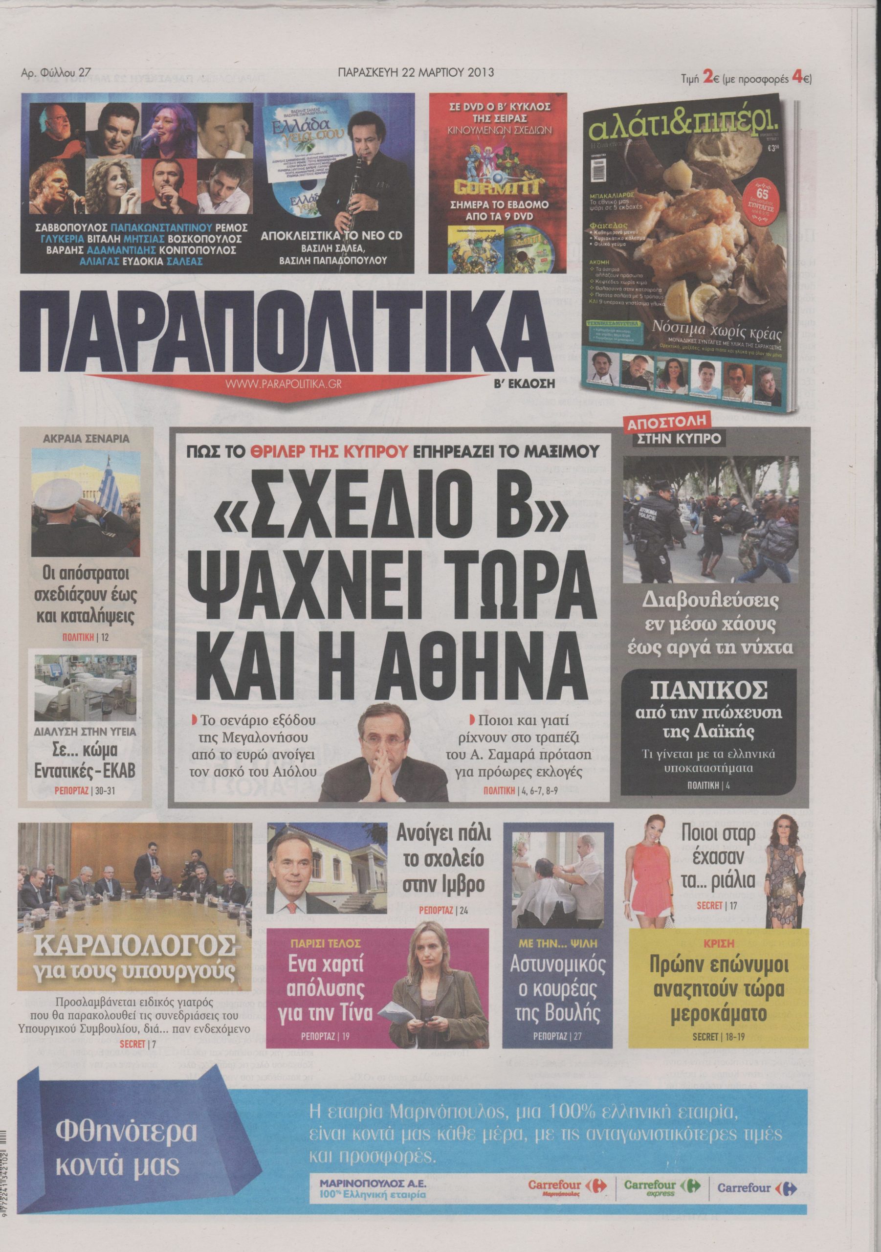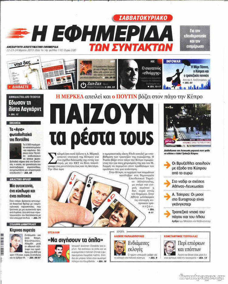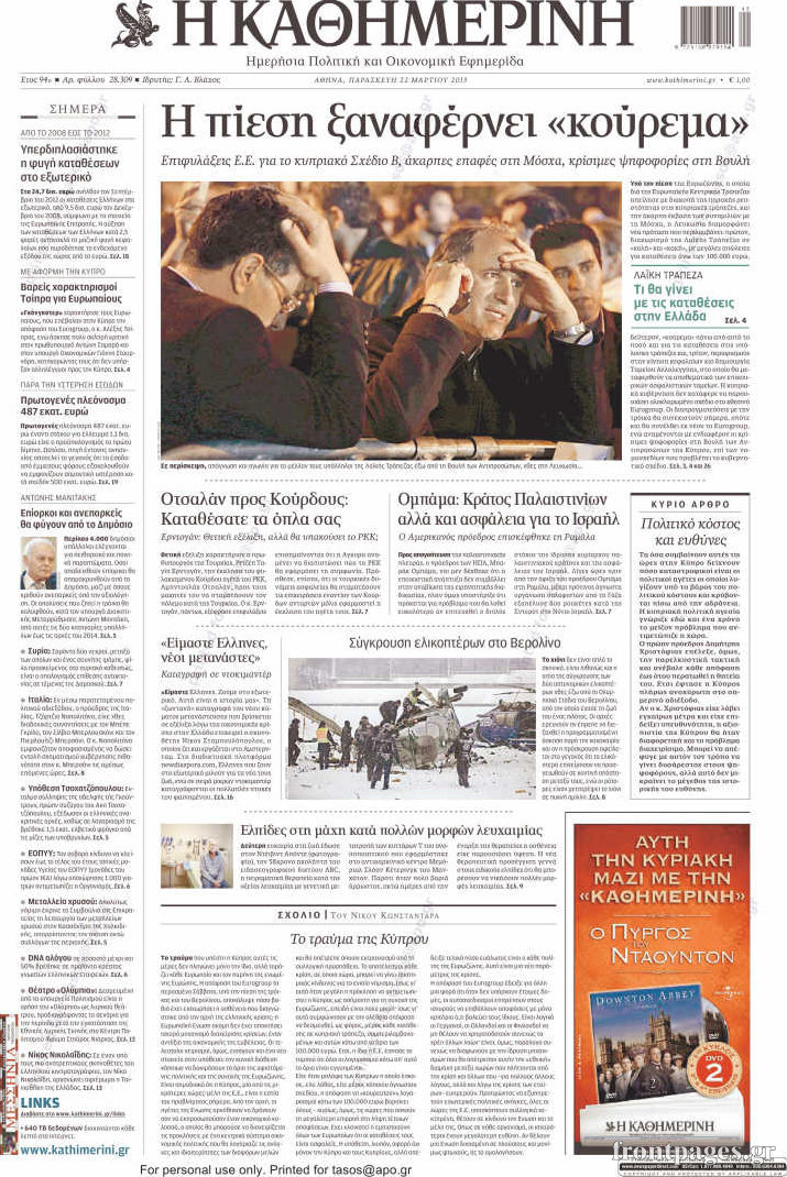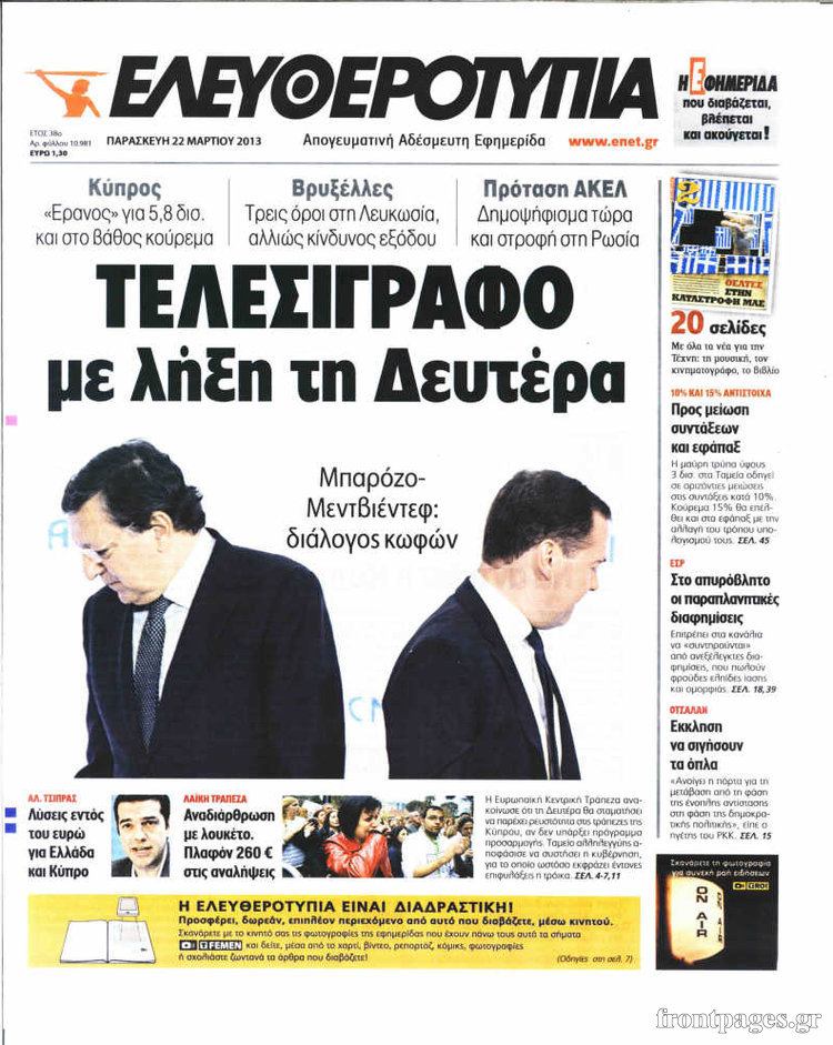 Οι πολιτικές εφημερίδες Enikos Newsroom 09:10, Παρασκευή 22 Μαρτίου 2013 Media Οι πολιτικές εφημερίδες Τα πρωτοσέλιδα των πολιτικών εφημερίδων. ΕΦΗΜΕΡΙΔΕΣ ΠΟΛΙΤΙΚΕΣ ΕΦΗΜΕΡΙΔΕΣ ΠΡΩΤΟΣΕΛΙΔΑ Μοιράσου το: σχολίασε κι εσύ (0 σχόλια) Ακολουθήστε το enikos.gr στο Google News και μάθετε πρώτοι όλες τις ειδήσεις Δείτε όλες τις τελευταίες ειδήσεις από την Ελλάδα και τον Κόσμο στο enikos.gr Ειδήσεις Ροή Ειδήσεων 3 ώρες πριν Διάλογοι-σοκ από το κύκλωμα που διακινούσε ναρκωτικά σε σχολεία – «Αν δεν είσαι εκεί σε 5 λεπτά, θα φας πολύ ξύλο μπρο» 4 ώρες πριν Αγρότες από το μπλόκο Νίκαιας κλείνουν τη Δευτέρα τις σήραγγες των Τεμπών για τα φορτηγά – Τι αποφάσισαν 54 λεπτά πριν Δήμος Αθηναίων: Ξεκινά τη Δευτέρα η επιστροφή πινακίδων οχημάτων από τη Δημοτική Αστυνομία 2 ώρες πριν «Πλημμύρισε» με κόσμο η Ερμού ενόψει των Χριστουγέννων – Ουρές στα καταστήματα – ΦΩΤΟ και ΒΙΝΤΕΟ 1 ώρα πριν Κόντρα Πλεύρη-Δούκα για το rave πάρτι στα σκαλιά εκκλησίας στο Γαλάτσι: «Απλά ντροπή» – «Υποκρισία και σκοταδισμός» 3 ώρες πριν Αν ανήκετε σε ένα από αυτά τα 3 ζώδια, το 2026 θα είναι η χρονιά σας – «Η ζωή σας βελτιώνεται σε όλους τους τομείς» 7 ώρες πριν Οι άνθρωποι που στρώνουν το κρεβάτι τους κάθε πρωί, διαθέτουν αυτές τις 8 κρυφές δυνάμεις 4 ώρες πριν Ένα πλάσμα στα βάθη της θάλασσας απορροφά άνθρακα από την ατμόσφαιρα – «Δεν είχαμε ιδέα για την ύπαρξή του» 1 ημέρα πριν Enerwave: Το νέο «ρεύμα» στη λιανική ενέργειας που αλλάζει την εμπειρία του καταναλωτή 9 λεπτά πριν Κωνσταντίνος Ανεστίδης: «Είμαι αθώος, είμαι καθαρός σαν αστραπή και η αστραπή θα πέσει στο κεφάλι τους» – ΒΙΝΤΕΟ 17 λεπτά πριν Θεσσαλονίκη: Συνελήφθη 27χρονος που έκανε επικίνδυνο ελιγμό για να αποφύγει έλεγχο και παραλίγο να τραυματίσει αστυνομικό 27 λεπτά πριν Εγκαινιάστηκε ο αρχαιολογικός χώρος του Ανακτόρου της Πέλλας – Παρουσιάστηκαν για πρώτη φορά δύο ελληνιστικά αγάλματα 42 λεπτά πριν Βλαδίμηρος Κυριακίδης για Έφη Μουρίκη: «Δεν υπάρχει ανταγωνισμός στη σχέση μας, αλλά συναγωνισμός» 54 λεπτά πριν Δήμος Αθηναίων: Ξεκινά τη Δευτέρα η επιστροφή πινακίδων οχημάτων από τη Δημοτική Αστυνομία ENIKOS NETWORK «Όσοι απατούν τους συντρόφους τους έχουν ένα κοινό χαρακτηριστικό» αποκαλύπτει ειδικός στις σχέσεις Ο εγκέφαλός μας ξεπερνά ακόμα σε εξυπνάδα το ΑΙ – Ποιο είναι αυτό στο οποίο είμαστε καλύτεροι Λειψυδρία: Πού βρισκόμαστε σήμερα και πώς προετοιμάζεται η ΕΥΔΑΠ για το επόμενο κρίσιμο διάστημα Έρχεται ο Μοναδικός Αριθμός Ταυτότητας για τα ακίνητα: Τι είναι και από πού θα αντλούνται πληροφορίες – Πώς θα αλλάξει τις ... Χαρτογραφώντας το «σημείο χωρίς επιστροφή»: Για πρώτη φορά αποκαλύπτεται με λεπτομέρεια το ακανθώδες όριο της ατμόσφαιρας τ... Η Google καταργεί τη λειτουργία «dark web report» – Πώς θα μπορούν οι χρήστες να διαγράφουν τα δεδομένα τους περισσότερα 17:18 , Κυριακή 21 Δεκεμβρίου 2025 «Η Μεγάλη Χίμαιρα»: Μάγεψε το κοινό κατά την avant-première της προβολής της Την Πρωτοχρονιά (Πέμπτη 1η Ιανουαρίου 2026) στο ERTFLIX θα γίνει η πρεμιέρα της πολυαναμενόμεν... 15:08 , Κυριακή 21 Δεκεμβρίου 2025 Μια νύχτα μόνο: Η Αρετή και ο Οδυσσέας έρχονται και πάλι κοντά Το νέο επεισόδιο της δραματικής σειράς του MEGA «Μια νύχτα μόνο», θα προβληθεί απόψε Κυριακή 2... 14:24 , Κυριακή 21 Δεκεμβρίου 2025 IQ 160: Ο φάκελος με το τεστ πατρότητας ανοίγει, απόψε στις 21:00 στο Star Ανατρεπτικό το νέο διπλό επεισόδιο της σειράς “IQ 160” στις 21:00 στο Star. Ο Τηλέ... 09:43 , Κυριακή 21 Δεκεμβρίου 2025 Το λάθος στην ταινία Die Hard που άφησε