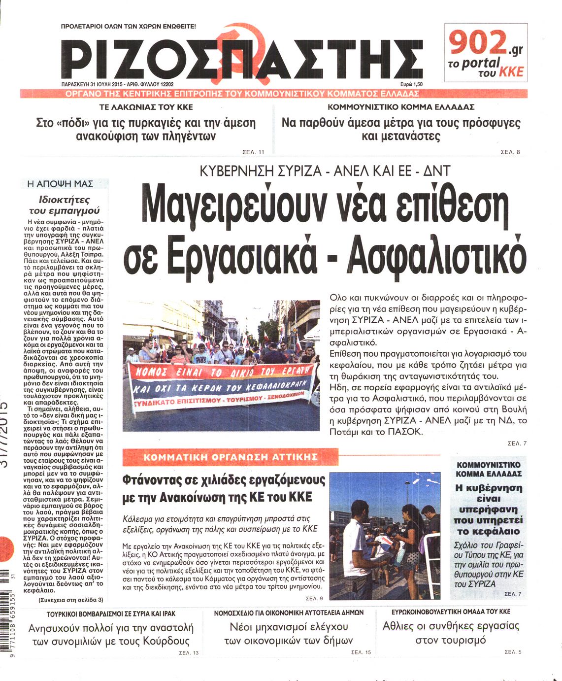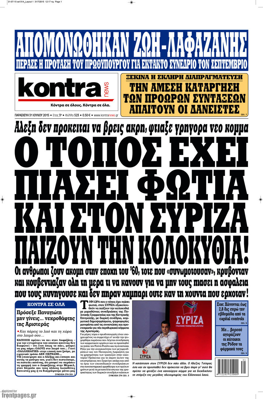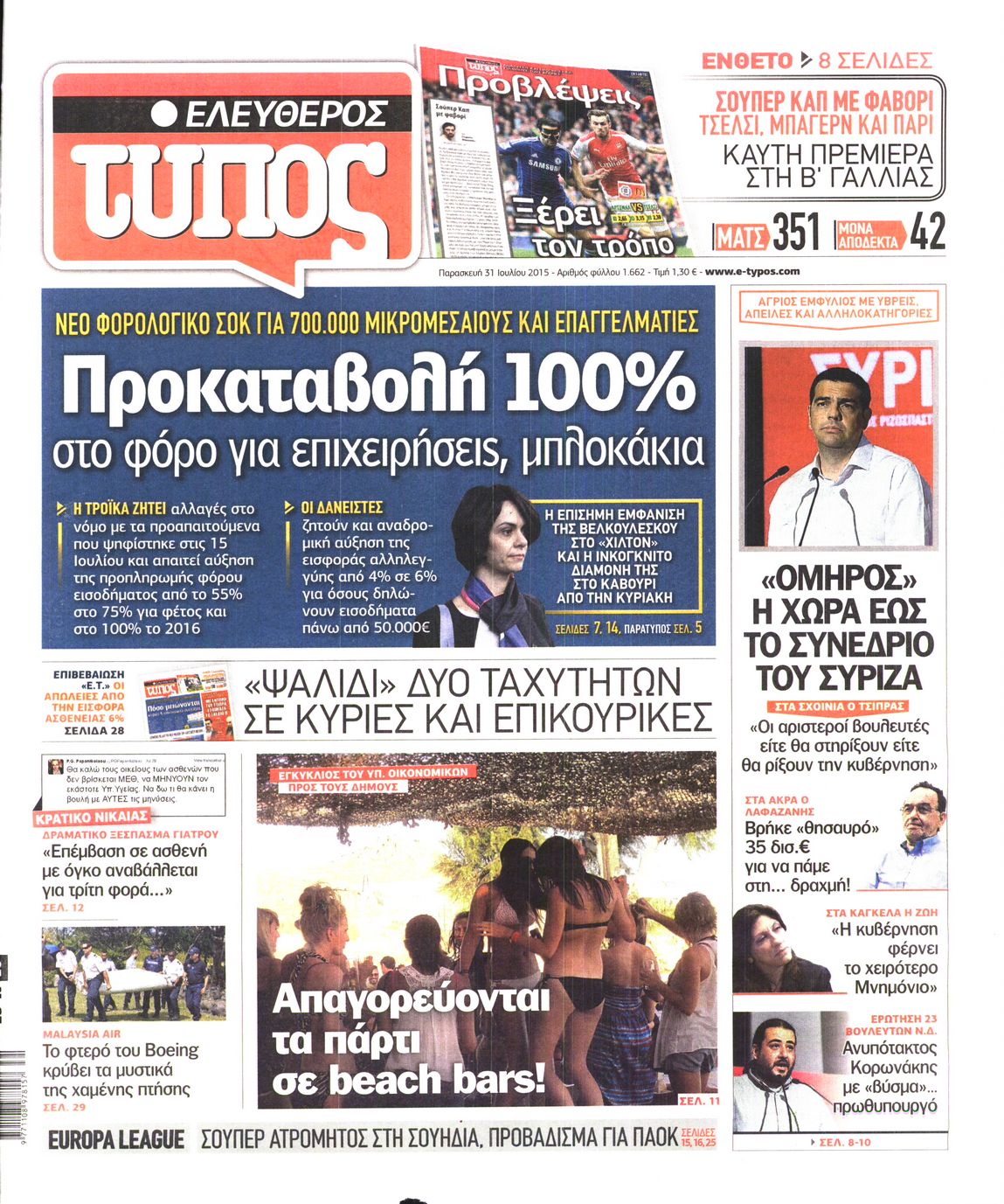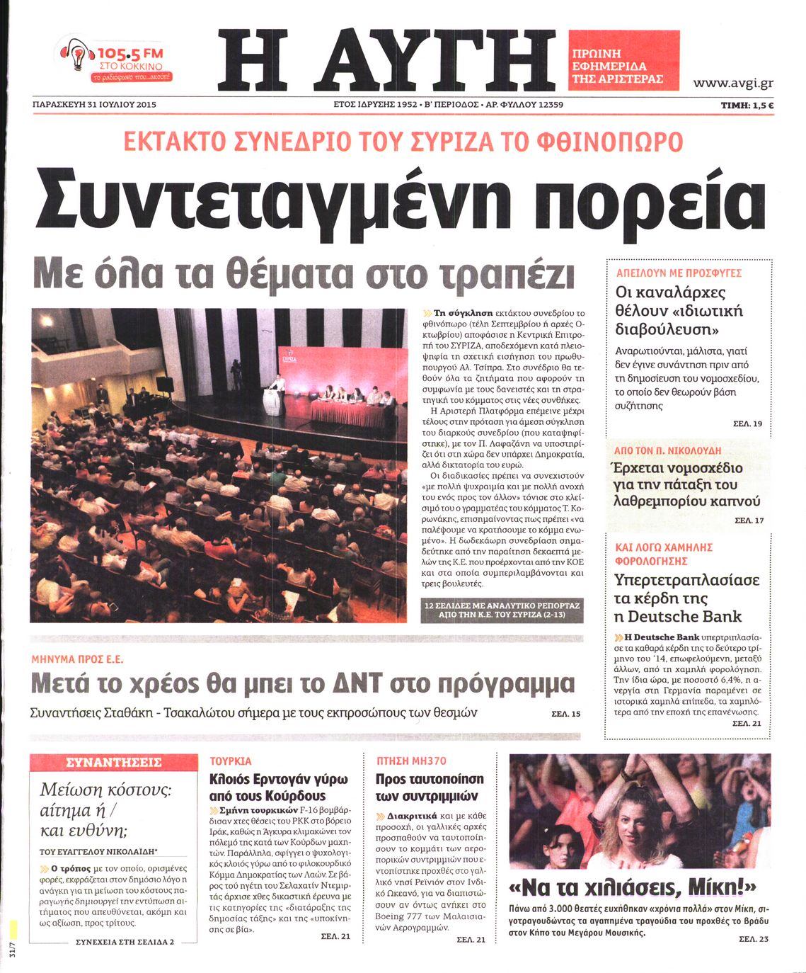Οι πολιτικές εφημερίδες 31/7/2015 Enikos Newsroom 07:39, Παρασκευή 31 Ιουλίου 2015 Media Διαβάστε τα σημερινά πρωτοσέλιδα των πολιτικών εφημερίδων. ΕΦΗΜΕΡΙΔΕΣ ΠΟΛΙΤΙΚΕΣ ΕΦΗΜΕΡΙΔΕΣ ΠΡΩΤΟΣΕΛΙΔΑ Μοιράσου το: σχολίασε κι εσύ (0 σχόλια) Ακολουθήστε το enikos.gr στο Google News και μάθετε πρώτοι όλες τις ειδήσεις Δείτε όλες τις τελευταίες ειδήσεις από την Ελλάδα και τον Κόσμο στο enikos.gr Ειδήσεις Ροή Ειδήσεων 2 ώρες πριν Υπόθεση Έπσταϊν: Το Υπουργείο Δικαιοσύνης δημοσιοποίησε μια σειρά από εξαιρετικά επεξεργασμένα αρχεία – «Λείπουν τα πιο σημαντικά έγγραφα», λένε οι Δημοκρατικοί 1 ώρα πριν Ο «χάρτης» με τις αυξήσεις και τις φοροελαφρύνσεις του 2026 – Ποιοι και πόσα κερδίζουν 11 ώρες πριν Χριστούγεννα στα μπλόκα: Επιμένουν στις κινητοποιήσεις τους οι αγρότες – Ανοίγουν τα διόδια το Σαββατοκύριακο 2 ώρες πριν ΟΝΕΧ – MEGATUGS: Ξεκίνησε η ναυπήγηση ρυμουλκών στην Ελλάδα – Προθάλαμος πολεμικών πλοίων – Δείτε φωτογραφίες και βίντεο 2 ώρες πριν Καιρός: Αλλαγή σκηνικού σήμερα με βροχές και πτώση της θερμοκρασίας – Οι προβλέψεις των μετεωρολόγων για τα Χριστούγεννα 4 ώρες πριν Αυγά: Πόσα μπορείτε να τρώτε την ημέρα με ασφάλεια για μέγιστη πρόσληψη πρωτεΐνης 4 ώρες πριν Οπτική ψευδαίσθηση: Μόνο αν είσαι ο Σέρλοκ Χολμς θα βρεις τον αριθμό «87» σε 7 δευτερόλεπτα 2 ώρες πριν Αρχαιολόγοι ανακάλυψαν σε χωράφι απεικόνιση 600 ετών ενός Αγίου – Τα στοιχεία που δείχνουν ότι μαρτύρησε 55 λεπτά πριν Αγχώνεται για το χριστουγεννιάτικο δώρο που πήρε στην πλούσια σύντροφό του – «Φοβάμαι πως θα το βρει φθηνιάρικο, φοράει βραχιόλια Cartier» 6 λεπτά πριν Κρήτη: «Πίεση διαρκείας» με νέες αφίξεις μεταναστών – Τρεις επιχειρήσεις διάσωσης νότια του νησιού 15 λεπτά πριν Η χήνα… που πέρασαν για κλέφτη: Έσπασε την πόρτα προκαλώντας πανικό 22 λεπτά πριν Θεσσαλονίκη: 24ωρη λειτουργία σήμερα σε μετρό και 6 λεωφορειακές γραμμές 30 λεπτά πριν «Porto Leone: Στη γειτονιά με τα κόκκινα φανάρια» – Ο Χρόνης αποκαλύπτει στην Αλεξάνδρα το μυστικό για το παιδί της Λένας 38 λεπτά πριν Νέες αιτήσεις για ίδρυση μη κρατικών πανεπιστημίων στο πρώτο δίμηνο του 2026 – Τι είπε η Ζαχαράκη ENIKOS NETWORK Είστε μόνιμα απρόσεκτοι; 3 σημάδια που δείχνουν ότι μπορεί να είναι σύμπτωμα πάθησης Πόσα κιλά παίρνουμε πραγματικά τα Χριστούγεννα, σύμφωνα με την επιστήμη – Πώς να το αποτρέψουμε; Mega χριστουγεννιάτικη φορολοταρία: «Κλείδωσε» η ημερομηνία για την κλήρωση – Ερωτήσεις και απαντήσεις Αναστολή μέτρων αναγκαστικής εκτέλεσης για κτηνοτρόφους που πλήττονται από την ευλογιά των αιγοπροβάτων Χαρτογραφώντας το «σημείο χωρίς επιστροφή»: Για πρώτη φορά αποκαλύπτεται με λεπτομέρεια το ακανθώδες όριο της ατμόσφαιρας τ... Η Google καταργεί τη λειτουργία «dark web report» – Πώς θα μπορούν οι χρήστες να διαγράφουν τα δεδομένα τους περισσότερα 09:30 , Σάββατο 20 Δεκεμβρίου 2025 «Porto Leone: Στη γειτονιά με τα κόκκινα φανάρια» – Ο Χρόνης αποκαλύπτει στην Αλεξάνδρα το μυστικό για το παιδί της Λένας Η μεγάλη δραματική σειρά του Apha «Porto Leone: Στη γειτονιά με τα κόκκινα φανάρια» μας μεταφέ... 08:14 , Σάββατο 20 Δεκεμβρίου 2025 Τρομεροί γονείς: Η Μαρία Καβογιάννη εισβάλλει στο σπίτι της οικογένειας Στεφανίδη Όσα θα δούμε στο νέο διπλό επεισόδιο της σειράς «Τρομεροί γονείς», σήμερα Σάββατο 20 Δεκεμβρίο... 05:48 , Σάββατο 20 Δεκεμβρίου 2025 Οι οικονομικές εφημερίδες 20/12/2025 Διαβάστε τα πρωτοσέλιδα από τις οικονομικές εφημερίδες, σήμερα 20/12/2025. 05:43 , Σάββατο 20 Δεκεμβρίου 2025 Οι αθλητικές εφημερίδες 20/12/2025 Δι