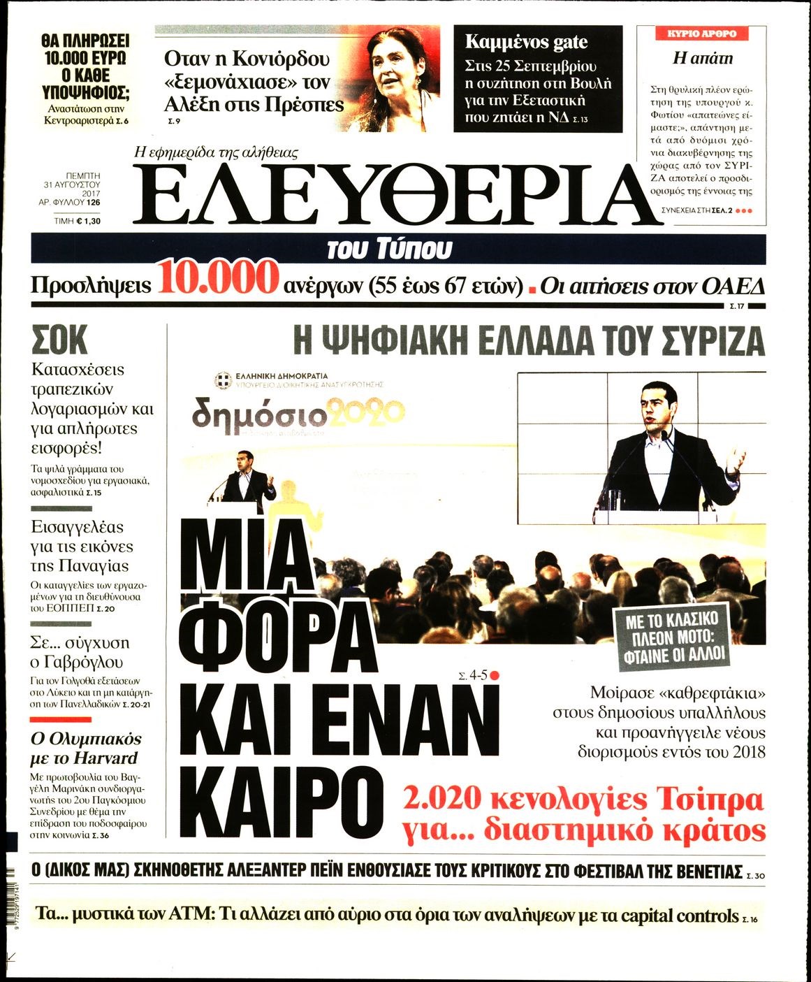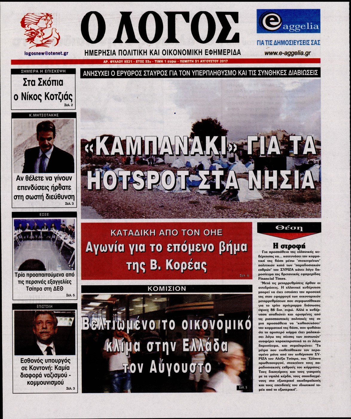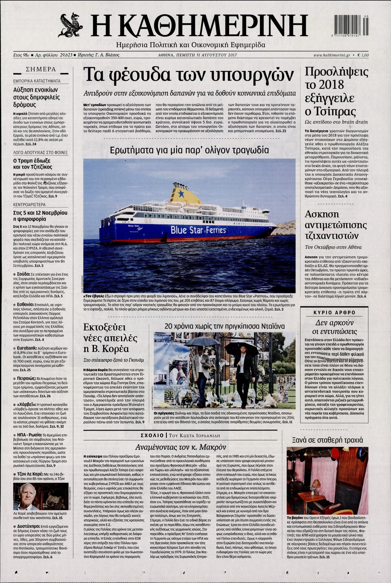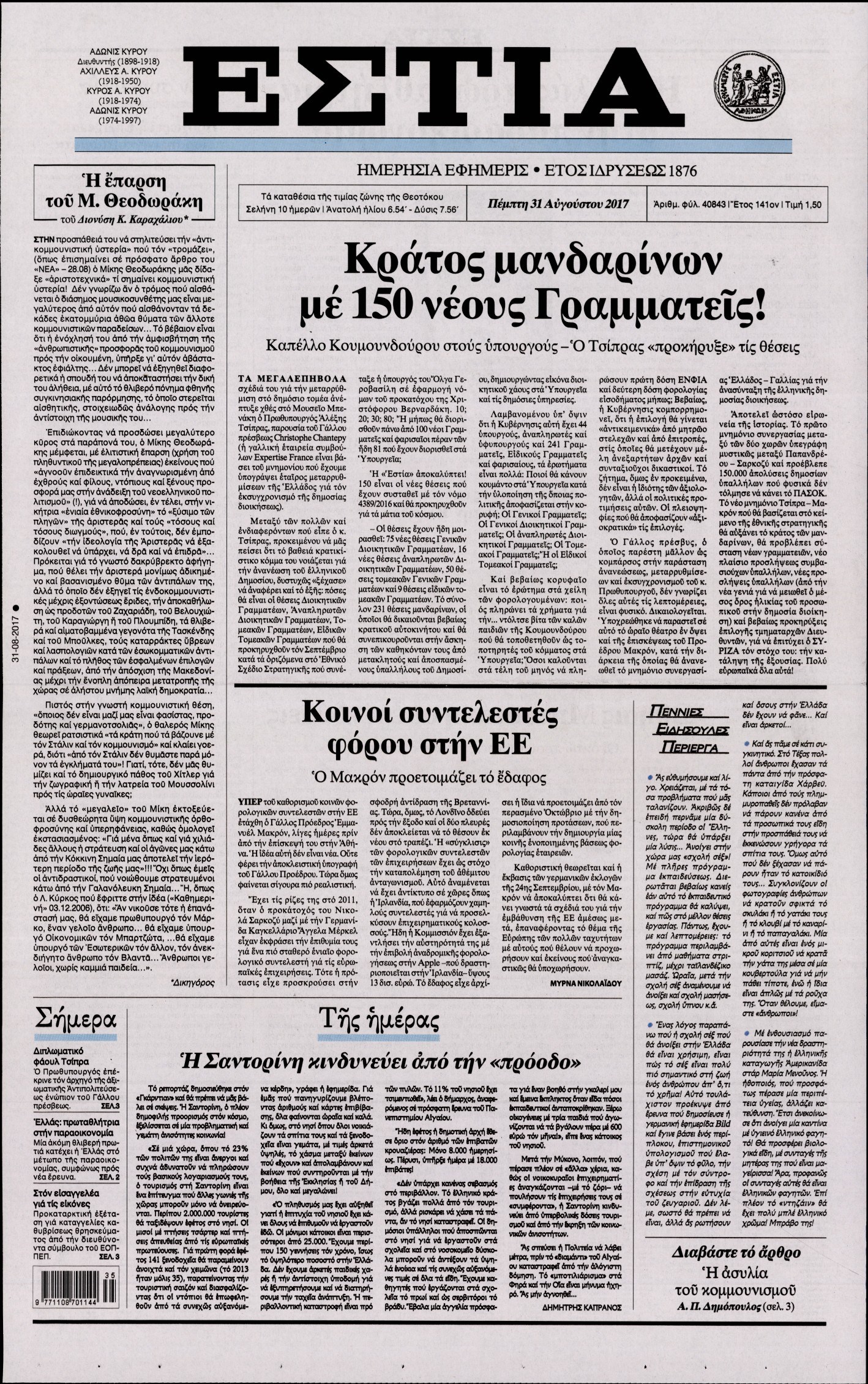 Οι πολιτικές εφημερίδες 31/8/2017 Enikos Newsroom 07:40, Πέμπτη 31 Αυγούστου 2017 Media Διαβάστε τα σημερινά πρωτοσέλιδα των πολιτικών εφημερίδων: ΠΟΛΙΤΙΚΕΣ ΕΦΗΜΕΡΙΔΕΣ ΠΡΩΤΟΣΕΛΙΔΑ Μοιράσου το: σχολίασε κι εσύ (0 σχόλια) Ακολουθήστε το enikos.gr στο Google News και μάθετε πρώτοι όλες τις ειδήσεις Δείτε όλες τις τελευταίες ειδήσεις από την Ελλάδα και τον Κόσμο στο enikos.gr Ειδήσεις Ροή Ειδήσεων 3 ώρες πριν Αγρότες: Πολύωροι αποκλεισμοί στα τελωνεία Προμαχώνα, Εξοχής, Ευζώνων και Νίκης – Κλείνουν τον κόμβο Φιλώτα οι παραγωγοί στη Δυτική Μακεδονία 2 ώρες πριν Νίκος Παππάς: Ζητώ συγγνώμη για αυτό το επεισόδιο – Δεν τον γρονθοκόπησα 1 ώρα πριν Πούτιν: Η Ουκρανία δεν είναι έτοιμη για ειρηνευτικές συνομιλίες – ο ρωσικός στρατός προελαύνει σε όλα τα μέτωπα 1 ώρα πριν Κρήτη: Στο Ρέθυμνο μεταφέρονται οι εκατοντάδες μετανάστες που διασώθηκαν ανοιχτά της Γαύδου 3 ώρες πριν Τρομακτικό βίντεο: Η στιγμή της έκρηξης στο τζετ που μετέφερε τον οδηγό του NASCAR, Γκρεγκ Μπιφλ και την οικογένειά του 3 ώρες πριν Αλλαγή σελίδας για 3 ζώδια – «Μία δύσκολη περίοδος φτάνει στο τέλος της» 2 ημέρες πριν 20 χρόνια τα Χριστούγεννα ξεκινούν στα Public με μεγάλη ποικιλία σε δώρα! 2 ώρες πριν Γεμάτος νεροχύτης; 5 σοβαρές ευθύνες που «φοβίζουν» όσους αφήνουν άπλυτα πιάτα 1 ώρα πριν Ειδικός μοιράζεται 6 κόλπα για να διατηρείστε σε φόρμα με πάνω από 40 ώρες εργασίας την εβδομάδα: «Προπονηθείτε πριν από τη δουλειά, όχι μετά» 5 λεπτά πριν Γιώργος Καπουτζίδης: Το «Παρά Πέντε» ήταν η παρέα που δεν είχα στη μοναχική εφηβεία μου – Όσα αποκάλυψε για το Reunion 10 λεπτά πριν Πούτιν: Η χρήση των ρωσικών παγωμένων περιουσιακών στοιχείων για τη χρηματοδότηση της Ουκρανίας είναι ληστεία – Θα είχε σοβαρές επιπτώσεις” 15 λεπτά πριν ΑΑΔΕ: QR Code και Barcode για εύκολες και γρήγορες πληρωμές οφειλών 20 λεπτά πριν Νέα Φιλαδέλφεια: Βίντεο ντοκουμέντο από το θανατηφόρο τροχαίο 25 λεπτά πριν Παπαθανάσης: «Η Ελλάδα αλλάζει με μεταρρυθμίσεις και έργα – Το 2026 χρονιά μεγάλης ανάπτυξης, νέων θέσεων εργασίας, καλύτερων αμοιβών» ENIKOS NETWORK Κίνδυνος παραπλάνησης από διαφημίσεις οδοντικών εμφυτευμάτων Καρκίνος του πνεύμονα: Έως 8.000 ζωές μπορούν να σωθούν με την έγκαιρη διάγνωση Αγορά πολυτελών κατοικιών: Αυτές είναι οι προτεραιότητες των αγοραστών – Σε ποιες περιοχές στρέφονται και τι επιλέγουν ΕΥΔΑΠ: Στο τραπέζι αλλαγές στους λογαριασμούς του νερού – Τι θα ισχύσει για ευάλωτα νοικοκυριά και επιχειρήσεις Χαρτογραφώντας το «σημείο χωρίς επιστροφή»: Για πρώτη φορά αποκαλύπτεται με λεπτομέρεια το ακανθώδες όριο της ατμόσφαιρας τ... Η Google καταργεί τη λειτουργία «dark web report» – Πώς θα μπορούν οι χρήστες να διαγράφουν τα δεδομένα τους περισσότερα 08:00 , Παρασκευή 19 Δεκεμβρίου 2025 Την Κυριακή με τη Realnews: Δωροεπιταγή 10€ Δωροεπιταγή αξίας 10€ για αγορές άνω των 60€ από τα πολυκαταστήματα FactoryOutlet H προσφορά ι... 05:48 , Παρασκευή 19 Δεκεμβρίου 2025 Οι οικονομικές εφημερίδες 19/12/2025 Διαβάστε τα πρωτοσέλιδα από τις οικονομικές εφημερίδες, σήμερα 19/12/2025. 05:43 , Παρασκευή 19 Δεκεμβρίου 2025 Οι αθλητικές εφημερίδες 19/12/2025 Διαβάστε τα πρωτοσέλιδα από τις αθλητικές εφημερίδες, σήμερα 19/12/2025. 05:38 , Παρασκευή 19 Δεκεμβρίου 2025 Οι πολιτικές εφημερίδες 19/12/2025 Διαβάστε τα πρωτοσέλιδα από τις πολιτικές εφημερίδες, σήμερα 19/12/2025. ΤΕΛΕΥΤΑΙΕΣ ΕΙΔΗΣΕΙΣ 5 λεπτά πριν Γιώργος Καπουτζίδης: Το «Παρά Πέντε» ήταν η παρέα που... 10 λεπτά πριν Πούτιν: Η χρήση των ρωσικών παγωμένων περιουσιακών... 15 λεπτά πριν ΑΑΔ