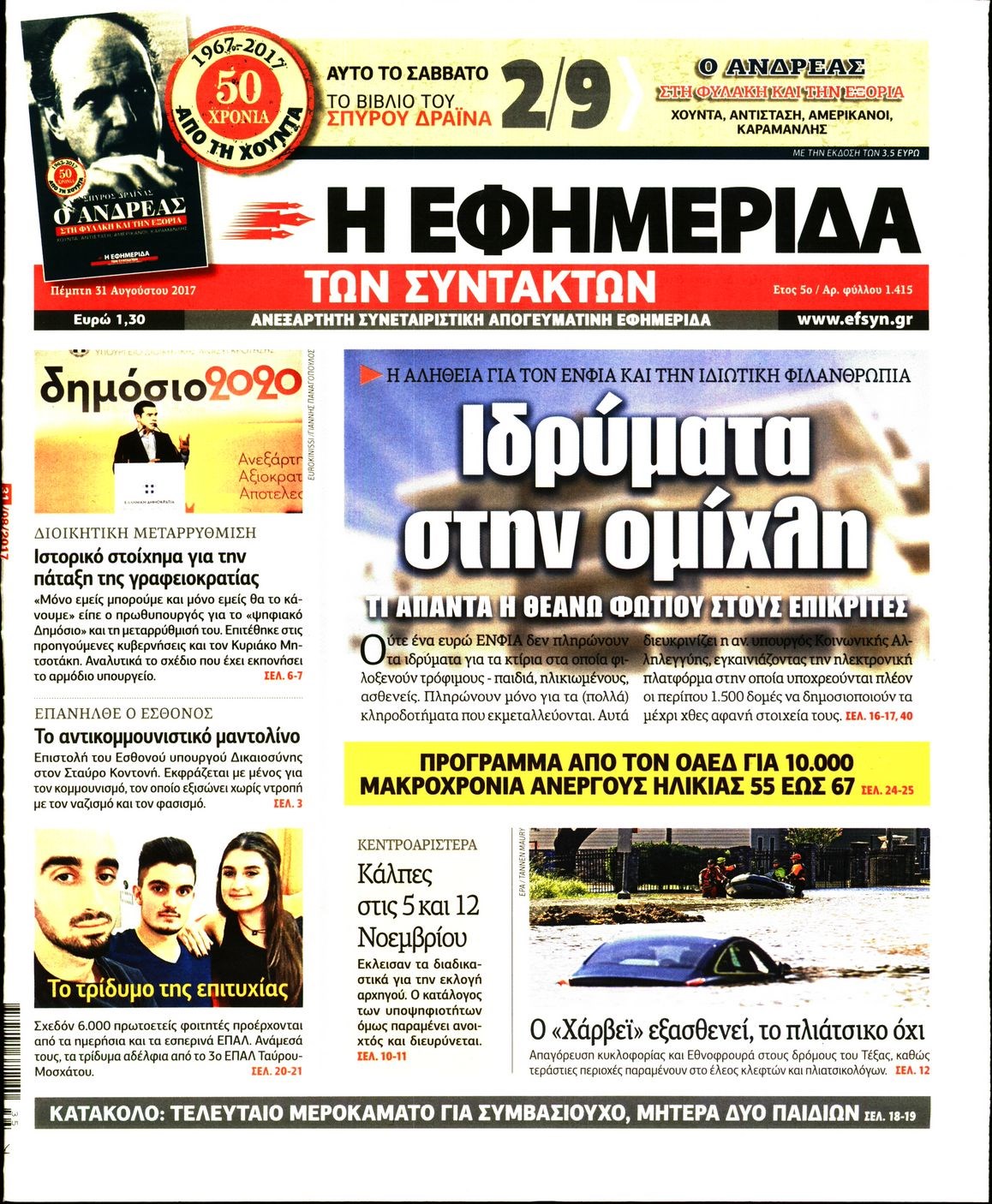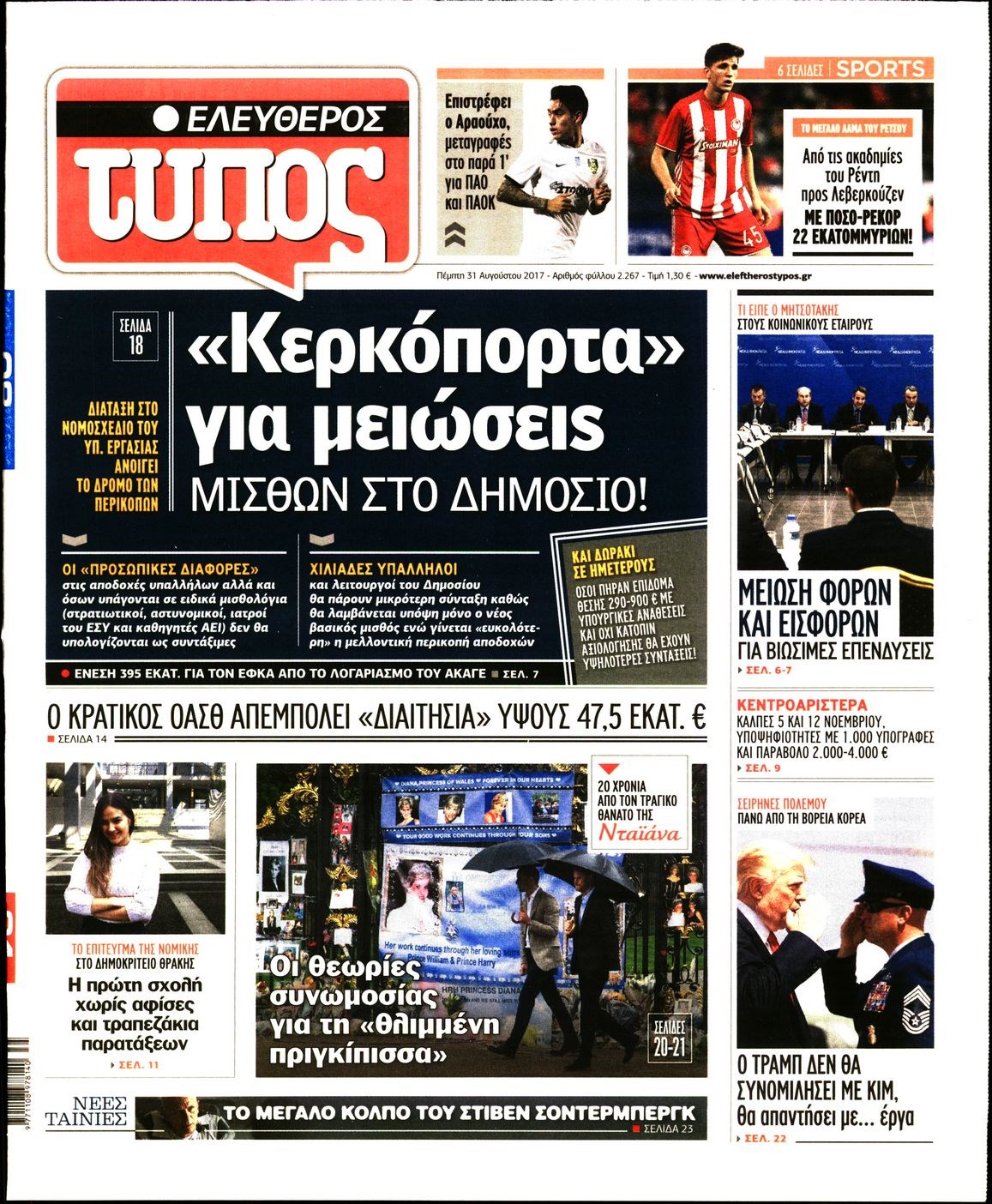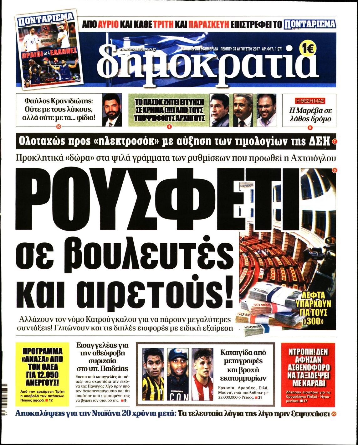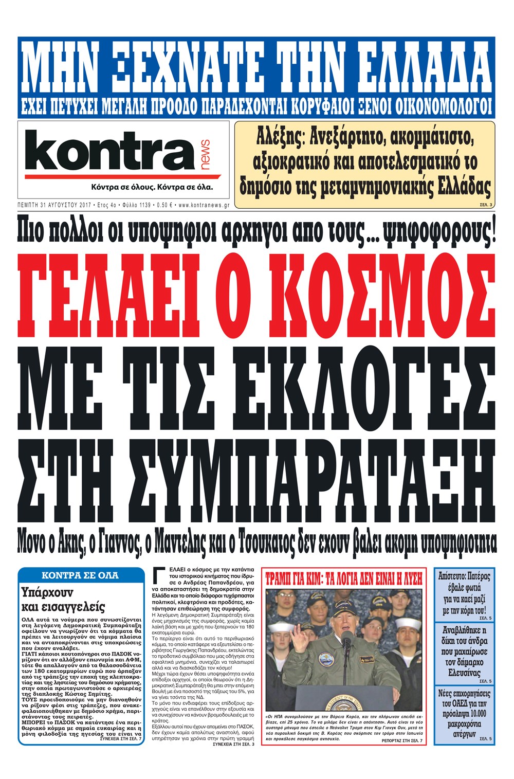 Οι πολιτικές εφημερίδες 31/8/2017 Enikos Newsroom 07:40, Πέμπτη 31 Αυγούστου 2017 Media Διαβάστε τα σημερινά πρωτοσέλιδα των πολιτικών εφημερίδων: ΠΟΛΙΤΙΚΕΣ ΕΦΗΜΕΡΙΔΕΣ ΠΡΩΤΟΣΕΛΙΔΑ Μοιράσου το: σχολίασε κι εσύ (0 σχόλια) Ακολουθήστε το enikos.gr στο Google News και μάθετε πρώτοι όλες τις ειδήσεις Δείτε όλες τις τελευταίες ειδήσεις από την Ελλάδα και τον Κόσμο στο enikos.gr Ειδήσεις Ροή Ειδήσεων 3 ώρες πριν Αγρότες: Πολύωροι αποκλεισμοί στα τελωνεία Προμαχώνα, Εξοχής, Ευζώνων και Νίκης – Κλείνουν τον κόμβο Φιλώτα οι παραγωγοί στη Δυτική Μακεδονία 2 ώρες πριν Νίκος Παππάς: Ζητώ συγγνώμη για αυτό το επεισόδιο – Δεν τον γρονθοκόπησα 1 ώρα πριν Πούτιν: Η Ουκρανία δεν είναι έτοιμη για ειρηνευτικές συνομιλίες – ο ρωσικός στρατός προελαύνει σε όλα τα μέτωπα 1 ώρα πριν Κρήτη: Στο Ρέθυμνο μεταφέρονται οι εκατοντάδες μετανάστες που διασώθηκαν ανοιχτά της Γαύδου 3 ώρες πριν Τρομακτικό βίντεο: Η στιγμή της έκρηξης στο τζετ που μετέφερε τον οδηγό του NASCAR, Γκρεγκ Μπιφλ και την οικογένειά του 3 ώρες πριν Αλλαγή σελίδας για 3 ζώδια – «Μία δύσκολη περίοδος φτάνει στο τέλος της» 2 ημέρες πριν 20 χρόνια τα Χριστούγεννα ξεκινούν στα Public με μεγάλη ποικιλία σε δώρα! 2 ώρες πριν Γεμάτος νεροχύτης; 5 σοβαρές ευθύνες που «φοβίζουν» όσους αφήνουν άπλυτα πιάτα 1 ώρα πριν Ειδικός μοιράζεται 6 κόλπα για να διατηρείστε σε φόρμα με πάνω από 40 ώρες εργασίας την εβδομάδα: «Προπονηθείτε πριν από τη δουλειά, όχι μετά» 5 λεπτά πριν Γιώργος Καπουτζίδης: Το «Παρά Πέντε» ήταν η παρέα που δεν είχα στη μοναχική εφηβεία μου – Όσα αποκάλυψε για το Reunion 10 λεπτά πριν Πούτιν: Η χρήση των ρωσικών παγωμένων περιουσιακών στοιχείων για τη χρηματοδότηση της Ουκρανίας είναι ληστεία – Θα είχε σοβαρές επιπτώσεις” 15 λεπτά πριν ΑΑΔΕ: QR Code και Barcode για εύκολες και γρήγορες πληρωμές οφειλών 20 λεπτά πριν Νέα Φιλαδέλφεια: Βίντεο ντοκουμέντο από το θανατηφόρο τροχαίο 25 λεπτά πριν Παπαθανάσης: «Η Ελλάδα αλλάζει με μεταρρυθμίσεις και έργα – Το 2026 χρονιά μεγάλης ανάπτυξης, νέων θέσεων εργασίας, καλύτερων αμοιβών» ENIKOS NETWORK Κίνδυνος παραπλάνησης από διαφημίσεις οδοντικών εμφυτευμάτων Καρκίνος του πνεύμονα: Έως 8.000 ζωές μπορούν να σωθούν με την έγκαιρη διάγνωση Αγορά πολυτελών κατοικιών: Αυτές είναι οι προτεραιότητες των αγοραστών – Σε ποιες περιοχές στρέφονται και τι επιλέγουν ΕΥΔΑΠ: Στο τραπέζι αλλαγές στους λογαριασμούς του νερού – Τι θα ισχύσει για ευάλωτα νοικοκυριά και επιχειρήσεις Χαρτογραφώντας το «σημείο χωρίς επιστροφή»: Για πρώτη φορά αποκαλύπτεται με λεπτομέρεια το ακανθώδες όριο της ατμόσφαιρας τ... Η Google καταργεί τη λειτουργία «dark web report» – Πώς θα μπορούν οι χρήστες να διαγράφουν τα δεδομένα τους περισσότερα 08:00 , Παρασκευή 19 Δεκεμβρίου 2025 Την Κυριακή με τη Realnews: Δωροεπιταγή 10€ Δωροεπιταγή αξίας 10€ για αγορές άνω των 60€ από τα πολυκαταστήματα FactoryOutlet H προσφορά ι... 05:48 , Παρασκευή 19 Δεκεμβρίου 2025 Οι οικονομικές εφημερίδες 19/12/2025 Διαβάστε τα πρωτοσέλιδα από τις οικονομικές εφημερίδες, σήμερα 19/12/2025. 05:43 , Παρασκευή 19 Δεκεμβρίου 2025 Οι αθλητικές εφημερίδες 19/12/2025 Διαβάστε τα πρωτοσέλιδα από τις αθλητικές εφημερίδες, σήμερα 19/12/2025. 05:38 , Παρασκευή 19 Δεκεμβρίου 2025 Οι πολιτικές εφημερίδες 19/12/2025 Διαβάστε τα πρωτοσέλιδα από τις πολιτικές εφημερίδες, σήμερα 19/12/2025. ΤΕΛΕΥΤΑΙΕΣ ΕΙΔΗΣΕΙΣ 5 λεπτά πριν Γιώργος Καπουτζίδης: Το «Παρά Πέντε» ήταν η παρέα που... 10 λεπτά πριν Πούτιν: Η χρήση των ρωσικών παγωμένων περιουσιακών... 15 λεπτά πριν ΑΑΔ
