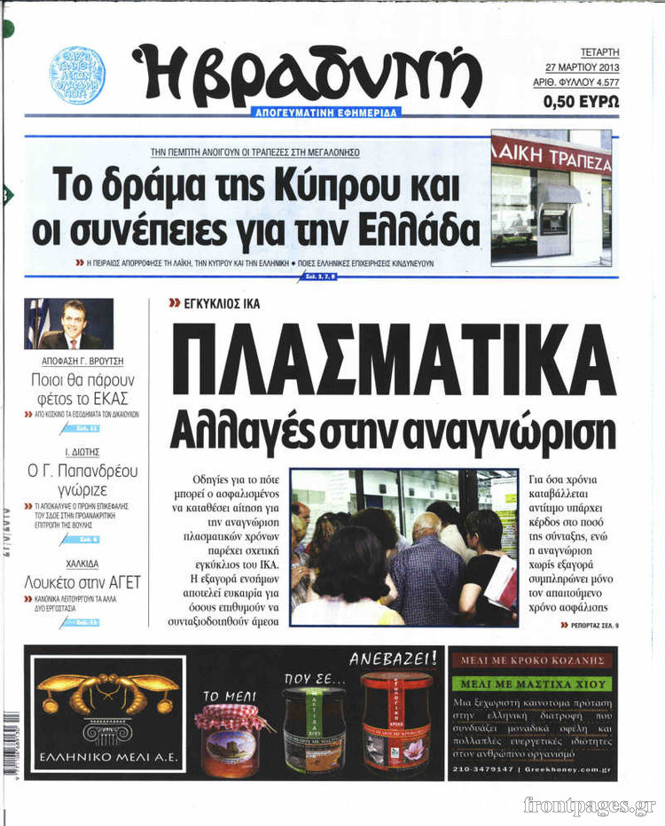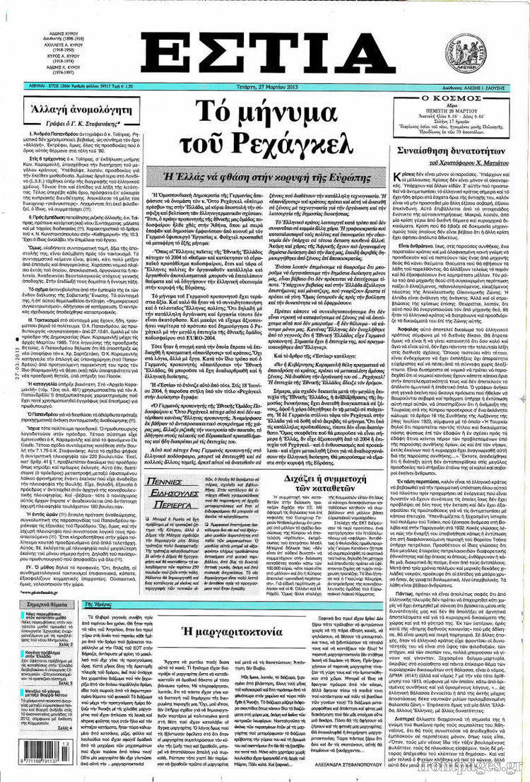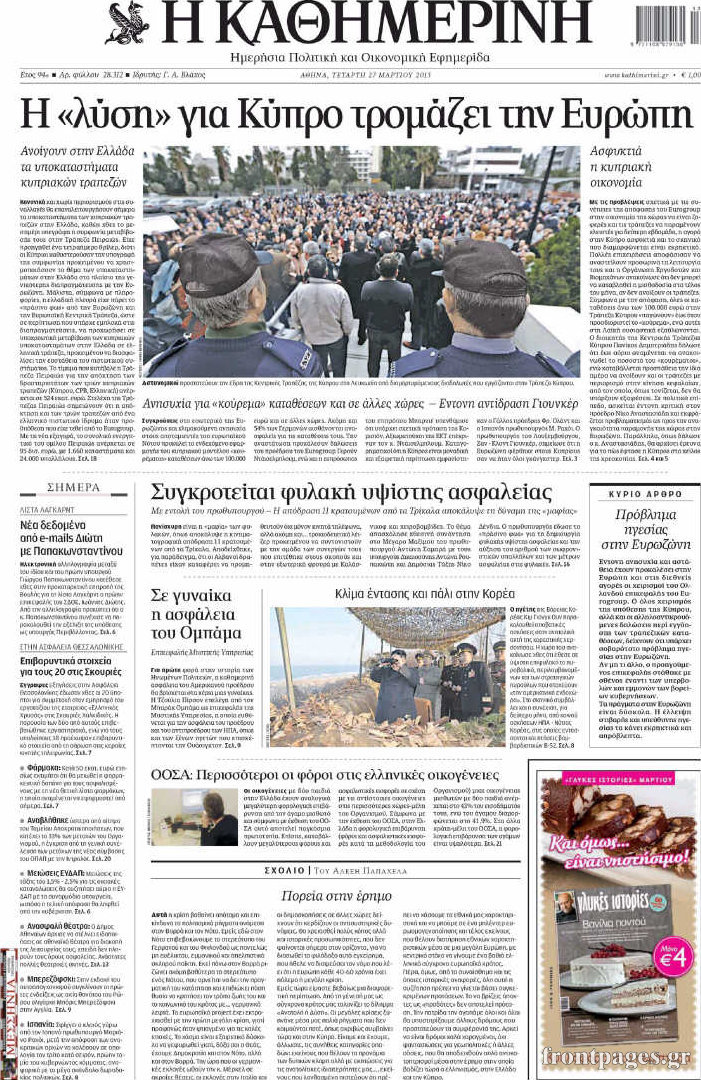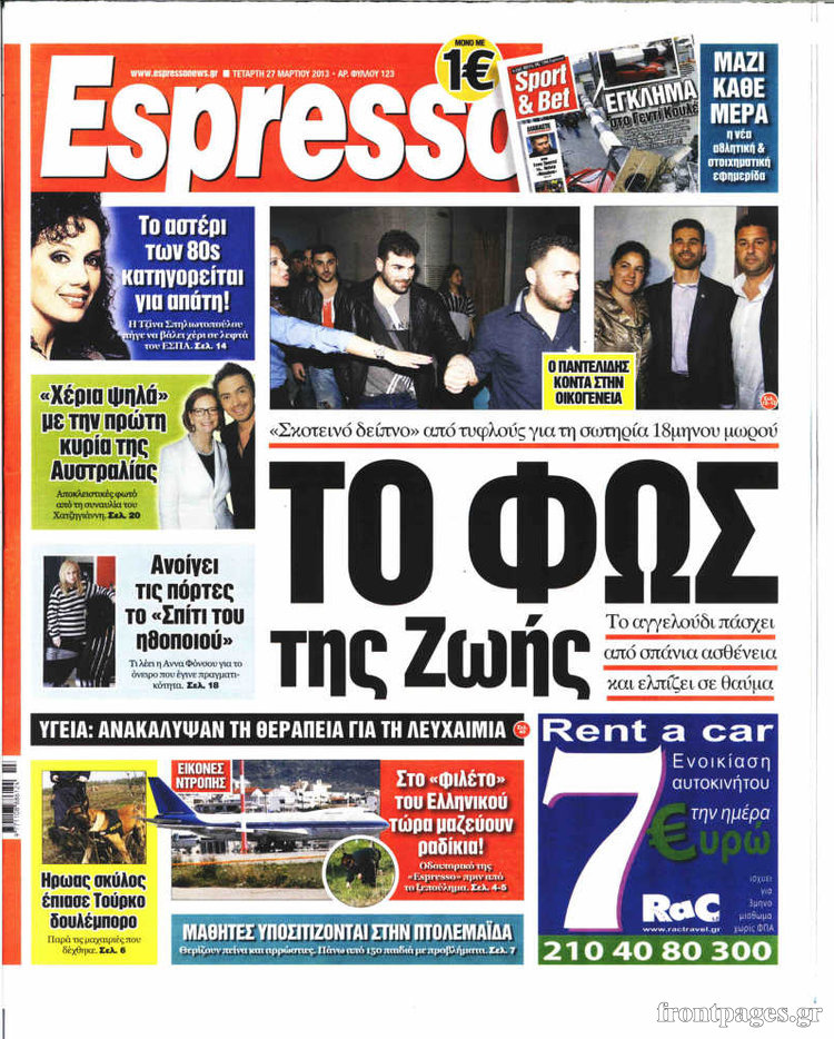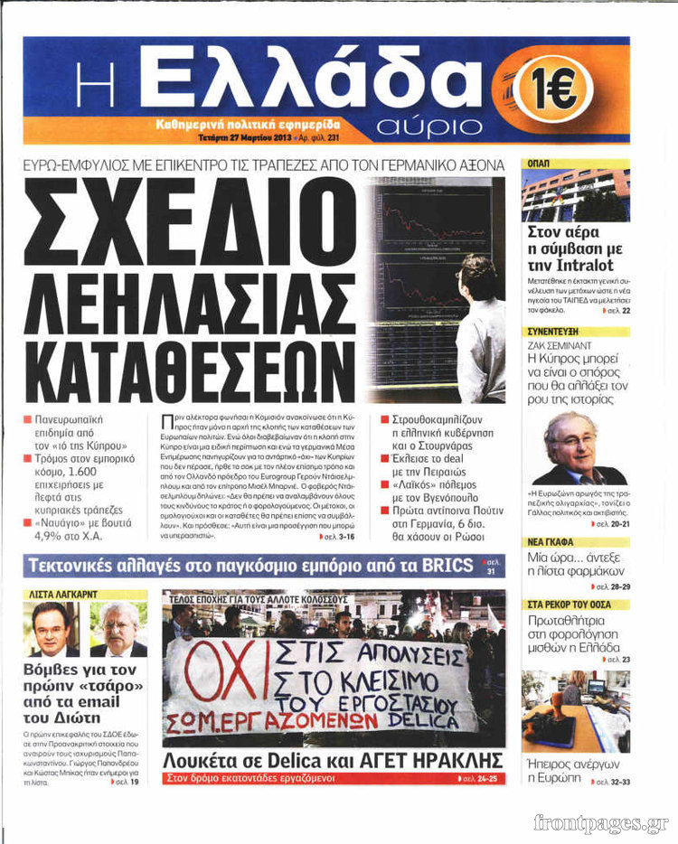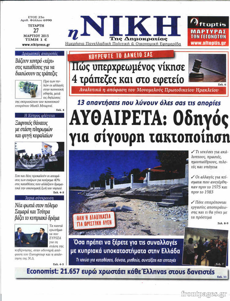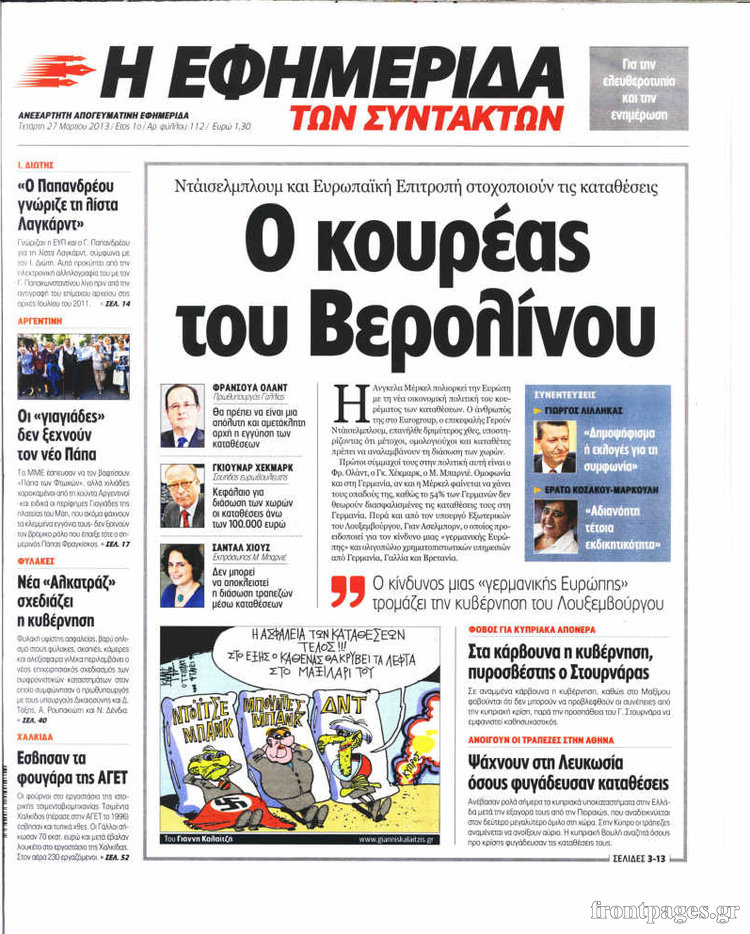 Οι πολιτικές εφημερίδες Enikos Newsroom 09:05, Τετάρτη 27 Μαρτίου 2013 Media Οι πολιτικές εφημερίδες ΕΦΗΜΕΡΙΔΕΣ ΠΟΛΙΤΙΚΕΣ ΕΦΗΜΕΡΙΔΕΣ ΠΡΩΤΟΣΕΛΙΔΑ Μοιράσου το: σχολίασε κι εσύ (0 σχόλια) Ακολουθήστε το enikos.gr στο Google News και μάθετε πρώτοι όλες τις ειδήσεις Δείτε όλες τις τελευταίες ειδήσεις από την Ελλάδα και τον Κόσμο στο enikos.gr Ειδήσεις Ροή Ειδήσεων 34 λεπτά πριν Τσιάρας προς αγρότες: Τα μπλόκα και τα πείσματα δεν ωφελούν – Οι λύσεις περνούν μέσα από τον διάλογο 1 ώρα πριν Αρχεία Έπσταϊν: Οι συγκλονιστικές φωτογραφίες – Ο Μάικλ Τζάκσον, ο Μικ Τζάγκερ και ο Κέβιν Σπέισι ανάμεσα στους διάσημους που απεικονίζονται 3 ώρες πριν Νέες ταυτότητες: Μεγάλη αναμονή για ραντεβού στην Αττική – Τέλος τα ταξίδια εκτός Ελλάδος από τον Αύγουστο για όσους δεν έχουν αλλάξει 2 ώρες πριν Ινδία: Επτά ελέφαντες σκοτώθηκαν κατά τη σύγκρουση επιβατικού τρένου με κοπάδι 3 ώρες πριν Συνελήφθη οδηγός μηχανής που έτρεχε με 161 χλμ στη Συγγρού – Τον έπιασε το ραντάρ της Τροχαίας 4 ώρες πριν Μία νέα «χρυσή» περίοδος αρχίζει για 3 ζώδια από σήμερα – «Μία αναπάντεχη ευκαιρία οδηγεί στην επιτυχία» 5 ώρες πριν Αγχώνεται για το χριστουγεννιάτικο δώρο που πήρε στην πλούσια σύντροφό του – «Φοβάμαι πως θα το βρει φθηνιάρικο, φοράει βραχιόλια Cartier» 2 ώρες πριν Διαιτολόγος αποκαλύπτει 9 πρωινές συνήθειες που «λιώνουν» το κοιλιακό λίπος – «Υποστηρίζουν την υγιεινή απώλεια βάρους» 3 ώρες πριν Οι 7 φράσεις που δεν λένε ποτέ οι συναισθηματικά έξυπνοι άνθρωποι κατά τη διάρκεια ενός καβγά 9 λεπτά πριν Κικίλιας: «Ολοκληρώθηκαν πληρωμές 22,16 εκ. ευρώ για το μεταφορικό ισοδύναμο» 17 λεπτά πριν Πάτρα: Πέθανε 46χρονος έπειτα από λιποθυμικό επεισόδιο στο σπίτι του 25 λεπτά πριν «Μεγάλη Χίμαιρα»: Πότε κάνει πρεμιέρα η σειρά 33 λεπτά πριν Καλλιθέα: Έφοδος του «ελληνικού FBI» σε δύο καταστήματα stripshow – 5 συλλήψεις – Βίντεο 34 λεπτά πριν Τσιάρας προς αγρότες: Τα μπλόκα και τα πείσματα δεν ωφελούν – Οι λύσεις περνούν μέσα από τον διάλογο ENIKOS NETWORK Γήρανση του εγκεφάλου: Νευροεπιστήμονες ανακάλυψαν τη 10λεπτη δραστηριότητα που μπορεί να τη σταματήσει Είστε μόνιμα απρόσεκτοι; 3 σημάδια που δείχνουν ότι μπορεί να είναι σύμπτωμα πάθησης Χειμερινές εκπτώσεις 2026: Πρεμιέρα στις 12 Ιανουαρίου – Πόσο θα διαρκέσουν και τι πρέπει να γνωρίζουν οι καταναλωτές Χρήστος Δήμας: Στα 2,5 εκατ. ευρώ την ημέρα το κόστος από το άνοιγμα των διοδίων από τους αγρότες – Θα αξιώσουν αποζημίωση ... Χαρτογραφώντας το «σημείο χωρίς επιστροφή»: Για πρώτη φορά αποκαλύπτεται με λεπτομέρεια το ακανθώδες όριο της ατμόσφαιρας τ... Η Google καταργεί τη λειτουργία «dark web report» – Πώς θα μπορούν οι χρήστες να διαγράφουν τα δεδομένα τους περισσότερα 12:53 , Σάββατο 20 Δεκεμβρίου 2025 Να μ’ αγαπάς: Το παρελθόν έρχεται στο φως – Καταιγιστικές εξελίξεις στα τελευταία επεισόδια του 2025 Ο Άγγελος αποκαλύπτεται, η Φωτεινή ανησυχεί για τον Λευτέρη και η Ζωή έρχεται αντιμέτωπη με το... 11:41 , Σάββατο 20 Δεκεμβρίου 2025 «Η αγάπη δεν χάνεται ποτέ»: Η μικρού μήκους ταινία κινουμένων σχεδίων που θέτει ερωτήματα για τη ζωή και τον θάνατο Ο θάνατος είναι ένα από τα πιο σκληρά θέματα που καλείται να διαχειριστεί κάποιος στη διάρκεια... 09:30 , Σάββατο 20 Δεκεμβρίου 2025 «Porto Leone: Στη γειτονιά με τα κόκκινα φανάρια» – Ο Χρόνης αποκαλύπτει στην Αλεξάνδρα το μυστικό για το παιδί της Λένας Η μεγάλη δραματική σειρά του Apha «Porto Leone: Στη γειτονιά με τα κόκκινα φανάρια» μας μεταφέ... 08:14 , Σάββατο 20 Δεκεμβρίου 2025 