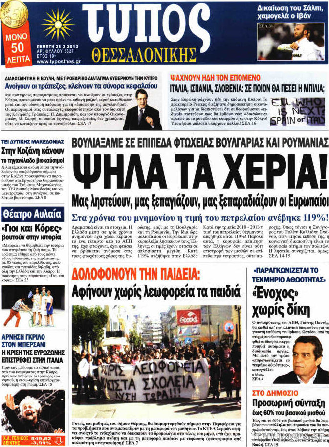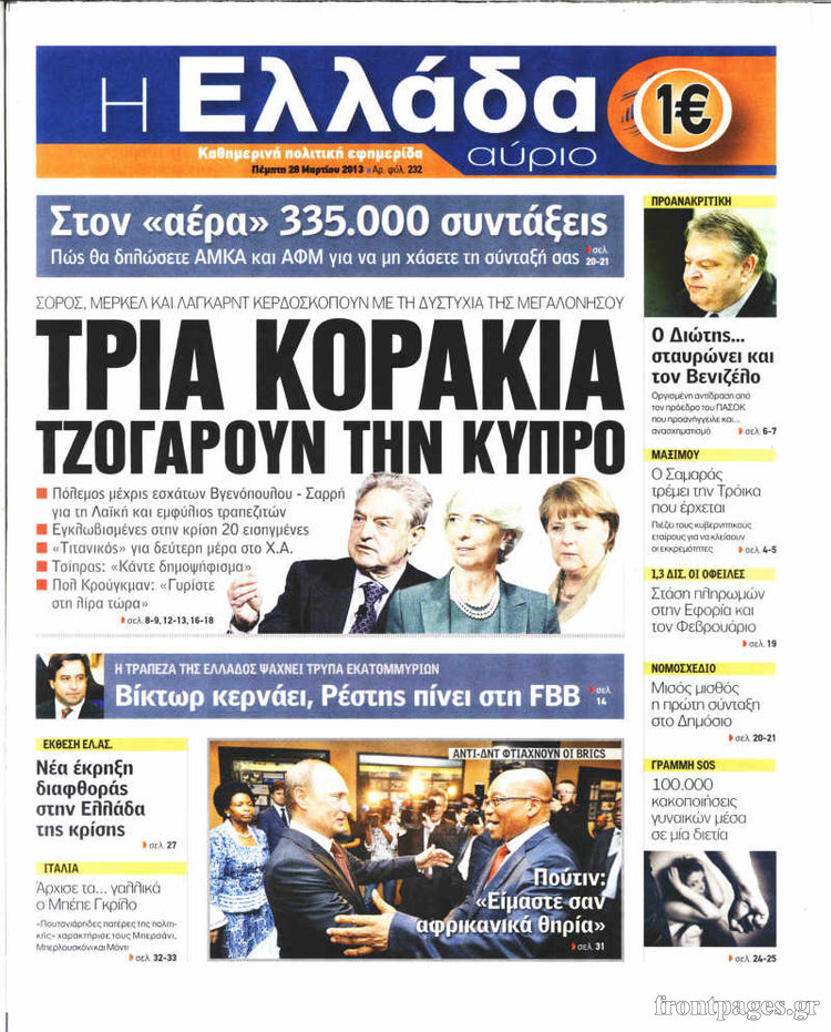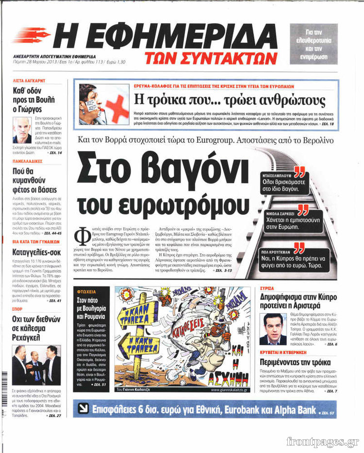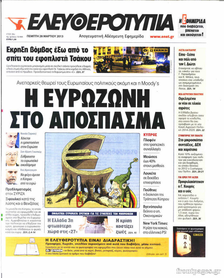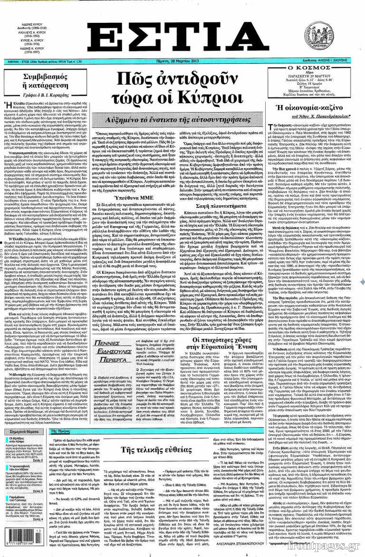 Οι πολιτικές εφημερίδες Enikos Newsroom 09:22, Πέμπτη 28 Μαρτίου 2013 Media Οι πολιτικές εφημερίδες ΕΦΗΜΕΡΙΔΕΣ ΠΟΛΙΤΙΚΕΣ ΕΦΗΜΕΡΙΔΕΣ ΠΡΩΤΟΣΕΛΙΔΑ Μοιράσου το: σχολίασε κι εσύ (0 σχόλια) Ακολουθήστε το enikos.gr στο Google News και μάθετε πρώτοι όλες τις ειδήσεις Δείτε όλες τις τελευταίες ειδήσεις από την Ελλάδα και τον Κόσμο στο enikos.gr Ειδήσεις Ροή Ειδήσεων 1 ώρα πριν Πώς δρούσε το κύκλωμα που διακινούσε ναρκωτικά σε σχολεία – Υπέβαλαν σε βασανιστήρια όσους δεν τηρούσαν τους «κανόνες πειθαρχίας» 2 ώρες πριν Αγρότες: Γιορτές στα μπλόκα με ανοιχτά διόδια – Δικογραφία στα Ιωάννινα για το σήκωμα των μπαρών 5 ώρες πριν Αρχεία Έπσταϊν: Οι συγκλονιστικές φωτογραφίες – Ο Μάικλ Τζάκσον, ο Μικ Τζάγκερ και ο Κέβιν Σπέισι ανάμεσα στους διάσημους που απεικονίζονται 24 λεπτά πριν NBC: Ο Νετανιάχου σχεδιάζει να ενημερώσει τον Τραμπ για πιθανά νέα πλήγματα εναντίον του Ιράν 34 λεπτά πριν Αττική: Εξαρθρώθηκε εγκληματική οργάνωση που έκλεβε οχήματα, τα παραποιούσε και τα μεταπωλούσε σε πολίτες – Πώς δρούσε το κύκλωμα 2 ώρες πριν Η τύχη χαμογελά σε 3 ζώδια έως τις 28 Δεκεμβρίου – «Προσέξτε τις επιλογές σας και η επιμονή σας θα ανταμειφθεί» 6 ώρες πριν Διαιτολόγος αποκαλύπτει 9 πρωινές συνήθειες που «λιώνουν» το κοιλιακό λίπος – «Υποστηρίζουν την υγιεινή απώλεια βάρους» 3 ώρες πριν Μία ανεκμετάλλευτη πηγή θα μπορούσε να προσφέρει ανεξάντλητη ενέργεια – Οι επιστήμονες ίσως γνωρίζουν πώς να την ξεκλειδώσουν 9 ώρες πριν Enerwave: Το νέο «ρεύμα» στη λιανική ενέργειας που αλλάζει την εμπειρία του καταναλωτή 5 λεπτά πριν Νιούκαστλ – Τσέλσι 2-2: Αλύγιστοι οι Λονδρέζοι 15 λεπτά πριν Μικαέλα Μπέντχαους: Ο πρώτος άνθρωπος σε αναπηρικό αμαξίδιο που ταξίδεψε στο διάστημα – ΒΙΝΤΕΟ 24 λεπτά πριν NBC: Ο Νετανιάχου σχεδιάζει να ενημερώσει τον Τραμπ για πιθανά νέα πλήγματα εναντίον του Ιράν 34 λεπτά πριν Αττική: Εξαρθρώθηκε εγκληματική οργάνωση που έκλεβε οχήματα, τα παραποιούσε και τα μεταπωλούσε σε πολίτες – Πώς δρούσε το κύκλωμα 42 λεπτά πριν Κωνσταντίνος Αργυρός: «Δεν θέλω να ασχοληθώ με την πολιτική σε αυτή τη φάση – Μου έχουν γίνει προτάσεις» ENIKOS NETWORK Γιατί πρέπει να ζητάμε χάρες; Ποιο είναι το φαινόμενο Ben Franklin που κάνει τους άλλους να μας συμπαθούν Η αποχή από την αναπαραγωγή παρατείνει τη ζωή στα ζώα, σύμφωνα με μελέτη – Τι ισχύει για τους ανθρώπους; Στα ύψη ο χρυσός – Νέο ρεκόρ στην τιμή της λίρας, πόσο πωλείται Τέλη κυκλοφορίας 2026: Προσοχή στην προθεσμία εξόφλησής τους – Πώς διαμορφώνονται τα πρόστιμα σε περίπτωση καθυστέρησης Χαρτογραφώντας το «σημείο χωρίς επιστροφή»: Για πρώτη φορά αποκαλύπτεται με λεπτομέρεια το ακανθώδες όριο της ατμόσφαιρας τ... Η Google καταργεί τη λειτουργία «dark web report» – Πώς θα μπορούν οι χρήστες να διαγράφουν τα δεδομένα τους περισσότερα 14:04 , Σάββατο 20 Δεκεμβρίου 2025 Η Realnews αυτής της Κυριακής (21/12/2025) Με τίτλο: «Ασπίδα προστασίας για την Ελλάδα» κυκλοφορεί, αυτήν την Κυριακή, η Realnews. Σημαντ... 12:53 , Σάββατο 20 Δεκεμβρίου 2025 Να μ’ αγαπάς: Το παρελθόν έρχεται στο φως – Καταιγιστικές εξελίξεις στα τελευταία επεισόδια του 2025 Ο Άγγελος αποκαλύπτεται, η Φωτεινή ανησυχεί για τον Λευτέρη και η Ζωή έρχεται αντιμέτωπη με το... 11:41 , Σάββατο 20 Δεκεμβρίου 2025 «Η αγάπη δεν χάνεται ποτέ»: Η μικρού μήκους ταινία κινουμένων σχεδίων που θέτει ερωτήματα για τη ζωή και τον θάνατο Ο θάνατος είναι ένα από τα πιο σκληρά θέματα που καλείται να διαχειριστεί κάποιος στη διάρκεια... 09:30 , Σάββατο 20 Δεκεμβρίο