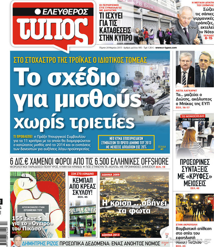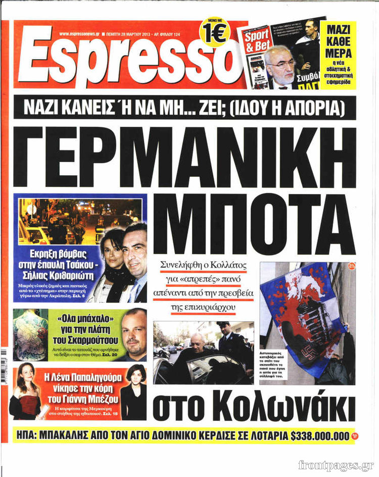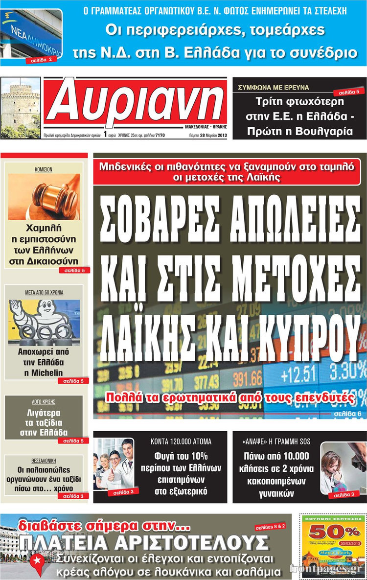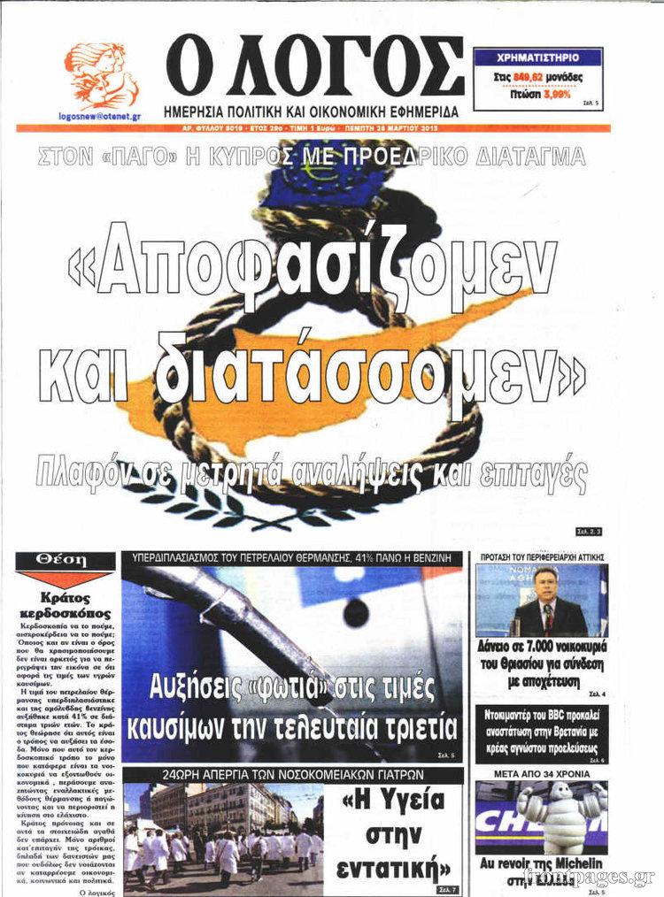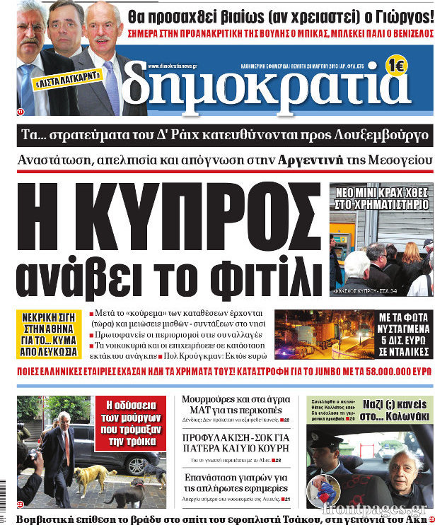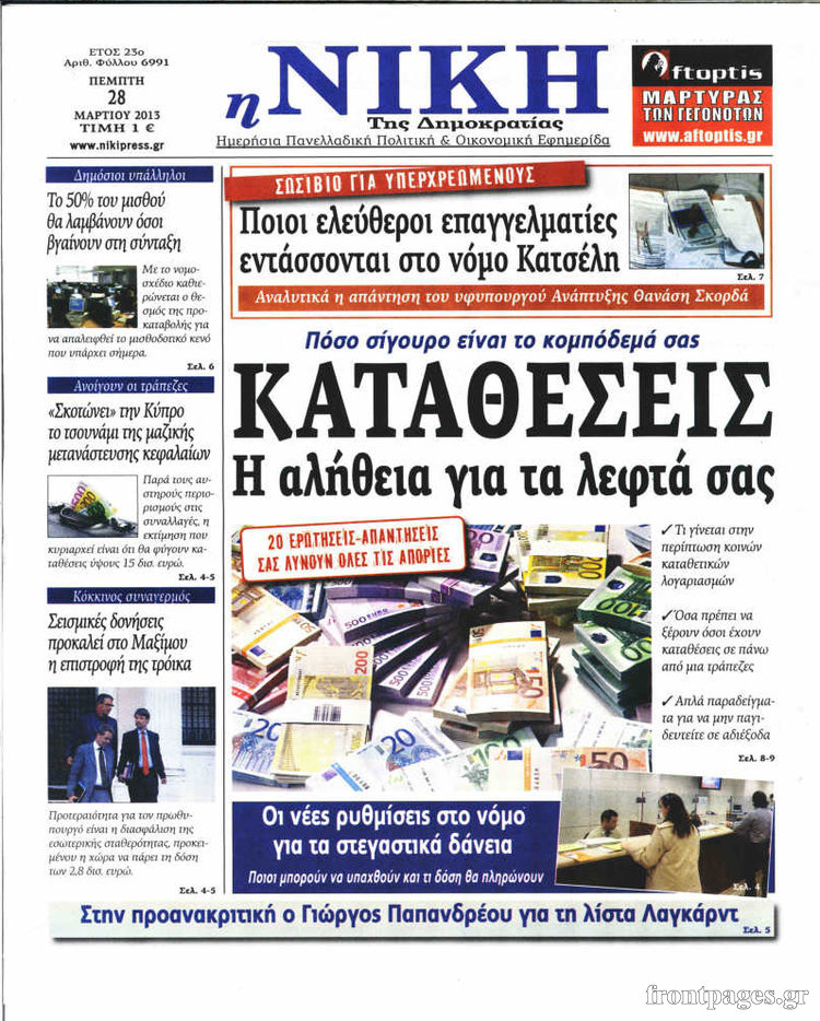 Οι πολιτικές εφημερίδες Enikos Newsroom 09:22, Πέμπτη 28 Μαρτίου 2013 Media Οι πολιτικές εφημερίδες ΕΦΗΜΕΡΙΔΕΣ ΠΟΛΙΤΙΚΕΣ ΕΦΗΜΕΡΙΔΕΣ ΠΡΩΤΟΣΕΛΙΔΑ Μοιράσου το: σχολίασε κι εσύ (0 σχόλια) Ακολουθήστε το enikos.gr στο Google News και μάθετε πρώτοι όλες τις ειδήσεις Δείτε όλες τις τελευταίες ειδήσεις από την Ελλάδα και τον Κόσμο στο enikos.gr Ειδήσεις Ροή Ειδήσεων 1 ώρα πριν Πώς δρούσε το κύκλωμα που διακινούσε ναρκωτικά σε σχολεία – Υπέβαλαν σε βασανιστήρια όσους δεν τηρούσαν τους «κανόνες πειθαρχίας» 2 ώρες πριν Αγρότες: Γιορτές στα μπλόκα με ανοιχτά διόδια – Δικογραφία στα Ιωάννινα για το σήκωμα των μπαρών 5 ώρες πριν Αρχεία Έπσταϊν: Οι συγκλονιστικές φωτογραφίες – Ο Μάικλ Τζάκσον, ο Μικ Τζάγκερ και ο Κέβιν Σπέισι ανάμεσα στους διάσημους που απεικονίζονται 24 λεπτά πριν NBC: Ο Νετανιάχου σχεδιάζει να ενημερώσει τον Τραμπ για πιθανά νέα πλήγματα εναντίον του Ιράν 34 λεπτά πριν Αττική: Εξαρθρώθηκε εγκληματική οργάνωση που έκλεβε οχήματα, τα παραποιούσε και τα μεταπωλούσε σε πολίτες – Πώς δρούσε το κύκλωμα 2 ώρες πριν Η τύχη χαμογελά σε 3 ζώδια έως τις 28 Δεκεμβρίου – «Προσέξτε τις επιλογές σας και η επιμονή σας θα ανταμειφθεί» 6 ώρες πριν Διαιτολόγος αποκαλύπτει 9 πρωινές συνήθειες που «λιώνουν» το κοιλιακό λίπος – «Υποστηρίζουν την υγιεινή απώλεια βάρους» 3 ώρες πριν Μία ανεκμετάλλευτη πηγή θα μπορούσε να προσφέρει ανεξάντλητη ενέργεια – Οι επιστήμονες ίσως γνωρίζουν πώς να την ξεκλειδώσουν 9 ώρες πριν Enerwave: Το νέο «ρεύμα» στη λιανική ενέργειας που αλλάζει την εμπειρία του καταναλωτή 5 λεπτά πριν Νιούκαστλ – Τσέλσι 2-2: Αλύγιστοι οι Λονδρέζοι 15 λεπτά πριν Μικαέλα Μπέντχαους: Ο πρώτος άνθρωπος σε αναπηρικό αμαξίδιο που ταξίδεψε στο διάστημα – ΒΙΝΤΕΟ 24 λεπτά πριν NBC: Ο Νετανιάχου σχεδιάζει να ενημερώσει τον Τραμπ για πιθανά νέα πλήγματα εναντίον του Ιράν 34 λεπτά πριν Αττική: Εξαρθρώθηκε εγκληματική οργάνωση που έκλεβε οχήματα, τα παραποιούσε και τα μεταπωλούσε σε πολίτες – Πώς δρούσε το κύκλωμα 42 λεπτά πριν Κωνσταντίνος Αργυρός: «Δεν θέλω να ασχοληθώ με την πολιτική σε αυτή τη φάση – Μου έχουν γίνει προτάσεις» ENIKOS NETWORK Γιατί πρέπει να ζητάμε χάρες; Ποιο είναι το φαινόμενο Ben Franklin που κάνει τους άλλους να μας συμπαθούν Η αποχή από την αναπαραγωγή παρατείνει τη ζωή στα ζώα, σύμφωνα με μελέτη – Τι ισχύει για τους ανθρώπους; Στα ύψη ο χρυσός – Νέο ρεκόρ στην τιμή της λίρας, πόσο πωλείται Τέλη κυκλοφορίας 2026: Προσοχή στην προθεσμία εξόφλησής τους – Πώς διαμορφώνονται τα πρόστιμα σε περίπτωση καθυστέρησης Χαρτογραφώντας το «σημείο χωρίς επιστροφή»: Για πρώτη φορά αποκαλύπτεται με λεπτομέρεια το ακανθώδες όριο της ατμόσφαιρας τ... Η Google καταργεί τη λειτουργία «dark web report» – Πώς θα μπορούν οι χρήστες να διαγράφουν τα δεδομένα τους περισσότερα 14:04 , Σάββατο 20 Δεκεμβρίου 2025 Η Realnews αυτής της Κυριακής (21/12/2025) Με τίτλο: «Ασπίδα προστασίας για την Ελλάδα» κυκλοφορεί, αυτήν την Κυριακή, η Realnews. Σημαντ... 12:53 , Σάββατο 20 Δεκεμβρίου 2025 Να μ’ αγαπάς: Το παρελθόν έρχεται στο φως – Καταιγιστικές εξελίξεις στα τελευταία επεισόδια του 2025 Ο Άγγελος αποκαλύπτεται, η Φωτεινή ανησυχεί για τον Λευτέρη και η Ζωή έρχεται αντιμέτωπη με το... 11:41 , Σάββατο 20 Δεκεμβρίου 2025 «Η αγάπη δεν χάνεται ποτέ»: Η μικρού μήκους ταινία κινουμένων σχεδίων που θέτει ερωτήματα για τη ζωή και τον θάνατο Ο θάνατος είναι ένα από τα πιο σκληρά θέματα που καλείται να διαχειριστεί κάποιος στη διάρκεια... 09:30 , Σάββατο 20 Δεκεμβρίο