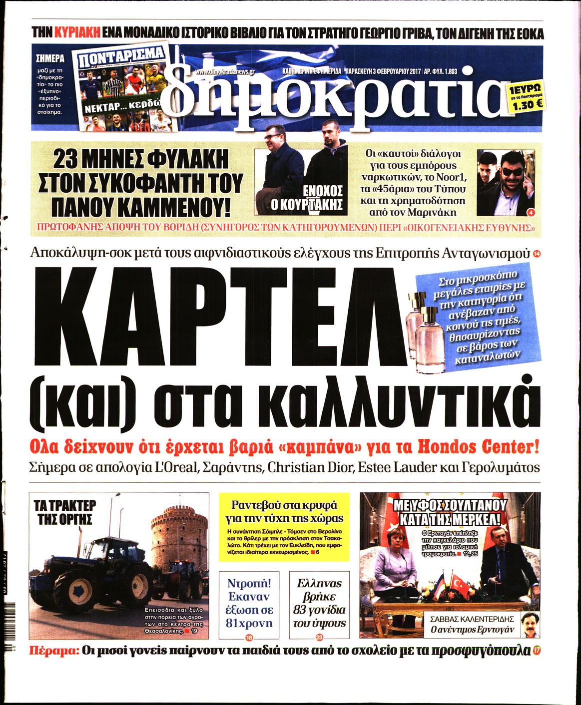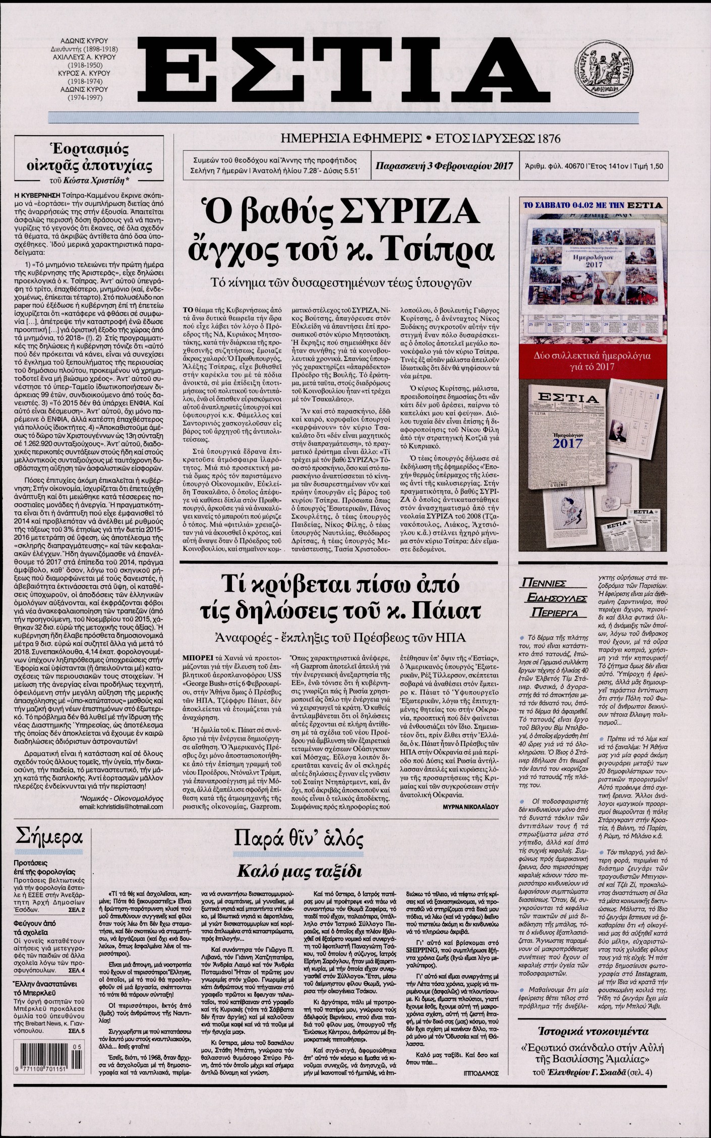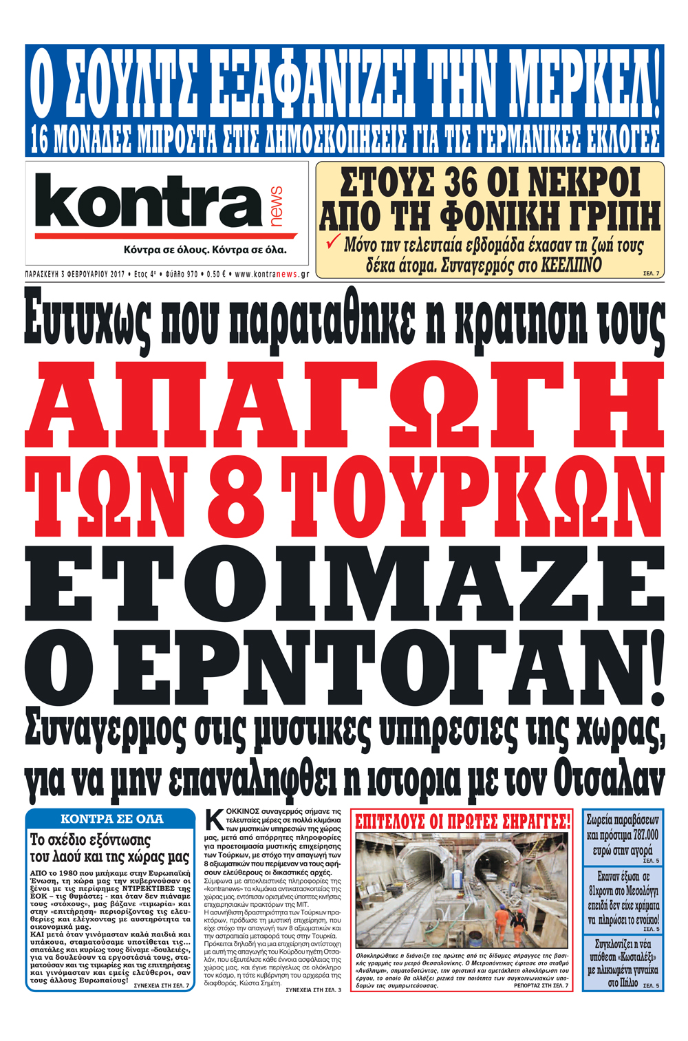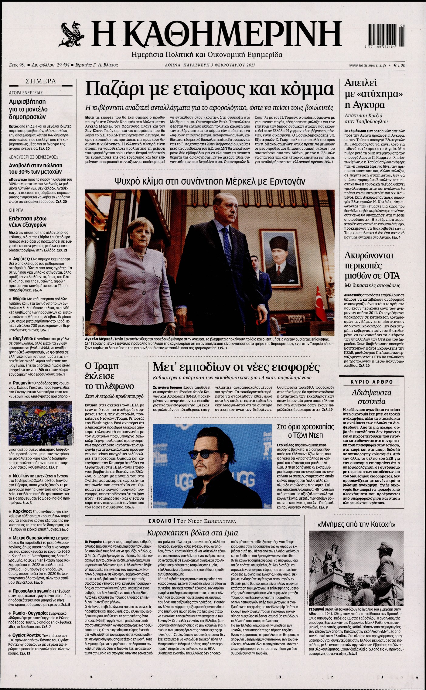 Οι πολιτικές εφημερίδες 3/2/2017 Enikos Newsroom 00:53, Παρασκευή 03 Φεβρουαρίου 2017 Media Διαβάστε τα σημερινά πρωτοσέλιδα των πολιτικών εφημερίδων: ΠΟΛΙΤΙΚΕΣ ΕΦΗΜΕΡΙΔΕΣ ΠΡΩΤΟΣΕΛΙΔΑ Μοιράσου το: σχολίασε κι εσύ (0 σχόλια) Ακολουθήστε το enikos.gr στο Google News και μάθετε πρώτοι όλες τις ειδήσεις Δείτε όλες τις τελευταίες ειδήσεις από την Ελλάδα και τον Κόσμο στο enikos.gr Ειδήσεις Ροή Ειδήσεων 3 ώρες πριν Πώς δρούσε το κύκλωμα που διακινούσε ναρκωτικά σε σχολεία – Υπέβαλαν σε βασανιστήρια όσους δεν τηρούσαν τους «κανόνες πειθαρχίας» 4 ώρες πριν Αγρότες: Γιορτές στα μπλόκα με ανοιχτά διόδια – Δικογραφία στα Ιωάννινα για το σήκωμα των μπαρών 3 ώρες πριν Ζελένσκι: Οι Αμερικανοί πρότειναν συνάντηση Ουκρανίας, ΗΠΑ, Ρωσίας στο Μαϊάμι 2 ώρες πριν Τραμπ: Πώς περνάει τις γιορτές των Χριστουγέννων – Τα δώρα που κάνει στα εγγόνια του 2 ώρες πριν Μικαέλα Μπέντχαους: Ο πρώτος άνθρωπος σε αναπηρικό αμαξίδιο που ταξίδεψε στο διάστημα – ΒΙΝΤΕΟ 4 ώρες πριν Η τύχη χαμογελά σε 3 ζώδια έως τις 28 Δεκεμβρίου – «Προσέξτε τις επιλογές σας και η επιμονή σας θα ανταμειφθεί» 5 ώρες πριν Μία ανεκμετάλλευτη πηγή θα μπορούσε να προσφέρει ανεξάντλητη ενέργεια – Οι επιστήμονες ίσως γνωρίζουν πώς να την ξεκλειδώσουν 1 ώρα πριν Μήπως οι γιορτές σας δεν είναι τόσο τέλειες; 7 χριστουγεννιάτικες συνήθειες που μαρτυρούν ότι μια οικογένεια είναι δυσλειτουργική 11 ώρες πριν Enerwave: Το νέο «ρεύμα» στη λιανική ενέργειας που αλλάζει την εμπειρία του καταναλωτή 5 λεπτά πριν Πώς να απαλλαγείτε από τη μυρωδιά του τηγανητού φαγητού: Το μυστικό βρίσκεται στην κουζίνα σας 10 λεπτά πριν Βλαχοδήμος: «Νιώθω καλά που είμαι σημαντικός για τη Σεβίλλη» – Τι είπε για τη Ρεάλ Μαδρίτης και τον Μπαπέ 19 λεπτά πριν Πρίγκιπας Ουίλιαμ: Μαγείρεψε παρέα με τον πρίγκιπα Τζορτζ για τους αστέγους – ΦΩΤΟ και ΒΙΝΤΕΟ 28 λεπτά πριν Επιχείρηση της Τροχαίας κατά της παράνομης στάθμευσης στο Νέο Ψυχικό – Τέσσερις συλλήψεις 37 λεπτά πριν Κυριάκος Μητσοτάκης: Στην Ιερουσαλήμ την Τρίτη ο Πρωθυπουργός για την τριμερή Ελλάδας, Κύπρου, Ισραήλ – Θα συναντηθεί και με τον Αμπάς ENIKOS NETWORK Οι γυναίκες αποκαλύπτουν το πιο ελκυστικό πράγμα που μπορεί να κάνει ένας άνδρας Ομορφιά και αντιγήρανση: Ειδικοί μιλούν για συσκευές περιποίησης του δέρματος Θεοδωρικάκος: Εθνική στρατηγική για τους ημιαγωγούς – Πρώτο βήμα η χρηματοδότηση του πρώτου Κέντρου Ικανοτήτων, με 3,63 εκα... Επίδομα θέρμανσης: Μπαίνει η πρώτη δόση την Τρίτη – Οι επόμενες πληρωμές Χαρτογραφώντας το «σημείο χωρίς επιστροφή»: Για πρώτη φορά αποκαλύπτεται με λεπτομέρεια το ακανθώδες όριο της ατμόσφαιρας τ... Η Google καταργεί τη λειτουργία «dark web report» – Πώς θα μπορούν οι χρήστες να διαγράφουν τα δεδομένα τους περισσότερα 18:19 , Σάββατο 20 Δεκεμβρίου 2025 HOTΕΛ ΕΛVIRA: Η Ελβίρα μαθαίνει πως ο Χάρι μένει κρυφά στο ξενοδοχείο του Παντελή Συνεχίζονται οι εκλογές για πρόεδρο, στο νέο επεισόδιο της κωμικής σειράς του MEGA, HOTΕΛ ΕΛVI... 14:04 , Σάββατο 20 Δεκεμβρίου 2025 Η Realnews αυτής της Κυριακής (21/12/2025) Με τίτλο: «Ασπίδα προστασίας για την Ελλάδα» κυκλοφορεί, αυτήν την Κυριακή, η Realnews. Σημαντ... 12:53 , Σάββατο 20 Δεκεμβρίου 2025 Να μ’ αγαπάς: Το παρελθόν έρχεται στο φως – Καταιγιστικές εξελίξεις στα τελευταία επεισόδια του 2025 Ο Άγγελος αποκαλύπτεται, η Φωτεινή ανησυχεί για τον Λευτέρη και η Ζωή έρχεται αντιμέτωπη με το... 11:41 , Σάββατο 20 Δεκεμβρίου 2025 «Η αγάπη δεν χάνεται ποτέ»: Η μικρού μήκους ταινία κινουμένων σχεδίων που θέτει 