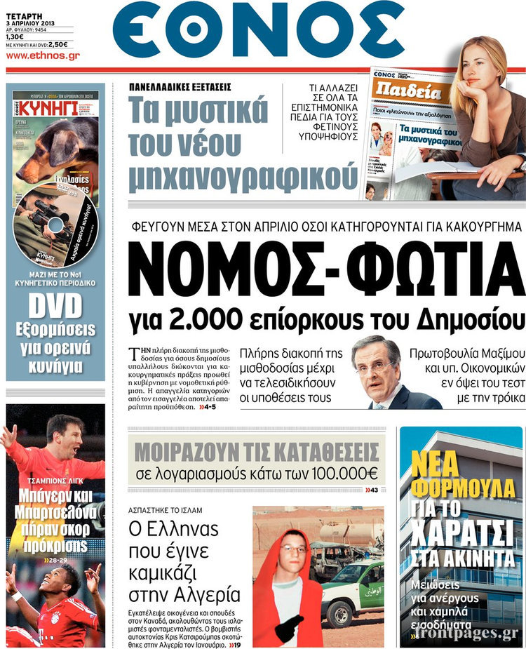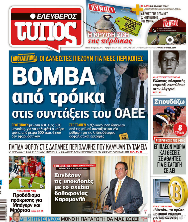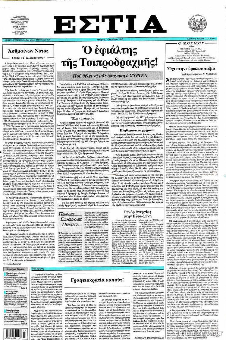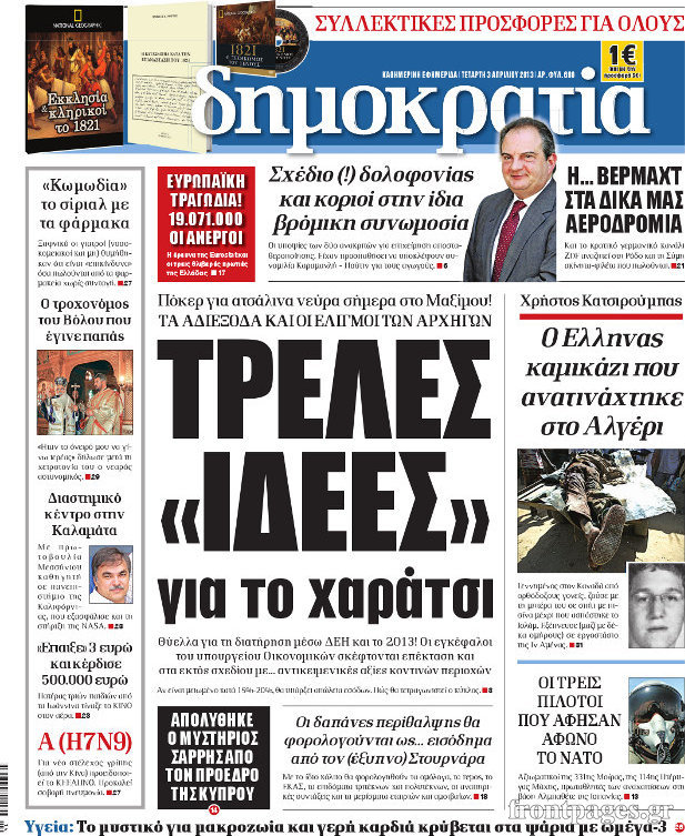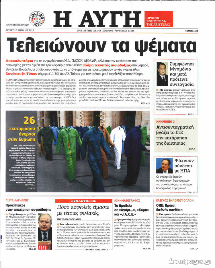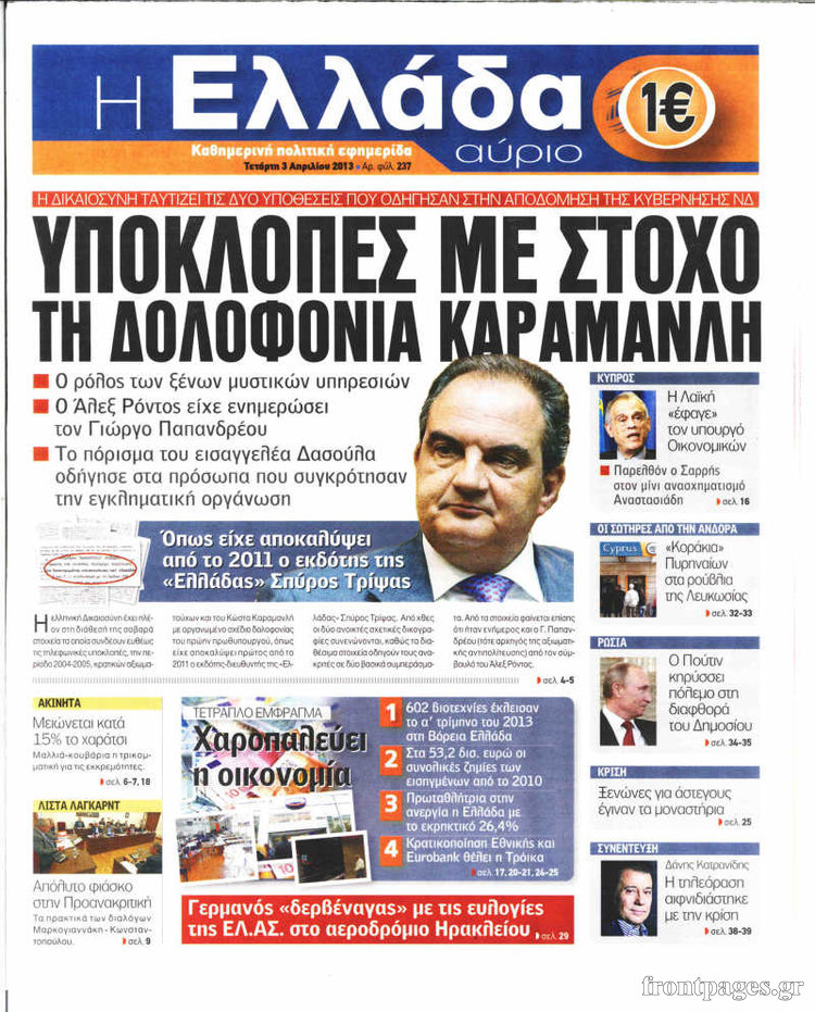 Οι πολιτικές εφημερίδες Enikos Newsroom 08:45, Τετάρτη 03 Απριλίου 2013 Media Οι πολιτικές εφημερίδες ΕΦΗΜΕΡΙΔΕΣ ΠΟΛΙΤΙΚΕΣ ΕΦΗΜΕΡΙΔΕΣ ΠΡΩΤΟΣΕΛΙΔΑ Μοιράσου το: σχολίασε κι εσύ (0 σχόλια) Ακολουθήστε το enikos.gr στο Google News και μάθετε πρώτοι όλες τις ειδήσεις Δείτε όλες τις τελευταίες ειδήσεις από την Ελλάδα και τον Κόσμο στο enikos.gr Ειδήσεις Ροή Ειδήσεων 4 ώρες πριν Διάλογοι-σοκ από το κύκλωμα που διακινούσε ναρκωτικά σε σχολεία – «Αν δεν είσαι εκεί σε 5 λεπτά, θα φας πολύ ξύλο μπρο» 5 ώρες πριν Αγρότες από το μπλόκο Νίκαιας κλείνουν τη Δευτέρα τις σήραγγες των Τεμπών για τα φορτηγά – Τι αποφάσισαν 2 ώρες πριν Δήμος Αθηναίων: Ξεκινά τη Δευτέρα η επιστροφή πινακίδων οχημάτων από τη Δημοτική Αστυνομία 3 ώρες πριν «Πλημμύρισε» με κόσμο η Ερμού ενόψει των Χριστουγέννων – Ουρές στα καταστήματα – ΦΩΤΟ και ΒΙΝΤΕΟ 2 ώρες πριν Κόντρα Πλεύρη-Δούκα για το rave πάρτι στα σκαλιά εκκλησίας στο Γαλάτσι: «Απλά ντροπή» – «Υποκρισία και σκοταδισμός» 3 ώρες πριν Αν ανήκετε σε ένα από αυτά τα 3 ζώδια, το 2026 θα είναι η χρονιά σας – «Η ζωή σας βελτιώνεται σε όλους τους τομείς» 7 ώρες πριν Οι άνθρωποι που στρώνουν το κρεβάτι τους κάθε πρωί, διαθέτουν αυτές τις 8 κρυφές δυνάμεις 4 ώρες πριν Ένα πλάσμα στα βάθη της θάλασσας απορροφά άνθρακα από την ατμόσφαιρα – «Δεν είχαμε ιδέα για την ύπαρξή του» 1 ημέρα πριν Enerwave: Το νέο «ρεύμα» στη λιανική ενέργειας που αλλάζει την εμπειρία του καταναλωτή 13 λεπτά πριν Αγρότες: Σήκωσαν τις μπάρες στα διόδια των Αφιδνών – ΦΩΤΟ και ΒΙΝΤΕΟ 20 λεπτά πριν Είσοδος σπιτιού: Πώς να οργανώσετε το χώρο πριν έρθουν οι καλεσμένοι σας – Η ρουτίνα 3 βημάτων 28 λεπτά πριν Σταματίνα Τσιμτσιλή: «Ο μπαμπάς μου “έφυγε” σε τροχαίο, έπεσε κάποιος πάνω του και υπέκυψε στα τραύματά του» 35 λεπτά πριν Λαμία: Οι αγρότες άνοιξαν τις μπάρες στα διόδια Τραγάνας επιτρέποντας την ελεύθερη διέλευση των οχημάτων – 46 λεπτά πριν Παναθηναϊκός: Πρόστιμο 26.500 ευρώ από την UEFA για το ματς με την Στουρμ Γκρατς ENIKOS NETWORK Οι γυναίκες έχουν βρει μια νέα απόλαυση στην κρεβατοκάμαρα που οι περισσότεροι άνδρες αγνοούν Christmas glow: 5 χρυσές συμβουλές για επιδερμίδα που λάμπει από ομορφιά τα Χριστούγεννα Νέα έρευνα: Οκτώ στους δέκα Έλληνες αγοράζουν από online πλατφόρμες χωρών εκτός ΕΕ – Temu και Shein οι κορυφαίες επιλογές Αττική: Πού μπήκαν οι πρώτες «έξυπνες κάμερες» – Πώς θα φτάνει η κλήση στους παραβάτες Χαρτογραφώντας το «σημείο χωρίς επιστροφή»: Για πρώτη φορά αποκαλύπτεται με λεπτομέρεια το ακανθώδες όριο της ατμόσφαιρας τ... Η Google καταργεί τη λειτουργία «dark web report» – Πώς θα μπορούν οι χρήστες να διαγράφουν τα δεδομένα τους περισσότερα 17:18 , Κυριακή 21 Δεκεμβρίου 2025 «Η Μεγάλη Χίμαιρα»: Μάγεψε το κοινό κατά την avant-première της προβολής της Την Πρωτοχρονιά (Πέμπτη 1η Ιανουαρίου 2026) στο ERTFLIX θα γίνει η πρεμιέρα της πολυαναμενόμεν... 15:08 , Κυριακή 21 Δεκεμβρίου 2025 Μια νύχτα μόνο: Η Αρετή και ο Οδυσσέας έρχονται και πάλι κοντά Το νέο επεισόδιο της δραματικής σειράς του MEGA «Μια νύχτα μόνο», θα προβληθεί απόψε Κυριακή 2... 14:24 , Κυριακή 21 Δεκεμβρίου 2025 IQ 160: Ο φάκελος με το τεστ πατρότητας ανοίγει, απόψε στις 21:00 στο Star Ανατρεπτικό το νέο διπλό επεισόδιο της σειράς “IQ 160” στις 21:00 στο Star. Ο Τηλέ... 09:43 , Κυριακή 21 Δεκεμβρίου 2025 Το λάθος στην ταινία Die Hard που άφησε άναυδους τους θαυμαστές του Μπρους Γουίλις Ένας φανατικός των ταινιών άφησε άναυδους τους θαυμαστές του Die Hard, επισημαίνοντας τρία βασ... ΤΕΛΕΥΤΑΙΕΣ ΕΙΔΗΣΕΙΣ 13 λεπτά πριν Αγρότ