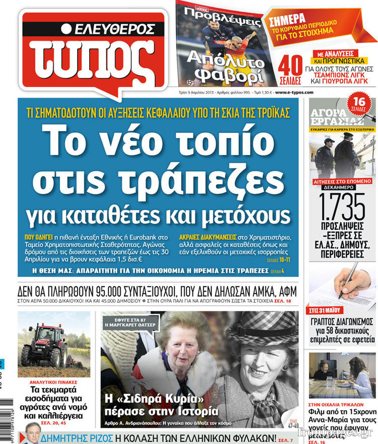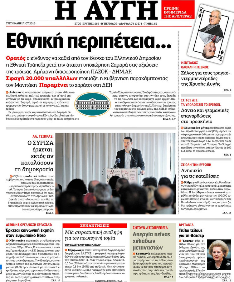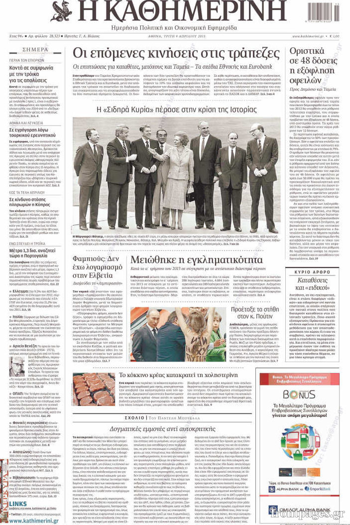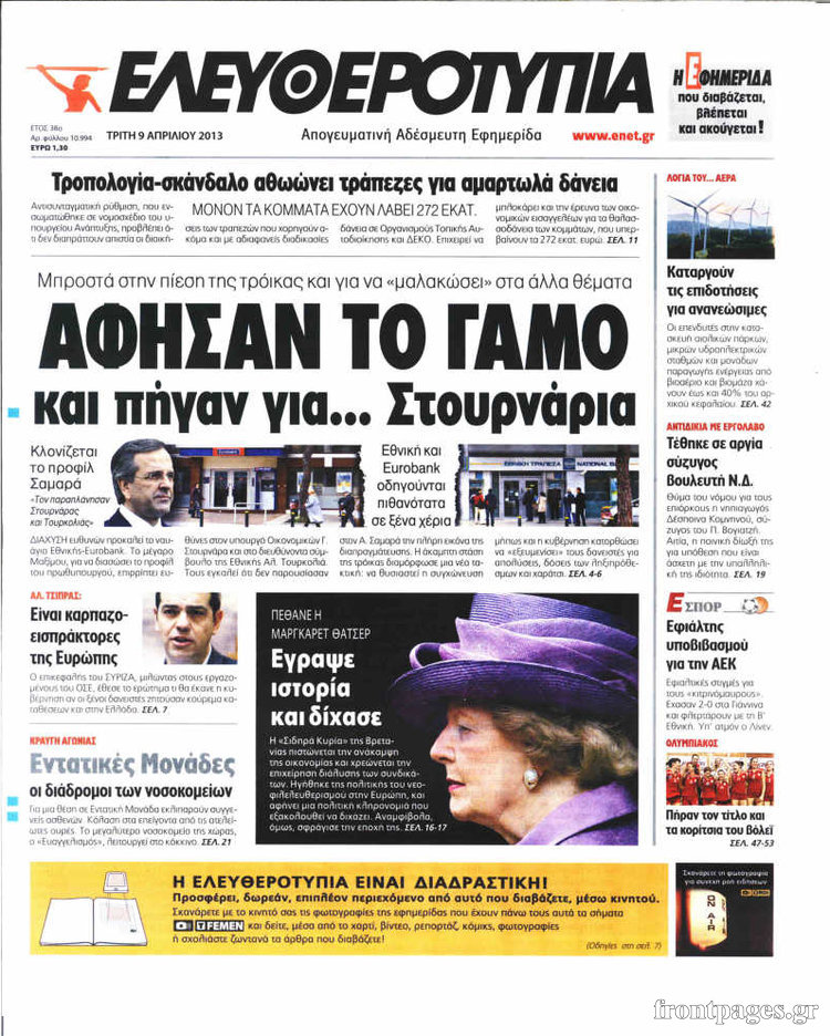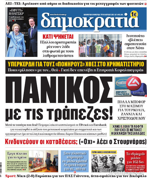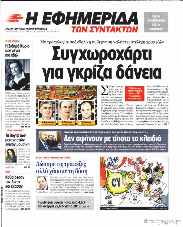 Οι πολιτικές εφημερίδες Enikos Newsroom 09:37, Τρίτη 09 Απριλίου 2013 Media Οι πολιτικές εφημερίδες Τα πρωτοσέλιδα των πολιτικών εφημερίδων. ΕΦΗΜΕΡΙΔΕΣ ΠΟΛΙΤΙΚΕΣ ΕΦΗΜΕΡΙΔΕΣ ΠΡΩΤΟΣΕΛΙΔΑ Μοιράσου το: σχολίασε κι εσύ (0 σχόλια) Ακολουθήστε το enikos.gr στο Google News και μάθετε πρώτοι όλες τις ειδήσεις Δείτε όλες τις τελευταίες ειδήσεις από την Ελλάδα και τον Κόσμο στο enikos.gr Ειδήσεις Ροή Ειδήσεων 3 ώρες πριν Άνοιξαν οι σήραγγες των Τεμπών – Οι επόμενες κινήσεις των αγροτών πριν από τα Χριστούγεννα 5 λεπτά πριν Προκλήσεις: Έστειλαν πάλι οπλισμένα F-16 στο Αιγαίο οι Τούρκοι – Παραβιάσεις και αερομαχίες 3 ώρες πριν Κώστας Ανεστίδης: Πληροφορίες ότι εστάλη εισαγγελική διάταξη για δέσμευση των περιουσιακών στοιχείων του 2 ώρες πριν Νέα Δημοκρατία: Ανακοινώθηκαν 6 ονόματα για τα ψηφοδέλτια των εκλογών του 2027 2 ώρες πριν Πέθανε ο τραγουδιστής Chris Rea σε ηλικία 74 ετών 3 ώρες πριν Αυτό το ζώδιο θα ξαναγεννηθεί το 2026 – «Αφήνετε τις δυσκολίες στο παρελθόν και κάνετε restart» 8 ώρες πριν Έχετε κρατήσει αυτά 8 αντικείμενα από την παιδική ηλικία σας; Δείτε τι αποκαλύπτει για τον χαρακτήρα σας 2 ημέρες πριν Enerwave: Το νέο «ρεύμα» στη λιανική ενέργειας που αλλάζει την εμπειρία του καταναλωτή 4 ώρες πριν Ιστορική ανακάλυψη στη Φυσική – Επιβεβαιώθηκε η ύπαρξη του «δεύτερου ήχου» 5 λεπτά πριν Προκλήσεις: Έστειλαν πάλι οπλισμένα F-16 στο Αιγαίο οι Τούρκοι – Παραβιάσεις και αερομαχίες 7 λεπτά πριν myBusinessSupport: Άνοιξε η πλατφόρμα για τον β’ κύκλο του ειδικού σχήματος στήριξης επιχειρήσεων που επλήγησαν από τον Daniel 13 λεπτά πριν Πέτρος Γέμτος: Θλίψη στο τελευταίο «αντίο» στον πρώην Πρύτανη του ΕΚΠΑ 16 λεπτά πριν Υπουργικό Συμβούλιο: Συνεδριάζει αύριο στις 11 το πρωί – Τα θέματα που θα συζητηθούν 21 λεπτά πριν Να μ’αγαπάς: Ο Θεόφιλος απειλεί να καταστρέψει τη Ζωή ENIKOS NETWORK Ενεργειακή αναβάθμιση του νοσοκομείου Πατρών «Ο Άγιος Ανδρέας» ΕΟΦ: Ανάκληση παρτίδων καλλυντικών προϊόντων Προκήρυξη ΑΣΕΠ για 2.217 μόνιμες θέσεις στο Δημόσιο: Παρατείνεται η προθεσμία για τις ενστάσεις – Ποιες ειδικότητες αφορά Ευλογιά αιγοπροβάτων: Πόσα χρήματα δίνει το υπουργείο Αγροτικής Ανάπτυξης στις Περιφέρειες για λειτουργικές δαπάνες Ο Google Assistant θα παραμείνει λίγο περισσότερο για ορισμένους χρήστες Android Τεστ προσωπικότητας: Το βάζο που θα επιλέξετε αποκαλύπτει πώς λύνετε προβλήματα στη ζωή σας περισσότερα 18:39 , Δευτέρα 22 Δεκεμβρίου 2025 Να μ’αγαπάς: Ο Θεόφιλος απειλεί να καταστρέψει τη Ζωή Σοκαριστικές αποκαλύψεις έρχονται στο νέο επεισόδιο της σειράς “Να μ΄αγαπάς” απόψε... 17:48 , Δευτέρα 22 Δεκεμβρίου 2025 Βελτιωτικές κινήσεις με νέους συνεργάτες Στοχευμένες κινήσεις για την ενίσχυση του «Καλημέρα Ελλάδα» κάνει ο ΑΝΤ1 ενόψει της νέας χρονι... 16:56 , Δευτέρα 22 Δεκεμβρίου 2025 ALPHA: Θα επιμείνει στο μοντέλο της οικογενειακής κωμωδίας – Η νέα σειρά που έρχεται Στο μοντέλο της οικογενειακής κωμωδίας με εναλλαγή σειρών θα επιμείνει ο Alpha, σύμφωνα με την... 16:25 , Δευτέρα 22 Δεκεμβρίου 2025 Μελίνα Τσαμπάνη – Πέτρος Καλκόβαλης: Eπιστρέφουν το 2026, μέσα από τη συχνότητα του Mega Μέσα από τη συχνότητα του Mega θα επιστρέψουν το 2026 η Μελίνα Τσαμπάνη και ο Πέτρος Καλκόβαλη... ΤΕΛΕΥΤΑΙΕΣ ΕΙΔΗΣΕΙΣ 5 λεπτά πριν Προκλήσεις: Έστειλαν πάλι οπλισμένα F-16 στο Αιγαίο οι... 7 λεπτά πριν myBusinessSupport: Άνοιξε η πλατφόρμα για τον β’ κύκλο του... 13 λεπτά πριν Πέτρος Γέμτος: Θλίψη στο τελευταίο «αντίο» στον πρώην... 16 λεπτά πριν Υπουργικό Συμβούλιο: Συνεδριάζει αύριο στις 11 τ