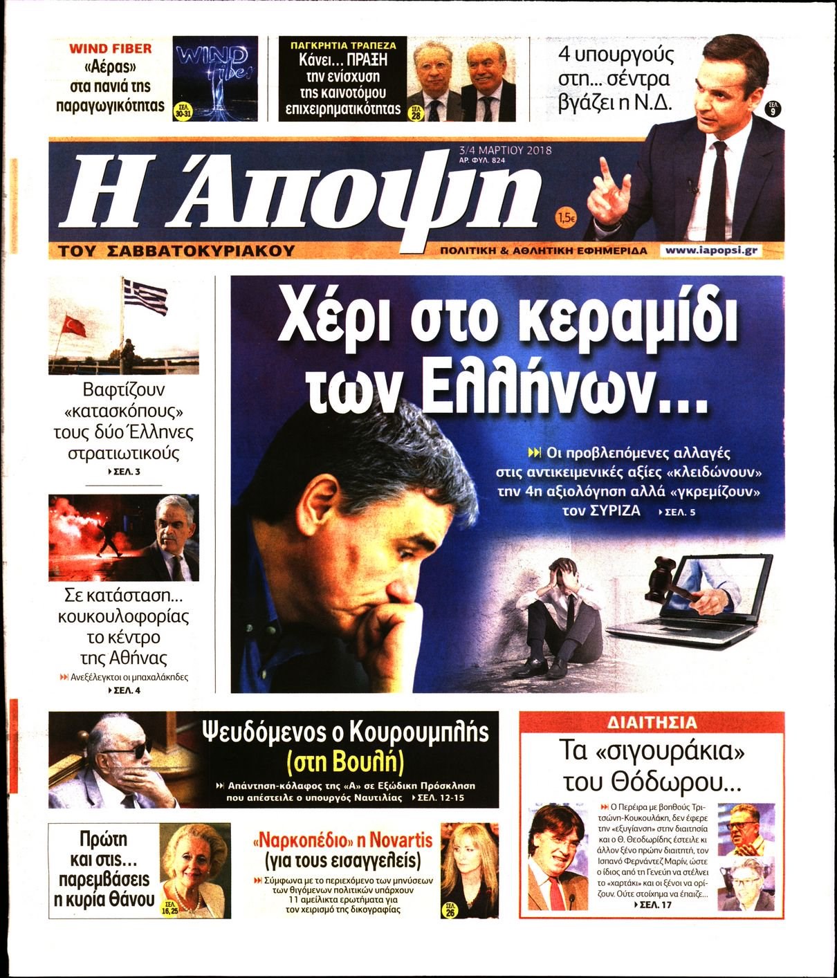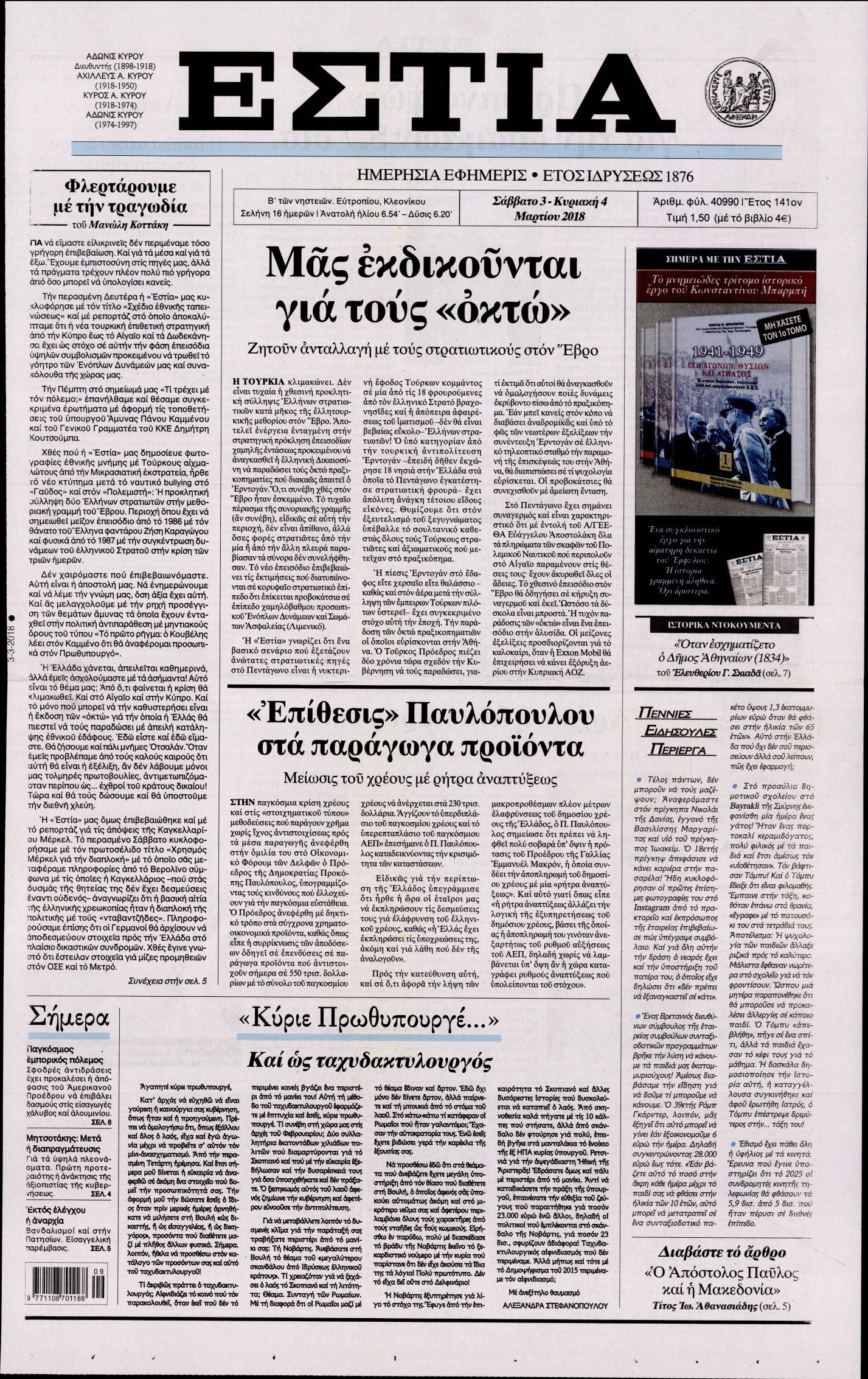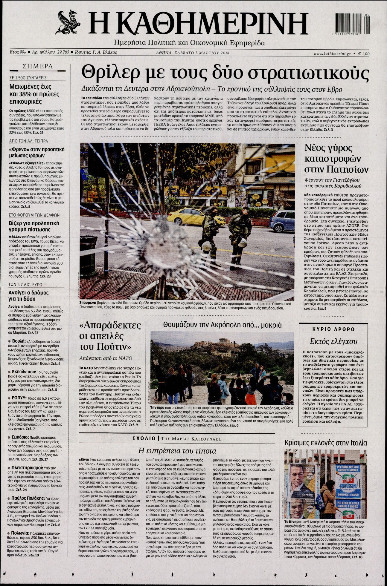 Οι πολιτικές εφημερίδες 3/3/2018 Enikos Newsroom 07:36, Σάββατο 03 Μαρτίου 2018 Media Διαβάστε τα σημερινά πρωτοσέλιδα των πολιτικών εφημερίδων: ΠΟΛΙΤΙΚΕΣ ΕΦΗΜΕΡΙΔΕΣ ΠΡΩΤΟΣΕΛΙΔΑ Μοιράσου το: σχολίασε κι εσύ (0 σχόλια) Ακολουθήστε το enikos.gr στο Google News και μάθετε πρώτοι όλες τις ειδήσεις Δείτε όλες τις τελευταίες ειδήσεις από την Ελλάδα και τον Κόσμο στο enikos.gr Ειδήσεις Ροή Ειδήσεων 9 ώρες πριν Χριστούγεννα στα μπλόκα: Επιμένουν στις κινητοποιήσεις τους οι αγρότες – Ανοίγουν τα διόδια το Σαββατοκύριακο 1 ώρα πριν Σαρωτικοί οι έλεγχοι στους δρόμους ενόψει εορτών – Μπλόκα της τροχαίας σε κεντρικές αρτηρίες της Αττικής 8 ώρες πριν Πούτιν: Τα μηνύματα σε Ευρώπη και ΝΑΤΟ από το μαραθώνιο «σόου» του – Η απαίτηση για «σεβασμό» και η ειρήνη «με τους όρους» της Μόσχας 8 ώρες πριν ΗΠΑ: Η κυβέρνηση του Ντόναλντ Τραμπ άρχισε να δημοσιοποιεί τα αρχεία Έπσταϊν 8 ώρες πριν Άνω Λιόσια: Πυροβολισμοί σε επιχείρηση με χαλιά – Εντοπίστηκαν 10 κάλυκες 1 ώρα πριν Αυγά: Πόσα μπορείτε να τρώτε την ημέρα με ασφάλεια για μέγιστη πρόσληψη πρωτεΐνης 2 ώρες πριν Τα ζώδια σήμερα, Σάββατο 20 Δεκεμβρίου: Παρθένοι, το σύμπαν σας δίνει το κλειδί 8 ώρες πριν Ανακαλύφθηκαν αρχαία χρυσά νομίσματα 2.200 ετών που απεικονίζουν τον θεό Απόλλωνα – Η άγνωστη σύνδεση με τον Φίλιππο Β΄ της Μακεδονίας 1 ώρα πριν Οπτική ψευδαίσθηση: Μόνο αν είσαι ο Σέρλοκ Χολμς θα βρεις τον αριθμό «87» σε 7 δευτερόλεπτα 8 λεπτά πριν Οι αθλητικές μεταδόσεις 20/12/2025 18 λεπτά πριν Εορτολόγιο: Ποιοι γιορτάζουν σήμερα 20 Δεκεμβρίου 25 λεπτά πριν Συρία: Μπαράζ αμερικανικών επιδρομών εναντίον του ISIS – «Πλήττουμε δυνατά οχυρά του ΙΚ» λέει ο Ντόναλντ Τραμπ 34 λεπτά πριν Αναβολή συμφωνίας ΕΕ-Mercosur: Ο χρόνος «δεν είναι απεριόριστος» προειδοποιεί η Παραγουάη 49 λεπτά πριν Κίριλ Ντμίτριεφ: Στις ΗΠΑ ο απεσταλμένος της Ρωσίας για συνομιλίες με τους ομολόγους του, Γουίτκοφ και Κούσνερ ENIKOS NETWORK Πρέπει να αποδέχεστε ή να απορρίπτετε όλα τα cookies; Ένας ειδικός εξηγεί Η αγαπημένη λιχουδιά των πόνι που μπορεί να ενισχύσει όραση, εγκέφαλο και ανοσοποιητικό Αναστολή μέτρων αναγκαστικής εκτέλεσης για κτηνοτρόφους που πλήττονται από την ευλογιά των αιγοπροβάτων Πλήρης επάρκεια προϊόντων στις λαϊκές της Αττικής, παρά τις αγροτικές κινητοποιήσεις – Τι απαντούν οι πωλητές Χαρτογραφώντας το «σημείο χωρίς επιστροφή»: Για πρώτη φορά αποκαλύπτεται με λεπτομέρεια το ακανθώδες όριο της ατμόσφαιρας τ... Η Google καταργεί τη λειτουργία «dark web report» – Πώς θα μπορούν οι χρήστες να διαγράφουν τα δεδομένα τους περισσότερα 05:48 , Σάββατο 20 Δεκεμβρίου 2025 Οι οικονομικές εφημερίδες 20/12/2025 Διαβάστε τα πρωτοσέλιδα από τις οικονομικές εφημερίδες, σήμερα 20/12/2025. 05:43 , Σάββατο 20 Δεκεμβρίου 2025 Οι αθλητικές εφημερίδες 20/12/2025 Διαβάστε τα πρωτοσέλιδα από τις αθλητικές εφημερίδες, σήμερα 20/12/2025. 05:38 , Σάββατο 20 Δεκεμβρίου 2025 Οι πολιτικές εφημερίδες 20/12/2025 Διαβάστε τα πρωτοσέλιδα από τις πολιτικές εφημερίδες, σήμερα 20/12/2025. 04:20 , Σάββατο 20 Δεκεμβρίου 2025 Αγγελική Νικολούλη: Τα συλλυπητήρια για την απώλεια της Ειρήνης Μαρινάκη Τα συλληπητήρια στον πρόεδρο του Mega, τον Βαγγέλη Μαρινάκη, για την απώλεια της μητέρας του Ε... ΤΕΛΕΥΤΑΙΕΣ ΕΙΔΗΣΕΙΣ 8 λεπτά πριν Οι αθλητικές μεταδόσεις 20/12/2025 18 λεπτά πριν Εορτολόγιο: Ποιοι γιορτάζουν σήμερα 20 Δεκεμβρίου 25 λεπτά πριν Συρία: Μπαράζ αμερικανικών επιδρομών εναντίον του ISIS... 34 λεπτά πριν Αναβολή συμφωνίας ΕΕ-Mercosur: Ο χρόνος «δεν είναι... 49 λεπτά πριν Κίριλ Ντμίτριε