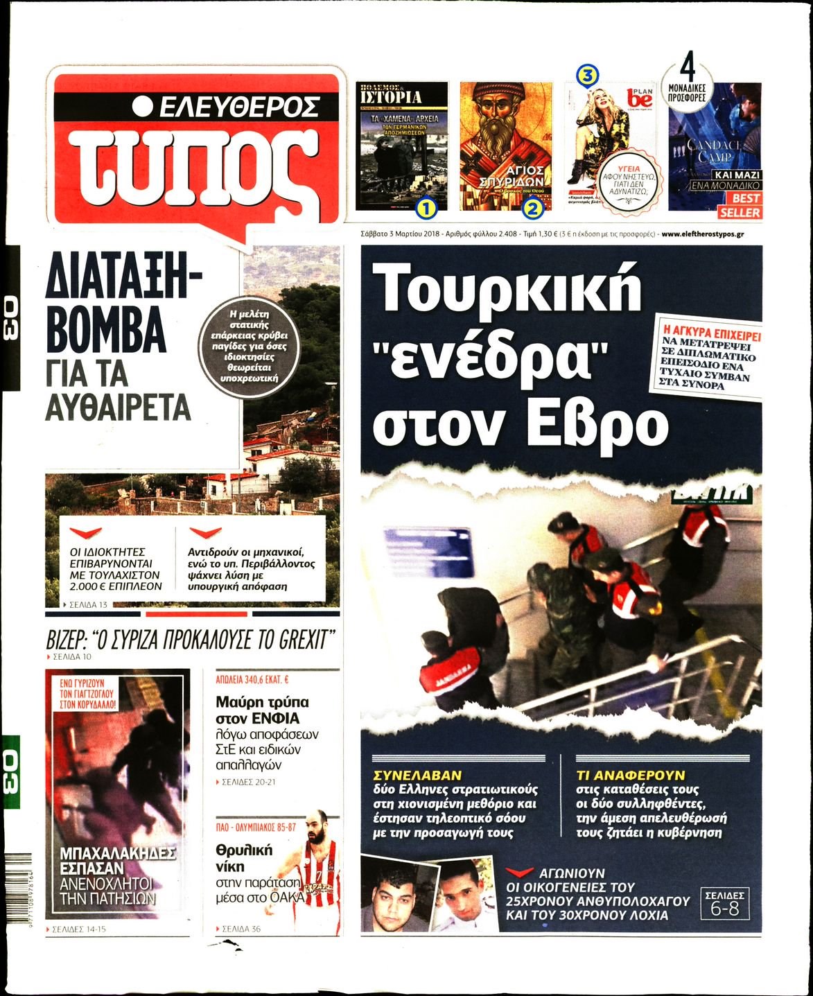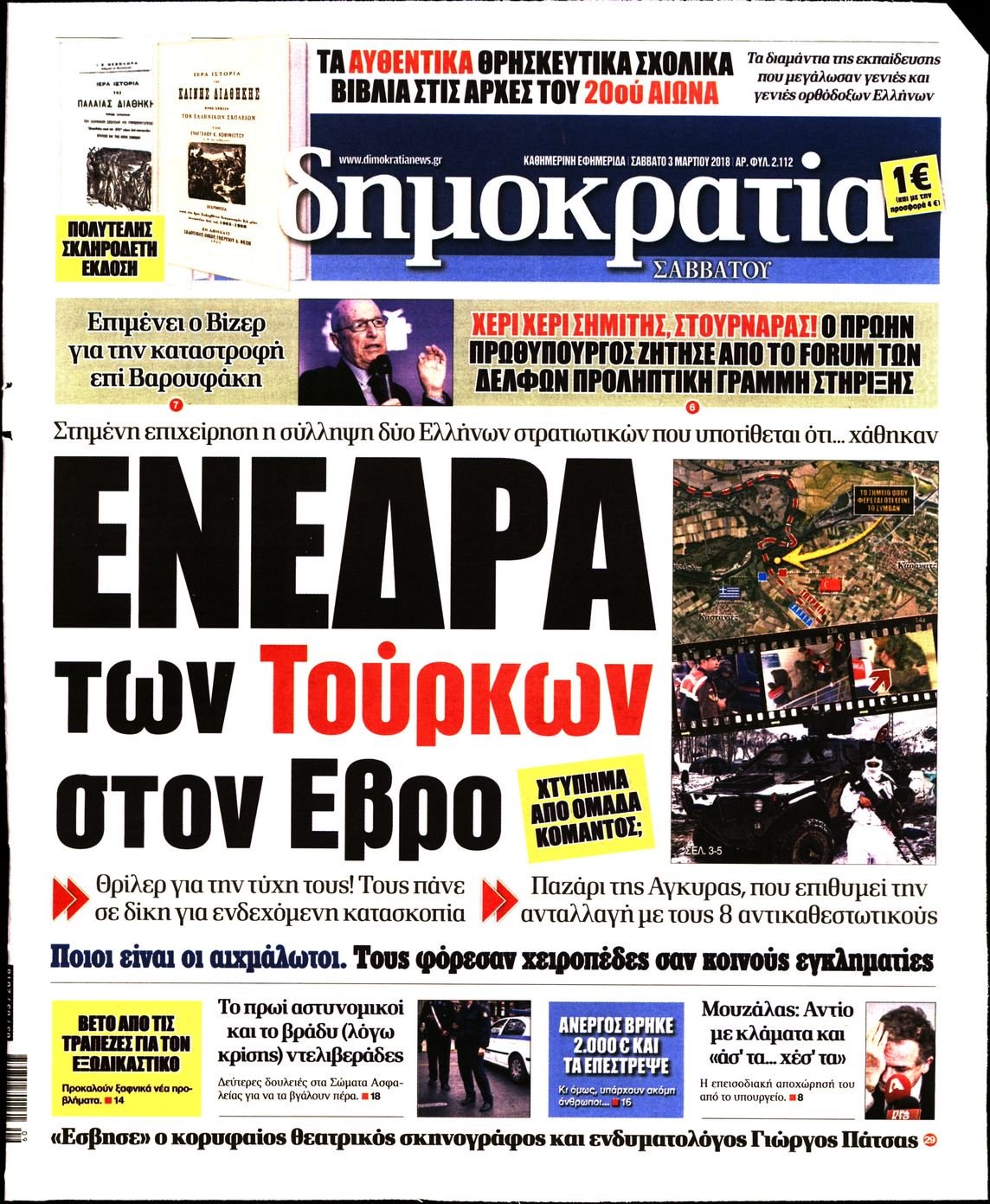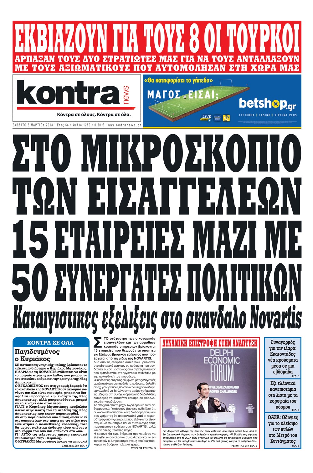 Οι πολιτικές εφημερίδες 3/3/2018 Enikos Newsroom 07:36, Σάββατο 03 Μαρτίου 2018 Media Διαβάστε τα σημερινά πρωτοσέλιδα των πολιτικών εφημερίδων: ΠΟΛΙΤΙΚΕΣ ΕΦΗΜΕΡΙΔΕΣ ΠΡΩΤΟΣΕΛΙΔΑ Μοιράσου το: σχολίασε κι εσύ (0 σχόλια) Ακολουθήστε το enikos.gr στο Google News και μάθετε πρώτοι όλες τις ειδήσεις Δείτε όλες τις τελευταίες ειδήσεις από την Ελλάδα και τον Κόσμο στο enikos.gr Ειδήσεις Ροή Ειδήσεων 9 ώρες πριν Χριστούγεννα στα μπλόκα: Επιμένουν στις κινητοποιήσεις τους οι αγρότες – Ανοίγουν τα διόδια το Σαββατοκύριακο 1 ώρα πριν Σαρωτικοί οι έλεγχοι στους δρόμους ενόψει εορτών – Μπλόκα της τροχαίας σε κεντρικές αρτηρίες της Αττικής 8 ώρες πριν Πούτιν: Τα μηνύματα σε Ευρώπη και ΝΑΤΟ από το μαραθώνιο «σόου» του – Η απαίτηση για «σεβασμό» και η ειρήνη «με τους όρους» της Μόσχας 8 ώρες πριν ΗΠΑ: Η κυβέρνηση του Ντόναλντ Τραμπ άρχισε να δημοσιοποιεί τα αρχεία Έπσταϊν 8 ώρες πριν Άνω Λιόσια: Πυροβολισμοί σε επιχείρηση με χαλιά – Εντοπίστηκαν 10 κάλυκες 1 ώρα πριν Αυγά: Πόσα μπορείτε να τρώτε την ημέρα με ασφάλεια για μέγιστη πρόσληψη πρωτεΐνης 2 ώρες πριν Τα ζώδια σήμερα, Σάββατο 20 Δεκεμβρίου: Παρθένοι, το σύμπαν σας δίνει το κλειδί 8 ώρες πριν Ανακαλύφθηκαν αρχαία χρυσά νομίσματα 2.200 ετών που απεικονίζουν τον θεό Απόλλωνα – Η άγνωστη σύνδεση με τον Φίλιππο Β΄ της Μακεδονίας 1 ώρα πριν Οπτική ψευδαίσθηση: Μόνο αν είσαι ο Σέρλοκ Χολμς θα βρεις τον αριθμό «87» σε 7 δευτερόλεπτα 8 λεπτά πριν Οι αθλητικές μεταδόσεις 20/12/2025 18 λεπτά πριν Εορτολόγιο: Ποιοι γιορτάζουν σήμερα 20 Δεκεμβρίου 25 λεπτά πριν Συρία: Μπαράζ αμερικανικών επιδρομών εναντίον του ISIS – «Πλήττουμε δυνατά οχυρά του ΙΚ» λέει ο Ντόναλντ Τραμπ 34 λεπτά πριν Αναβολή συμφωνίας ΕΕ-Mercosur: Ο χρόνος «δεν είναι απεριόριστος» προειδοποιεί η Παραγουάη 49 λεπτά πριν Κίριλ Ντμίτριεφ: Στις ΗΠΑ ο απεσταλμένος της Ρωσίας για συνομιλίες με τους ομολόγους του, Γουίτκοφ και Κούσνερ ENIKOS NETWORK Πρέπει να αποδέχεστε ή να απορρίπτετε όλα τα cookies; Ένας ειδικός εξηγεί Η αγαπημένη λιχουδιά των πόνι που μπορεί να ενισχύσει όραση, εγκέφαλο και ανοσοποιητικό Αναστολή μέτρων αναγκαστικής εκτέλεσης για κτηνοτρόφους που πλήττονται από την ευλογιά των αιγοπροβάτων Πλήρης επάρκεια προϊόντων στις λαϊκές της Αττικής, παρά τις αγροτικές κινητοποιήσεις – Τι απαντούν οι πωλητές Χαρτογραφώντας το «σημείο χωρίς επιστροφή»: Για πρώτη φορά αποκαλύπτεται με λεπτομέρεια το ακανθώδες όριο της ατμόσφαιρας τ... Η Google καταργεί τη λειτουργία «dark web report» – Πώς θα μπορούν οι χρήστες να διαγράφουν τα δεδομένα τους περισσότερα 05:48 , Σάββατο 20 Δεκεμβρίου 2025 Οι οικονομικές εφημερίδες 20/12/2025 Διαβάστε τα πρωτοσέλιδα από τις οικονομικές εφημερίδες, σήμερα 20/12/2025. 05:43 , Σάββατο 20 Δεκεμβρίου 2025 Οι αθλητικές εφημερίδες 20/12/2025 Διαβάστε τα πρωτοσέλιδα από τις αθλητικές εφημερίδες, σήμερα 20/12/2025. 05:38 , Σάββατο 20 Δεκεμβρίου 2025 Οι πολιτικές εφημερίδες 20/12/2025 Διαβάστε τα πρωτοσέλιδα από τις πολιτικές εφημερίδες, σήμερα 20/12/2025. 04:20 , Σάββατο 20 Δεκεμβρίου 2025 Αγγελική Νικολούλη: Τα συλλυπητήρια για την απώλεια της Ειρήνης Μαρινάκη Τα συλληπητήρια στον πρόεδρο του Mega, τον Βαγγέλη Μαρινάκη, για την απώλεια της μητέρας του Ε... ΤΕΛΕΥΤΑΙΕΣ ΕΙΔΗΣΕΙΣ 8 λεπτά πριν Οι αθλητικές μεταδόσεις 20/12/2025 18 λεπτά πριν Εορτολόγιο: Ποιοι γιορτάζουν σήμερα 20 Δεκεμβρίου 25 λεπτά πριν Συρία: Μπαράζ αμερικανικών επιδρομών εναντίον του ISIS... 34 λεπτά πριν Αναβολή συμφωνίας ΕΕ-Mercosur: Ο χρόνος «δεν είναι... 49 λεπτά πριν Κίριλ Ντμίτριε