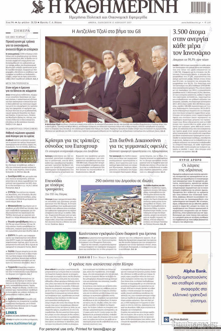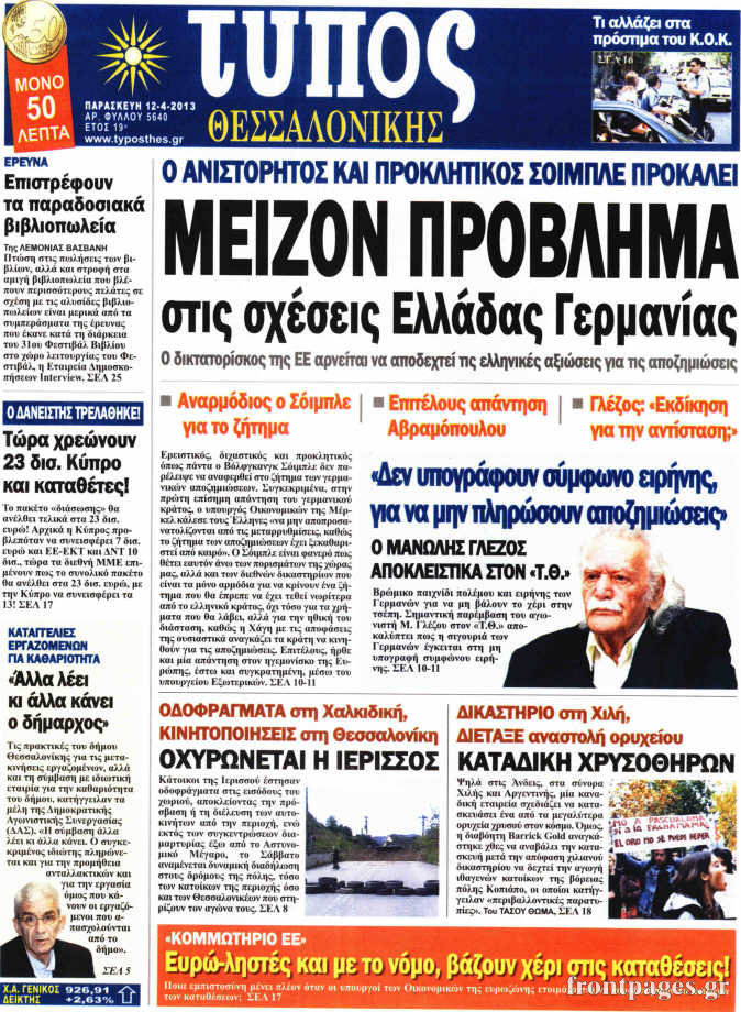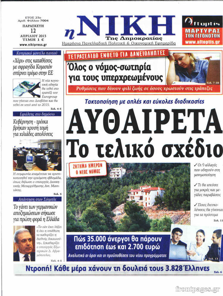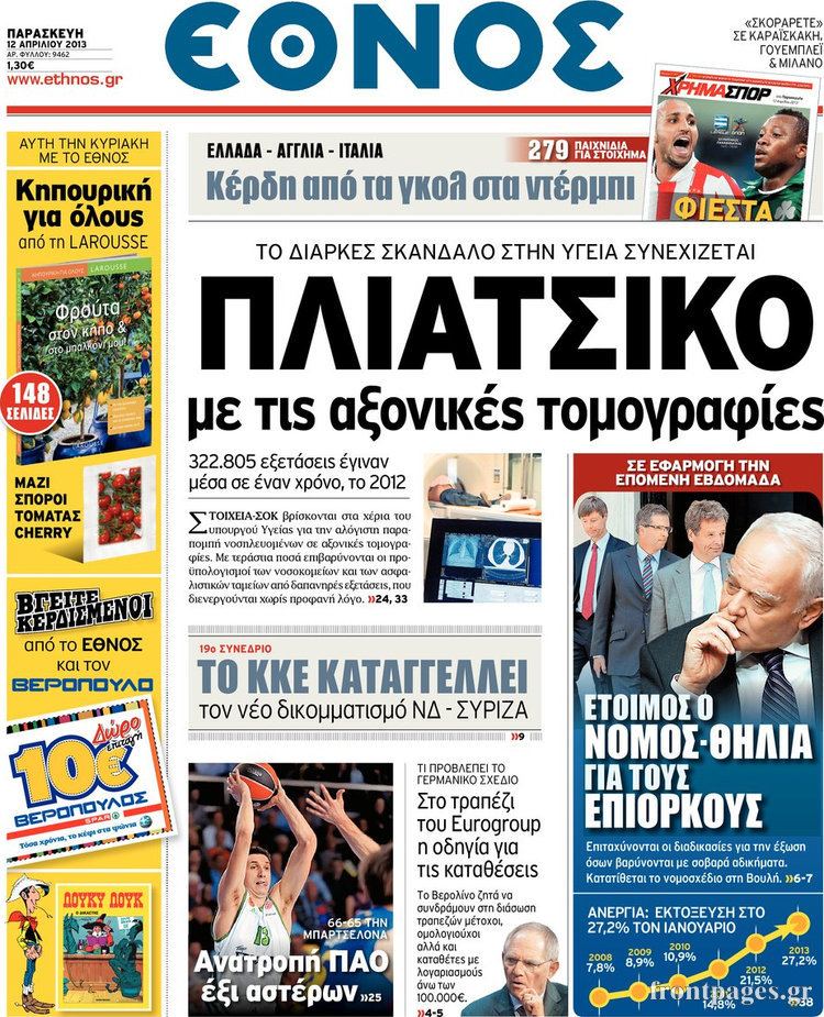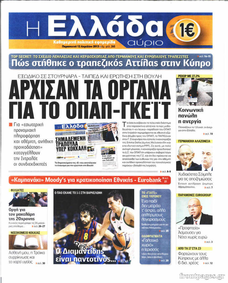 Οι πολιτικές εφημερίδες Enikos Newsroom 09:08, Παρασκευή 12 Απριλίου 2013 Media Οι πολιτικές εφημερίδες Τα πρωτοσέλιδα των πολιτικών εφημερίδων. ΕΦΗΜΕΡΙΔΕΣ ΟΙ ΠΟΛΙΤΙΚΕΣ ΕΦΗΜΕΡΙΔΕΣ ΠΡΩΤΟΣΕΛΙΔΑ Μοιράσου το: σχολίασε κι εσύ (0 σχόλια) Ακολουθήστε το enikos.gr στο Google News και μάθετε πρώτοι όλες τις ειδήσεις Δείτε όλες τις τελευταίες ειδήσεις από την Ελλάδα και τον Κόσμο στο enikos.gr Ειδήσεις Ροή Ειδήσεων 59 λεπτά πριν Αγρότες: Την Τρίτη η απόφαση για διάλογο ή κλιμάκωση των κινητοποιήσεών τους – Πώς χαρακτηρίζουν τις ανακοινώσεις Τσιάρα και οι επόμενες κινήσεις 34 λεπτά πριν Τραμπ για Ουκρανία: «Είμαστε πιο κοντά σε συμφωνία από ποτέ» – «Πολυεθνική δύναμη» προτείνουν οι Ευρωπαίοι 53 λεπτά πριν Κυψέλη: Η 16χρονη που μαχαίρωσε την 14χρονη είχε συλληφθεί 3 φορές στο παρελθόν – Έβριζε καθηγητές, έβαζε φωτιές σε κάδους και εκβίαζε συμμαθητές της 1 ώρα πριν Χαλκιδική: Πώς δρούσαν οι αστυνομικοί που συνελήφθησαν για κλήσεις που δεν έκοβαν – Η «ετήσια συνδρομή» για τα μπλόκα της Τροχαίας και οι «δωρεές» 17 λεπτά πριν Τρομοκρατική επίθεση στο Σίδνεϊ: Θλίψη για τα 15 θύματα – Οργή στην εβραϊκή κοινότητα που προειδοποιούσε επί δύο χρόνια 2 ώρες πριν Ύπνος: Η αρχαία μορφή άσκησης που αποδεικνύεται αποτελεσματική στην αντιμετώπιση της αϋπνίας, σύμφωνα με μελέτη 3 ώρες πριν Αριθμολογία: Ο τυχερός σας αριθμός, ανάλογα με τον μήνα γέννησής σας 4 ώρες πριν Πώς να μην μαραίνονται γρήγορα τα κομμένα λουλούδια: Το λάθος στην τοποθέτηση του βάζου που πρέπει να αποφεύγετε 37 λεπτά πριν Επιστήμονες ίσως έλυσαν το μυστήριο γύρω από τα Χόμπιτ – Νέα έρευνα αποκαλύπτει πώς εξαφανίστηκαν 11 λεπτά πριν ΚΚΕ: Το νομοσχέδιο – «λαιμητόμος» του υπουργείου Άμυνας δεν πρέπει να περάσει 17 λεπτά πριν Τρομοκρατική επίθεση στο Σίδνεϊ: Θλίψη για τα 15 θύματα – Οργή στην εβραϊκή κοινότητα που προειδοποιούσε επί δύο χρόνια 21 λεπτά πριν Ινστιτούτο Prolepsis: Κρίσιμα εμπόδια και βασικές προϋποθέσεις για την ενίσχυση της υγείας στα σωφρονιστικά ιδρύματα – Ευρήματα από το έργο PARTNER 27 λεπτά πριν Χανιά: Ηλικιωμένες μητέρες κρατουμένων προσπάθησαν να περάσουν ναρκωτικά στις φυλακές 34 λεπτά πριν Τραμπ για Ουκρανία: «Είμαστε πιο κοντά σε συμφωνία από ποτέ» – «Πολυεθνική δύναμη» προτείνουν οι Ευρωπαίοι ENIKOS NETWORK Πότε το χρόνιο ροχαλητό να αποτελέσει ένδειξη κινδύνου για την καρδιά; Τι λένε οι ειδικοί Μάριος Θεμιστοκλέους: Το ΕΣΥ ενισχύεται, εκσυγχρονίζεται, αλλάζει ΕΒΕΠ για αγροτικές κινητοποιήσεις: Κάθε επιπλέον εβδομάδα προσθέτει περίπου 200 εκατ. ευρώ ζημιά Τι προβλέπει το νομοσχέδιο του υπουργείου Εθνικής Άμυνας – Oι αλλαγές στους μισθούς Σύγχρονος Νοστράδαμος: Προειδοποιεί για «μεγάλο γεγονός» τους επόμενους μήνες που θα συγκλονίσει τη Βρετανία και τον κόσμο Τεστ παρατηρητικότητας: Μπορείτε να βρείτε τις 3 διαφορές στις εικόνες με έναν πιγκουίνο σε 14 δευτερόλεπτα περισσότερα 21:35 , Δευτέρα 15 Δεκεμβρίου 2025 Το Σπίτι Δίπλα Στο Ποτάμι: Η Ιουλία και ο Φωκάς μετακομίζουν στη Ρόδο – Δύο νέοι χαρακτήρες μπαίνουν στη σειρά Δύο νέοι, κομβικοί χαρακτήρες κάνουν την εμφάνισή τους αυτή την εβδομάδα στην αγαπημένη σειρά ... 19:46 , Δευτέρα 15 Δεκεμβρίου 2025 Άγιος έρωτας: Η Χριστίνα λέει την αλήθεια στον Αντρέα Ο Βασίλης δέχεται επίθεση από τους συμμαθητές του, η Αναστασία είναι συντετριμμένη με την απώλ... 18:45 , Δευτέρα 15 Δεκεμβρίου 2025 Συνέδριο «Ελληνικός Τουρισμός 2025, Μια εθνική υπόθεση!» – «Ο Θαλάσσιος Πυλώνας ως Ενιαία Στρατηγι
