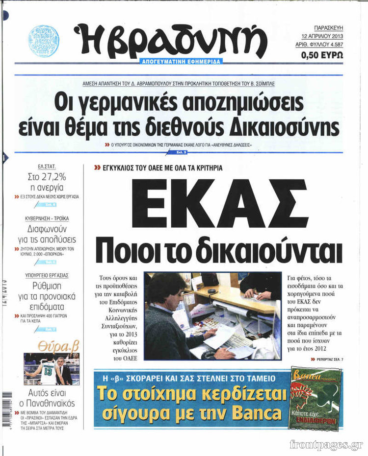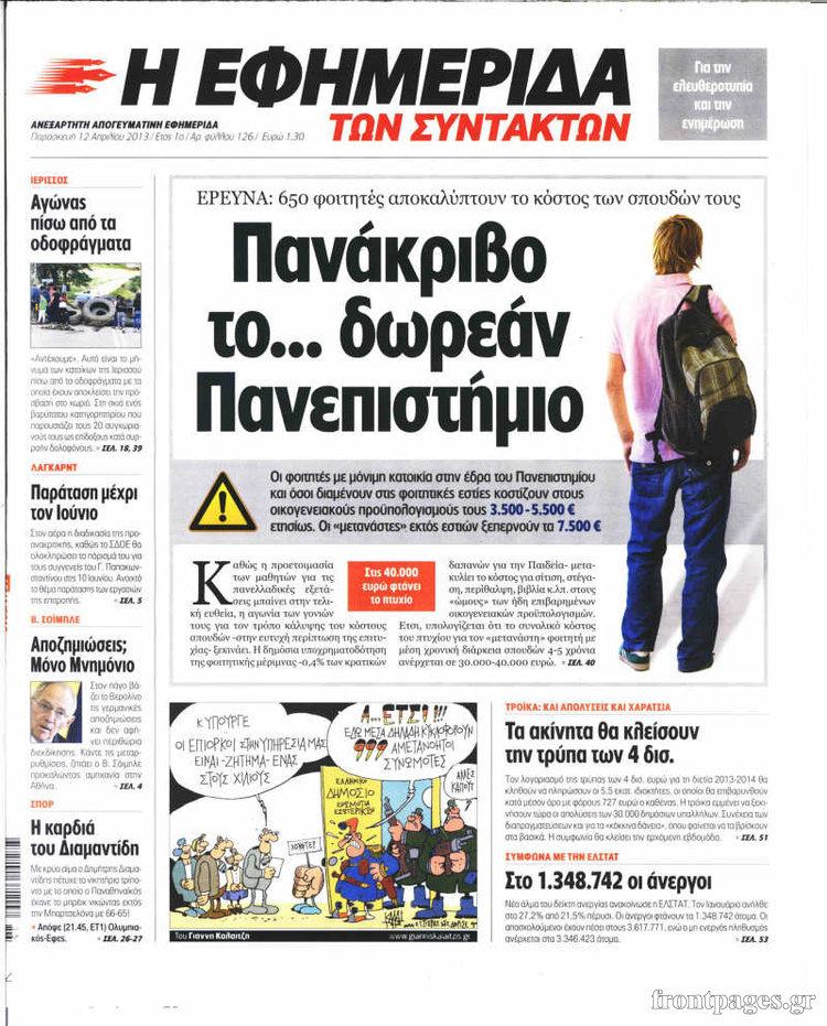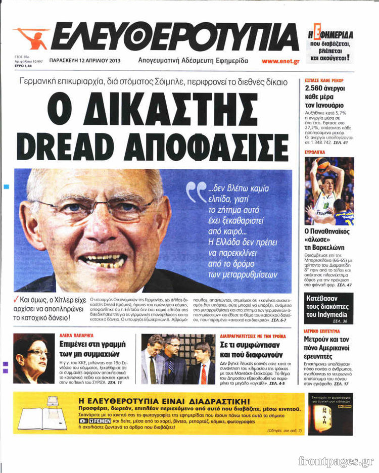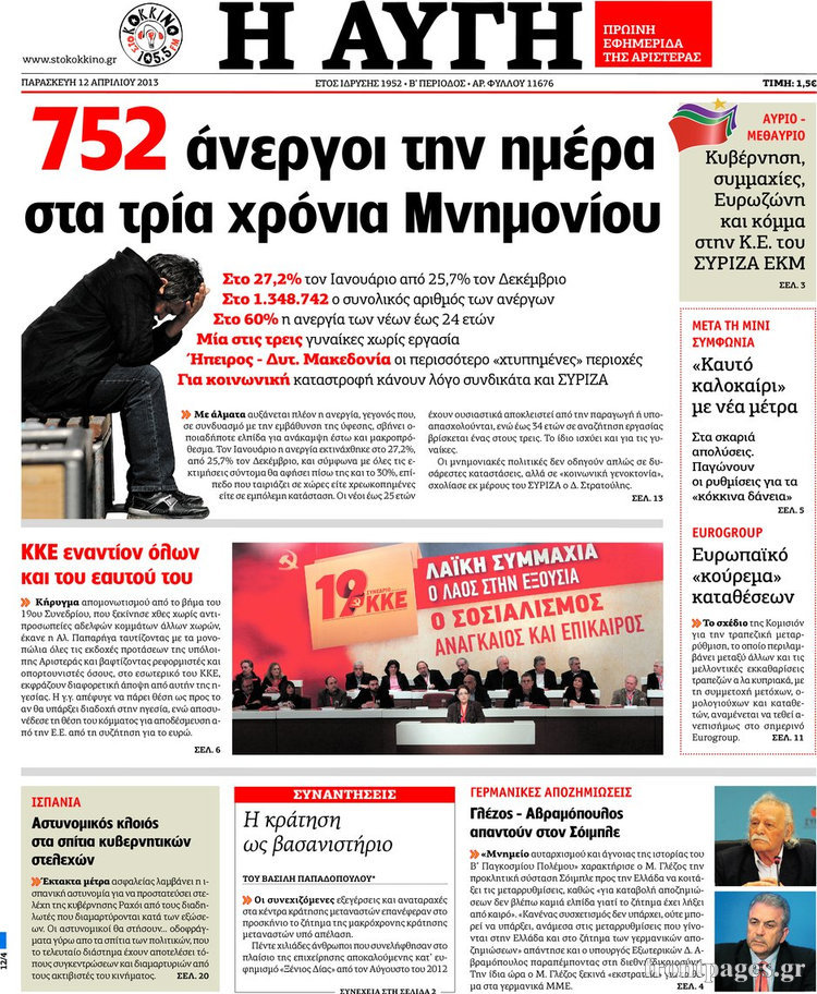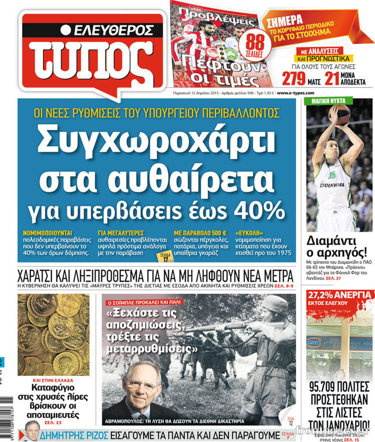 Οι πολιτικές εφημερίδες Enikos Newsroom 09:08, Παρασκευή 12 Απριλίου 2013 Media Οι πολιτικές εφημερίδες Τα πρωτοσέλιδα των πολιτικών εφημερίδων. ΕΦΗΜΕΡΙΔΕΣ ΟΙ ΠΟΛΙΤΙΚΕΣ ΕΦΗΜΕΡΙΔΕΣ ΠΡΩΤΟΣΕΛΙΔΑ Μοιράσου το: σχολίασε κι εσύ (0 σχόλια) Ακολουθήστε το enikos.gr στο Google News και μάθετε πρώτοι όλες τις ειδήσεις Δείτε όλες τις τελευταίες ειδήσεις από την Ελλάδα και τον Κόσμο στο enikos.gr Ειδήσεις Ροή Ειδήσεων 59 λεπτά πριν Αγρότες: Την Τρίτη η απόφαση για διάλογο ή κλιμάκωση των κινητοποιήσεών τους – Πώς χαρακτηρίζουν τις ανακοινώσεις Τσιάρα και οι επόμενες κινήσεις 34 λεπτά πριν Τραμπ για Ουκρανία: «Είμαστε πιο κοντά σε συμφωνία από ποτέ» – «Πολυεθνική δύναμη» προτείνουν οι Ευρωπαίοι 53 λεπτά πριν Κυψέλη: Η 16χρονη που μαχαίρωσε την 14χρονη είχε συλληφθεί 3 φορές στο παρελθόν – Έβριζε καθηγητές, έβαζε φωτιές σε κάδους και εκβίαζε συμμαθητές της 1 ώρα πριν Χαλκιδική: Πώς δρούσαν οι αστυνομικοί που συνελήφθησαν για κλήσεις που δεν έκοβαν – Η «ετήσια συνδρομή» για τα μπλόκα της Τροχαίας και οι «δωρεές» 17 λεπτά πριν Τρομοκρατική επίθεση στο Σίδνεϊ: Θλίψη για τα 15 θύματα – Οργή στην εβραϊκή κοινότητα που προειδοποιούσε επί δύο χρόνια 2 ώρες πριν Ύπνος: Η αρχαία μορφή άσκησης που αποδεικνύεται αποτελεσματική στην αντιμετώπιση της αϋπνίας, σύμφωνα με μελέτη 3 ώρες πριν Αριθμολογία: Ο τυχερός σας αριθμός, ανάλογα με τον μήνα γέννησής σας 4 ώρες πριν Πώς να μην μαραίνονται γρήγορα τα κομμένα λουλούδια: Το λάθος στην τοποθέτηση του βάζου που πρέπει να αποφεύγετε 37 λεπτά πριν Επιστήμονες ίσως έλυσαν το μυστήριο γύρω από τα Χόμπιτ – Νέα έρευνα αποκαλύπτει πώς εξαφανίστηκαν 11 λεπτά πριν ΚΚΕ: Το νομοσχέδιο – «λαιμητόμος» του υπουργείου Άμυνας δεν πρέπει να περάσει 17 λεπτά πριν Τρομοκρατική επίθεση στο Σίδνεϊ: Θλίψη για τα 15 θύματα – Οργή στην εβραϊκή κοινότητα που προειδοποιούσε επί δύο χρόνια 21 λεπτά πριν Ινστιτούτο Prolepsis: Κρίσιμα εμπόδια και βασικές προϋποθέσεις για την ενίσχυση της υγείας στα σωφρονιστικά ιδρύματα – Ευρήματα από το έργο PARTNER 27 λεπτά πριν Χανιά: Ηλικιωμένες μητέρες κρατουμένων προσπάθησαν να περάσουν ναρκωτικά στις φυλακές 34 λεπτά πριν Τραμπ για Ουκρανία: «Είμαστε πιο κοντά σε συμφωνία από ποτέ» – «Πολυεθνική δύναμη» προτείνουν οι Ευρωπαίοι ENIKOS NETWORK Πότε το χρόνιο ροχαλητό να αποτελέσει ένδειξη κινδύνου για την καρδιά; Τι λένε οι ειδικοί Μάριος Θεμιστοκλέους: Το ΕΣΥ ενισχύεται, εκσυγχρονίζεται, αλλάζει ΕΒΕΠ για αγροτικές κινητοποιήσεις: Κάθε επιπλέον εβδομάδα προσθέτει περίπου 200 εκατ. ευρώ ζημιά Τι προβλέπει το νομοσχέδιο του υπουργείου Εθνικής Άμυνας – Oι αλλαγές στους μισθούς Σύγχρονος Νοστράδαμος: Προειδοποιεί για «μεγάλο γεγονός» τους επόμενους μήνες που θα συγκλονίσει τη Βρετανία και τον κόσμο Τεστ παρατηρητικότητας: Μπορείτε να βρείτε τις 3 διαφορές στις εικόνες με έναν πιγκουίνο σε 14 δευτερόλεπτα περισσότερα 21:35 , Δευτέρα 15 Δεκεμβρίου 2025 Το Σπίτι Δίπλα Στο Ποτάμι: Η Ιουλία και ο Φωκάς μετακομίζουν στη Ρόδο – Δύο νέοι χαρακτήρες μπαίνουν στη σειρά Δύο νέοι, κομβικοί χαρακτήρες κάνουν την εμφάνισή τους αυτή την εβδομάδα στην αγαπημένη σειρά ... 19:46 , Δευτέρα 15 Δεκεμβρίου 2025 Άγιος έρωτας: Η Χριστίνα λέει την αλήθεια στον Αντρέα Ο Βασίλης δέχεται επίθεση από τους συμμαθητές του, η Αναστασία είναι συντετριμμένη με την απώλ... 18:45 , Δευτέρα 15 Δεκεμβρίου 2025 Συνέδριο «Ελληνικός Τουρισμός 2025, Μια εθνική υπόθεση!» – «Ο Θαλάσσιος Πυλώνας ως Ενιαία Στρατηγι