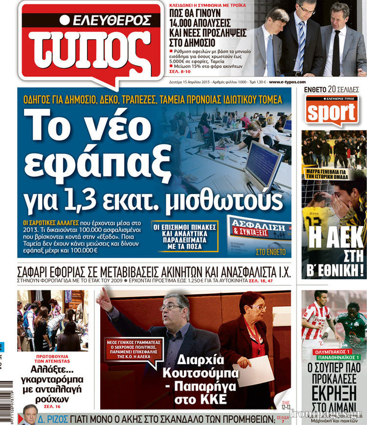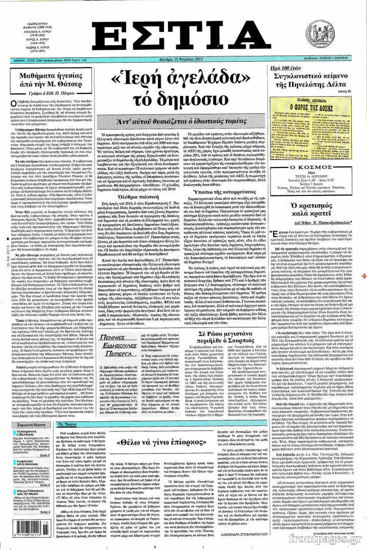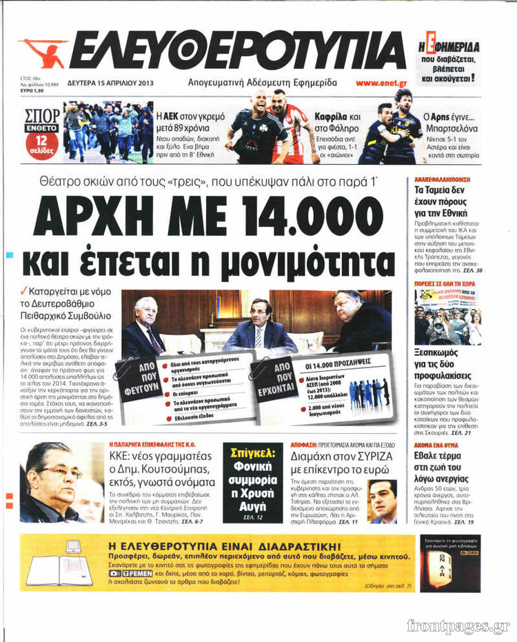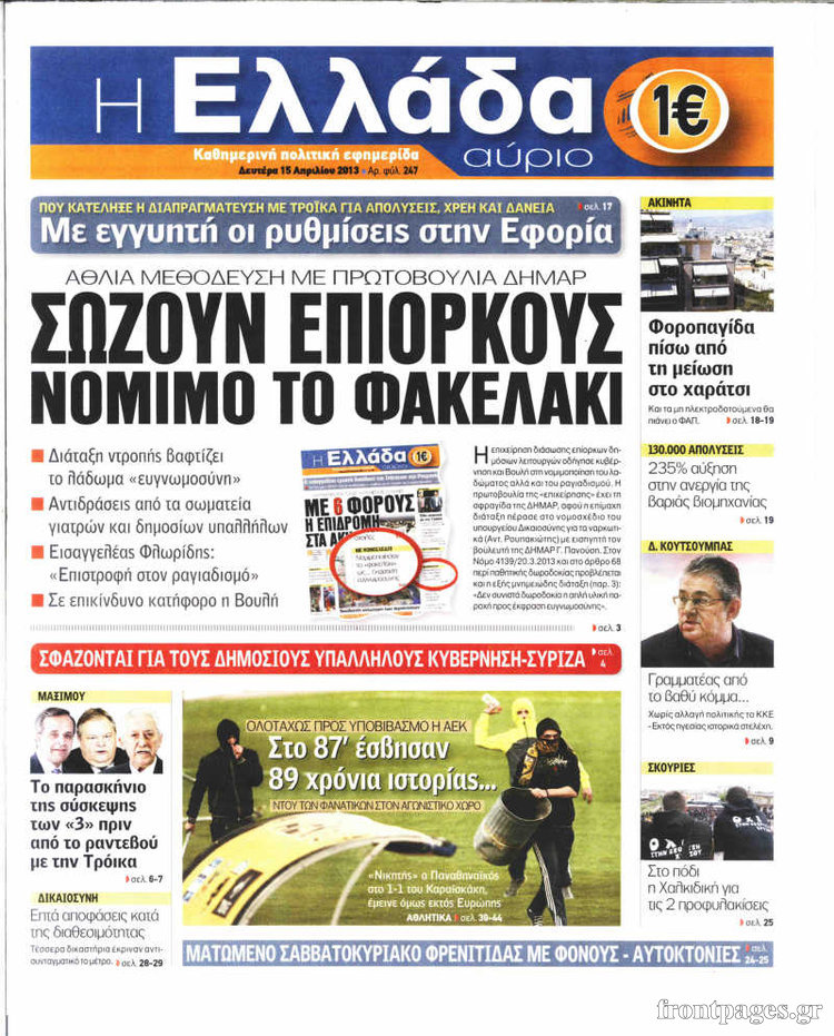 Οι πολιτικές εφημερίδες Enikos Newsroom 08:51, Δευτέρα 15 Απριλίου 2013 Media Οι πολιτικές εφημερίδες Τα πρωτοσέλιδα των πολιτικών εφημερίδων. ΕΦΗΜΕΡΙΔΕΣ ΠΟΛΙΤΙΚΕΣ ΕΦΗΜΕΡΙΔΕΣ ΠΡΩΤΟΣΕΛΙΔΑ Μοιράσου το: σχολίασε κι εσύ (0 σχόλια) Ακολουθήστε το enikos.gr στο Google News και μάθετε πρώτοι όλες τις ειδήσεις Δείτε όλες τις τελευταίες ειδήσεις από την Ελλάδα και τον Κόσμο στο enikos.gr Ειδήσεις Ροή Ειδήσεων 7 ώρες πριν Εκτός ευρωομάδας ΣΥΡΙΖΑ ο Νίκος Παππάς μετά την επίθεση στον δημοσιογράφο Νίκο Γιαννόπουλο – Η μήνυση και οι νέες δηλώσεις 7 ώρες πριν «Αγριεύουν» οι αγρότες: «Δεν συντρέχει λόγος συνάντησης με τον πρωθυπουργό» – Ώρα αποφάσεων στη σύσκεψη της Πέμπτης 7 ώρες πριν Κυψέλη: Χωρίς την οικογένειά της δίπλα της απολογήθηκε η 16χρονη – «Της είχε επιτεθεί κάποιος για να την βιάσει, φοβήθηκε και κυκλοφορούσε με μαχαίρι» 7 ώρες πριν Politico: Το πρόβλημα της Ευρώπης δεν είναι το Βέλγιο αλλά ο Ντόναλντ Τραμπ 8 ώρες πριν Αλεξανδρούπολη: Πολυοργανική ανεπάρκεια λόγω υποσιτισμού η αιτία θανάτου του 3χρονου αγοριού 7 ώρες πριν Μυστήριο με τεράστιες κυκλικές πέτρες 200 κιλών – Ανακαλύφθηκαν τυχαία κατά τη διάρκεια οδικών έργων και κανείς δεν ξέρει από πού προέρχονται 8 ώρες πριν Ύπνος: Ειδικός εξηγεί τον πραγματικό λόγο που ξυπνάτε στις 4 τα ξημερώματα – Ο ρόλος των ορμονών και του κιρκάδιου ρυθμού 9 ώρες πριν Αριθμολογία: Οι άνθρωποι που έχουν γεννηθεί αυτές τις 4 ημερομηνίες, είναι τρυφεροί και αγαπούν ανιδιοτελώς 21 ώρες πριν 20 χρόνια τα Χριστούγεννα ξεκινούν στα Public με μεγάλη ποικιλία σε δώρα! 5 λεπτά πριν Οι οικονομικές εφημερίδες 18/12/2025 9 λεπτά πριν Οι αθλητικές εφημερίδες 18/12/2025 14 λεπτά πριν Οι πολιτικές εφημερίδες 18/12/2025 23 λεπτά πριν Τα ζώδια σήμερα, Πέμπτη 18 Δεκεμβρίου: Λέοντες, η καρδιά σας θέλει να εκφραστεί 30 λεπτά πριν Το Ποντίκι σήμερα Πέμπτη 18/12/2025 ENIKOS NETWORK Αϋπνία: Το κόλπο που θα σας βοηθήσει να κοιμηθείτε απόψε – Είναι απλό και έχει αποτέλεσμα 2,6 εκατομμύρια πολίτες έχουν ήδη εμβολιαστεί κατά της γρίπης ΕΛΣΤΑΤ: Τι δείχνουν τα νέα στοιχεία για τις ηλεκτρονικές παραγγελίες των επιχειρήσεων ΚΕΠΕ: Οι 3 διακριτές συμβολές των ΜμΕ και της μεταποίησης στην ελληνική οικονομία Χαρτογραφώντας το «σημείο χωρίς επιστροφή»: Για πρώτη φορά αποκαλύπτεται με λεπτομέρεια το ακανθώδες όριο της ατμόσφαιρας τ... Η Google καταργεί τη λειτουργία «dark web report» – Πώς θα μπορούν οι χρήστες να διαγράφουν τα δεδομένα τους περισσότερα 05:48 , Πέμπτη 18 Δεκεμβρίου 2025 Οι οικονομικές εφημερίδες 18/12/2025 Διαβάστε τα πρωτοσέλιδα από τις οικονομικές εφημερίδες, σήμερα 18/12/2025. 05:43 , Πέμπτη 18 Δεκεμβρίου 2025 Οι αθλητικές εφημερίδες 18/12/2025 Διαβάστε τα πρωτοσέλιδα από τις αθλητικές εφημερίδες, σήμερα 18/12/2025. 05:38 , Πέμπτη 18 Δεκεμβρίου 2025 Οι πολιτικές εφημερίδες 18/12/2025 Διαβάστε τα πρωτοσέλιδα από τις πολιτικές εφημερίδες, σήμερα 18/12/2025. 05:22 , Πέμπτη 18 Δεκεμβρίου 2025 Το Ποντίκι σήμερα Πέμπτη 18/12/2025 Διαβάστε το πρωτοσέλιδο της εφημερίδας «Το Ποντίκι» σήμερα 18/12/2025. ΤΕΛΕΥΤΑΙΕΣ ΕΙΔΗΣΕΙΣ 5 λεπτά πριν Οι οικονομικές εφημερίδες 18/12/2025 9 λεπτά πριν Οι αθλητικές εφημερίδες 18/12/2025 14 λεπτά πριν Οι πολιτικές εφημερίδες 18/12/2025 23 λεπτά πριν Τα ζώδια σήμερα, Πέμπτη 18 Δεκεμβρίου: Λέοντες, η καρδιά... 30 λεπτά πριν Το Ποντίκι σήμερα Πέμπτη 18/12/2025 35 λεπτά πριν Εφημερεύοντα φαρμακεία σε Αθήνα και Θεσσαλονίκη (18/12) 37 λεπτά πριν Αλεξάνδρα Ούστα: «Αυτό που με τρέλανε στον σύζυγό μου... 44 λεπτά πριν Μιχάλης Αεράκης: «Της είπα “θέλω να κάνουμε... 52 λεπτά πρι