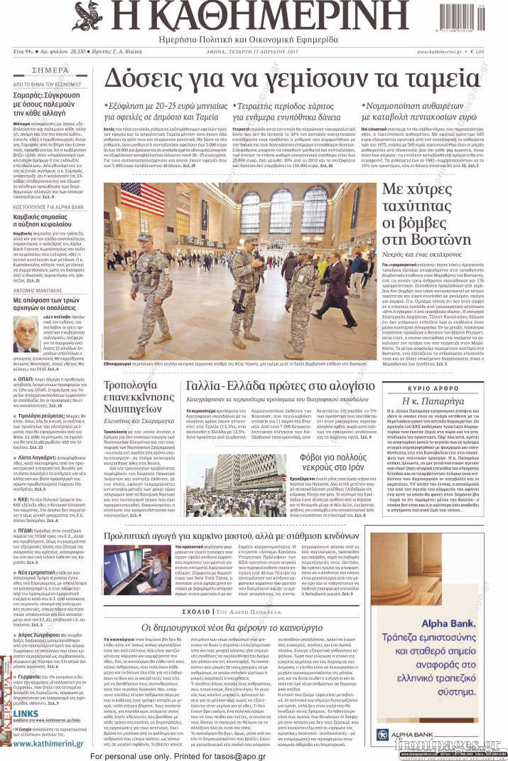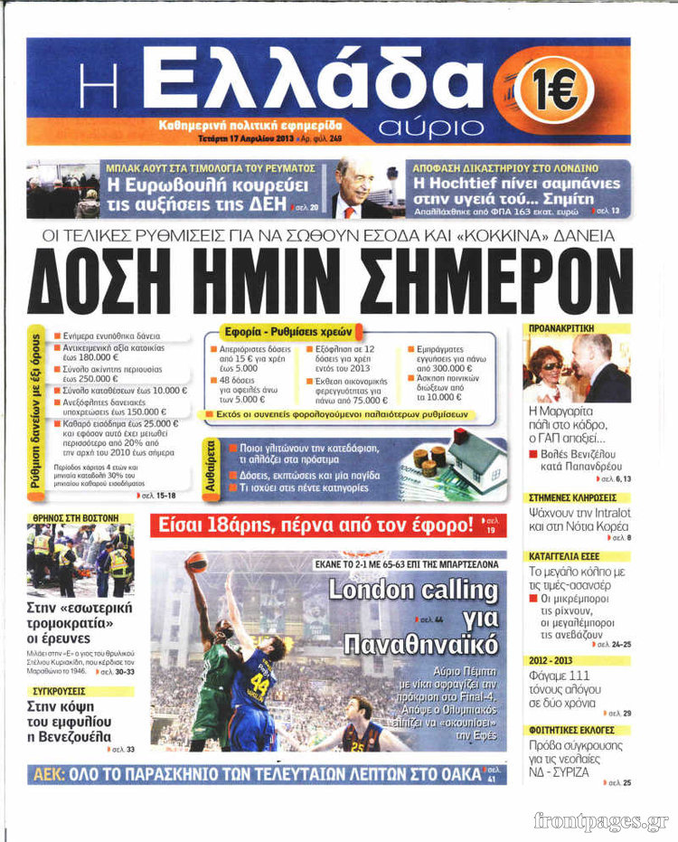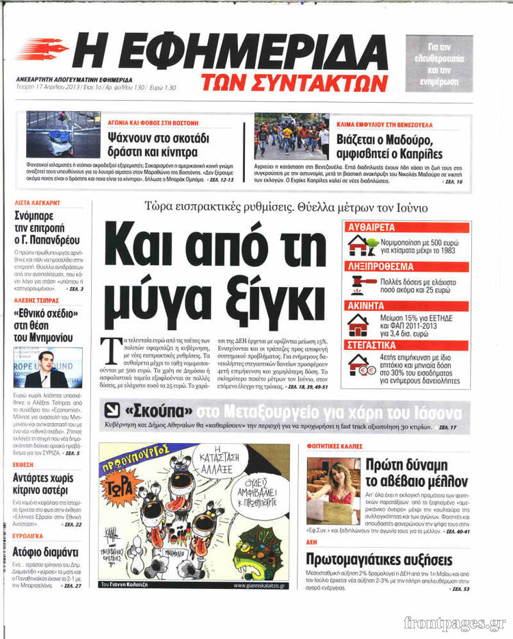 Οι πολιτικές εφημερίδες Enikos Newsroom 09:09, Τετάρτη 17 Απριλίου 2013 Media Οι πολιτικές εφημερίδες Τα πρωτοσέλιδα των πολιτικών εφημερίδων. ΕΦΗΜΕΡΙΔΕΣ ΟΙ ΠΟΛΙΤΙΚΕΣ ΕΦΗΜΕΡΙΔΕΣ ΠΡΩΤΟΣΕΛΙΔΑ Μοιράσου το: σχολίασε κι εσύ (0 σχόλια) Ακολουθήστε το enikos.gr στο Google News και μάθετε πρώτοι όλες τις ειδήσεις Δείτε όλες τις τελευταίες ειδήσεις από την Ελλάδα και τον Κόσμο στο enikos.gr Ειδήσεις Ροή Ειδήσεων 4 ώρες πριν Live-Μετ’ εμποδίων η έξοδος για τα Χριστούγεννα: Πού ανοίγουν επιπλέον λωρίδες κυκλοφορίας στην Αθηνών-Λαμίας – Ουρές χιλιομέτρων σχηματίζουν τα αυτοκίνητα 6 ώρες πριν Μπλόκα της Τροχαίας: «Λερναία Ύδρα» τα γκρουπ στο Viber που προειδοποιούν για ελέγχους – Το «γκρίζο» νομικό τοπίο και οι νόμιμες εφαρμογές 4 ώρες πριν Καιρός: Βροχερό το σκηνικό τις ημέρες των Χριστουγέννων – Έρχονται καταιγίδες και ενισχυμένοι άνεμοι, πού θα χιονίσει 2 ώρες πριν Κρήτη: Νέα μαρτυρία για τον αγνοούμενο γιατρό – Τι λέει ο πατέρας του – ΒΙΝΤΕΟ 1 ώρα πριν Ιλίσια: Διασωληνωμένος και σε σοβαρή κατάσταση ο συντηρητής του ασανσέρ – Πώς έγινε το ατύχημα στο σούπερ μάρκετ 5 ώρες πριν Τα 4 ζώδια που θα λάβουν όλα όσα ζητήσουν από το σύμπαν το 2026 -«Οι ευχές σας γίνονται πραγματικότητα» 10 ώρες πριν Αν πίνετε τον καφέ σας σκέτο, πιθανότατα διαθέτετε αυτά τα 7 ισχυρά χαρακτηριστικά 6 ώρες πριν Μυστήριο στο Διάστημα: Επιστήμονες εντόπισαν ένα «πρωτοφανές φαινόμενο» γύρω από το «Μάτι του Σάουρον», μόλις 25 έτη φωτός από τη Γη 11 ώρες πριν Η Coca-Cola και ο Ελληνικός Ερυθρός Σταυρός μαζί αυτά τα Χριστούγεννα: Μια μεγάλη αγκαλιά για τους συνανθρώπους μας που έχουν ανάγκη 24 δευτερόλεπτα πριν Άδωνις Γεωργιάδης: «Έγινα Δεξιός για την πειθαρχία, κάτι που είχε η Ρώμη» – Δείτε εικόνες από την παρουσίαση του βιβλίου του στο κατάμεστο Βελλίδειο 6 λεπτά πριν Τουρκία: Αύξηση του κατώτατου μισθού κατά 27% από την 1η Ιανουαρίου – Αντιδράσεις από τους συνδικαλιστές 12 λεπτά πριν Έξοδος για τα Χριστούγεννα: Περισσότερα από 42.000 οχήματα έφυγαν από τις εθνικές οδούς – Τα στοιχεία της Τροχαίας Αττικής 17 λεπτά πριν Ράσελ Μπραντ: Νέα ποινική δίωξη στον ηθοποιό για βιασμό και σεξουαλική επίθεση σε βάρος δύο γυναικών 22 λεπτά πριν Θεσσαλονίκη: Συγκλονίζουν οι λεπτομέρειες για τη δράση της συμμορίας των «τιμωρών» – Πώς παγίδευαν τα θύματά τους ENIKOS NETWORK Πώς μας επηρεάζει η Χριστουγεννιάτικη μουσική; Τι μπορεί να σημαίνει αν δεν σας αρέσει Συμβουλές για να αποφευχθούν παιδικά ατυχήματα τα Χριστούγεννα ΔΥΠΑ: Πότε ολοκληρώνεται το πρόγραμμα επιταγών αγοράς βιβλίων – Τι πρέπει να γνωρίζουν οι δικαιούχοι Τράπεζες: Δείτε ποιες ημέρες θα είναι κλειστές – Τι πρέπει να γνωρίζετε για τις συναλλαγές σας Ο Google Assistant θα παραμείνει λίγο περισσότερο για ορισμένους χρήστες Android Τεστ προσωπικότητας: Το βάζο που θα επιλέξετε αποκαλύπτει πώς λύνετε προβλήματα στη ζωή σας περισσότερα 19:45 , Τρίτη 23 Δεκεμβρίου 2025 Άγιος έρωτας: Ένας τρομερός σεισμός καταστρέφει τα πάντα στη Στέρνα, απόψε στις 21:00 Συγκλονίζει το τελευταίο επεισόδιο της χρονιάς της σειράς “Άγιος Έρωτας” απόψε στι... 19:15 , Τρίτη 23 Δεκεμβρίου 2025 Να μ’ αγαπάς: Η Φωτεινή πυροβολεί τον Ορφέα, απόψε στις 20:00 Η Νικαίτη επιστρέφει στο σπίτι των Καλλιγά και η Σοφία απειλεί τον Θεόφιλο στο νέο επεισόδιο τ... 17:59 , Τρίτη 23 Δεκεμβρίου 2025 Στο Παρά Πέντε – 20 Χρόνια Μετά: Απόψε στις 21:00 στο Mega το αναμενόμενο Reunion Το πλέον αναμενόμενο και νοσταλγικό Reunion της ελληνικής τηλεόρασης, το «Στο Παρά Πέντε –
