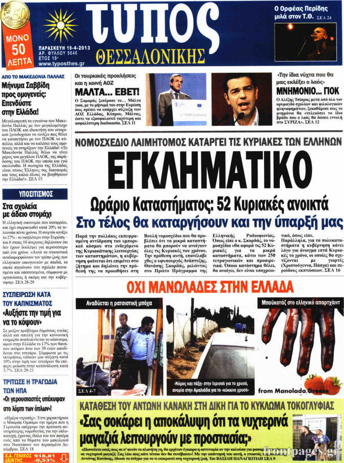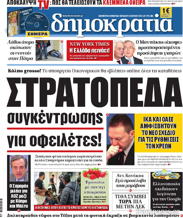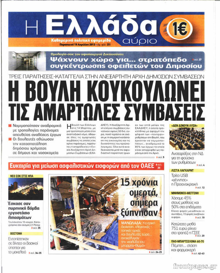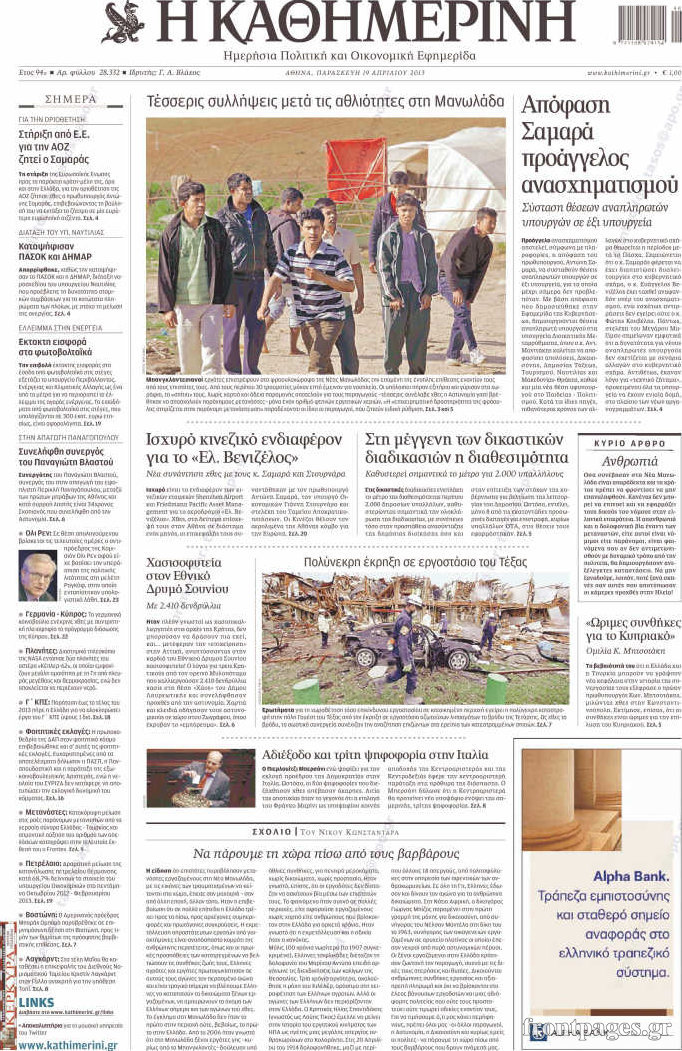 Οι πολιτικές εφημερίδες Enikos Newsroom 08:59, Παρασκευή 19 Απριλίου 2013 Media Οι πολιτικές εφημερίδες Τα πρωτοσέλιδα των πολιτικών εφημερίδων. ΕΦΗΜΕΡΙΔΕΣ ΕΦΗΜΕΡΙΔΕΣ ΠΡΩΤΟΣΕΛΙΔΑ ΠΟΛΙΤΙΚΕΣ ΕΦΗΜΕΡΙΔΕΣ ΠΡΩΤΟΣΕΛΙΔΑ Μοιράσου το: σχολίασε κι εσύ (0 σχόλια) Ακολουθήστε το enikos.gr στο Google News και μάθετε πρώτοι όλες τις ειδήσεις Δείτε όλες τις τελευταίες ειδήσεις από την Ελλάδα και τον Κόσμο στο enikos.gr Ειδήσεις Ροή Ειδήσεων 2 ώρες πριν Τρομοκρατική επίθεση στο Σίδνεϊ: Νεκροί 11 πολίτες και ένας δράστης – Εντοπίστηκε αυτοσχέδιος εκρηκτικός μηχανισμός 1 ώρα πριν ΟΠΕΚΕΠΕ-Κρήτη: Προθεσμία να απολογηθούν από την Τρίτη έως την Πέμπτη έλαβαν οι 16 συλληφθέντες 5 ώρες πριν Σκληραίνουν τη στάση τους οι αγρότες: Αποφασίζουν τις δράσεις της εβδομάδας – Αύριο το συλλαλητήριο στα δικαστήρια της Λάρισας 7 ώρες πριν Κυριάκος Μητσοτάκης μετά το «όχι» των αγροτών: Διάλογος δεν γίνεται με τελεσίγραφα και οι λύσεις προκύπτουν μόνο από συζήτηση 2 ώρες πριν Πανεπιστήμιο Μπράουν: Υπό κράτηση ένα «άτομο ενδιαφέροντος» για το μακελειό με τους 2 νεκρούς και τους 9 τραυματίες 1 ώρα πριν Τα 5 ζώδια που ευνοούνται στα ερωτικά τους έως τις 21 Δεκεμβρίου – «Η επόμενη σχέση σας θα είναι καθοριστική» 2 ώρες πριν Γεωλογική αποκάλυψη: Επιστήμονες εξηγούν πώς η Ιβηρική Χερσόνησος περιστρέφεται σαν… ρολόι 5 ώρες πριν Προπονήτρια ευεξίας που έχασε 24 κιλά αποκαλύπτει: «Αυτά είναι τα 6 ανησυχητικά σημάδια της υψηλής κορτιζόλης» 6 ώρες πριν Τα 8 πράγματα που τα ευτυχισμένα ζευγάρια δεν κάνουν ποτέ μπροστά στα παιδιά τους 13 λεπτά πριν Σαλαμίνα: Έρευνες σε σπίτια και καταστήματα έβγαλαν «λαβράκια» – Δύο συλλήψεις, κατασχέθηκαν όπλα και φυσίγγια 21 λεπτά πριν Κουίζ για την παλιά Αθήνα: Αναγνωρίζετε την οδό; Είναι από τις πιο γνωστές 25 λεπτά πριν Βασίλης Δήμας για Νότη Σφακιανάκη: «Ενδόμυχα έχει ενοχλήσει όχι τόσο με τις απόψεις, αλλά με την παρρησία του» 33 λεπτά πριν Κικίλιας: Επενδύσεις σε ναυτιλία και λιμενικές υποδομές – Η μεγάλη ευκαιρία της ελληνικής οικονομίας για ανάπτυξη 41 λεπτά πριν Χατζηδάκης για αγρότες: «Τα προβλήματα απαιτούν διάλογο, δεν αντιμετωπίζεται η κατάσταση με τελεσίγραφα» ENIKOS NETWORK Πρωτοβουλία της Ελλάδας για ενιαίο ευρωπαϊκό πλαίσιο στη δωρεά σπέρματος και ωαρίων Η ορθολογική χρήση των αντιβιοτικών στο επίκεντρο σεμιναρίου του ΙΣΑ ΟΠΕΚΑ: Ποια επιδόματα καταβάλλονται πριν από τα Χριστούγεννα – Τι αλλάζει μόνιμα από το 2026 ΔΥΠΑ: Οι καταβολές που θα γίνουν την ερχόμενη Τετάρτη Σύγχρονος Νοστράδαμος: Προειδοποιεί για «μεγάλο γεγονός» τους επόμενους μήνες που θα συγκλονίσει τη Βρετανία και τον κόσμο Τεστ παρατηρητικότητας: Μπορείτε να βρείτε τις 3 διαφορές στις εικόνες με έναν πιγκουίνο σε 14 δευτερόλεπτα περισσότερα 16:32 , Κυριακή 14 Δεκεμβρίου 2025 Τηλεθέαση (13/12): Πώς κινήθηκαν οι εκπομπές στην πρωινή ζώνη το Σάββατο Με αμείωτη ένταση συνεχίστηκε η μάχη για την τηλεθέαση στην πρωινή ζώνη των τηλεοπτικών καναλι... 15:07 , Κυριακή 14 Δεκεμβρίου 2025 IQ160: Η Μαρίνα στέλνει το φούτερ του Τηλέμαχου για το τεστ πατρότητας Η Πηνελόπη αποφασίζει να κάνει αμνιοπαρακέντηση, για να βεβαιωθεί για την υγεία του μωρού της ... 12:46 , Κυριακή 14 Δεκεμβρίου 2025 Η Realnews στο www.pressreader.com Διαβάστε την ψηφιακή έκδοση της εφημερίδας στην οθόνη του κινητού, του tablet και του υπολογισ... 10:07 , Κυριακή 14 Δεκεμβρίου 2025 Η γη της ελιάς: Η αρχή του τέλους του Δημοσθένη πλησιάζει Η δραματική σειρά του MEGA «Η γη της ελιάς» επιφυλάσσει ακ