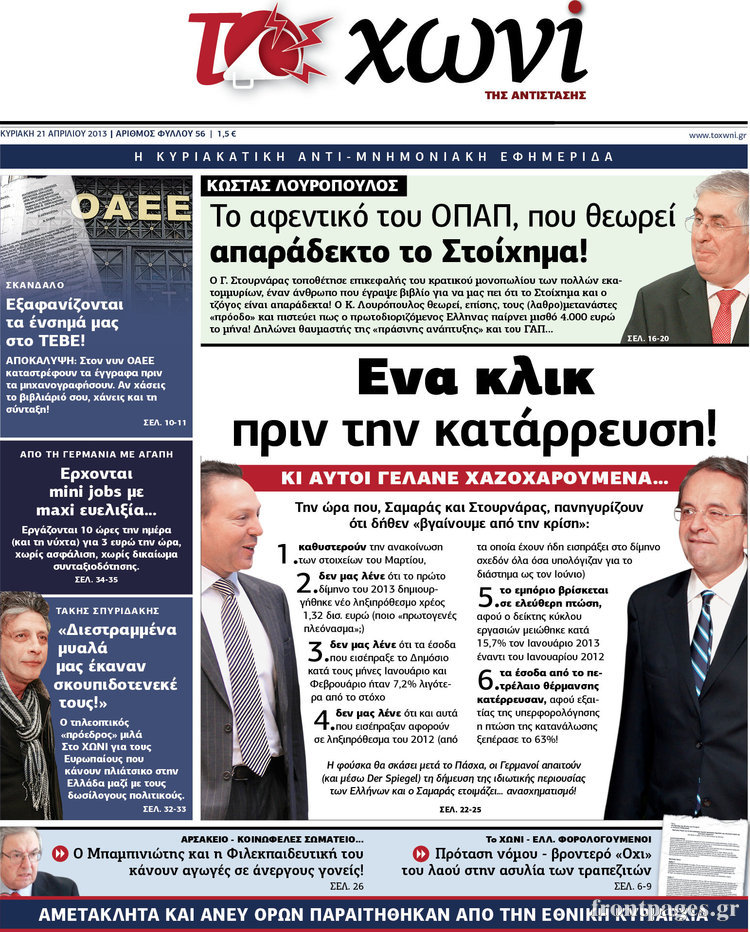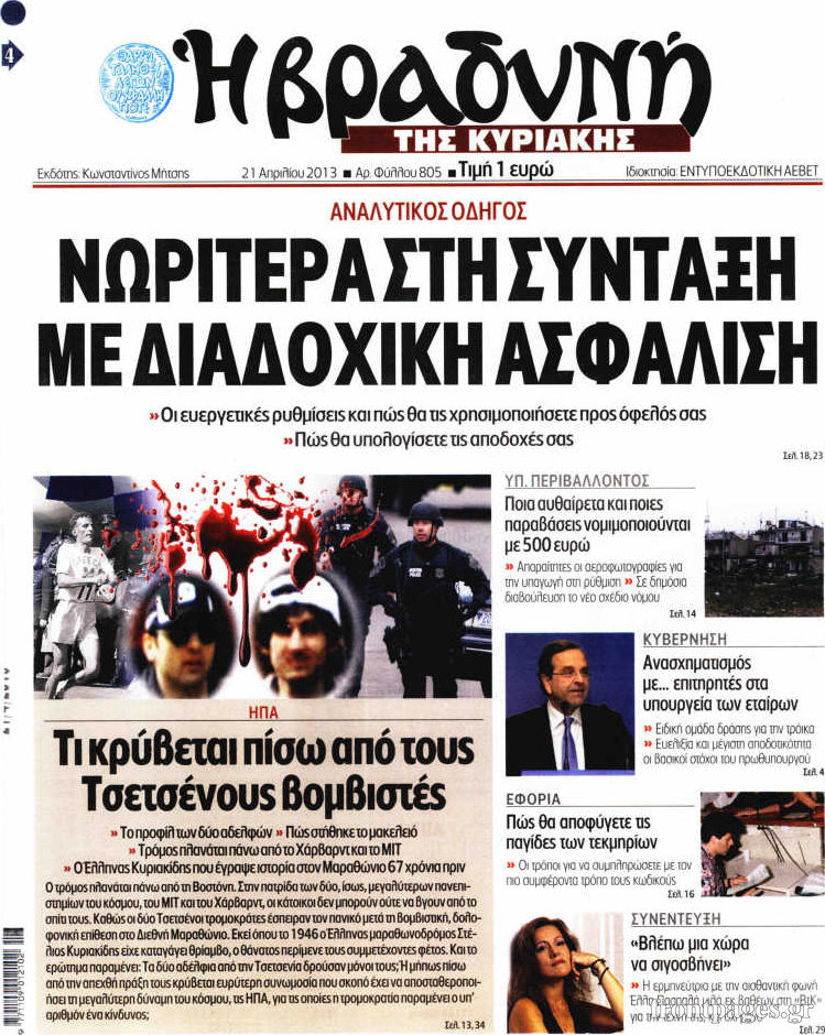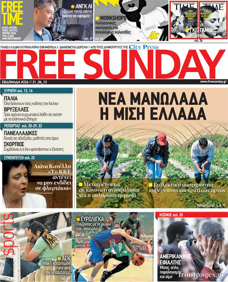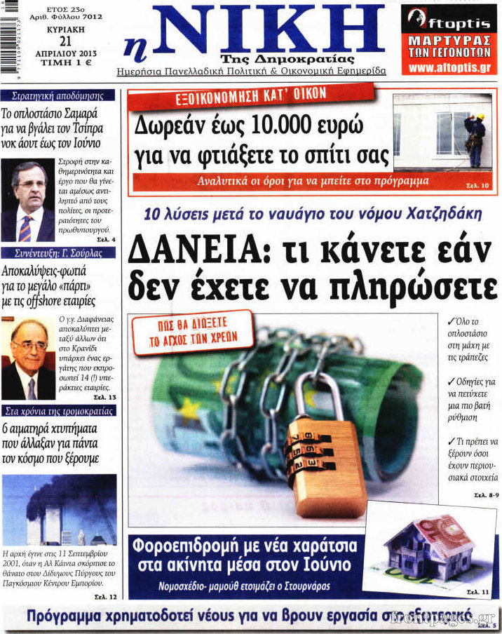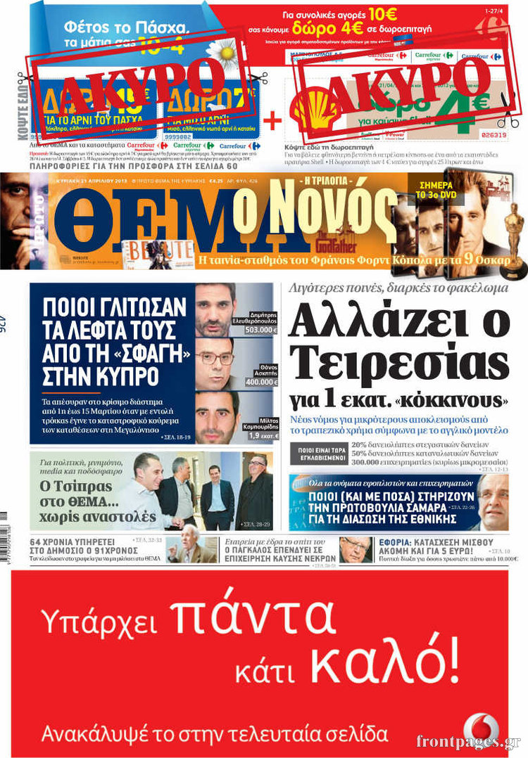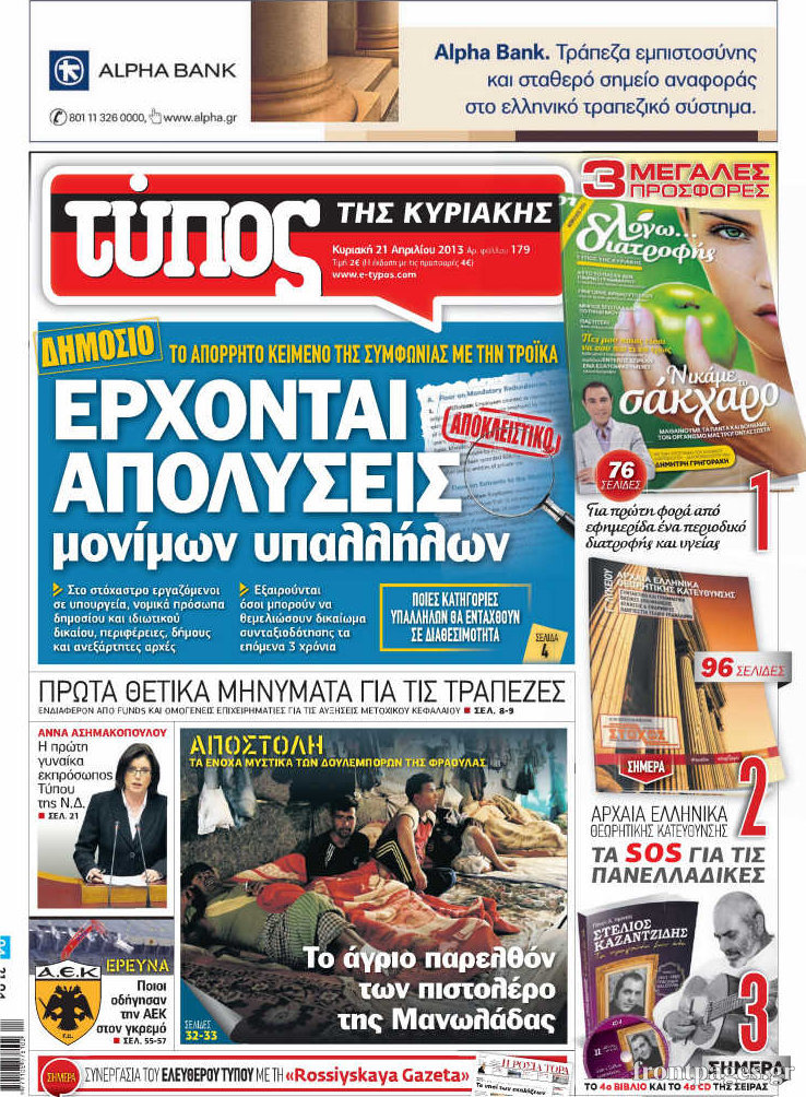 Οι πολιτικές εφημερίδες Enikos Newsroom 09:12, Κυριακή 21 Απριλίου 2013 Media Οι πολιτικές εφημερίδες Τα πρωτοσέλιδα των πολιτικών εφημερίδων. ΕΦΗΜΕΡΙΔΕΣ ΠΟΛΙΤΙΚΕΣ ΕΦΗΜΕΡΙΔΕΣ ΠΡΩΤΟΣΕΛΙΔΑ Μοιράσου το: σχολίασε κι εσύ (0 σχόλια) Ακολουθήστε το enikos.gr στο Google News και μάθετε πρώτοι όλες τις ειδήσεις Δείτε όλες τις τελευταίες ειδήσεις από την Ελλάδα και τον Κόσμο στο enikos.gr Ειδήσεις Ροή Ειδήσεων 3 ώρες πριν Χριστούγεννα στα μπλόκα: Επιμένουν στις κινητοποιήσεις τους οι αγρότες – Ανοίγουν τα διόδια το Σαββατοκύριακο 4 ώρες πριν Ουκρανία: Η άνευ προηγουμένου επίθεση σε ρωσικό τάνκερ στη Μεσόγειο και το μήνυμα προς στον Πούτιν – Το «μακρύ χέρι» του Κιέβου 3 ώρες πριν Πούτιν: Τα μηνύματα σε Ευρώπη και ΝΑΤΟ από το μαραθώνιο «σόου» του – Η απαίτηση για «σεβασμό» και η ειρήνη «με τους όρους» της Μόσχας 4 ώρες πριν Τραμπ: Δεν αποκλείει την πιθανότητα ενός πολέμου στη Βενεζουέλα – «Ο Μαδούρο ξέρει καλύτερα από τον καθένα τι ακριβώς θέλω» 5 ώρες πριν Συνεχίζει να προκαλεί ο Μίτσκοσκι: «Για μένα το όνομα Μακεδονία είναι ιερό» 3 ώρες πριν Ανακαλύφθηκαν αρχαία χρυσά νομίσματα 2.200 ετών που απεικονίζουν τον θεό Απόλλωνα – Η άγνωστη σύνδεση με τον Φίλιππο Β΄ της Μακεδονίας 4 ώρες πριν Ύπνος: Μια κρυφή κατάσταση του εγκεφάλου πριν από τον ύπνο μπορεί να είναι το “κλειδί” για υψηλή ευφυΐα και δημιουργικότητα 5 ώρες πριν Αριθμολογία: Οι άνθρωποι που έχουν γεννηθεί αυτές τις 4 ημερομηνίες, συχνά παρεξηγούνται – «Η καλοσύνη τους κρύβει τεράστια δύναμη» 6 ώρες πριν Ξεχάστε το καθάρισμα το Σαββατοκύριακο: Ο «κανόνας των 20 λεπτών» που θα σας λύσει τα χέρια 24 λεπτά πριν Πρόταση γάμου στο ΣΕΦ κατά την διάρκεια του αγώνα Ολυμπιακός-Βιλερμπάν – Δείτε βίντεο 39 λεπτά πριν Euroleague: Επέστρεψε στις νίκες ο Ολυμπιακός, πήρε την ματσάρα της χρονιάς η Μπάρτσα – Τα αποτελέσματα και η βαθμολογία 54 λεπτά πριν Συρία: Μαζικά πλήγματα των ΗΠΑ σε θέσεις του Ισλαμικού Κράτους – Χέγκσεθ: «Δεν είναι αρχή πολέμου, είναι μια δήλωση εκδίκησης» για το θάνατο των στρατιωτών μας 1 ώρα πριν Ουκρανία: Ολοκληρώθηκαν οι συνομιλίες με τους Αμερικανούς κι Ευρωπαίους διαπραγματευτές 1 ώρα πριν Μπαρτσελόνα – Μπασκόνια 134-124: Οι «μπλαουγκράνα» πήραν το ματς της χρονιάς ύστερα από τρεις παρατάσεις ENIKOS NETWORK Το ΕΚΑΒ τιμήθηκε από την Ακαδημία Αθηνών για τα 40 χρόνια προσφοράς του Έχετε πραγματικά μεγάλη καρδιά; 10 χαρακτηριστικά όσων έχουν καλοσύνη Αναστολή μέτρων αναγκαστικής εκτέλεσης για κτηνοτρόφους που πλήττονται από την ευλογιά των αιγοπροβάτων Πλήρης επάρκεια προϊόντων στις λαϊκές της Αττικής, παρά τις αγροτικές κινητοποιήσεις – Τι απαντούν οι πωλητές Χαρτογραφώντας το «σημείο χωρίς επιστροφή»: Για πρώτη φορά αποκαλύπτεται με λεπτομέρεια το ακανθώδες όριο της ατμόσφαιρας τ... Η Google καταργεί τη λειτουργία «dark web report» – Πώς θα μπορούν οι χρήστες να διαγράφουν τα δεδομένα τους περισσότερα 22:42 , Παρασκευή 19 Δεκεμβρίου 2025 Γιώργος Γιαννόπουλος για “Το σόι σου”: “Είναι ευτυχία και ευλογία αυτή η σειρά” «Είναι ευτυχία και ευλογία η συγκυρία αυτής της σειράς», θα πει ο Γιώργος Γιαννόπουλος -ο αγαπ... 20:37 , Παρασκευή 19 Δεκεμβρίου 2025 Don’t Forget The Lyrics: Η Έλλη Κοκκίνου υποδέχεται 4 παίκτες που θα κάνουν τα πάντα για να μη χάσουν ούτε… μισή λέξη από τους στίχους Το «Don’t Forget The Lyrics» επιστρέφει απόψε, Παρασκευή 19 Δεκεμβρίου, στις 21:00 με νέο επει... 19:31 , Παρασκευή 19 Δεκεμβρίου 2025 GNTM: Απόψε ο μεγάλος τελικός για τους 4 φιναλίστ Έπειτα από