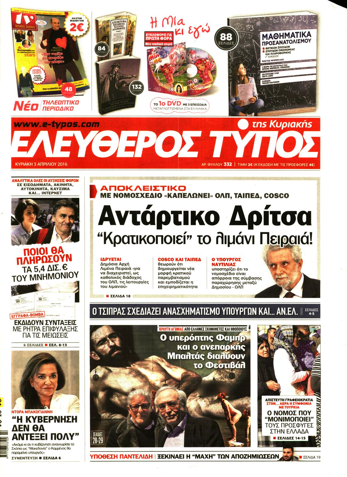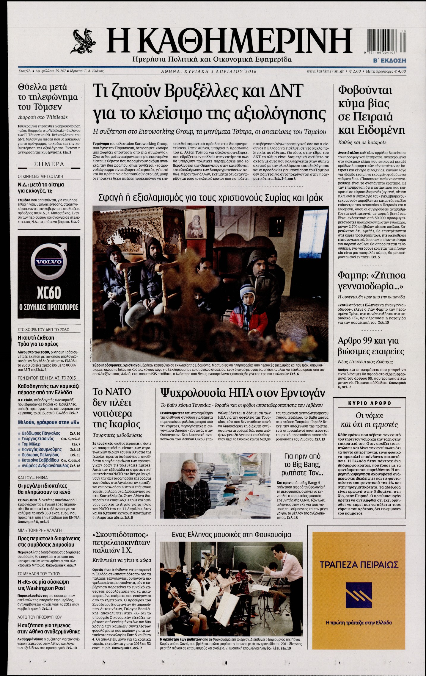 Οι πολιτικές εφημερίδες 3/4/2016 Enikos Newsroom 04:48, Κυριακή 03 Απριλίου 2016 Media Διαβάστε τα σημερινά πρωτοσέλιδα των πολιτικών εφημερίδων: ΠΟΛΙΤΙΚΕΣ ΕΦΗΜΕΡΙΔΕΣ ΠΡΩΤΟΣΕΛΙΔΑ Μοιράσου το: σχολίασε κι εσύ (0 σχόλια) Ακολουθήστε το enikos.gr στο Google News και μάθετε πρώτοι όλες τις ειδήσεις Δείτε όλες τις τελευταίες ειδήσεις από την Ελλάδα και τον Κόσμο στο enikos.gr Ειδήσεις Ροή Ειδήσεων 3 ώρες πριν Η Ουκρανία χτύπησε τάνκερ του σκιώδους στόλου της Ρωσίας στη Μεσόγειο – Έπλεε νότια της Κρήτης 1 ώρα πριν Πούτιν: Σαρκαστικά μηνύματα, παράπονα και απρόοπτα στη συνέντευξη Τύπου – Η πρόταση γάμου on air και οι ερωτήσεις για τα αγγούρια και τους… εξωγήινους 2 ώρες πριν Η απάντηση της κυβέρνησης στα αιτήματα των αγροτών: 16+4 υλοποιούνται ή βρίσκονται υπό επεξεργασία για να βρεθεί λύση – 7 δεν μπορούν να επιλυθούν 2 ώρες πριν Θεσσαλονίκη: Στη φυλακή ο 44χρονος που κατηγορείται ότι προσπάθησε να πνίξει με κορδόνι την 34χρονη σύντροφό του 2 ώρες πριν Εξώδικο επιχειρηματία στον Γιώργο Μαζωνάκη – Τι απαντά στις καταγγελίες του τραγουδιστή 1 ώρα πριν Τα 5 ζώδια που ευνοούνται στην ερωτική ζωή τους την επόμενη εβδομάδα – «Η ενέργεια του Αιγόκερου φέρνει αγάπη και σταθερότητα» 6 ώρες πριν Γεμάτος νεροχύτης; 5 σοβαρές ευθύνες που «φοβίζουν» όσους αφήνουν άπλυτα πιάτα 5 ώρες πριν Ειδικός μοιράζεται 6 κόλπα για να διατηρείστε σε φόρμα με πάνω από 40 ώρες εργασίας την εβδομάδα: «Προπονηθείτε πριν από τη δουλειά, όχι μετά» 2 ημέρες πριν 20 χρόνια τα Χριστούγεννα ξεκινούν στα Public με μεγάλη ποικιλία σε δώρα! 4 λεπτά πριν Μακρόν: Η Ευρώπη πρέπει να συνεργαστεί με τον Πούτιν αν αποτύχουν οι προσπάθειες των ΗΠΑ για ειρηνευτική συμφωνία 10 λεπτά πριν ΟΠΑΠ: Φρέσκια και δυναμική καμπάνια για το Υπεύθυνο Παιχνίδι με Χριστουγεννιάτικη διάθεση 12 λεπτά πριν ΟΗΕ: Δεν υπάρχει πλέον λιμός στη Γάζα αλλά η επισιτιστική ανασφάλεια παραμένει 18 λεπτά πριν Τραγωδία στη Λάρισα: Νεκρή γυναίκα που παρασύρθηκε από φορτηγό 24 λεπτά πριν Κασπία Θάλασσα: Ουκρανικά πλήγματα με drones σε ρωσική εξέδρα άντλησης πετρελαίου ENIKOS NETWORK ΕΛΣΤΑΤ: Αύξηση κατά 1,7% των επαγγελματιών υγείας το 2024 Τάξη στις ιατρικές διαφημίσεις για την προστασία των πολιτών βάζει ο ΙΣΑ Παπαθανάσης για νέο Εθνικό Πρόγραμμα Ανάπτυξης 2026-2030: Είναι υπερδιπλάσιο από αυτό της προηγούμενης προγραμματικής περιό... Βουλή: Υπερψηφίστηκε το νομοσχέδιο για τη μετάβαση του ΟΠΕΚΕΠΕ στην ΑΑΔΕ Χαρτογραφώντας το «σημείο χωρίς επιστροφή»: Για πρώτη φορά αποκαλύπτεται με λεπτομέρεια το ακανθώδες όριο της ατμόσφαιρας τ... Η Google καταργεί τη λειτουργία «dark web report» – Πώς θα μπορούν οι χρήστες να διαγράφουν τα δεδομένα τους περισσότερα 15:15 , Παρασκευή 19 Δεκεμβρίου 2025 Την Κυριακή με τη Realnews: Ό,τι και αν αγοράσεις, σκανάρεις και κερδίζεις! Την Κυριακή με τη Realnews: Ό,τι και αν αγοράσεις, σκανάρεις και κερδίζεις! Με το PADU app, το... 08:00 , Παρασκευή 19 Δεκεμβρίου 2025 Την Κυριακή με τη Realnews: Δωροεπιταγή 10€ Δωροεπιταγή αξίας 10€ για αγορές άνω των 60€ από τα πολυκαταστήματα FactoryOutlet H προσφορά ι... 05:48 , Παρασκευή 19 Δεκεμβρίου 2025 Οι οικονομικές εφημερίδες 19/12/2025 Διαβάστε τα πρωτοσέλιδα από τις οικονομικές εφημερίδες, σήμερα 19/12/2025. 05:43 , Παρασκευή 19 Δεκεμβρίου 2025 Οι αθλητικές εφημερίδες 19/12/2025 Διαβάστε τα πρωτοσέλιδα από τις αθλητικές εφημερίδες, σήμερα 19/12/2025. ΤΕΛΕΥΤΑΙΕΣ ΕΙΔΗΣΕΙΣ 4 λεπτά πριν Μακρόν: Η Ευρώπη πρέπει να συνεργαστεί με τον Πούτιν... 10 λεπτά πριν ΟΠΑΠ: Φρέσκια και δυναμική καμπάνια για το 