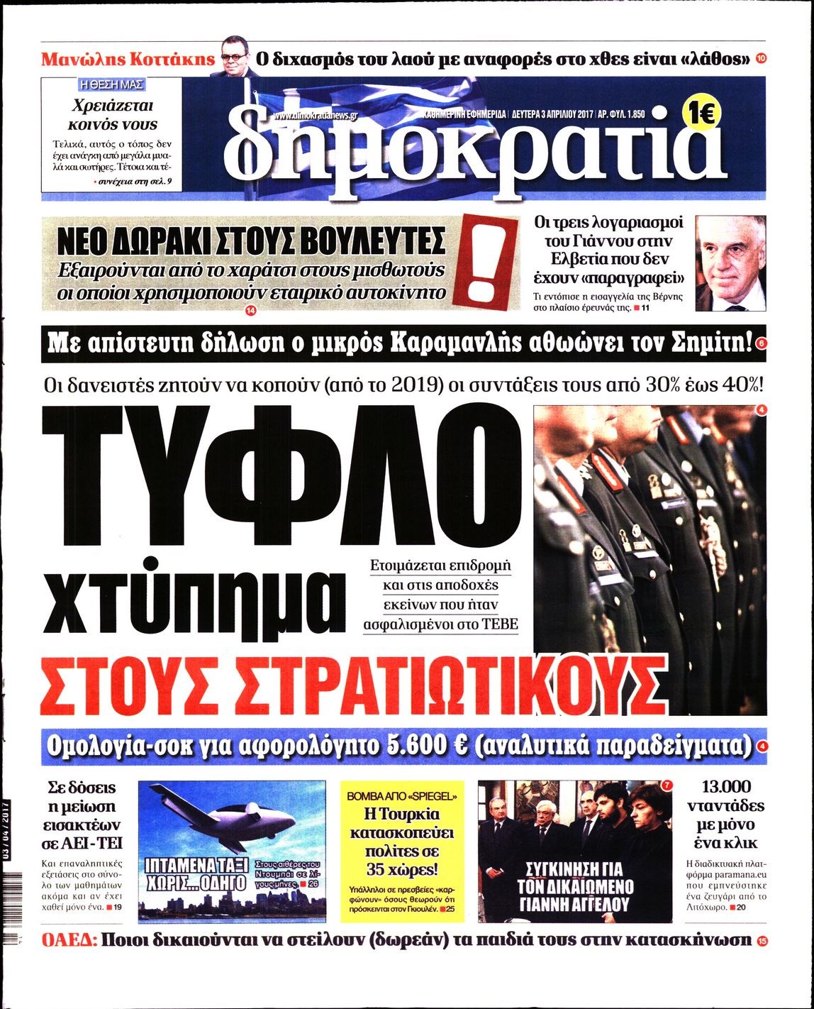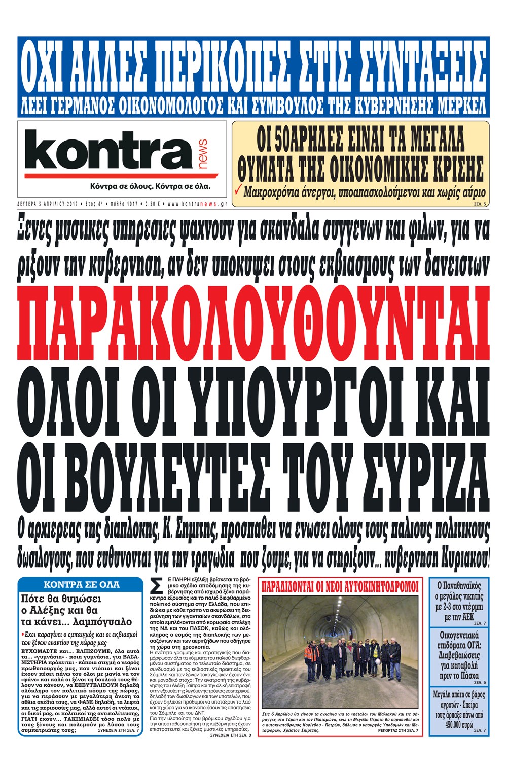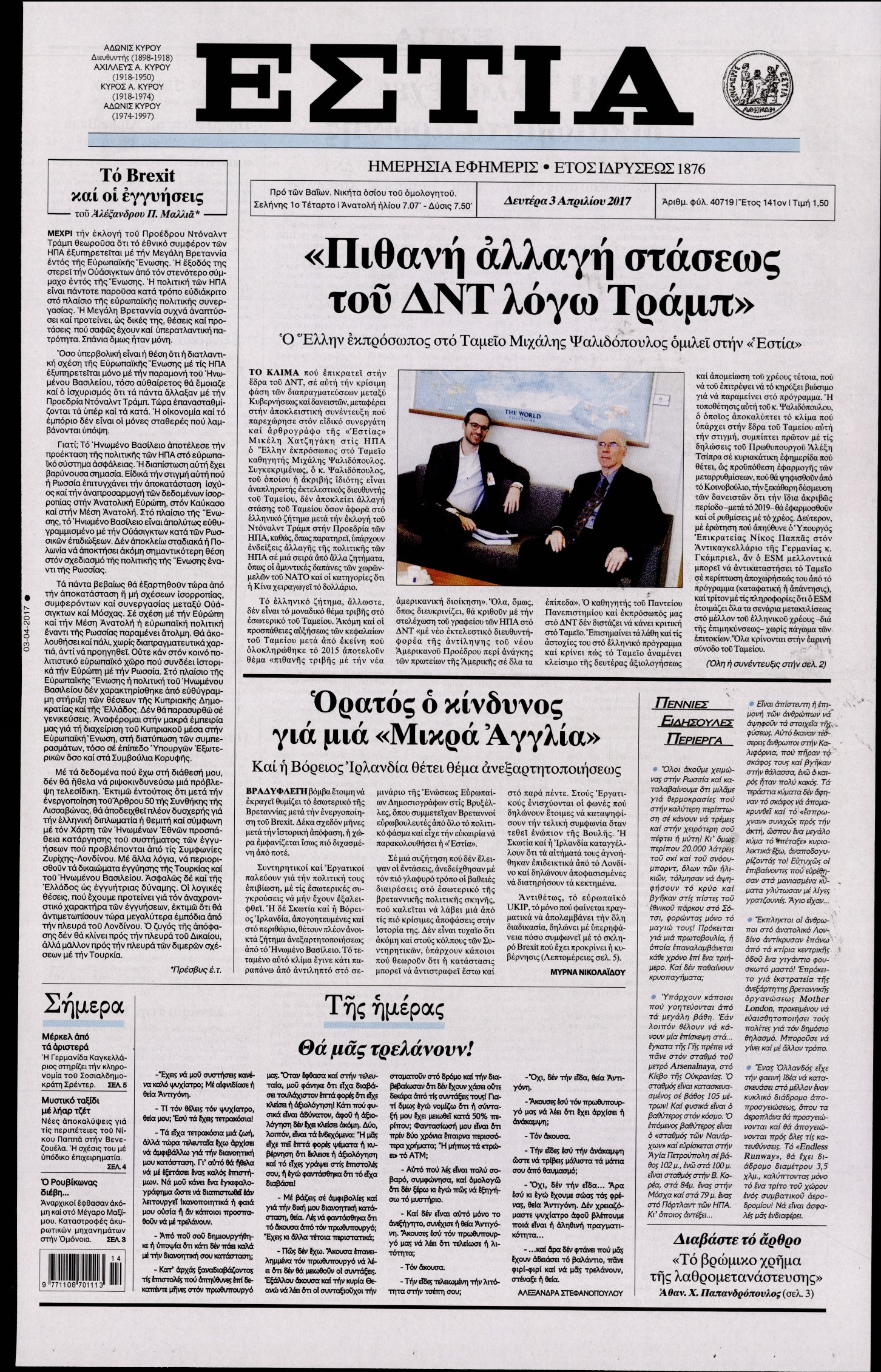 Οι πολιτικές εφημερίδες 3/4/2017 Enikos Newsroom 06:55, Δευτέρα 03 Απριλίου 2017 Media Διαβάστε τα σημερινά πρωτοσέλιδα των πολιτικών εφημερίδων: ΠΟΛΙΤΙΚΕΣ ΕΦΗΜΕΡΙΔΕΣ ΠΡΩΤΟΣΕΛΙΔΑ Μοιράσου το: σχολίασε κι εσύ (0 σχόλια) Ακολουθήστε το enikos.gr στο Google News και μάθετε πρώτοι όλες τις ειδήσεις Δείτε όλες τις τελευταίες ειδήσεις από την Ελλάδα και τον Κόσμο στο enikos.gr Ειδήσεις Ροή Ειδήσεων 5 ώρες πριν Εκτός ευρωομάδας ΣΥΡΙΖΑ ο Νίκος Παππάς μετά την επίθεση στον δημοσιογράφο Νίκο Γιαννόπουλο – Η μήνυση και οι νέες δηλώσεις 6 ώρες πριν «Αγριεύουν» οι αγρότες: «Δεν συντρέχει λόγος συνάντησης με τον πρωθυπουργό» – Ώρα αποφάσεων στη σύσκεψη της Πέμπτης 6 ώρες πριν Κυψέλη: Χωρίς την οικογένειά της δίπλα της απολογήθηκε η 16χρονη – «Της είχε επιτεθεί κάποιος για να την βιάσει, φοβήθηκε και κυκλοφορούσε με μαχαίρι» 5 ώρες πριν Politico: Το πρόβλημα της Ευρώπης δεν είναι το Βέλγιο αλλά ο Ντόναλντ Τραμπ 7 ώρες πριν Αλεξανδρούπολη: Πολυοργανική ανεπάρκεια λόγω υποσιτισμού η αιτία θανάτου του 3χρονου αγοριού 6 ώρες πριν Μυστήριο με τεράστιες κυκλικές πέτρες 200 κιλών – Ανακαλύφθηκαν τυχαία κατά τη διάρκεια οδικών έργων και κανείς δεν ξέρει από πού προέρχονται 7 ώρες πριν Ύπνος: Ειδικός εξηγεί τον πραγματικό λόγο που ξυπνάτε στις 4 τα ξημερώματα – Ο ρόλος των ορμονών και του κιρκάδιου ρυθμού 8 ώρες πριν Αριθμολογία: Οι άνθρωποι που έχουν γεννηθεί αυτές τις 4 ημερομηνίες, είναι τρυφεροί και αγαπούν ανιδιοτελώς 19 ώρες πριν 20 χρόνια τα Χριστούγεννα ξεκινούν στα Public με μεγάλη ποικιλία σε δώρα! 13 λεπτά πριν Κτηνοτρόφοι: Με δάκρυα στα μάτια ζουν τον εφιάλτη των άδειων στάβλων – «Καταστράφηκαν οι ζωές μας» 28 λεπτά πριν Νέο αμερικανικό πλήγμα σε σκάφος που φέρεται να μετέφερε ναρκωτικά στον Ειρηνικό – Τέσσερις νεκροί 43 λεπτά πριν Αλ Τσαντίρι Νιουζ: «Λύγισε» ο Δημήτρης Λάλος για τον Δημήτρη Ήμελλο – «Τον μνημονεύω, να ‘ναι καλά εκεί που είναι» 58 λεπτά πριν GNTM: Με δάκρυα τον αποχαιρέτησε η Ηλιάνα Παπαγεωργίου πριν από τον ημιτελικό – «Αισθάνομαι πολύ παράξενα» 1 ώρα πριν Αμερικανικά στρατεύματα στον Ισημερινό για «προσωρινή» επιχείρηση κατά των ναρκωτικών ENIKOS NETWORK Αϋπνία: Το κόλπο που θα σας βοηθήσει να κοιμηθείτε απόψε – Είναι απλό και έχει αποτέλεσμα 2,6 εκατομμύρια πολίτες έχουν ήδη εμβολιαστεί κατά της γρίπης ΕΛΣΤΑΤ: Τι δείχνουν τα νέα στοιχεία για τις ηλεκτρονικές παραγγελίες των επιχειρήσεων ΚΕΠΕ: Οι 3 διακριτές συμβολές των ΜμΕ και της μεταποίησης στην ελληνική οικονομία Χαρτογραφώντας το «σημείο χωρίς επιστροφή»: Για πρώτη φορά αποκαλύπτεται με λεπτομέρεια το ακανθώδες όριο της ατμόσφαιρας τ... Η Google καταργεί τη λειτουργία «dark web report» – Πώς θα μπορούν οι χρήστες να διαγράφουν τα δεδομένα τους περισσότερα 02:30 , Πέμπτη 18 Δεκεμβρίου 2025 Αλ Τσαντίρι Νιουζ: Η κόρη της Πάολα στο κοινό – Η ατάκα Λαζόπουλου που την έκανε να «κοκκινήσει» Γιορτινή διάθεση και ευχάριστες στιγμές γέμισε η αποψινή, τελευταία για το 2025, εκπομπή του «... 22:24 , Τετάρτη 17 Δεκεμβρίου 2025 Το Σπίτι Δίπλα Στο Ποτάμι: Σε κίνδυνο η υγεία του Απόστολου – Τι θα δούμε απόψε “Το Σπίτι Δίπλα στο Ποτάμι” ξετυλίγει το νήμα της ζωής των πέντε αδελφών με καταισ... 21:14 , Τετάρτη 17 Δεκεμβρίου 2025 Παιχνίδια Εκδίκησης: Θα καταφέρει ο Χρήστος να κλονίσει την εμπιστοσύνη της Μάγιας απέναντι στον Άγη; Τα «Παιχνίδια Εκδίκησης» έρχονται απόψε στις 22:30, στον Αντ1, με το τελευταίο επεισόδιο της χ... 20:57 , Τετάρτη 17 Δεκεμβρίου 2025 Άγιος Έρωτας: Η Χλόη κ