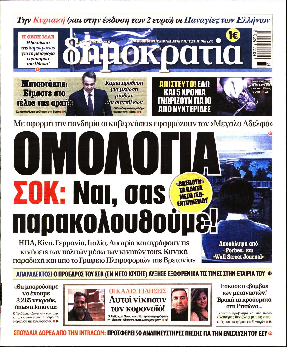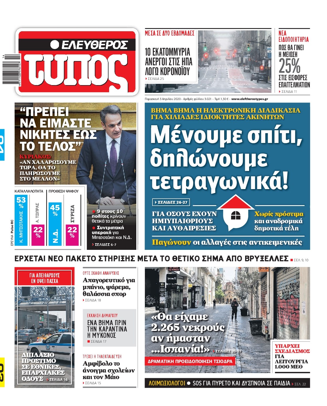 Οι πολιτικές εφημερίδες 3/4/2020 Διονύσης Νίκκας 06:15, Παρασκευή 03 Απριλίου 2020 Media Διαβάστε τα πρωτοσέλιδα των πολιτικών εφημερίδων… ΠΟΛΙΤΙΚΕΣ ΕΦΗΜΕΡΙΔΕΣ ΠΡΩΤΟΣΕΛΙΔΑ Μοιράσου το: σχολίασε κι εσύ (0 σχόλια) Ακολουθήστε το enikos.gr στο Google News και μάθετε πρώτοι όλες τις ειδήσεις Δείτε όλες τις τελευταίες ειδήσεις από την Ελλάδα και τον Κόσμο στο enikos.gr Ειδήσεις Ροή Ειδήσεων 7 ώρες πριν Χριστούγεννα στα μπλόκα οι αγρότες: Άνοιξαν στα διόδια και μοίρασαν προϊόντα στους πολίτες – Νέα σύσκεψη την Κυριακή στη Νίκαια 5 ώρες πριν Ρετζέπ Ταγίπ Ερντογάν: Δεν έχουμε καμία βλέψη στα εδάφη ή την κυριαρχία κανενός – Δεν θα επιτρέψουμε να παραβιαστούν τα δικαιώματά μας 6 ώρες πριν H ακτοφυλακή των ΗΠΑ κατάσχεσε και δεύτερο τάνκερ στα ανοιχτά της Βενεζουέλας – Δείτε βίντεο 7 ώρες πριν Κύκλωμα διακίνησης ναρκωτικών σε σχολεία: Τηλεφωνούσαν στους ανηλίκους την ώρα του μαθήματος – Οι διάλογοι-σοκ, τα «ψευδώνυμα» και τα βασανιστήρια 7 ώρες πριν Αρχεία Επστάιν: Οι 500 σελίδες που λείπουν, τα αναπάντητα ερωτήματα και οι επώνυμοι – Τι έπεται 7 ώρες πριν Αποκαλύφθηκε το άγνωστο «GPS» της αρχαιότητας – Πώς οι ναοί «φώτιζαν» τον δρόμο των ναυτικών πριν από την εφεύρεση των φάρων 8 ώρες πριν Ύπνος: Η διατροφή που μπορεί να σας βοηθήσει να κοιμάστε καλύτερα και να ζήσετε περισσότερο 9 ώρες πριν Αριθμολογία: Ο αριθμός του φύλακα αγγέλου σας, με βάση τον μήνα γέννησής σας – «Έτσι σας στέλνει σημάδια το σύμπαν» 21 ώρες πριν Enerwave: Το νέο «ρεύμα» στη λιανική ενέργειας που αλλάζει την εμπειρία του καταναλωτή 2 λεπτά πριν Τα ζώδια σήμερα, Κυριακή 21 Δεκεμβρίου: Αιγόκεροι, αποφασίζετε για το επόμενο κεφάλαιο της ζωής σας 10 λεπτά πριν Εφημερεύοντα φαρμακεία σε Αθήνα και Θεσσαλονίκη (21/12) 18 λεπτά πριν Γιαννούλης Λαρεντζάκης: Πρόταση γάμου στην αρραβωνιαστικιά του, Γιώτα Γεωργοπούλου, έκανε ο παίκτης του Ολυμπιακού – Δείτε φωτογραφίες και βίντεο 24 λεπτά πριν Σήμερα με τη Realnews: Δωροεπιταγή 10€ 32 λεπτά πριν Χριστουγεννιάτικο τραπέζι: Την… ανηφόρα έχουν πάρει οι τιμές στα αμνοερίφια – Σε έτοιμα παρασκευάσματα κρέατος καταλήγουν οι καταναλωτές ENIKOS NETWORK Οι γυναίκες αποκαλύπτουν το πιο ελκυστικό πράγμα που μπορεί να κάνει ένας άνδρας Ομορφιά και αντιγήρανση: Ειδικοί μιλούν για συσκευές περιποίησης του δέρματος «Πολεμική» προετοιμασία από την ευρωπαϊκή βιομηχανία ενέργειας – Η Eurelectric ζητεί «ομπρέλα» προστασίας για τις υποδομές Ακύρωση ΑΦΜ για απάτες – Ποιους βάζει στο στόχαστρο η ΑΑΔΕ Χαρτογραφώντας το «σημείο χωρίς επιστροφή»: Για πρώτη φορά αποκαλύπτεται με λεπτομέρεια το ακανθώδες όριο της ατμόσφαιρας τ... Η Google καταργεί τη λειτουργία «dark web report» – Πώς θα μπορούν οι χρήστες να διαγράφουν τα δεδομένα τους περισσότερα 05:08 , Κυριακή 21 Δεκεμβρίου 2025 Σήμερα με τη Realnews: Δωροεπιταγή 10€ Δωροεπιταγή αξίας 10€ για αγορές άνω των 60€ από τα πολυκαταστήματα FactoryOutlet H προσφορά ι... 04:08 , Κυριακή 21 Δεκεμβρίου 2025 Σήμερα με τη Realnews: Ό,τι και αν αγοράσεις, σκανάρεις και κερδίζεις! Σήμερα με τη Realnews: Ό,τι και αν αγοράσεις, σκανάρεις και κερδίζεις! Με το PADU app, το κορυ... 03:08 , Κυριακή 21 Δεκεμβρίου 2025 Σήμερα με τη Realnews: Instyle, μαζί Drive και Realnews Geopolitics Σήμερα με τη Realnews: Instyle, μαζί Drive και Realnews Geopolitics Instyle Η Άννα Ρεζάν, η Ch... 01:30 , Κυριακή 21 Δεκεμβρίου 2025 Άννα Βίσση: Τα… Social Media «προσκύνησαν» την «απόλυτη» για την συναυλία της στο Καλλιμάρμαρο που προβλήθηκε από το Mega Την ημέρα των γενεθλίων της Άννας Βίσση, το MEGA τίμησε τη διαχρ