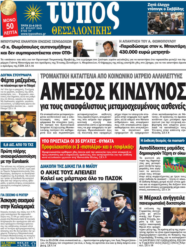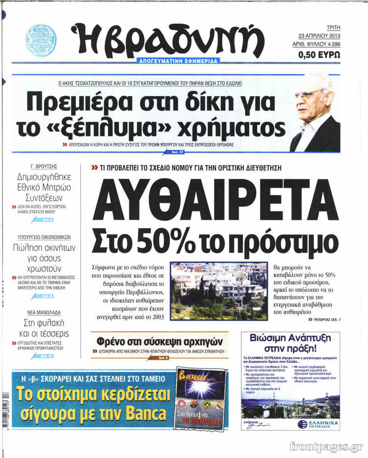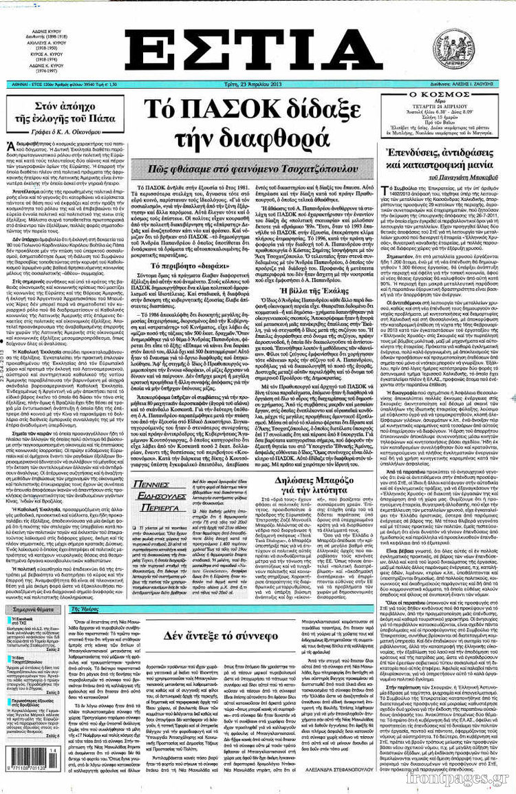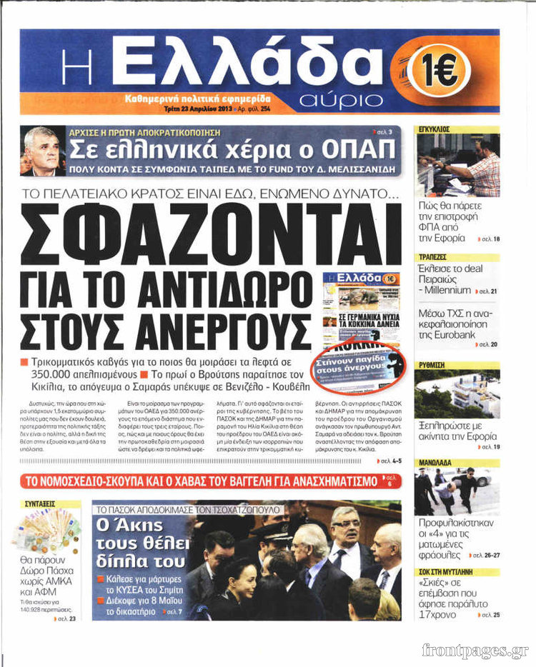 Οι πολιτικές εφημερίδες Enikos Newsroom 08:58, Τρίτη 23 Απριλίου 2013 Media Οι πολιτικές εφημερίδες Τα πρωτοσέλιδα των πολιτικών εφημερίδων. ΕΦΗΜΕΡΙΔΕΣ ΠΟΛΙΤΙΚΕΣ ΕΦΗΜΕΡΙΔΕΣ ΠΡΩΤΟΣΕΛΙΔΑ Μοιράσου το: σχολίασε κι εσύ (0 σχόλια) Ακολουθήστε το enikos.gr στο Google News και μάθετε πρώτοι όλες τις ειδήσεις Δείτε όλες τις τελευταίες ειδήσεις από την Ελλάδα και τον Κόσμο στο enikos.gr Ειδήσεις Ροή Ειδήσεων 1 ώρα πριν Πώς δρούσε το κύκλωμα που διακινούσε ναρκωτικά σε σχολεία – Υπέβαλαν σε βασανιστήρια όσους δεν τηρούσαν τους «κανόνες πειθαρχίας» 2 ώρες πριν Αγρότες: Γιορτές στα μπλόκα με ανοιχτά διόδια – Δικογραφία στα Ιωάννινα για το σήκωμα των μπαρών 6 ώρες πριν Αρχεία Έπσταϊν: Οι συγκλονιστικές φωτογραφίες – Ο Μάικλ Τζάκσον, ο Μικ Τζάγκερ και ο Κέβιν Σπέισι ανάμεσα στους διάσημους που απεικονίζονται 26 λεπτά πριν NBC: Ο Νετανιάχου σχεδιάζει να ενημερώσει τον Τραμπ για πιθανά νέα πλήγματα εναντίον του Ιράν 35 λεπτά πριν Αττική: Εξαρθρώθηκε εγκληματική οργάνωση που έκλεβε οχήματα, τα παραποιούσε και τα μεταπωλούσε σε πολίτες – Πώς δρούσε το κύκλωμα 2 ώρες πριν Η τύχη χαμογελά σε 3 ζώδια έως τις 28 Δεκεμβρίου – «Προσέξτε τις επιλογές σας και η επιμονή σας θα ανταμειφθεί» 6 ώρες πριν Διαιτολόγος αποκαλύπτει 9 πρωινές συνήθειες που «λιώνουν» το κοιλιακό λίπος – «Υποστηρίζουν την υγιεινή απώλεια βάρους» 3 ώρες πριν Μία ανεκμετάλλευτη πηγή θα μπορούσε να προσφέρει ανεξάντλητη ενέργεια – Οι επιστήμονες ίσως γνωρίζουν πώς να την ξεκλειδώσουν 9 ώρες πριν Enerwave: Το νέο «ρεύμα» στη λιανική ενέργειας που αλλάζει την εμπειρία του καταναλωτή 7 λεπτά πριν Νιούκαστλ – Τσέλσι 2-2: Αλύγιστοι οι Λονδρέζοι 17 λεπτά πριν Μικαέλα Μπέντχαους: Ο πρώτος άνθρωπος σε αναπηρικό αμαξίδιο που ταξίδεψε στο διάστημα – ΒΙΝΤΕΟ 26 λεπτά πριν NBC: Ο Νετανιάχου σχεδιάζει να ενημερώσει τον Τραμπ για πιθανά νέα πλήγματα εναντίον του Ιράν 35 λεπτά πριν Αττική: Εξαρθρώθηκε εγκληματική οργάνωση που έκλεβε οχήματα, τα παραποιούσε και τα μεταπωλούσε σε πολίτες – Πώς δρούσε το κύκλωμα 44 λεπτά πριν Κωνσταντίνος Αργυρός: «Δεν θέλω να ασχοληθώ με την πολιτική σε αυτή τη φάση – Μου έχουν γίνει προτάσεις» ENIKOS NETWORK Γιατί πρέπει να ζητάμε χάρες; Ποιο είναι το φαινόμενο Ben Franklin που κάνει τους άλλους να μας συμπαθούν Η αποχή από την αναπαραγωγή παρατείνει τη ζωή στα ζώα, σύμφωνα με μελέτη – Τι ισχύει για τους ανθρώπους; Τράπεζες: Πόσες ημέρες θα είναι κλειστές μέσα στις γιορτές Στα ύψη ο χρυσός – Νέο ρεκόρ στην τιμή της λίρας, πόσο πωλείται Χαρτογραφώντας το «σημείο χωρίς επιστροφή»: Για πρώτη φορά αποκαλύπτεται με λεπτομέρεια το ακανθώδες όριο της ατμόσφαιρας τ... Η Google καταργεί τη λειτουργία «dark web report» – Πώς θα μπορούν οι χρήστες να διαγράφουν τα δεδομένα τους περισσότερα 14:04 , Σάββατο 20 Δεκεμβρίου 2025 Η Realnews αυτής της Κυριακής (21/12/2025) Με τίτλο: «Ασπίδα προστασίας για την Ελλάδα» κυκλοφορεί, αυτήν την Κυριακή, η Realnews. Σημαντ... 12:53 , Σάββατο 20 Δεκεμβρίου 2025 Να μ’ αγαπάς: Το παρελθόν έρχεται στο φως – Καταιγιστικές εξελίξεις στα τελευταία επεισόδια του 2025 Ο Άγγελος αποκαλύπτεται, η Φωτεινή ανησυχεί για τον Λευτέρη και η Ζωή έρχεται αντιμέτωπη με το... 11:41 , Σάββατο 20 Δεκεμβρίου 2025 «Η αγάπη δεν χάνεται ποτέ»: Η μικρού μήκους ταινία κινουμένων σχεδίων που θέτει ερωτήματα για τη ζωή και τον θάνατο Ο θάνατος είναι ένα από τα πιο σκληρά θέματα που καλείται να διαχειριστεί κάποιος στη διάρκεια... 09:30 , Σάββατο 20 Δεκεμβρίου 2025 «Porto Leone: Στη γει