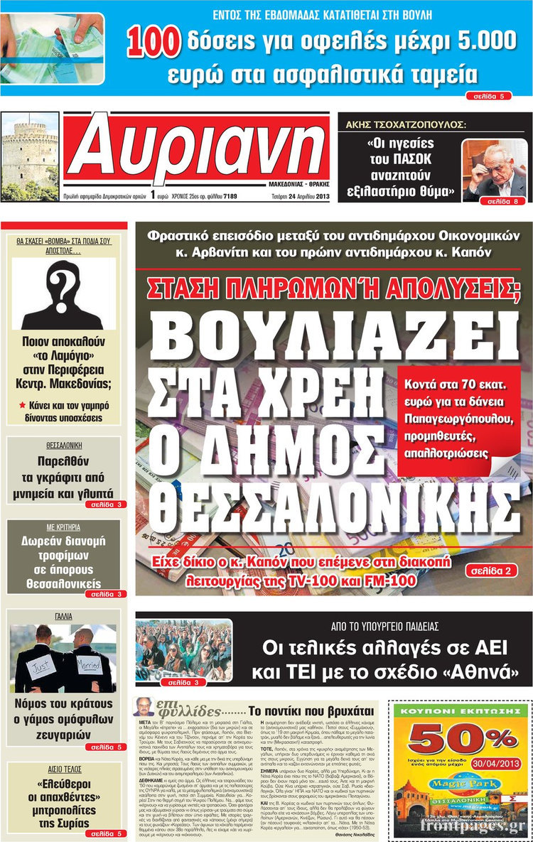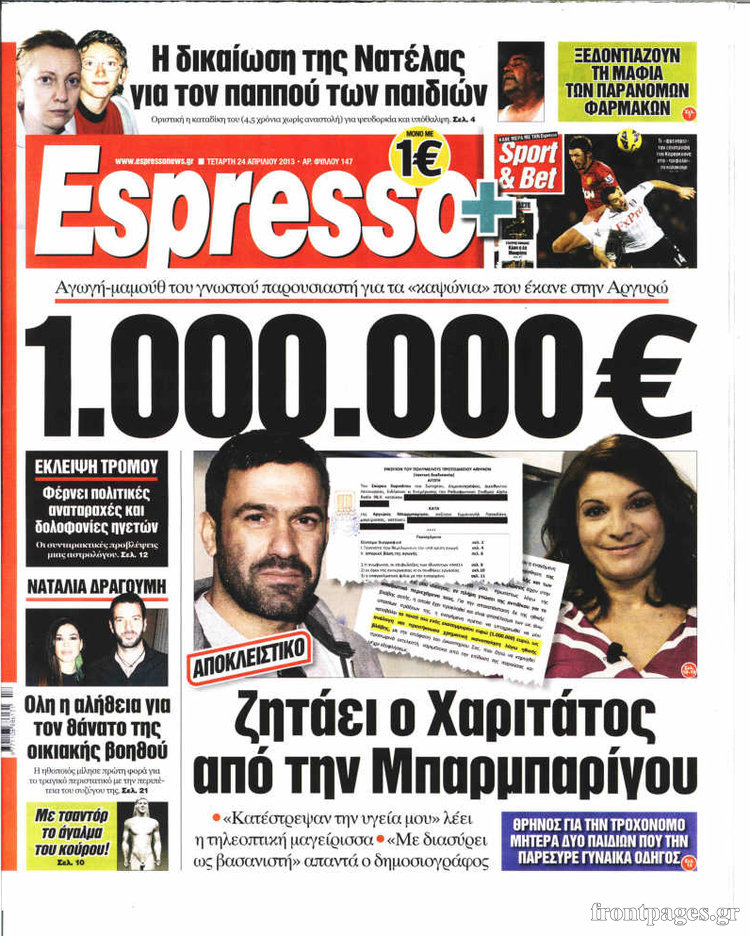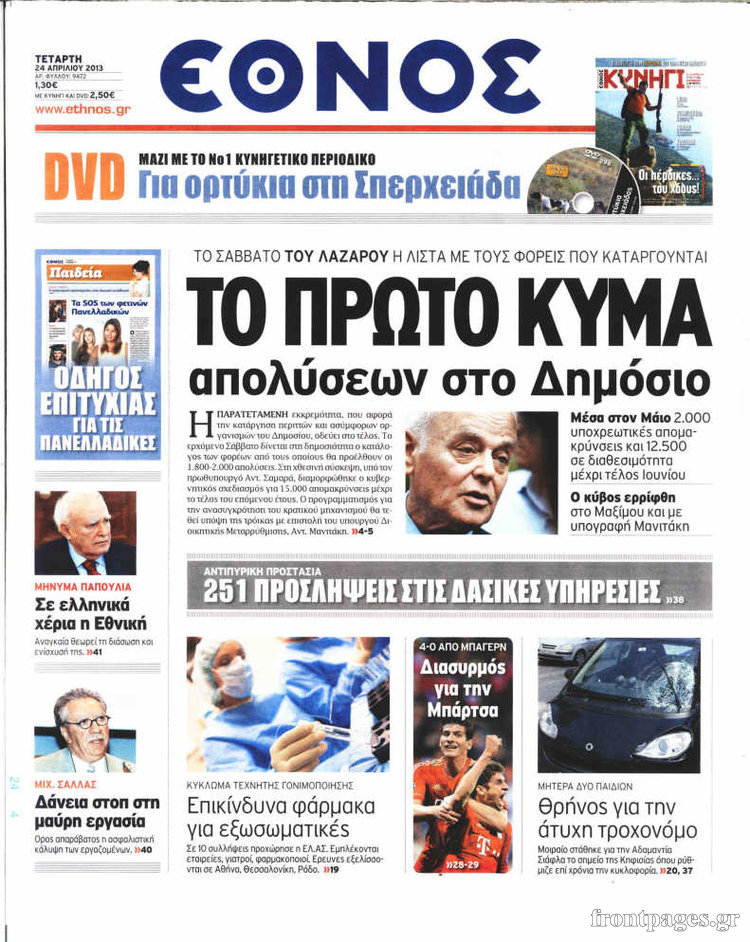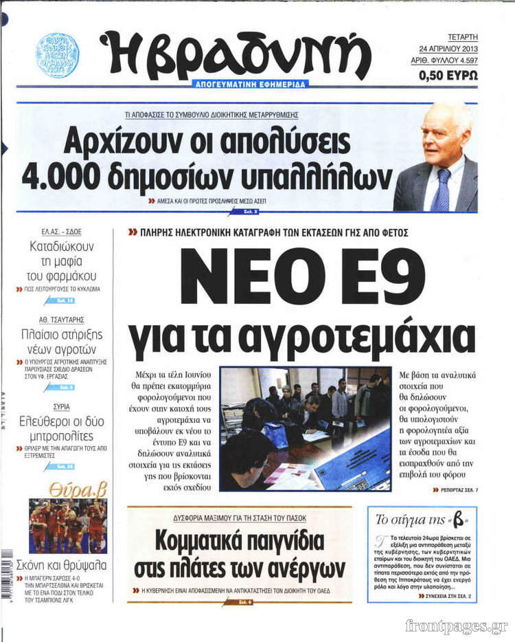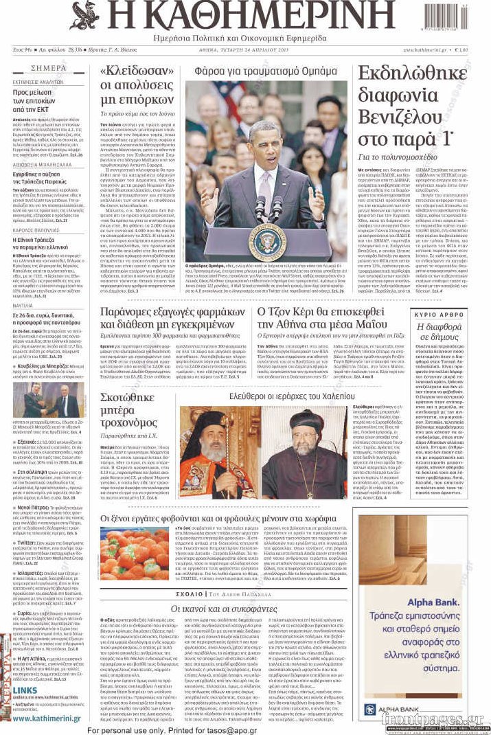Οι πολιτικές εφημερίδες Enikos Newsroom 07:52, Τετάρτη 24 Απριλίου 2013 Media Οι πολιτικές εφημερίδες ΠΟΛΙΤΙΚΕΣ ΕΦΗΜΕΡΙΔΕΣ Μοιράσου το: σχολίασε κι εσύ (0 σχόλια) Ακολουθήστε το enikos.gr στο Google News και μάθετε πρώτοι όλες τις ειδήσεις Δείτε όλες τις τελευταίες ειδήσεις από την Ελλάδα και τον Κόσμο στο enikos.gr Ειδήσεις Ροή Ειδήσεων 2 ώρες πριν Μπλόκα: Οι αγρότες σηκώνουν τις μπάρες σε διόδια για τους εκδρομείς των Χριστουγέννων και μοιράζουν προϊόντα – Βίντεο 2 ώρες πριν Τσιάρας προς αγρότες: Τα μπλόκα και τα πείσματα δεν ωφελούν – Οι λύσεις περνούν μέσα από τον διάλογο 3 ώρες πριν Αρχεία Έπσταϊν: Οι συγκλονιστικές φωτογραφίες – Ο Μάικλ Τζάκσον, ο Μικ Τζάγκερ και ο Κέβιν Σπέισι ανάμεσα στους διάσημους που απεικονίζονται 57 λεπτά πριν Μαθητές διακινούσαν κοκαΐνη και χασίς σε σχολείο της Αττικής – 12 συλλήψεις 1 ώρα πριν Βέλγιο: Άγνωστοι έριξαν κόκκινη μπογιά στο προξενείο της Πολωνίας στις Βρυξέλλες 5 ώρες πριν Μία νέα «χρυσή» περίοδος αρχίζει για 3 ζώδια από σήμερα – «Μία αναπάντεχη ευκαιρία οδηγεί στην επιτυχία» 4 ώρες πριν Διαιτολόγος αποκαλύπτει 9 πρωινές συνήθειες που «λιώνουν» το κοιλιακό λίπος – «Υποστηρίζουν την υγιεινή απώλεια βάρους» 4 ώρες πριν Οι 7 φράσεις που δεν λένε ποτέ οι συναισθηματικά έξυπνοι άνθρωποι κατά τη διάρκεια ενός καβγά 7 ώρες πριν Enerwave: Το νέο «ρεύμα» στη λιανική ενέργειας που αλλάζει την εμπειρία του καταναλωτή 6 λεπτά πριν Μαρινάκης στον Realfm 97,8: Η κυβέρνηση σέβεται κάθε λογική διεκδίκηση των αγροτών, αλλά και το αίτημα των πολιτών να μην ταλαιπωρούνται 12 λεπτά πριν O Πάντερ MVP της 17ης αγωνιστικής στην Euroleague 21 λεπτά πριν Πέθανε η τραγουδίστρια Κλαούντια Ντελμέρ 28 λεπτά πριν Μία ανεκμετάλλευτη πηγή θα μπορούσε να προσφέρει ανεξάντλητη ενέργεια – Οι επιστήμονες ίσως γνωρίζουν πώς να την ξεκλειδώσουν 37 λεπτά πριν Θεσσαλονίκη: Ανήλικος που είχε εξαφανιστεί βρέθηκε στο σπίτι Τούρκων μετά από αστυνομική επιχείρηση ENIKOS NETWORK Η αποχή από την αναπαραγωγή παρατείνει τη ζωή στα ζώα, σύμφωνα με μελέτη – Τι ισχύει για τους ανθρώπους; Σημαντικές επαφές στις ΗΠΑ είχε ο υπουργός Υγείας Άδωνις Γεωργιάδης Ευλογιά αιγοπροβάτων: Παρατεταμένη επιζωοτία, αυστηρά μέτρα – Τι ισχύει για τον εμβολιασμό και την ανασύσταση του ζωικού κε... Τσιάρας προς αγρότες: Έχει ικανοποιηθεί το 74% των αιτημάτων – Τα μπλόκα και τα πείσματα δεν ωφελούν Χαρτογραφώντας το «σημείο χωρίς επιστροφή»: Για πρώτη φορά αποκαλύπτεται με λεπτομέρεια το ακανθώδες όριο της ατμόσφαιρας τ... Η Google καταργεί τη λειτουργία «dark web report» – Πώς θα μπορούν οι χρήστες να διαγράφουν τα δεδομένα τους περισσότερα 14:04 , Σάββατο 20 Δεκεμβρίου 2025 Η Realnews αυτής της Κυριακής (21/12/2025) Με τίτλο: «Ασπίδα προστασίας για την Ελλάδα» κυκλοφορεί, αυτήν την Κυριακή, η Realnews. Σημαντ... 12:53 , Σάββατο 20 Δεκεμβρίου 2025 Να μ’ αγαπάς: Το παρελθόν έρχεται στο φως – Καταιγιστικές εξελίξεις στα τελευταία επεισόδια του 2025 Ο Άγγελος αποκαλύπτεται, η Φωτεινή ανησυχεί για τον Λευτέρη και η Ζωή έρχεται αντιμέτωπη με το... 11:41 , Σάββατο 20 Δεκεμβρίου 2025 «Η αγάπη δεν χάνεται ποτέ»: Η μικρού μήκους ταινία κινουμένων σχεδίων που θέτει ερωτήματα για τη ζωή και τον θάνατο Ο θάνατος είναι ένα από τα πιο σκληρά θέματα που καλείται να διαχειριστεί κάποιος στη διάρκεια... 09:30 , Σάββατο 20 Δεκεμβρίου 2025 «Porto Leone: Στη γειτονιά με τα κόκκινα φανάρια» – Ο Χρόνης αποκαλύπτει στην Αλεξάνδρα το μυστικό για το παιδί της Λένας Η μεγάλη δραματική σειρά του Aph