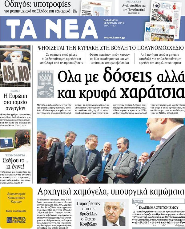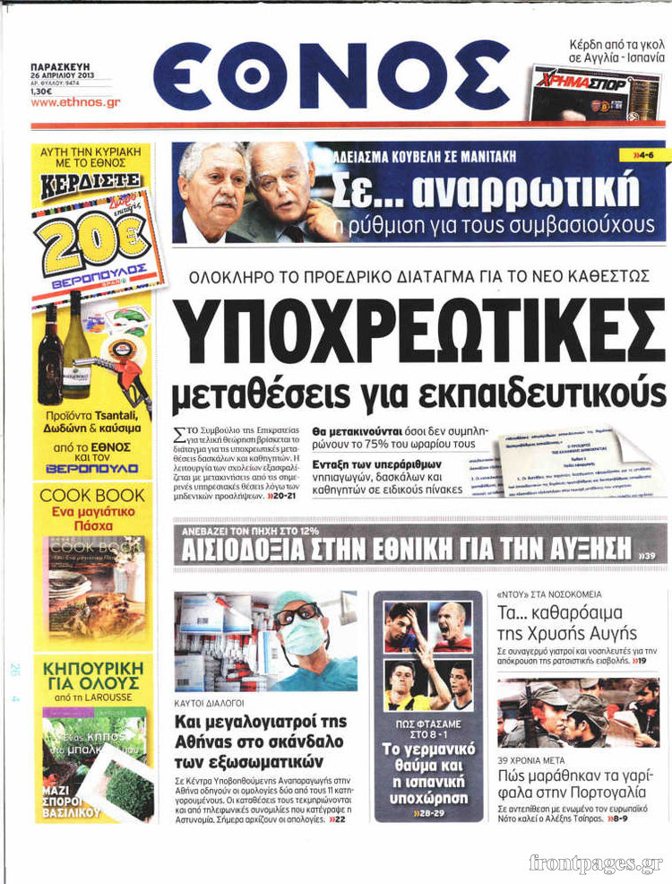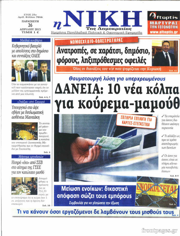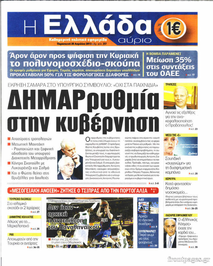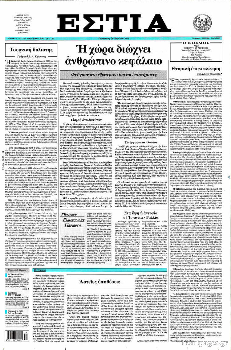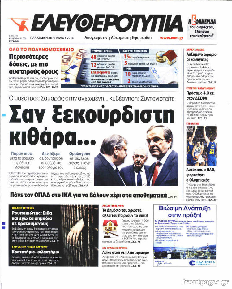 Οι πολιτικές εφημερίδες Enikos Newsroom 08:56, Παρασκευή 26 Απριλίου 2013 Media Οι πολιτικές εφημερίδες Τα πρωτοσέλιδα των πολιτικών εφημερίδων. ΕΦΗΜΕΡΙΔΕΣ ΠΟΛΙΤΙΚΕΣ ΕΦΗΜΕΡΙΔΕΣ ΠΡΩΤΟΣΕΛΙΔΑ Μοιράσου το: σχολίασε κι εσύ (0 σχόλια) Ακολουθήστε το enikos.gr στο Google News και μάθετε πρώτοι όλες τις ειδήσεις Δείτε όλες τις τελευταίες ειδήσεις από την Ελλάδα και τον Κόσμο στο enikos.gr Ειδήσεις Ροή Ειδήσεων 3 ώρες πριν Χριστούγεννα στα μπλόκα οι αγρότες: Άνοιξαν στα διόδια και μοίρασαν προϊόντα στους πολίτες – Νέα σύσκεψη την Κυριακή στη Νίκαια 3 ώρες πριν Κύκλωμα διακίνησης ναρκωτικών σε σχολεία: Τηλεφωνούσαν στους ανηλίκους την ώρα του μαθήματος – Οι διάλογοι-σοκ, τα «ψευδώνυμα» και τα βασανιστήρια 3 ώρες πριν Αρχεία Επστάιν: Οι 500 σελίδες που λείπουν, τα αναπάντητα ερωτήματα και οι επώνυμοι – Τι έπεται 4 ώρες πριν Ζελένσκι: Μόνο οι ΗΠΑ και ο Τραμπ μπορούν να πιέσουν τη Ρωσία να βάλει τέλος στον πόλεμο 5 ώρες πριν Φοινικούντα: Προφυλακιστέος ο 30χρονος για συνέργεια στη διπλή δολοφονία – Και άλλα πρόσωπα στο «μικροσκόπιο» 3 ώρες πριν Αποκαλύφθηκε το άγνωστο «GPS» της αρχαιότητας – Πώς οι ναοί «φώτιζαν» τον δρόμο των ναυτικών πριν από την εφεύρεση των φάρων 4 ώρες πριν Ύπνος: Η διατροφή που μπορεί να σας βοηθήσει να κοιμάστε καλύτερα και να ζήσετε περισσότερο 5 ώρες πριν Αριθμολογία: Ο αριθμός του φύλακα αγγέλου σας, με βάση τον μήνα γέννησής σας – «Έτσι σας στέλνει σημάδια το σύμπαν» 17 ώρες πριν Enerwave: Το νέο «ρεύμα» στη λιανική ενέργειας που αλλάζει την εμπειρία του καταναλωτή 17 λεπτά πριν Φωτεινή Αθερίδου: «Προσπαθώ να είμαι κάθετη και αυστηρή σαν μαμά πια» 32 λεπτά πριν ΗΠΑ, Αίγυπτος, Κατάρ και Τουρκία συζήτησαν τη δεύτερη φάση του ειρηνευτικού σχεδίου για τη Γάζα 48 λεπτά πριν Γιάννης Αντετοκούνμπο: Έμεινε στην 6η θέση της ψηφοφορίας του ESPN για το βραβείο του MVP του NBA 1 ώρα πριν Ρετζέπ Ταγίπ Ερντογάν: Δεν έχουμε καμία βλέψη στα εδάφη ή την κυριαρχία κανενός – Δεν θα επιτρέψουμε να παραβιαστούν τα δικαιώματά μας 1 ώρα πριν Γερμανία: Εκδήλωση μνήμης για τα θύματα της επίθεσης στη χριστουγεννιάτικη αγορά του Μαγδεμβούργου ENIKOS NETWORK Οι γυναίκες αποκαλύπτουν το πιο ελκυστικό πράγμα που μπορεί να κάνει ένας άνδρας Ομορφιά και αντιγήρανση: Ειδικοί μιλούν για συσκευές περιποίησης του δέρματος «Πολεμική» προετοιμασία από την ευρωπαϊκή βιομηχανία ενέργειας – Η Eurelectric ζητεί «ομπρέλα» προστασίας για τις υποδομές Ακύρωση ΑΦΜ για απάτες – Ποιους βάζει στο στόχαστρο η ΑΑΔΕ Χαρτογραφώντας το «σημείο χωρίς επιστροφή»: Για πρώτη φορά αποκαλύπτεται με λεπτομέρεια το ακανθώδες όριο της ατμόσφαιρας τ... Η Google καταργεί τη λειτουργία «dark web report» – Πώς θα μπορούν οι χρήστες να διαγράφουν τα δεδομένα τους περισσότερα 00:00 , Κυριακή 21 Δεκεμβρίου 2025 The Voice: Η επιστροφή της Έλενας Παπαρίζου και η ατάκα του Γιώργου Μαζωνάκη μετά τις καταγγελίες Στη φάση των Cross Battles Live μπήκε το The Voice, με την Έλενα Παπαρίζου να επιστρέφει στο π... 20:30 , Σάββατο 20 Δεκεμβρίου 2025 Αυτή την Κυριακή με τη Realnews: Instyle, μαζί Drive και Realnews Geopolitics Αυτή την Κυριακή με τη Realnews: Instyle, μαζί Drive και Realnews Geopolitics Instyle Η Άννα Ρ... 20:28 , Σάββατο 20 Δεκεμβρίου 2025 Ο ΑΝΤ1 γεμίζει τις γιορτές με μουσική – Ποιους καλλιτέχνες θα απολαύσουμε Φέτος στον ΑΝΤ1 γιορτάζουμε τις νύχτες μας παρέα με αγαπημένους καλλιτέχνες και μεγάλες μουσι... 18:19 , Σάββατο 20 Δεκεμβρίου 2025 HOTΕΛ ΕΛVIRA: Η Ελβίρα μαθαίνει πως ο Χάρι μένει κρυφά στο ξενοδοχείο του Παντελή Συνεχίζονται οι ε