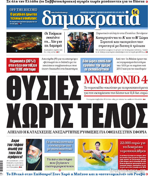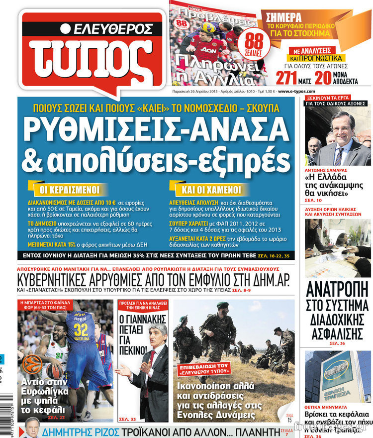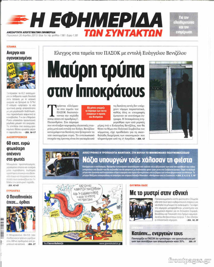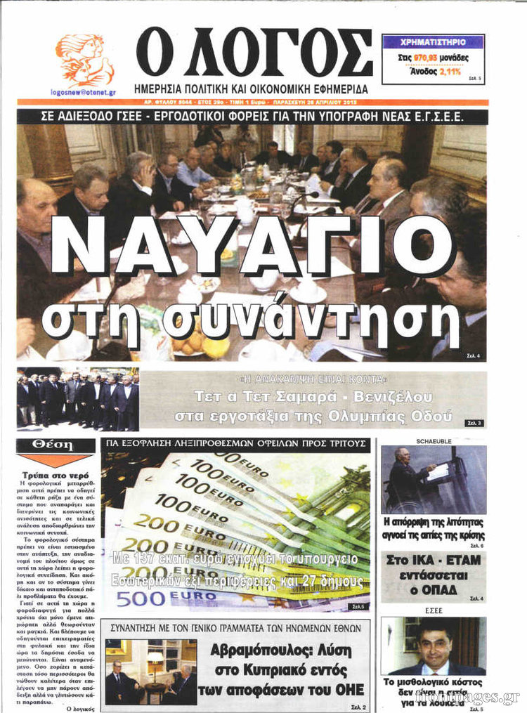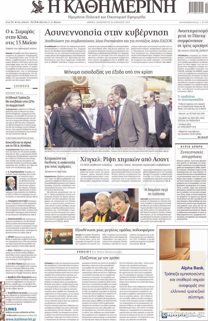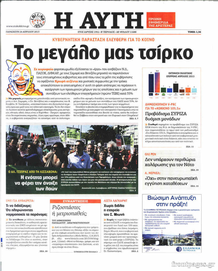 Οι πολιτικές εφημερίδες Enikos Newsroom 08:56, Παρασκευή 26 Απριλίου 2013 Media Οι πολιτικές εφημερίδες Τα πρωτοσέλιδα των πολιτικών εφημερίδων. ΕΦΗΜΕΡΙΔΕΣ ΠΟΛΙΤΙΚΕΣ ΕΦΗΜΕΡΙΔΕΣ ΠΡΩΤΟΣΕΛΙΔΑ Μοιράσου το: σχολίασε κι εσύ (0 σχόλια) Ακολουθήστε το enikos.gr στο Google News και μάθετε πρώτοι όλες τις ειδήσεις Δείτε όλες τις τελευταίες ειδήσεις από την Ελλάδα και τον Κόσμο στο enikos.gr Ειδήσεις Ροή Ειδήσεων 3 ώρες πριν Χριστούγεννα στα μπλόκα οι αγρότες: Άνοιξαν στα διόδια και μοίρασαν προϊόντα στους πολίτες – Νέα σύσκεψη την Κυριακή στη Νίκαια 3 ώρες πριν Κύκλωμα διακίνησης ναρκωτικών σε σχολεία: Τηλεφωνούσαν στους ανηλίκους την ώρα του μαθήματος – Οι διάλογοι-σοκ, τα «ψευδώνυμα» και τα βασανιστήρια 3 ώρες πριν Αρχεία Επστάιν: Οι 500 σελίδες που λείπουν, τα αναπάντητα ερωτήματα και οι επώνυμοι – Τι έπεται 4 ώρες πριν Ζελένσκι: Μόνο οι ΗΠΑ και ο Τραμπ μπορούν να πιέσουν τη Ρωσία να βάλει τέλος στον πόλεμο 5 ώρες πριν Φοινικούντα: Προφυλακιστέος ο 30χρονος για συνέργεια στη διπλή δολοφονία – Και άλλα πρόσωπα στο «μικροσκόπιο» 3 ώρες πριν Αποκαλύφθηκε το άγνωστο «GPS» της αρχαιότητας – Πώς οι ναοί «φώτιζαν» τον δρόμο των ναυτικών πριν από την εφεύρεση των φάρων 4 ώρες πριν Ύπνος: Η διατροφή που μπορεί να σας βοηθήσει να κοιμάστε καλύτερα και να ζήσετε περισσότερο 5 ώρες πριν Αριθμολογία: Ο αριθμός του φύλακα αγγέλου σας, με βάση τον μήνα γέννησής σας – «Έτσι σας στέλνει σημάδια το σύμπαν» 17 ώρες πριν Enerwave: Το νέο «ρεύμα» στη λιανική ενέργειας που αλλάζει την εμπειρία του καταναλωτή 17 λεπτά πριν Φωτεινή Αθερίδου: «Προσπαθώ να είμαι κάθετη και αυστηρή σαν μαμά πια» 32 λεπτά πριν ΗΠΑ, Αίγυπτος, Κατάρ και Τουρκία συζήτησαν τη δεύτερη φάση του ειρηνευτικού σχεδίου για τη Γάζα 48 λεπτά πριν Γιάννης Αντετοκούνμπο: Έμεινε στην 6η θέση της ψηφοφορίας του ESPN για το βραβείο του MVP του NBA 1 ώρα πριν Ρετζέπ Ταγίπ Ερντογάν: Δεν έχουμε καμία βλέψη στα εδάφη ή την κυριαρχία κανενός – Δεν θα επιτρέψουμε να παραβιαστούν τα δικαιώματά μας 1 ώρα πριν Γερμανία: Εκδήλωση μνήμης για τα θύματα της επίθεσης στη χριστουγεννιάτικη αγορά του Μαγδεμβούργου ENIKOS NETWORK Οι γυναίκες αποκαλύπτουν το πιο ελκυστικό πράγμα που μπορεί να κάνει ένας άνδρας Ομορφιά και αντιγήρανση: Ειδικοί μιλούν για συσκευές περιποίησης του δέρματος «Πολεμική» προετοιμασία από την ευρωπαϊκή βιομηχανία ενέργειας – Η Eurelectric ζητεί «ομπρέλα» προστασίας για τις υποδομές Ακύρωση ΑΦΜ για απάτες – Ποιους βάζει στο στόχαστρο η ΑΑΔΕ Χαρτογραφώντας το «σημείο χωρίς επιστροφή»: Για πρώτη φορά αποκαλύπτεται με λεπτομέρεια το ακανθώδες όριο της ατμόσφαιρας τ... Η Google καταργεί τη λειτουργία «dark web report» – Πώς θα μπορούν οι χρήστες να διαγράφουν τα δεδομένα τους περισσότερα 00:00 , Κυριακή 21 Δεκεμβρίου 2025 The Voice: Η επιστροφή της Έλενας Παπαρίζου και η ατάκα του Γιώργου Μαζωνάκη μετά τις καταγγελίες Στη φάση των Cross Battles Live μπήκε το The Voice, με την Έλενα Παπαρίζου να επιστρέφει στο π... 20:30 , Σάββατο 20 Δεκεμβρίου 2025 Αυτή την Κυριακή με τη Realnews: Instyle, μαζί Drive και Realnews Geopolitics Αυτή την Κυριακή με τη Realnews: Instyle, μαζί Drive και Realnews Geopolitics Instyle Η Άννα Ρ... 20:28 , Σάββατο 20 Δεκεμβρίου 2025 Ο ΑΝΤ1 γεμίζει τις γιορτές με μουσική – Ποιους καλλιτέχνες θα απολαύσουμε Φέτος στον ΑΝΤ1 γιορτάζουμε τις νύχτες μας παρέα με αγαπημένους καλλιτέχνες και μεγάλες μουσι... 18:19 , Σάββατο 20 Δεκεμβρίου 2025 HOTΕΛ ΕΛVIRA: Η Ελβίρα μαθαίνει πως ο Χάρι μένει κρυφά στο ξενοδοχείο του Παντελή Συνεχίζονται οι ε
