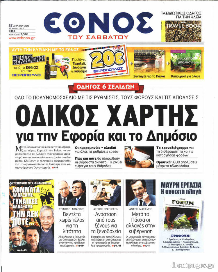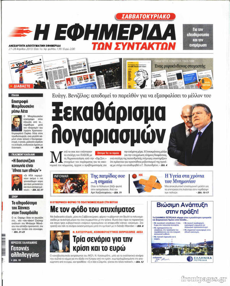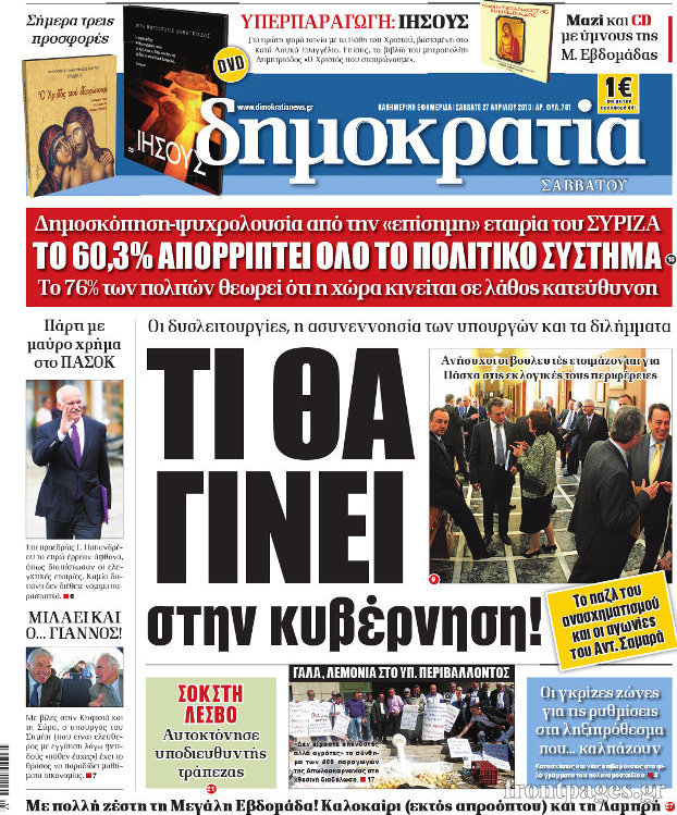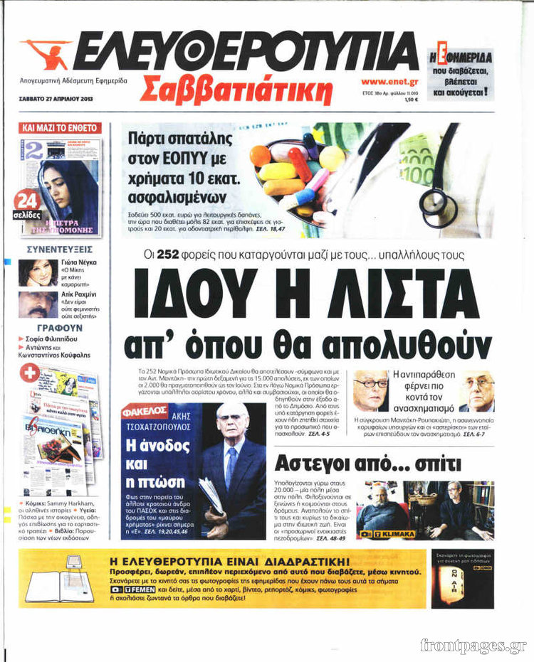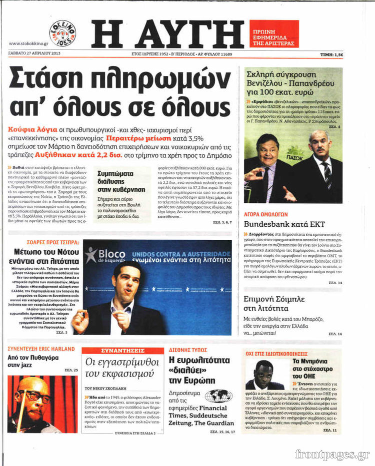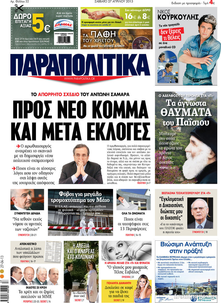 Οι πολιτικές εφημερίδες Enikos Newsroom 09:42, Σάββατο 27 Απριλίου 2013 Media Οι πολιτικές εφημερίδες ΠΟΛΙΤΙΚΕΣ ΕΦΗΜΕΡΙΔΕΣ Μοιράσου το: σχολίασε κι εσύ (0 σχόλια) Ακολουθήστε το enikos.gr στο Google News και μάθετε πρώτοι όλες τις ειδήσεις Δείτε όλες τις τελευταίες ειδήσεις από την Ελλάδα και τον Κόσμο στο enikos.gr Ειδήσεις Ροή Ειδήσεων 2 ώρες πριν Μπλόκα: Οι αγρότες σηκώνουν τις μπάρες σε διόδια για τους εκδρομείς των Χριστουγέννων και μοιράζουν προϊόντα – Βίντεο 3 ώρες πριν Τσιάρας προς αγρότες: Τα μπλόκα και τα πείσματα δεν ωφελούν – Οι λύσεις περνούν μέσα από τον διάλογο 4 ώρες πριν Αρχεία Έπσταϊν: Οι συγκλονιστικές φωτογραφίες – Ο Μάικλ Τζάκσον, ο Μικ Τζάγκερ και ο Κέβιν Σπέισι ανάμεσα στους διάσημους που απεικονίζονται 2 ώρες πριν Μαθητές διακινούσαν κοκαΐνη και χασίς σε σχολείο της Αττικής – 12 συλλήψεις 2 ώρες πριν Βέλγιο: Άγνωστοι έριξαν κόκκινη μπογιά στο προξενείο της Πολωνίας στις Βρυξέλλες 6 ώρες πριν Μία νέα «χρυσή» περίοδος αρχίζει για 3 ζώδια από σήμερα – «Μία αναπάντεχη ευκαιρία οδηγεί στην επιτυχία» 4 ώρες πριν Διαιτολόγος αποκαλύπτει 9 πρωινές συνήθειες που «λιώνουν» το κοιλιακό λίπος – «Υποστηρίζουν την υγιεινή απώλεια βάρους» 5 ώρες πριν Οι 7 φράσεις που δεν λένε ποτέ οι συναισθηματικά έξυπνοι άνθρωποι κατά τη διάρκεια ενός καβγά 7 ώρες πριν Enerwave: Το νέο «ρεύμα» στη λιανική ενέργειας που αλλάζει την εμπειρία του καταναλωτή 13 λεπτά πριν Στο νοσοκομείο ο Λευτέρης Πανταζής – Τι συνέβη 22 λεπτά πριν Super League: Με Κηφισιά ο Ολυμπιακός για να «κλείσει» το 2025 στην κορυφή – Αναλυτικά το πρόγραμμα της 15ης αγωνιστικής 27 λεπτά πριν ΕΛΑΣ: Συνελήφθησαν Υπαρχιπυροσβέστης και δύο ακόμη άτομα για κατοχή και διακίνηση ναρκωτικών ουσιών – Η καταγγελία και ο τιμοκατάλογος 35 λεπτά πριν Πακιστάν: Σε κάθειρξη 17 ετών καταδικάστηκαν ο πρώην πρωθυπουργός Ίμραν Χαν και η σύζυγός του 43 λεπτά πριν Μαρινάκης στον Realfm 97,8: Η κυβέρνηση σέβεται κάθε λογική διεκδίκηση των αγροτών, αλλά και το αίτημα των πολιτών να μην ταλαιπωρούνται ENIKOS NETWORK Η αποχή από την αναπαραγωγή παρατείνει τη ζωή στα ζώα, σύμφωνα με μελέτη – Τι ισχύει για τους ανθρώπους; Σημαντικές επαφές στις ΗΠΑ είχε ο υπουργός Υγείας Άδωνις Γεωργιάδης Επιτροπή Ανταγωνισμού: Στο μικροσκόπιο σχολικές τσάντες και επώνυμα brands – Τι ερευνάται Ευλογιά αιγοπροβάτων: Παρατεταμένη επιζωοτία, αυστηρά μέτρα – Τι ισχύει για τον εμβολιασμό και την ανασύσταση του ζωικού κε... Χαρτογραφώντας το «σημείο χωρίς επιστροφή»: Για πρώτη φορά αποκαλύπτεται με λεπτομέρεια το ακανθώδες όριο της ατμόσφαιρας τ... Η Google καταργεί τη λειτουργία «dark web report» – Πώς θα μπορούν οι χρήστες να διαγράφουν τα δεδομένα τους περισσότερα 14:04 , Σάββατο 20 Δεκεμβρίου 2025 Η Realnews αυτής της Κυριακής (21/12/2025) Με τίτλο: «Ασπίδα προστασίας για την Ελλάδα» κυκλοφορεί, αυτήν την Κυριακή, η Realnews. Σημαντ... 12:53 , Σάββατο 20 Δεκεμβρίου 2025 Να μ’ αγαπάς: Το παρελθόν έρχεται στο φως – Καταιγιστικές εξελίξεις στα τελευταία επεισόδια του 2025 Ο Άγγελος αποκαλύπτεται, η Φωτεινή ανησυχεί για τον Λευτέρη και η Ζωή έρχεται αντιμέτωπη με το... 11:41 , Σάββατο 20 Δεκεμβρίου 2025 «Η αγάπη δεν χάνεται ποτέ»: Η μικρού μήκους ταινία κινουμένων σχεδίων που θέτει ερωτήματα για τη ζωή και τον θάνατο Ο θάνατος είναι ένα από τα πιο σκληρά θέματα που καλείται να διαχειριστεί κάποιος στη διάρκεια... 09:30 , Σάββατο 20 Δεκεμβρίου 2025 «Porto Leone: Στη γειτονιά με τα κόκκινα φανάρια» – Ο Χρόνης αποκαλύπτει στην Αλεξάνδρ