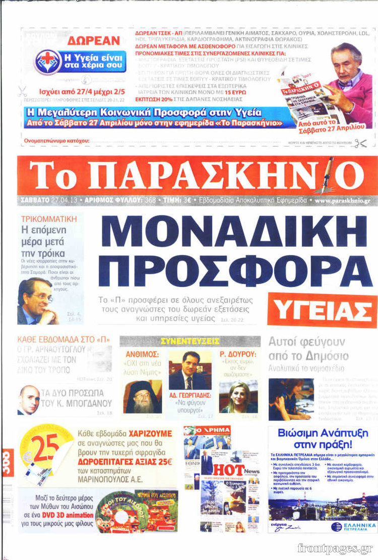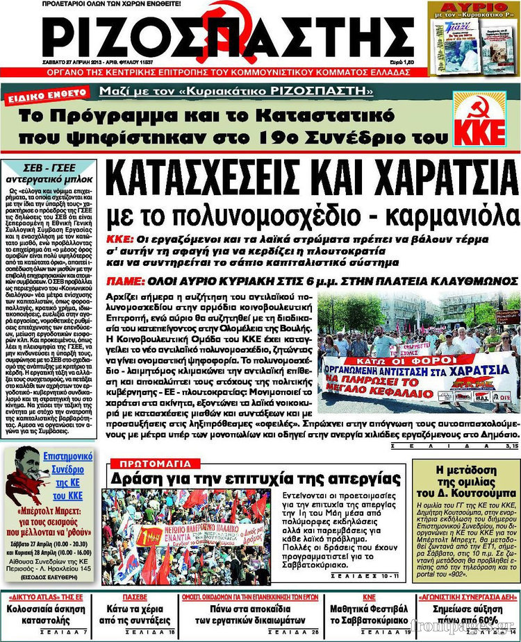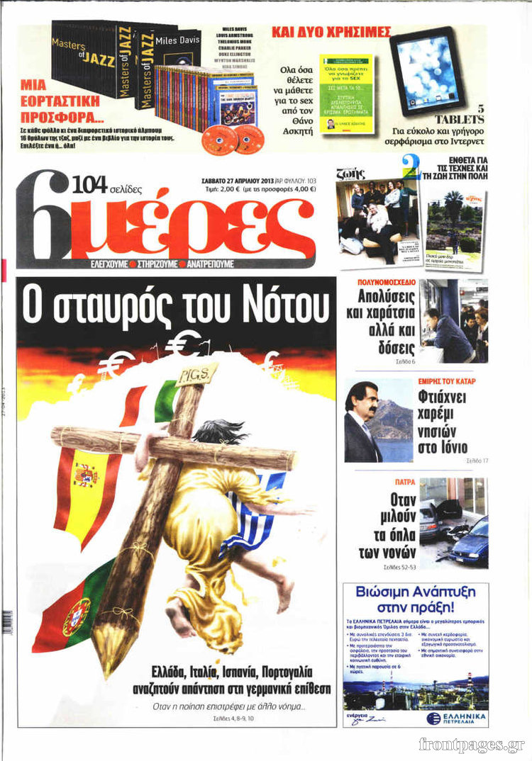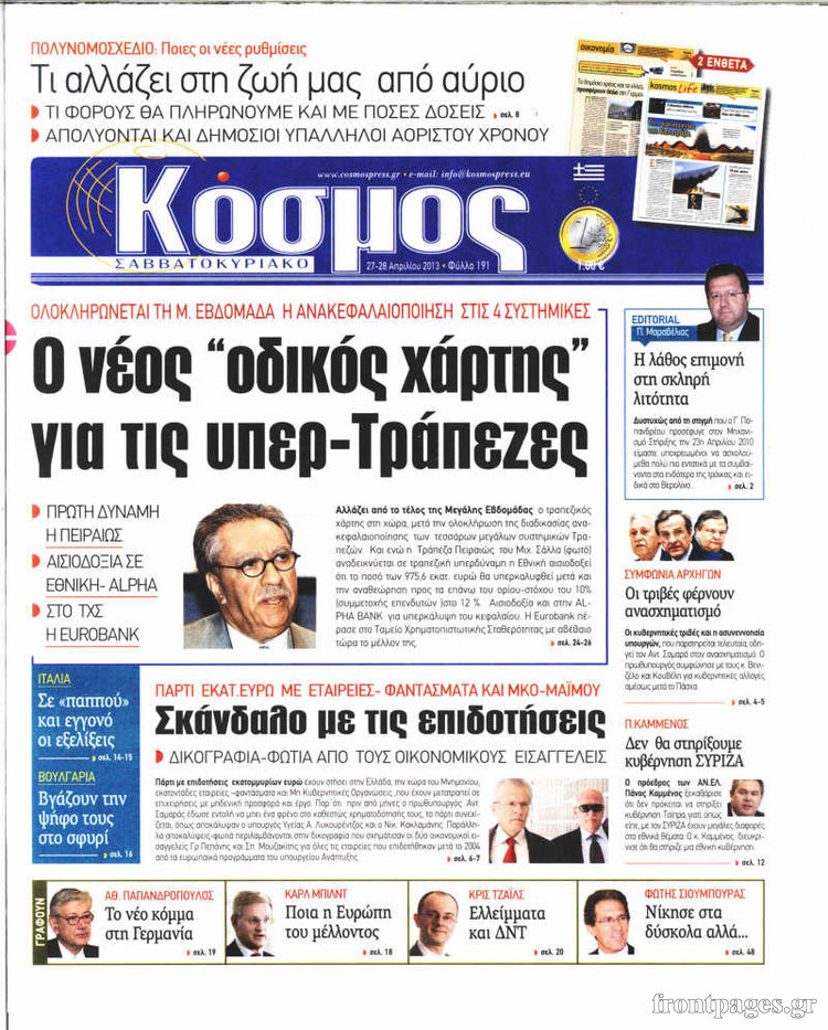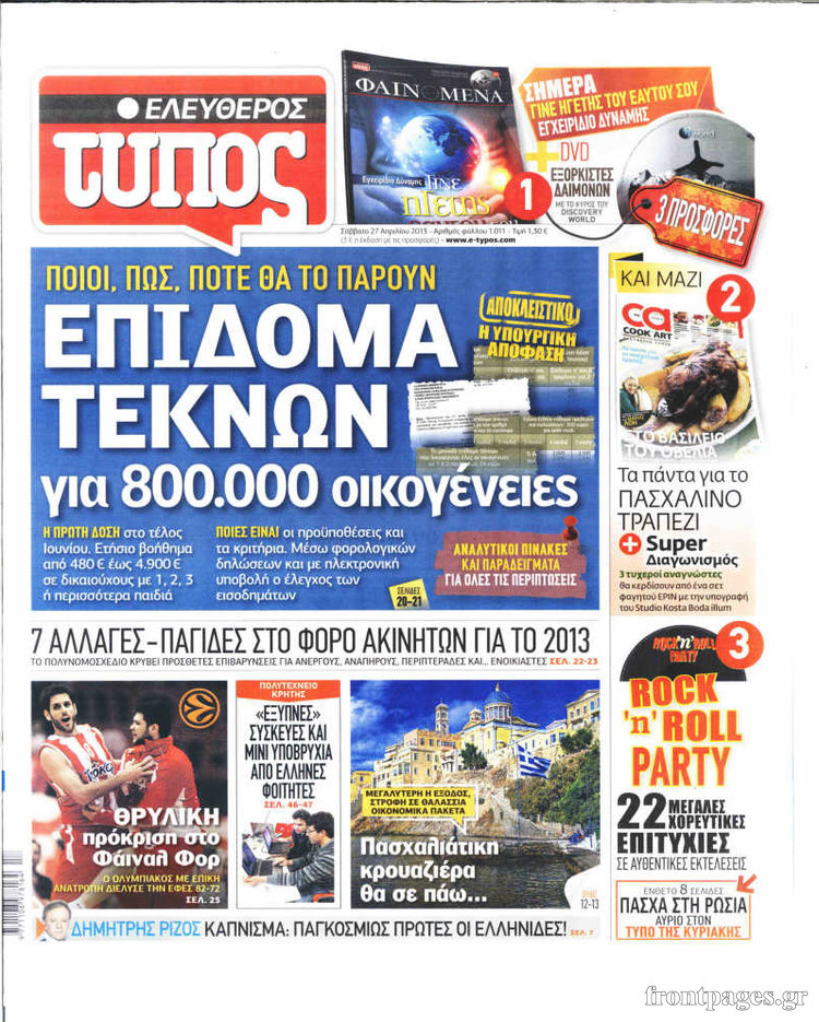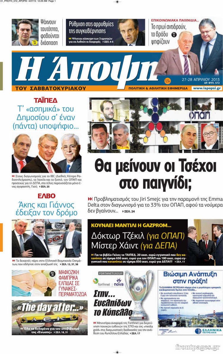 Οι πολιτικές εφημερίδες Enikos Newsroom 09:42, Σάββατο 27 Απριλίου 2013 Media Οι πολιτικές εφημερίδες ΠΟΛΙΤΙΚΕΣ ΕΦΗΜΕΡΙΔΕΣ Μοιράσου το: σχολίασε κι εσύ (0 σχόλια) Ακολουθήστε το enikos.gr στο Google News και μάθετε πρώτοι όλες τις ειδήσεις Δείτε όλες τις τελευταίες ειδήσεις από την Ελλάδα και τον Κόσμο στο enikos.gr Ειδήσεις Ροή Ειδήσεων 2 ώρες πριν Μπλόκα: Οι αγρότες σηκώνουν τις μπάρες σε διόδια για τους εκδρομείς των Χριστουγέννων και μοιράζουν προϊόντα – Βίντεο 3 ώρες πριν Τσιάρας προς αγρότες: Τα μπλόκα και τα πείσματα δεν ωφελούν – Οι λύσεις περνούν μέσα από τον διάλογο 4 ώρες πριν Αρχεία Έπσταϊν: Οι συγκλονιστικές φωτογραφίες – Ο Μάικλ Τζάκσον, ο Μικ Τζάγκερ και ο Κέβιν Σπέισι ανάμεσα στους διάσημους που απεικονίζονται 2 ώρες πριν Μαθητές διακινούσαν κοκαΐνη και χασίς σε σχολείο της Αττικής – 12 συλλήψεις 2 ώρες πριν Βέλγιο: Άγνωστοι έριξαν κόκκινη μπογιά στο προξενείο της Πολωνίας στις Βρυξέλλες 6 ώρες πριν Μία νέα «χρυσή» περίοδος αρχίζει για 3 ζώδια από σήμερα – «Μία αναπάντεχη ευκαιρία οδηγεί στην επιτυχία» 4 ώρες πριν Διαιτολόγος αποκαλύπτει 9 πρωινές συνήθειες που «λιώνουν» το κοιλιακό λίπος – «Υποστηρίζουν την υγιεινή απώλεια βάρους» 5 ώρες πριν Οι 7 φράσεις που δεν λένε ποτέ οι συναισθηματικά έξυπνοι άνθρωποι κατά τη διάρκεια ενός καβγά 7 ώρες πριν Enerwave: Το νέο «ρεύμα» στη λιανική ενέργειας που αλλάζει την εμπειρία του καταναλωτή 13 λεπτά πριν Στο νοσοκομείο ο Λευτέρης Πανταζής – Τι συνέβη 22 λεπτά πριν Super League: Με Κηφισιά ο Ολυμπιακός για να «κλείσει» το 2025 στην κορυφή – Αναλυτικά το πρόγραμμα της 15ης αγωνιστικής 27 λεπτά πριν ΕΛΑΣ: Συνελήφθησαν Υπαρχιπυροσβέστης και δύο ακόμη άτομα για κατοχή και διακίνηση ναρκωτικών ουσιών – Η καταγγελία και ο τιμοκατάλογος 35 λεπτά πριν Πακιστάν: Σε κάθειρξη 17 ετών καταδικάστηκαν ο πρώην πρωθυπουργός Ίμραν Χαν και η σύζυγός του 43 λεπτά πριν Μαρινάκης στον Realfm 97,8: Η κυβέρνηση σέβεται κάθε λογική διεκδίκηση των αγροτών, αλλά και το αίτημα των πολιτών να μην ταλαιπωρούνται ENIKOS NETWORK Η αποχή από την αναπαραγωγή παρατείνει τη ζωή στα ζώα, σύμφωνα με μελέτη – Τι ισχύει για τους ανθρώπους; Σημαντικές επαφές στις ΗΠΑ είχε ο υπουργός Υγείας Άδωνις Γεωργιάδης Επιτροπή Ανταγωνισμού: Στο μικροσκόπιο σχολικές τσάντες και επώνυμα brands – Τι ερευνάται Ευλογιά αιγοπροβάτων: Παρατεταμένη επιζωοτία, αυστηρά μέτρα – Τι ισχύει για τον εμβολιασμό και την ανασύσταση του ζωικού κε... Χαρτογραφώντας το «σημείο χωρίς επιστροφή»: Για πρώτη φορά αποκαλύπτεται με λεπτομέρεια το ακανθώδες όριο της ατμόσφαιρας τ... Η Google καταργεί τη λειτουργία «dark web report» – Πώς θα μπορούν οι χρήστες να διαγράφουν τα δεδομένα τους περισσότερα 14:04 , Σάββατο 20 Δεκεμβρίου 2025 Η Realnews αυτής της Κυριακής (21/12/2025) Με τίτλο: «Ασπίδα προστασίας για την Ελλάδα» κυκλοφορεί, αυτήν την Κυριακή, η Realnews. Σημαντ... 12:53 , Σάββατο 20 Δεκεμβρίου 2025 Να μ’ αγαπάς: Το παρελθόν έρχεται στο φως – Καταιγιστικές εξελίξεις στα τελευταία επεισόδια του 2025 Ο Άγγελος αποκαλύπτεται, η Φωτεινή ανησυχεί για τον Λευτέρη και η Ζωή έρχεται αντιμέτωπη με το... 11:41 , Σάββατο 20 Δεκεμβρίου 2025 «Η αγάπη δεν χάνεται ποτέ»: Η μικρού μήκους ταινία κινουμένων σχεδίων που θέτει ερωτήματα για τη ζωή και τον θάνατο Ο θάνατος είναι ένα από τα πιο σκληρά θέματα που καλείται να διαχειριστεί κάποιος στη διάρκεια... 09:30 , Σάββατο 20 Δεκεμβρίου 2025 «Porto Leone: Στη γειτονιά με τα κόκκινα φανάρια» – Ο Χρόνης αποκαλύπτει στην Αλεξάνδρ