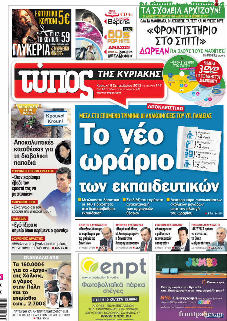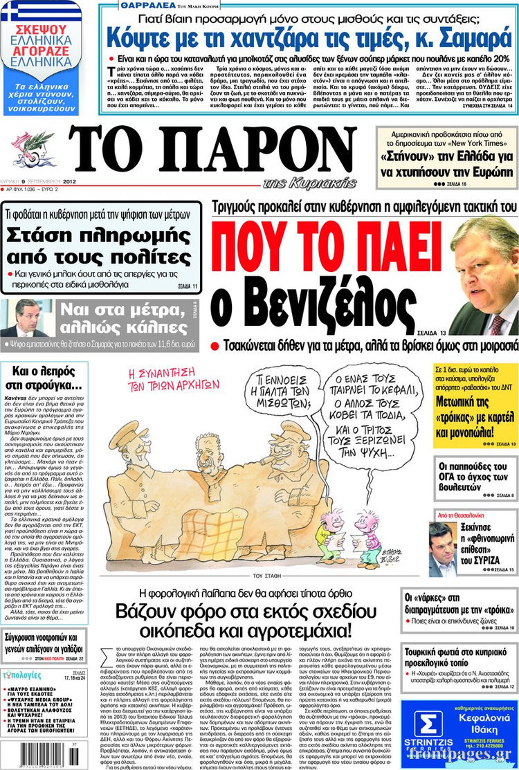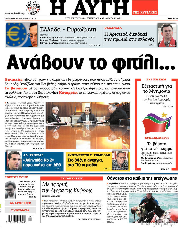 Δείτε τα πρωτοσέλιδα των κυριακάτικων πολιτικών εφημερίδων…