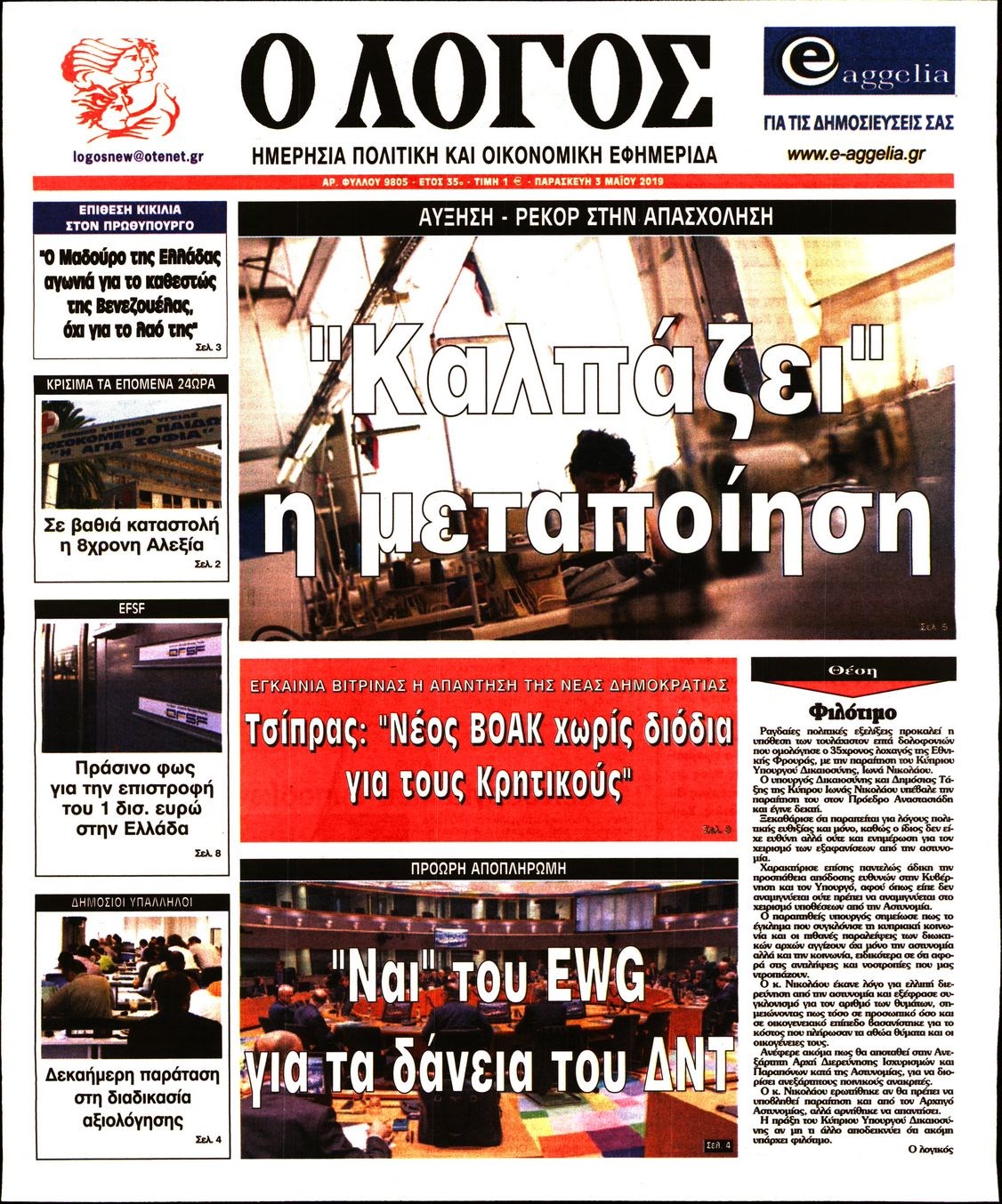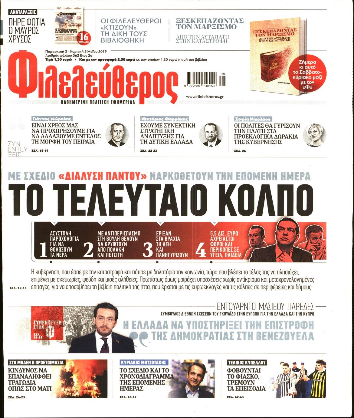 Οι πολιτικές εφημερίδες 3/5/19 Enikos Newsroom 06:50, Παρασκευή 03 Μαΐου 2019 Media Διαβάστε τα πρωτοσέλιδα των πολιτικών εφημερίδων: ΠΟΛΙΤΙΚΕΣ ΕΦΗΜΕΡΙΔΕΣ ΠΡΩΤΟΣΕΛΙΔΑ Μοιράσου το: σχολίασε κι εσύ (0 σχόλια) Ακολουθήστε το enikos.gr στο Google News και μάθετε πρώτοι όλες τις ειδήσεις Δείτε όλες τις τελευταίες ειδήσεις από την Ελλάδα και τον Κόσμο στο enikos.gr Ειδήσεις Ροή Ειδήσεων 2 ώρες πριν Γιορτές με μπλόκα για τους αγρότες: Ανοίγουν διόδια και μοιράζουν προϊόντα στους ταξιδιώτες 11 λεπτά πριν Τσιάρας για αγρότες: Ικανοποιείται το αίτημα για αφορολόγητο πετρέλαιο στη μάνικα, πρόθεσή μας να μειωθεί ακόμη περισσότερο η τιμή στο ρεύμα 26 λεπτά πριν Αρχεία Έπσταϊν: Οι συγκλονιστικές φωτογραφίες – Ο Μάικλ Τζάκσον, ο Μικ Τζάγκερ και ο Κέβιν Σπέισι ανάμεσα στους διάσημους που απεικονίζονται 2 ώρες πριν Νέες ταυτότητες: Μεγάλη αναμονή για ραντεβού στην Αττική – Τέλος τα ταξίδια εκτός Ελλάδος από τον Αύγουστο για όσους δεν έχουν αλλάξει 57 λεπτά πριν Ινδία: Επτά ελέφαντες σκοτώθηκαν κατά τη σύγκρουση επιβατικού τρένου με κοπάδι 3 ώρες πριν Μία νέα «χρυσή» περίοδος αρχίζει για 3 ζώδια από σήμερα – «Μία αναπάντεχη ευκαιρία οδηγεί στην επιτυχία» 5 ώρες πριν Αρχαιολόγοι ανακάλυψαν σε χωράφι απεικόνιση 600 ετών ενός Αγίου – Τα στοιχεία που δείχνουν ότι μαρτύρησε 4 ώρες πριν Αγχώνεται για το χριστουγεννιάτικο δώρο που πήρε στην πλούσια σύντροφό του – «Φοβάμαι πως θα το βρει φθηνιάρικο, φοράει βραχιόλια Cartier» 55 λεπτά πριν Διαιτολόγος αποκαλύπτει 9 πρωινές συνήθειες που «λιώνουν» το κοιλιακό λίπος – «Υποστηρίζουν την υγιεινή απώλεια βάρους» 11 λεπτά πριν Τσιάρας για αγρότες: Ικανοποιείται το αίτημα για αφορολόγητο πετρέλαιο στη μάνικα, πρόθεσή μας να μειωθεί ακόμη περισσότερο η τιμή στο ρεύμα 18 λεπτά πριν Η Ζιζέλ Μπούντχεν παντρεύτηκε τον δάσκαλο ζίου-ζίτσου, Χοακίμ Βαλέντε 26 λεπτά πριν Αρχεία Έπσταϊν: Οι συγκλονιστικές φωτογραφίες – Ο Μάικλ Τζάκσον, ο Μικ Τζάγκερ και ο Κέβιν Σπέισι ανάμεσα στους διάσημους που απεικονίζονται 34 λεπτά πριν Χρήστος Μάντακας: «Θα μπορούσα να είχα φύγει από τη ζωή, δεν μπορούσα να περπατήσω…» 41 λεπτά πριν Εντυπωσιακό βίντεο από «τσουνάμι» πάγου στη Σιβηρία – Πώς προκαλείται το σπάνιο φαινόμενο ENIKOS NETWORK Γήρανση του εγκεφάλου: Νευροεπιστήμονες ανακάλυψαν τη 10λεπτη δραστηριότητα που μπορεί να τη σταματήσει Είστε μόνιμα απρόσεκτοι; 3 σημάδια που δείχνουν ότι μπορεί να είναι σύμπτωμα πάθησης Χρήστος Δήμας: Στα 2,5 εκατ. ευρώ την ημέρα το κόστος από το άνοιγμα των διοδίων από τους αγρότες – Θα αξιώσουν αποζημίωση ... Χριστούγεννα και Πρωτοχρονιά: Πώς αμείβονται όσοι εργαστούν Χαρτογραφώντας το «σημείο χωρίς επιστροφή»: Για πρώτη φορά αποκαλύπτεται με λεπτομέρεια το ακανθώδες όριο της ατμόσφαιρας τ... Η Google καταργεί τη λειτουργία «dark web report» – Πώς θα μπορούν οι χρήστες να διαγράφουν τα δεδομένα τους περισσότερα 11:41 , Σάββατο 20 Δεκεμβρίου 2025 «Η αγάπη δεν χάνεται ποτέ»: Η μικρού μήκους ταινία κινουμένων σχεδίων που θέτει ερωτήματα για τη ζωή και τον θάνατο Ο θάνατος είναι ένα από τα πιο σκληρά θέματα που καλείται να διαχειριστεί κάποιος στη διάρκεια... 09:30 , Σάββατο 20 Δεκεμβρίου 2025 «Porto Leone: Στη γειτονιά με τα κόκκινα φανάρια» – Ο Χρόνης αποκαλύπτει στην Αλεξάνδρα το μυστικό για το παιδί της Λένας Η μεγάλη δραματική σειρά του Apha «Porto Leone: Στη γειτονιά με τα κόκκινα φανάρια» μας μεταφέ... 08:14 , Σάββατο 20 Δεκεμβρίου 2025 Τρομεροί γονείς: Η Μαρία Καβογιάννη εισβάλλει