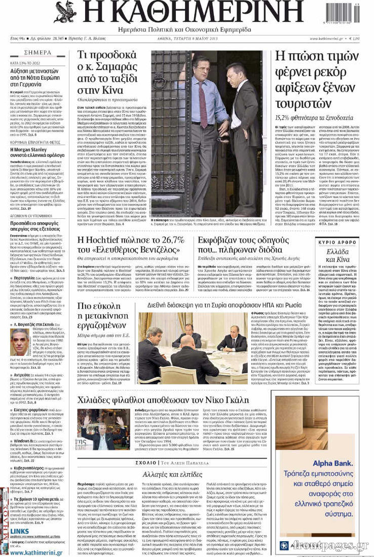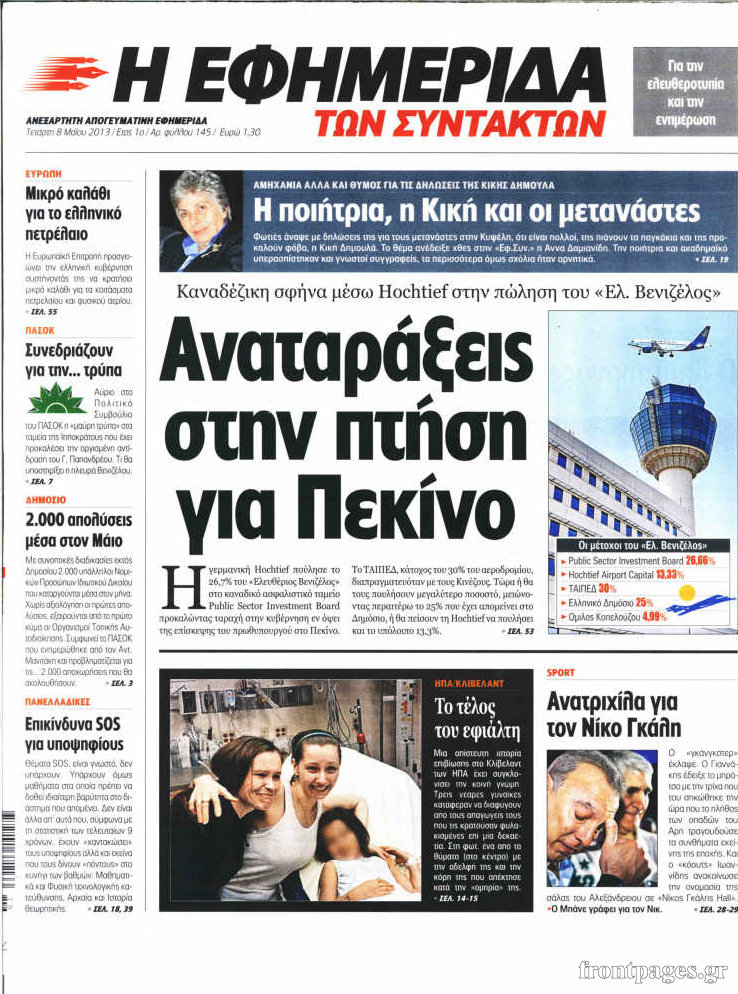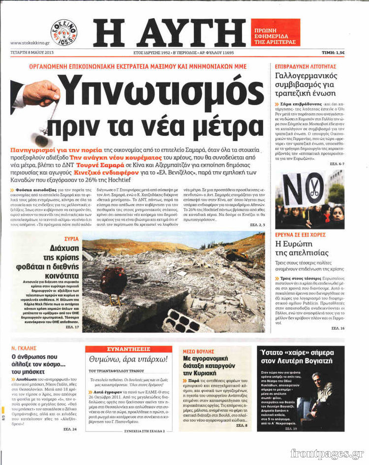Οι πολιτικές εφημερίδες Enikos Newsroom 07:51, Τετάρτη 08 Μαΐου 2013 Media Οι πολιτικές εφημερίδες Διαβάστε εδώ τα πρωτοσέλιδα των πολιτικών εφημερίδων. ΕΦΗΜΕΡΙΔΕΣ ΠΟΛΙΤΙΚΕΣ ΕΦΗΜΕΡΙΔΕΣ ΠΡΩΤΟΣΕΛΙΔΑ Μοιράσου το: σχολίασε κι εσύ (0 σχόλια) Ακολουθήστε το enikos.gr στο Google News και μάθετε πρώτοι όλες τις ειδήσεις Δείτε όλες τις τελευταίες ειδήσεις από την Ελλάδα και τον Κόσμο στο enikos.gr Ειδήσεις Ροή Ειδήσεων 55 λεπτά πριν Δολοφονία στην Κρήτη: Πώς έγινε η αδελφοκτονία με θύμα τον 67χρονο – Δεν είχε συνειδητοποιήσει ότι τον σκότωσε 1 ώρα πριν Η Σερβία στο άρμα της Τουρκίας με μπίζνες 3,5 δισ. και προοπτική για 5 δισ. το 2026 – Η Ελλάδα υπό πίεση 1 ώρα πριν Καιρός: Καταιγίδες, θυελλώδεις νοτιάδες και αφρικανική σκόνη σήμερα – Η πρόγνωση ανά περιοχή 7 ώρες πριν «Κούρεμα» ΕΝΦΙΑ για ασφαλισμένα ακίνητα: Ως τη Δευτέρα η προθεσμία για υποβολή αίτησης 7 ώρες πριν Αλεξανδρούπολη: Εξιχνιάστηκε η άγρια δολοφονία με μαχαίρι του ηλικιωμένου – Συνελήφθησαν οι τρεις δράστες 10 ώρες πριν Πού βρήκαν οι πρώτοι αγρότες στη Γη το σιτάρι και το κριθάρι; Νέα μελέτη αποκαλύπτει πού γεννήθηκε τελικά η γεωργία 3 ώρες πριν Οπτική ψευδαίσθηση: Μόνο αν έχετε παρατηρητικότητα ντετέκτιβ, θα εντοπίσετε τη γάτα στην εικόνα σε 8 δευτερόλεπτα 3 ώρες πριν Καρκίνος: 7 τροφές που πρέπει να αποφεύγετε για να μειώσετε τον κίνδυνο, σύμφωνα με ειδικούς 6 ώρες πριν Ζώδια 15/2: Ημερήσιες προβλέψεις – Ιχθύες, οι ευκαιρίες είναι άφθονες, όμως ό,τι λάμπει δεν είναι χρυσός 5 λεπτά πριν Η ταινία θρίλερ που μπορείς να απολαύσεις αυτό το Σαββατοκύριακο, διαρκεί μόνο 1 ώρα και 30 λεπτά 14 λεπτά πριν Eurovision: Γνωστοί Έλληνες τραγουδιστές που έχουν λάβει μέρος σε Εθνικούς Τελικούς 22 λεπτά πριν Η δηλητηρίαση από μόλυβδο οδήγησε στην πτώση της Ρωμαϊκής Αυτοκρατορίας; Επιστήμονες καταρρίπτουν τη θεωρία και εξηγούν γιατί 28 λεπτά πριν Μπαράκ Ομπάμα: Υποστηρίζει ότι οι εξωγήινοι είναι «αληθινοί» σε νέα συνέντευξη – «Αλλά δεν τους έχω δει» 37 λεπτά πριν Αναδρομικά: Ποιοι θα πρέπει να πληρώσουν φόρο έως τις 27 Φεβρουαρίου στην Εφορία και ποιοι θα πρέπει να τα «δηλώσουν» στην ΑΑΔΕ ENIKOS NETWORK Γιατί οι Ρωμαίοι χρησιμοποιούσαν ανθρώπινα κόπρανα για ιατρικούς λόγους; Το μυστικό του σφραγισμένου μπουκαλιού 1.900 ετών Τεστ προσωπικότητας: Διαλέξτε ένα δώρο για να μάθετε ποιος είναι ο εσωτερικός σας φόβος Αναδρομικά: Ποιοι θα πρέπει να πληρώσουν φόρο έως τις 27 Φεβρουαρίου στην Εφορία και ποιοι θα πρέπει να τα «δηλώσουν» στην ... Νέες θέσεις στάθμευσης στο κέντρο της Αθήνας – Το σχέδιο του Δήμου Ευπάθεια στο moltbook ai αποκαλύπτει email, tokens σύνδεσης και api keys Αυτός είναι ο ρόλος της μικρής τρύπας στους νυχοκόπτες – «Είμαι ο μόνος που δεν το ήξερε;»» περισσότερα 08:47 , Κυριακή 15 Φεβρουαρίου 2026 Η ταινία θρίλερ που μπορείς να απολαύσεις αυτό το Σαββατοκύριακο, διαρκεί μόνο 1 ώρα και 30 λεπτά Πόσο εύκολο είναι άραγε το να μπει κανείς στο στόχαστρο ενός δολοφόνου; Πώς μπορείς να σωθείς ... 08:38 , Κυριακή 15 Φεβρουαρίου 2026 Eurovision: Γνωστοί Έλληνες τραγουδιστές που έχουν λάβει μέρος σε Εθνικούς Τελικούς Σε λίγες ώρες θα μάθουμε ποιος θα είναι ο καλλιτέχνης που θα εκπροσωπήσει τη χώρα μας στον φετ... 07:50 , Κυριακή 15 Φεβρουαρίου 2026 Porto Leone: Στη γειτονιά με τα κόκκινα φανάρια – Η Γαλήνη, με ένα πιστόλι στο χέρι, χτυπά την πόρτα της Αλεξάνδρας Οι δύο γυναίκες έρχονται αντιμέτωπες στα επόμενα δυο καθηλωτικά επεισόδια της σειράς “Po... 07:44 , Κυριακή 15 Φεβρουαρίου 2026 Eurovision – Sing for Greece 2026: Ώ