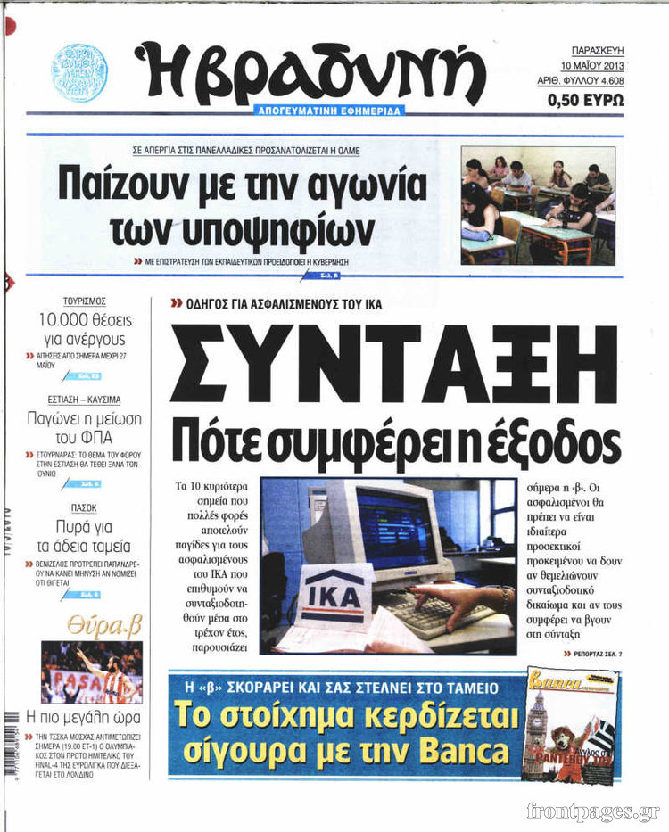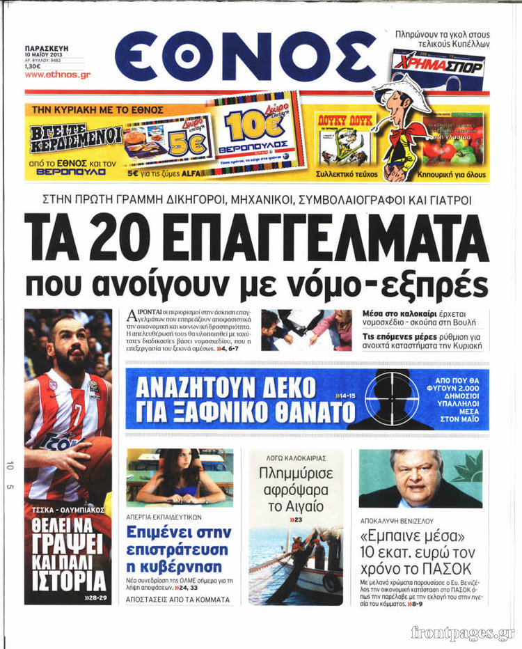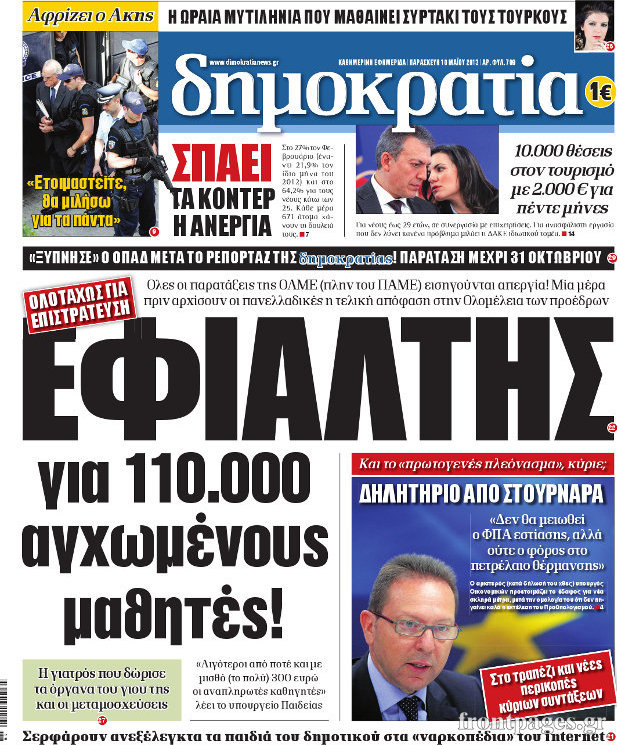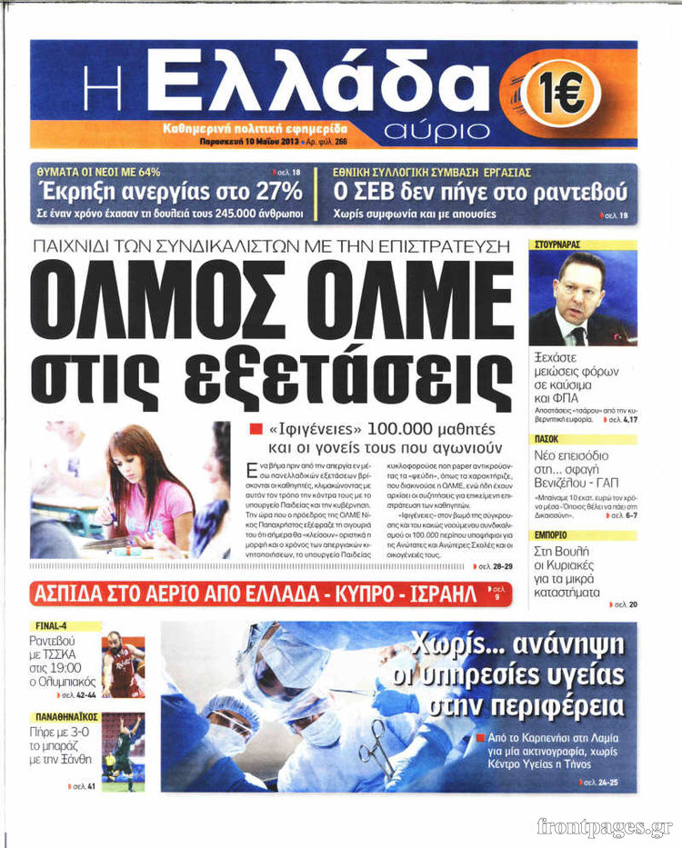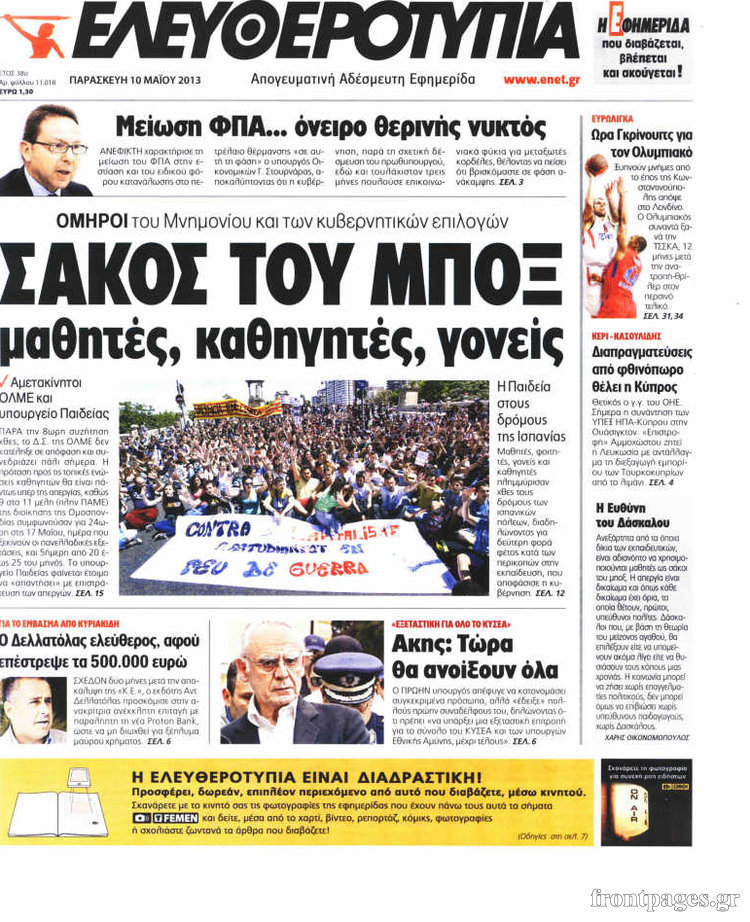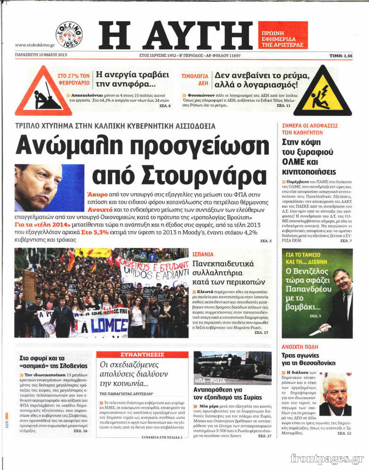 Οι πολιτικές εφημερίδες Enikos Newsroom 08:48, Παρασκευή 10 Μαΐου 2013 Media Οι πολιτικές εφημερίδες ΠΟΛΙΤΙΚΕΣ ΕΦΗΜΕΡΙΔΕΣ Μοιράσου το: σχολίασε κι εσύ (0 σχόλια) Ακολουθήστε το enikos.gr στο Google News και μάθετε πρώτοι όλες τις ειδήσεις Δείτε όλες τις τελευταίες ειδήσεις από την Ελλάδα και τον Κόσμο στο enikos.gr Ειδήσεις Ροή Ειδήσεων 4 ώρες πριν Χριστούγεννα στα μπλόκα: Επιμένουν στις κινητοποιήσεις τους οι αγρότες – Ανοίγουν τα διόδια το Σαββατοκύριακο 5 ώρες πριν Ουκρανία: Η άνευ προηγουμένου επίθεση σε ρωσικό τάνκερ στη Μεσόγειο και το μήνυμα προς στον Πούτιν – Το «μακρύ χέρι» του Κιέβου 4 ώρες πριν Πούτιν: Τα μηνύματα σε Ευρώπη και ΝΑΤΟ από το μαραθώνιο «σόου» του – Η απαίτηση για «σεβασμό» και η ειρήνη «με τους όρους» της Μόσχας 5 ώρες πριν Τραμπ: Δεν αποκλείει την πιθανότητα ενός πολέμου στη Βενεζουέλα – «Ο Μαδούρο ξέρει καλύτερα από τον καθένα τι ακριβώς θέλω» 5 ώρες πριν Συνεχίζει να προκαλεί ο Μίτσκοσκι: «Για μένα το όνομα Μακεδονία είναι ιερό» 4 ώρες πριν Ανακαλύφθηκαν αρχαία χρυσά νομίσματα 2.200 ετών που απεικονίζουν τον θεό Απόλλωνα – Η άγνωστη σύνδεση με τον Φίλιππο Β΄ της Μακεδονίας 5 ώρες πριν Ύπνος: Μια κρυφή κατάσταση του εγκεφάλου πριν από τον ύπνο μπορεί να είναι το “κλειδί” για υψηλή ευφυΐα και δημιουργικότητα 6 ώρες πριν Αριθμολογία: Οι άνθρωποι που έχουν γεννηθεί αυτές τις 4 ημερομηνίες, συχνά παρεξηγούνται – «Η καλοσύνη τους κρύβει τεράστια δύναμη» 7 ώρες πριν Ξεχάστε το καθάρισμα το Σαββατοκύριακο: Ο «κανόνας των 20 λεπτών» που θα σας λύσει τα χέρια 23 λεπτά πριν Θεσσαλονίκη: Εξαφανίστηκε 13χρονος από χώρο φιλοξενίας ασυνόδευτων ανηλίκων στο Ωραιόκαστρο 33 λεπτά πριν Ντόναλντ Τραμπ: «Πολύ βαριά αντίποινα» στη Συρία – «Πλήττουμε πολύ δυνατά οχυρά του Ισλαμικού Κράτους» 48 λεπτά πριν Εξάρχεια: Ένταση με μολότοφ, χημικά και κρότου λάμψης 1 ώρα πριν ΗΠΑ: Τραγωδία στην Αλαμπάμα – Σκότωσε την δημοσιογράφο σύζυγό του και αυτοκτόνησε μπροστά στον 3χρονο γιο τους 1 ώρα πριν Πρόταση γάμου στο ΣΕΦ κατά την διάρκεια του αγώνα Ολυμπιακός-Βιλερμπάν – Δείτε βίντεο ENIKOS NETWORK Το ΕΚΑΒ τιμήθηκε από την Ακαδημία Αθηνών για τα 40 χρόνια προσφοράς του Έχετε πραγματικά μεγάλη καρδιά; 10 χαρακτηριστικά όσων έχουν καλοσύνη Αναστολή μέτρων αναγκαστικής εκτέλεσης για κτηνοτρόφους που πλήττονται από την ευλογιά των αιγοπροβάτων Πλήρης επάρκεια προϊόντων στις λαϊκές της Αττικής, παρά τις αγροτικές κινητοποιήσεις – Τι απαντούν οι πωλητές Χαρτογραφώντας το «σημείο χωρίς επιστροφή»: Για πρώτη φορά αποκαλύπτεται με λεπτομέρεια το ακανθώδες όριο της ατμόσφαιρας τ... Η Google καταργεί τη λειτουργία «dark web report» – Πώς θα μπορούν οι χρήστες να διαγράφουν τα δεδομένα τους περισσότερα 22:42 , Παρασκευή 19 Δεκεμβρίου 2025 Γιώργος Γιαννόπουλος για “Το σόι σου”: “Είναι ευτυχία και ευλογία αυτή η σειρά” «Είναι ευτυχία και ευλογία η συγκυρία αυτής της σειράς», θα πει ο Γιώργος Γιαννόπουλος -ο αγαπ... 20:37 , Παρασκευή 19 Δεκεμβρίου 2025 Don’t Forget The Lyrics: Η Έλλη Κοκκίνου υποδέχεται 4 παίκτες που θα κάνουν τα πάντα για να μη χάσουν ούτε… μισή λέξη από τους στίχους Το «Don’t Forget The Lyrics» επιστρέφει απόψε, Παρασκευή 19 Δεκεμβρίου, στις 21:00 με νέο επει... 19:31 , Παρασκευή 19 Δεκεμβρίου 2025 GNTM: Απόψε ο μεγάλος τελικός για τους 4 φιναλίστ Έπειτα από μήνες γεμάτους μόδα, δημιουργία και έντονες αναμετρήσεις, το GNTM 2025 κορυφώνεται,... 18:11 , Παρασκευή 19 Δεκεμβρίου 2025 Το σόι σου: Ο Άρης έρχεται στην Ελλάδα για τις γιορτές των Χρ