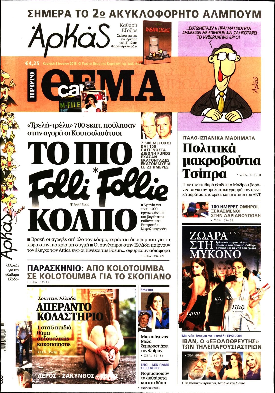 Οι πολιτικές εφημερίδες 3/6/2018 Enikos Newsroom 06:13, Κυριακή 03 Ιουνίου 2018 Media Διαβάστε τα πρωτοσέλιδα των σημερινών πολιτικών εφημερίδων… ΠΟΛΙΤΙΚΕΣ ΕΦΗΜΕΡΙΔΕΣ ΠΡΩΤΟΣΕΛΙΔΑ Μοιράσου το: σχολίασε κι εσύ (0 σχόλια) Ακολουθήστε το enikos.gr στο Google News και μάθετε πρώτοι όλες τις ειδήσεις Δείτε όλες τις τελευταίες ειδήσεις από την Ελλάδα και τον Κόσμο στο enikos.gr Ειδήσεις Ροή Ειδήσεων 2 ώρες πριν Γιορτές με μπλόκα για τους αγρότες: Ανοίγουν διόδια και μοιράζουν προϊόντα στους ταξιδιώτες 2 ώρες πριν Τα αρχεία του Έπσταϊν αποκαλύπτουν φωτογραφία του έκπτωτου πρίγκιπα Άντριου – Είναι ξαπλωμένος στην αγκαλιά 5 γυναικών 1 ώρα πριν Νέες ταυτότητες: Μεγάλη αναμονή για ραντεβού στην Αττική – Τέλος τα ταξίδια εκτός Ελλάδος από τον Αύγουστο για όσους δεν έχουν αλλάξει 2 ώρες πριν Εξαφάνιση 33χρονου γιατρού στην Κρήτη: «Άναψα τα φώτα, τρόμαξε και άρχισε να τρέχει στα χωράφια» – Η τελευταία διαδρομή και η μαρτυρία «κλειδί» 31 λεπτά πριν Ινδία: Επτά ελέφαντες σκοτώθηκαν κατά τη σύγκρουση επιβατικού τρένου με κοπάδι 2 ώρες πριν Μία νέα «χρυσή» περίοδος αρχίζει για 3 ζώδια από σήμερα – «Μία αναπάντεχη ευκαιρία οδηγεί στην επιτυχία» 4 ώρες πριν Αρχαιολόγοι ανακάλυψαν σε χωράφι απεικόνιση 600 ετών ενός Αγίου – Τα στοιχεία που δείχνουν ότι μαρτύρησε 3 ώρες πριν Αγχώνεται για το χριστουγεννιάτικο δώρο που πήρε στην πλούσια σύντροφό του – «Φοβάμαι πως θα το βρει φθηνιάρικο, φοράει βραχιόλια Cartier» 29 λεπτά πριν Διαιτολόγος αποκαλύπτει 9 πρωινές συνήθειες που «λιώνουν» το κοιλιακό λίπος – «Υποστηρίζουν την υγιεινή απώλεια βάρους» 8 λεπτά πριν Χρήστος Μάντακας: «Θα μπορούσα να είχα φύγει από τη ζωή, δεν μπορούσα να περπατήσω…» 15 λεπτά πριν Εντυπωσιακό βίντεο από «τσουνάμι» πάγου στη Σιβηρία – Πώς προκαλείται το σπάνιο φαινόμενο 24 λεπτά πριν Μυλωνάκης κατά Τζάκρη: Την καλώ να ανασκευάσει το αδιανόητο ψέμα της. Η ανοχή έχει και τα όρια της» 29 λεπτά πριν Διαιτολόγος αποκαλύπτει 9 πρωινές συνήθειες που «λιώνουν» το κοιλιακό λίπος – «Υποστηρίζουν την υγιεινή απώλεια βάρους» 31 λεπτά πριν Ινδία: Επτά ελέφαντες σκοτώθηκαν κατά τη σύγκρουση επιβατικού τρένου με κοπάδι ENIKOS NETWORK Είστε μόνιμα απρόσεκτοι; 3 σημάδια που δείχνουν ότι μπορεί να είναι σύμπτωμα πάθησης Πόσα κιλά παίρνουμε πραγματικά τα Χριστούγεννα, σύμφωνα με την επιστήμη – Πώς να το αποτρέψουμε; Χριστούγεννα και Πρωτοχρονιά: Πώς αμείβονται όσοι εργαστούν e-ΕΦΚΑ και ΔΥΠΑ: Έρχονται νέες πληρωμές έως τις 24 Δεκεμβρίου – Ποιοι πάνε ταμείο Χαρτογραφώντας το «σημείο χωρίς επιστροφή»: Για πρώτη φορά αποκαλύπτεται με λεπτομέρεια το ακανθώδες όριο της ατμόσφαιρας τ... Η Google καταργεί τη λειτουργία «dark web report» – Πώς θα μπορούν οι χρήστες να διαγράφουν τα δεδομένα τους περισσότερα 11:41 , Σάββατο 20 Δεκεμβρίου 2025 «Η αγάπη δεν χάνεται ποτέ»: Η μικρού μήκους ταινία κινουμένων σχεδίων που θέτει ερωτήματα για τη ζωή και τον θάνατο Ο θάνατος είναι ένα από τα πιο σκληρά θέματα που καλείται να διαχειριστεί κάποιος στη διάρκεια... 09:30 , Σάββατο 20 Δεκεμβρίου 2025 «Porto Leone: Στη γειτονιά με τα κόκκινα φανάρια» – Ο Χρόνης αποκαλύπτει στην Αλεξάνδρα το μυστικό για το παιδί της Λένας Η μεγάλη δραματική σειρά του Apha «Porto Leone: Στη γειτονιά με τα κόκκινα φανάρια» μας μεταφέ... 08:14 , Σάββατο 20 Δεκεμβρίου 2025 Τρομεροί γονείς: Η Μαρία Καβογιάννη εισβάλλει στο σπίτι της οικογένειας Στεφανίδη Όσα θα δούμε στο νέο διπλό επεισόδιο της σειράς «Τρομεροί γονείς», σήμερα Σάββ