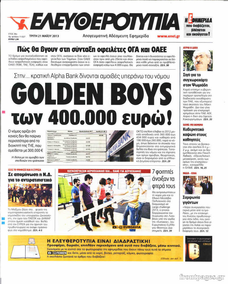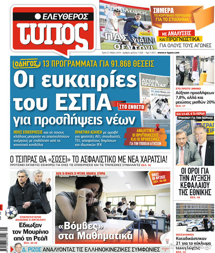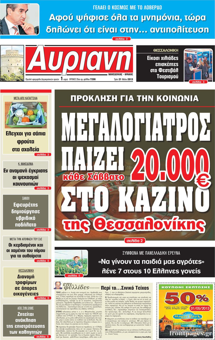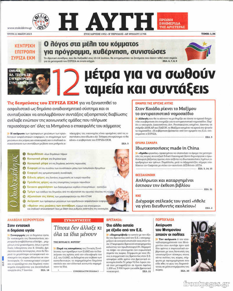 Οι πολιτικές εφημερίδες Enikos Newsroom 08:11, Τρίτη 21 Μαΐου 2013 Media Οι πολιτικές εφημερίδες Διαβάστε τα πρωτοσέλιδα των πολιτικών εφημερίδων: ΕΦΗΜΕΡΙΔΕΣ ΠΟΛΙΤΙΚΕΣ ΕΦΗΜΕΡΙΔΕΣ ΠΡΩΤΟΣΕΛΙΔΑ Μοιράσου το: σχολίασε κι εσύ (0 σχόλια) Ακολουθήστε το enikos.gr στο Google News και μάθετε πρώτοι όλες τις ειδήσεις Δείτε όλες τις τελευταίες ειδήσεις από την Ελλάδα και τον Κόσμο στο enikos.gr Ειδήσεις Ροή Ειδήσεων 9 ώρες πριν Κύκλωμα διακίνησης ναρκωτικών σε σχολεία: Βίντεο ντοκουμέντο από τα βασανιστήρια στους ανήλικους – Συζητούσαν για το πώς θα κάνουν «ξέπλυμα χρήματος» 8 ώρες πριν Κλιμακώνουν τις κινητοποιήσεις τους οι αγρότες: Κλείνουν τη Δευτέρα τις σήραγγες των Τεμπών για τα φορτηγά – Ανοίγουν την Τρίτη τους δρόμους για τους εκδρομείς 9 ώρες πριν Αιματηρό επεισόδιο στον Άγιο Παντελεήμονα – Δύο τραυματίες, αναζητείται ο δράστης 8 ώρες πριν ΗΠΑ: Αυξάνουν την πίεση στην Βενεζουέλα – Το νέο ρεσάλτο σε τάνκερ και ο στόχος του Τραμπ 9 ώρες πριν Κασσελάκης για παραίτηση Μάλαμα: «Η πορεία μας δεν θα καθοριστεί από μεμονωμένα πρόσωπα, μηχανισμούς και προσωπικές ατζέντες» 32 λεπτά πριν Οπτική ψευδαίσθηση: Μόνο οι πιο έξυπνοι άνθρωποι θα βρουν τον Άγιο Βασίλη σε 8 δευτερόλεπτα 46 λεπτά πριν Άνοια και εγκεφαλικό: Γιατρός προειδοποιεί για ένα δημοφιλές ρόφημα που αυξάνει τον κίνδυνο κατά 290% και 300% αντίστοιχα 1 ώρα πριν Τα ζώδια σήμερα, Δευτέρα 22 Δεκεμβρίου: Ζυγοί, αφήστε την καρδιά σας ελεύθερη 2 ημέρες πριν Enerwave: Το νέο «ρεύμα» στη λιανική ενέργειας που αλλάζει την εμπειρία του καταναλωτή 8 λεπτά πριν Επίδομα θέρμανσης: Μέχρι αύριο η προκαταβολή σε περισσότερα από 1 εκατ. νοικοκυριά – Τα ποσά που θα λάβουν οι δικαιούχοι 15 λεπτά πριν ΔΕΔΔΗΕ: Διακοπές ρεύματος σήμερα (22/12) στην Αθήνα και σε άλλες 7 περιοχές της Αττικής 24 λεπτά πριν ΗΠΑ: Το CBS αναβάλλει επ’ αόριστον την προβολή ντοκιμαντέρ για τη φυλακή CECOT του Ελ Σαλβαδόρ 32 λεπτά πριν Οπτική ψευδαίσθηση: Μόνο οι πιο έξυπνοι άνθρωποι θα βρουν τον Άγιο Βασίλη σε 8 δευτερόλεπτα 38 λεπτά πριν Τραγωδία στην Ινδονησία: Τουλάχιστον 16 νεκροί σε ανατροπή λεωφορείου ENIKOS NETWORK Οι γυναίκες έχουν βρει μια νέα απόλαυση στην κρεβατοκάμαρα που οι περισσότεροι άνδρες αγνοούν Christmas glow: 5 χρυσές συμβουλές για επιδερμίδα που λάμπει από ομορφιά τα Χριστούγεννα Νέο έτος ρεκόρ για τον ελληνικό τουρισμό το 2025: «Είμαστε μέσα στους 10 πλέον επισκέψιμους προορισμούς παγκοσμίως» λέει η ... Τιμές καυσίμων: Πόσο θα πληρώσουν οι εκδρομείς των Χριστουγέννων – Το κόστος μετακινήσεων σε δημοφιλείς προορισμούς Χαρτογραφώντας το «σημείο χωρίς επιστροφή»: Για πρώτη φορά αποκαλύπτεται με λεπτομέρεια το ακανθώδες όριο της ατμόσφαιρας τ... Η Google καταργεί τη λειτουργία «dark web report» – Πώς θα μπορούν οι χρήστες να διαγράφουν τα δεδομένα τους περισσότερα 05:48 , Δευτέρα 22 Δεκεμβρίου 2025 Οι οικονομικές εφημερίδες 22/12/2025 Διαβάστε τα πρωτοσέλιδα από τις οικονομικές εφημερίδες, σήμερα 22/12/2025 05:43 , Δευτέρα 22 Δεκεμβρίου 2025 Οι αθλητικές εφημερίδες 22/12/2025 Διαβάστε τα πρωτοσέλιδα από τις αθλητικές εφημερίδες, σήμερα 22/12/2025. 05:38 , Δευτέρα 22 Δεκεμβρίου 2025 Οι πολιτικές εφημερίδες 22/12/2025 Διαβάστε τα πρωτοσέλιδα από τις πολιτικές εφημερίδες, σήμερα 22/12/2025. 05:15 , Δευτέρα 22 Δεκεμβρίου 2025 Εφημερεύοντα φαρμακεία σε Αθήνα και Θεσσαλονίκη (22/12) Μάθετε ποια φαρμακεία εφημερεύουν σε Αθήνα και Θεσσαλονίκη. Βρείτε εύκολα και γρήγορα τα πλησι... ΤΕΛΕΥΤΑΙΕΣ ΕΙΔΗΣΕΙΣ 8 λεπτά πριν Επίδομα θέρμανσης: Μέχρι αύριο η π