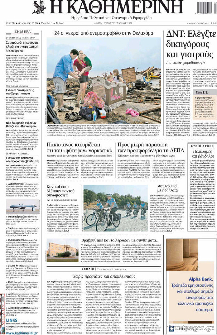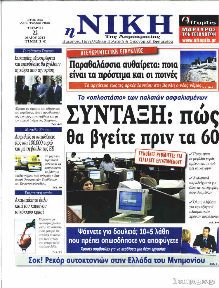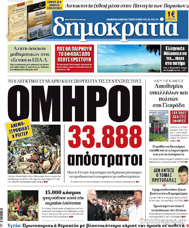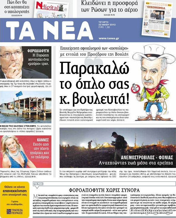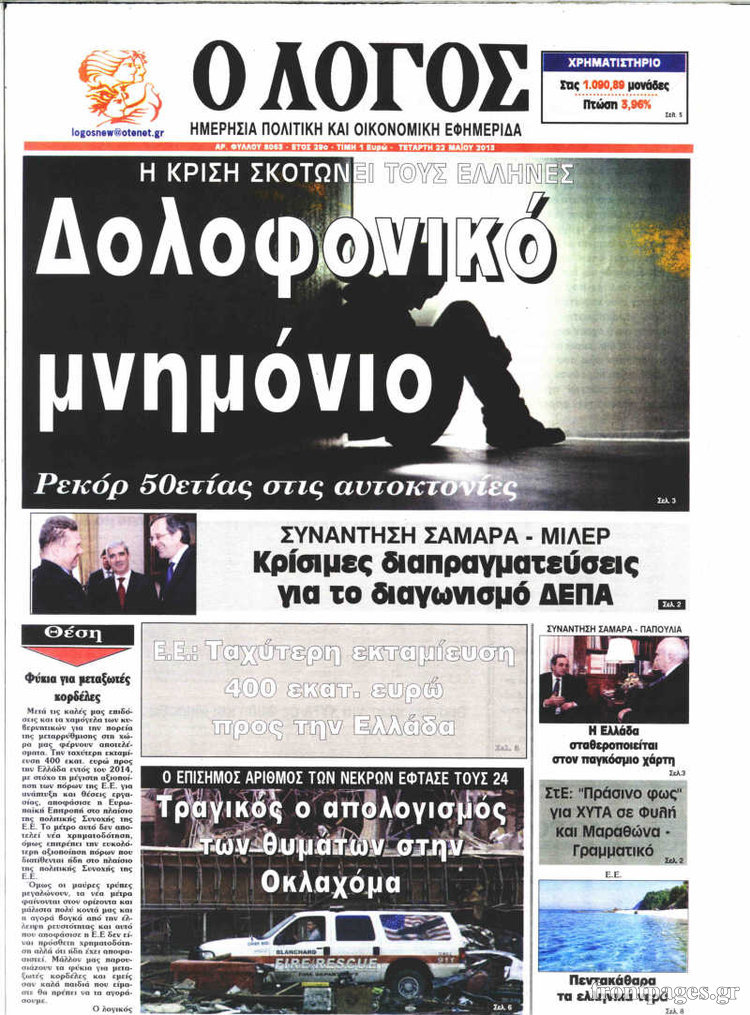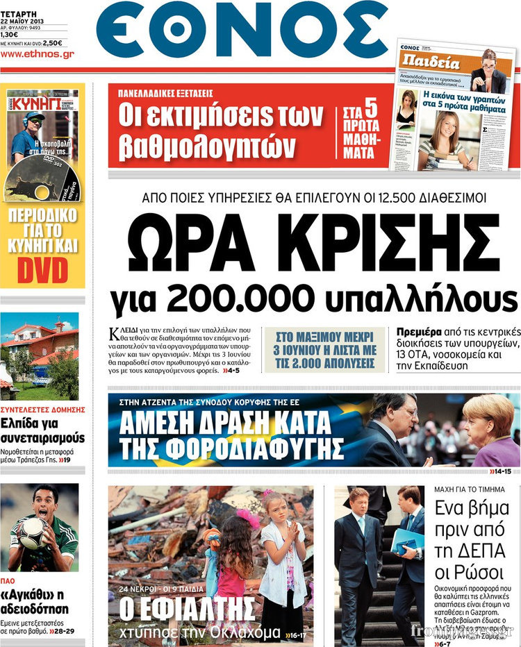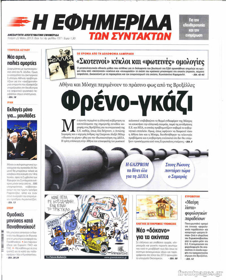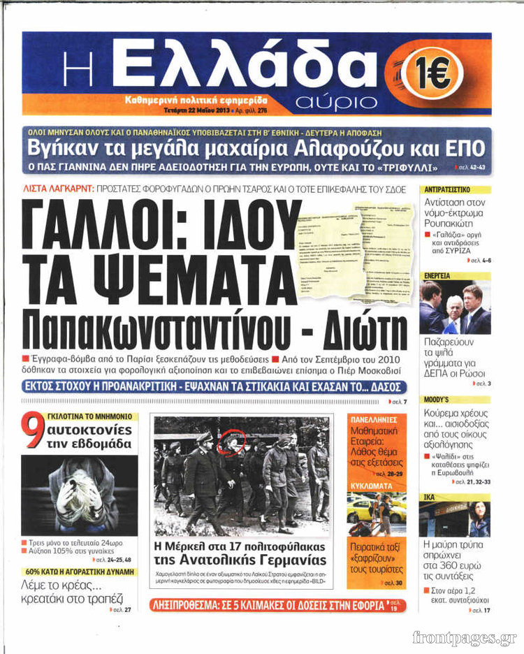 Οι πολιτικές εφημερίδες Enikos Newsroom 08:30, Τετάρτη 22 Μαΐου 2013 Media Οι πολιτικές εφημερίδες Διαβάστε τα πρωτοσέλιδα των πολιτικών εφημερίδων: ΕΦΗΜΕΡΙΔΕΣ ΠΟΛΙΤΙΚΕΣ ΕΦΗΜΕΡΙΔΕΣ ΠΡΩΤΟΣΕΛΙΔΑ Μοιράσου το: σχολίασε κι εσύ (0 σχόλια) Ακολουθήστε το enikos.gr στο Google News και μάθετε πρώτοι όλες τις ειδήσεις Δείτε όλες τις τελευταίες ειδήσεις από την Ελλάδα και τον Κόσμο στο enikos.gr Ειδήσεις Ροή Ειδήσεων 3 ώρες πριν Χριστούγεννα στα μπλόκα: Επιμένουν στις κινητοποιήσεις τους οι αγρότες – Ανοίγουν τα διόδια το Σαββατοκύριακο 4 ώρες πριν Ουκρανία: Η άνευ προηγουμένου επίθεση σε ρωσικό τάνκερ στη Μεσόγειο και το μήνυμα προς στον Πούτιν – Το «μακρύ χέρι» του Κιέβου 3 ώρες πριν Πούτιν: Τα μηνύματα σε Ευρώπη και ΝΑΤΟ από το μαραθώνιο «σόου» του – Η απαίτηση για «σεβασμό» και η ειρήνη «με τους όρους» της Μόσχας 4 ώρες πριν Τραμπ: Δεν αποκλείει την πιθανότητα ενός πολέμου στη Βενεζουέλα – «Ο Μαδούρο ξέρει καλύτερα από τον καθένα τι ακριβώς θέλω» 5 ώρες πριν Συνεχίζει να προκαλεί ο Μίτσκοσκι: «Για μένα το όνομα Μακεδονία είναι ιερό» 3 ώρες πριν Ανακαλύφθηκαν αρχαία χρυσά νομίσματα 2.200 ετών που απεικονίζουν τον θεό Απόλλωνα – Η άγνωστη σύνδεση με τον Φίλιππο Β΄ της Μακεδονίας 4 ώρες πριν Ύπνος: Μια κρυφή κατάσταση του εγκεφάλου πριν από τον ύπνο μπορεί να είναι το “κλειδί” για υψηλή ευφυΐα και δημιουργικότητα 5 ώρες πριν Αριθμολογία: Οι άνθρωποι που έχουν γεννηθεί αυτές τις 4 ημερομηνίες, συχνά παρεξηγούνται – «Η καλοσύνη τους κρύβει τεράστια δύναμη» 6 ώρες πριν Ξεχάστε το καθάρισμα το Σαββατοκύριακο: Ο «κανόνας των 20 λεπτών» που θα σας λύσει τα χέρια 24 λεπτά πριν Πρόταση γάμου στο ΣΕΦ κατά την διάρκεια του αγώνα Ολυμπιακός-Βιλερμπάν – Δείτε βίντεο 39 λεπτά πριν Euroleague: Επέστρεψε στις νίκες ο Ολυμπιακός, πήρε την ματσάρα της χρονιάς η Μπάρτσα – Τα αποτελέσματα και η βαθμολογία 54 λεπτά πριν Συρία: Μαζικά πλήγματα των ΗΠΑ σε θέσεις του Ισλαμικού Κράτους – Χέγκσεθ: «Δεν είναι αρχή πολέμου, είναι μια δήλωση εκδίκησης» για το θάνατο των στρατιωτών μας 1 ώρα πριν Ουκρανία: Ολοκληρώθηκαν οι συνομιλίες με τους Αμερικανούς κι Ευρωπαίους διαπραγματευτές 1 ώρα πριν Μπαρτσελόνα – Μπασκόνια 134-124: Οι «μπλαουγκράνα» πήραν το ματς της χρονιάς ύστερα από τρεις παρατάσεις ENIKOS NETWORK Το ΕΚΑΒ τιμήθηκε από την Ακαδημία Αθηνών για τα 40 χρόνια προσφοράς του Έχετε πραγματικά μεγάλη καρδιά; 10 χαρακτηριστικά όσων έχουν καλοσύνη Αναστολή μέτρων αναγκαστικής εκτέλεσης για κτηνοτρόφους που πλήττονται από την ευλογιά των αιγοπροβάτων Πλήρης επάρκεια προϊόντων στις λαϊκές της Αττικής, παρά τις αγροτικές κινητοποιήσεις – Τι απαντούν οι πωλητές Χαρτογραφώντας το «σημείο χωρίς επιστροφή»: Για πρώτη φορά αποκαλύπτεται με λεπτομέρεια το ακανθώδες όριο της ατμόσφαιρας τ... Η Google καταργεί τη λειτουργία «dark web report» – Πώς θα μπορούν οι χρήστες να διαγράφουν τα δεδομένα τους περισσότερα 22:42 , Παρασκευή 19 Δεκεμβρίου 2025 Γιώργος Γιαννόπουλος για “Το σόι σου”: “Είναι ευτυχία και ευλογία αυτή η σειρά” «Είναι ευτυχία και ευλογία η συγκυρία αυτής της σειράς», θα πει ο Γιώργος Γιαννόπουλος -ο αγαπ... 20:37 , Παρασκευή 19 Δεκεμβρίου 2025 Don’t Forget The Lyrics: Η Έλλη Κοκκίνου υποδέχεται 4 παίκτες που θα κάνουν τα πάντα για να μη χάσουν ούτε… μισή λέξη από τους στίχους Το «Don’t Forget The Lyrics» επιστρέφει απόψε, Παρασκευή 19 Δεκεμβρίου, στις 21:00 με νέο επει... 19:31 , Παρασκευή 19 Δεκεμβρίου 2025 GNTM: Απόψε ο μεγάλος τελικός για τους 4 φιναλίστ Έπει
