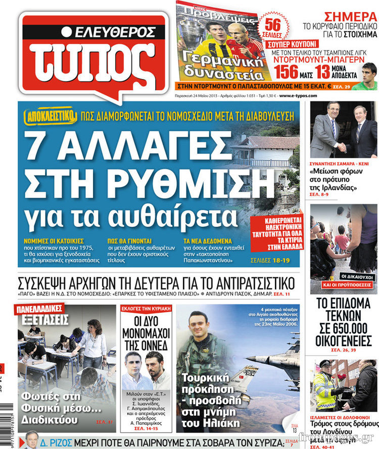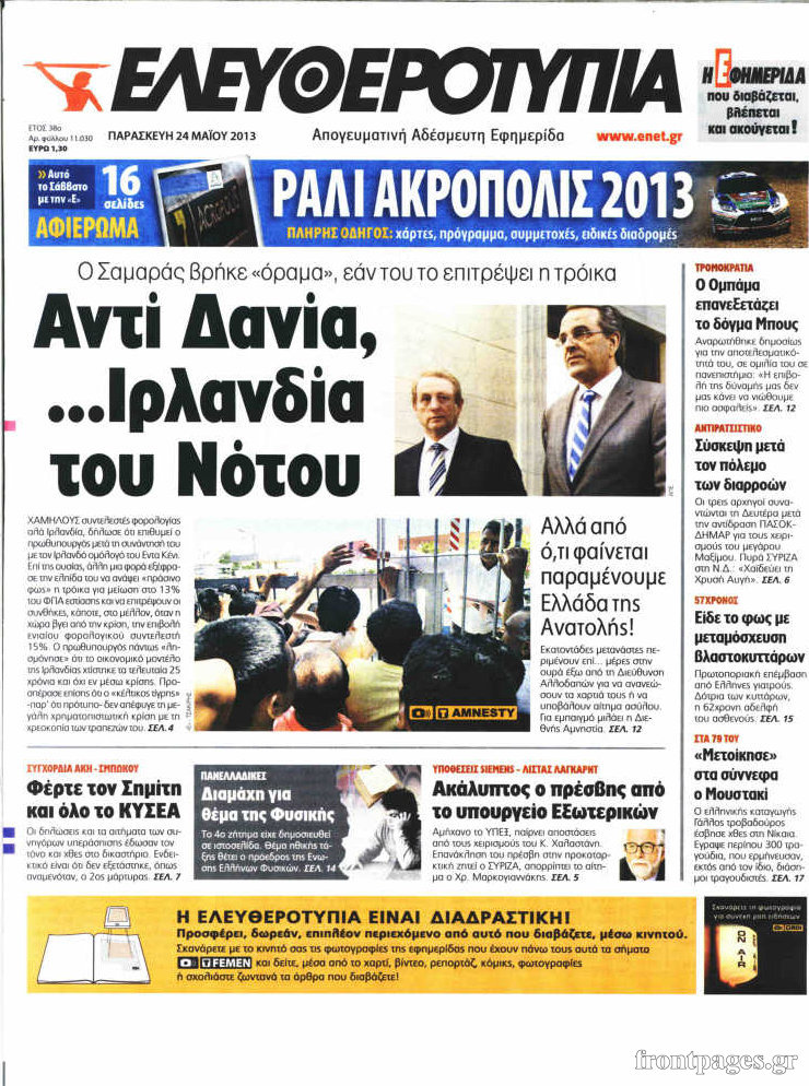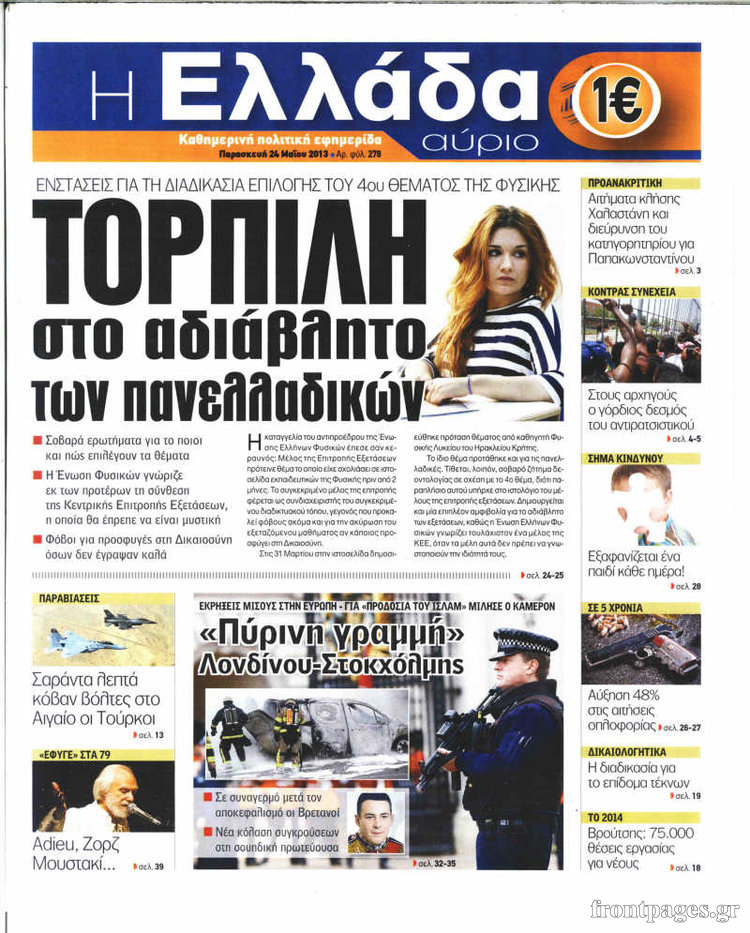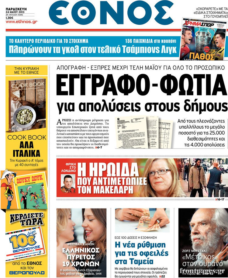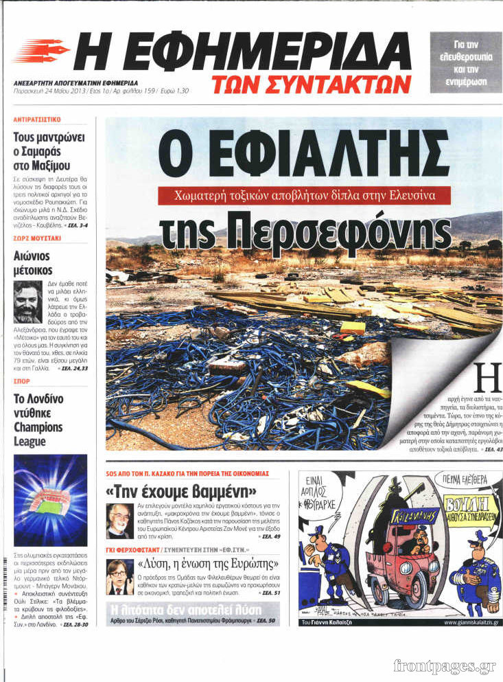 Οι πολιτικές εφημερίδες Enikos Newsroom 08:02, Παρασκευή 24 Μαΐου 2013 Media Οι πολιτικές εφημερίδες Διαβάστε τα πρωτοσέλιδα των πολιτικών εφημερίδων: ΕΦΗΜΕΡΙΔΕΣ ΠΟΛΙΤΙΚΕΣ ΕΦΗΜΕΡΙΔΕΣ ΠΡΩΤΟΣΕΛΙΔΑ Μοιράσου το: σχολίασε κι εσύ (0 σχόλια) Ακολουθήστε το enikos.gr στο Google News και μάθετε πρώτοι όλες τις ειδήσεις Δείτε όλες τις τελευταίες ειδήσεις από την Ελλάδα και τον Κόσμο στο enikos.gr Ειδήσεις Ροή Ειδήσεων 1 ώρα πριν Ευρωπαϊκή Ένωση: Συμφωνία για δάνειο 90 δισ. ευρώ στην Ουκρανία τη διετία 2026-2027 6 ώρες πριν ΟΠΕΚΕΠΕ: Προφυλακιστέος ο φερόμενος αρχηγός και ο λογιστής της εγκληματικής οργάνωσης 7 ώρες πριν Αυξάνουν την πίεση προς την κυβέρνηση οι αγρότες: Κλείνουν παρακαμπτήριους και ανοίγουν διόδια – Τι θα γίνει τις γιορτές 6 ώρες πριν Φοινικούντα: Το Σάββατο απολογείται ο 30χρονος γιος γνωστού επιχειρηματία της Πλάκας που παραδόθηκε – Όσα είπε στους αστυνομικούς και ο ρόλος του στο έγκλημα 5 ώρες πριν ΑΕΚ – Κραϊόβα 3-2: Επική ανατροπή και πρόκριση στους «16» του Conference League η Ένωση 6 ώρες πριν Αρχαιολόγοι ανακάλυψαν ρωμαϊκά τεχνουργήματα από μια πόλη που δεν υπήρξε ποτέ – Τα τρία εντυπωσιακά κτίρια και ο αμφορέας με τις… σαρδέλες 7 ώρες πριν Ύπνος: Η απλή βραδινή ρουτίνα για να προστατεύσετε τα μαλλιά σας από το κρύο κατά τη διάρκεια του χειμώνα 8 ώρες πριν Manifesting: Πώς να συναντήσετε τον σύντροφο της ζωής σας, ανάλογα με τον μήνα γέννησής σας 2 ημέρες πριν 20 χρόνια τα Χριστούγεννα ξεκινούν στα Public με μεγάλη ποικιλία σε δώρα! 8 λεπτά πριν Αλεξάντερ Λουκασένκο: Η Λευκορωσία βρίσκεται κοντά στην αποκατάσταση των σχέσεών της με τις ΗΠΑ 24 λεπτά πριν Αυστραλία: Κήρυξε την Κυριακή (21/12) ημέρα εθνικού πένθους για τη φονική επίθεση στην παραλία Μπόνταϊ 34 λεπτά πριν Ρόδος: Δάσκαλος καράτε καταδικάστηκε για ασέλγεια σε ανήλικες αθλήτριες – Μαρτυρίες για αγγίγματα σε ευαίσθητα σημεία 48 λεπτά πριν Γουατεμάλα: Εξαρθρώθηκε κύκλωμα διακίνησης μεταναστών προς τις ΗΠΑ – Συνελήφθησαν 14 άτομα 53 λεπτά πριν Βουλγαρία: Χιλιάδες πολίτες στους δρόμους κατά της απερχόμενης κυβέρνησης και της διαφθοράς ENIKOS NETWORK Σε περίοδο αυξημένης δραστηριότητας η γρίπη στην Ελλάδα-Μέτρα προστασίας από τον ΕΟΔΥ Σκέφτεστε συνέχεια συζητήσεις που έχετε κάνει; Τι σημαίνει αυτό, σύμφωνα με ειδικό Στεγαστικό: Τι λέει η ΠΟΜΙΔΑ για τα νέα μέτρα που ανακοίνωσε ο Κυριάκος Μητσοτάκης Λαγκάρντ: Αισιόδοξη για την ανάπτυξη της Ευρωζώνης, αβέβαιη για τον πληθωρισμό Χαρτογραφώντας το «σημείο χωρίς επιστροφή»: Για πρώτη φορά αποκαλύπτεται με λεπτομέρεια το ακανθώδες όριο της ατμόσφαιρας τ... Η Google καταργεί τη λειτουργία «dark web report» – Πώς θα μπορούν οι χρήστες να διαγράφουν τα δεδομένα τους περισσότερα 02:50 , Παρασκευή 19 Δεκεμβρίου 2025 GNTM: «Κλείδωσαν» οι τέσσερις φιναλίστ – Μεγάλη ανατροπή στις τελευταίες αποχωρήσεις Για προτελευταία φορά εμφανίστηκαν στο πλατό του GNTM οι φιναλίστ του φετινού κύκλου, το βράδυ... 17:45 , Πέμπτη 18 Δεκεμβρίου 2025 ROUK ZOUK: Εορταστικό επεισόδιο με καλεσμένους τους πρωταγωνιστές του «Γιατί ρε πατέρα» Το Σάββατο 20 Δεκεμβρίου στις 21:00, η Ζέτα Μακρυπούλια υποδέχεται εκλεκτούς ηθοποιούς που όλο... 17:20 , Πέμπτη 18 Δεκεμβρίου 2025 Άγιος έρωτας: Η Χριστίνα εξομολογείται στον πατέρα Νικόλαο, απόψε στις 21:00 στον Alpha Η Νότα αποφασίζει να εκδικηθεί τον Πέτρο και τον Στέφανο, για χάρη του Λούη, όμως τα πράγματα ... 16:50 , Πέμπτη 18 Δεκεμβρίου 2025 Να μ’ αγαπάς: Ζωή και Φωτεινή συμφιλιώνονται ως μάνα με κόρη, απόψε στις 20:00 Η ταυτότ