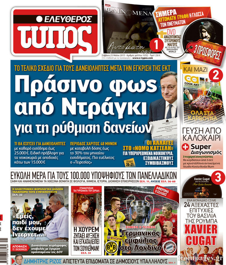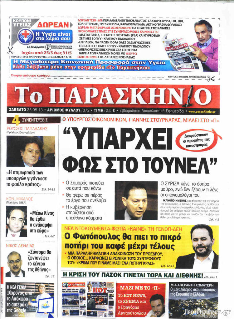 Οι πολιτικές εφημερίδες Enikos Newsroom 08:26, Σάββατο 25 Μαΐου 2013 Media Οι πολιτικές εφημερίδες ΕΦΗΜΕΡΙΔΕΣ ΠΟΛΙΤΙΚΕΣ ΕΦΗΜΕΡΙΔΕΣ Μοιράσου το: σχολίασε κι εσύ (0 σχόλια) Ακολουθήστε το enikos.gr στο Google News και μάθετε πρώτοι όλες τις ειδήσεις Δείτε όλες τις τελευταίες ειδήσεις από την Ελλάδα και τον Κόσμο στο enikos.gr Ειδήσεις Ροή Ειδήσεων 2 ώρες πριν Πώς δρούσε το κύκλωμα που διακινούσε ναρκωτικά σε σχολεία – Υπέβαλαν σε βασανιστήρια όσους δεν τηρούσαν τους «κανόνες πειθαρχίας» 3 ώρες πριν Αγρότες: Γιορτές στα μπλόκα με ανοιχτά διόδια – Δικογραφία στα Ιωάννινα για το σήκωμα των μπαρών 2 ώρες πριν Ζελένσκι: Οι Αμερικανοί πρότειναν συνάντηση Ουκρανίας, ΗΠΑ, Ρωσίας στο Μαϊάμι 1 ώρα πριν Αττική: Εξαρθρώθηκε εγκληματική οργάνωση που έκλεβε οχήματα, τα παραποιούσε και τα μεταπωλούσε σε πολίτες – Πώς δρούσε το κύκλωμα 1 ώρα πριν Μικαέλα Μπέντχαους: Ο πρώτος άνθρωπος σε αναπηρικό αμαξίδιο που ταξίδεψε στο διάστημα – ΒΙΝΤΕΟ 3 ώρες πριν Η τύχη χαμογελά σε 3 ζώδια έως τις 28 Δεκεμβρίου – «Προσέξτε τις επιλογές σας και η επιμονή σας θα ανταμειφθεί» 7 ώρες πριν Διαιτολόγος αποκαλύπτει 9 πρωινές συνήθειες που «λιώνουν» το κοιλιακό λίπος – «Υποστηρίζουν την υγιεινή απώλεια βάρους» 4 ώρες πριν Μία ανεκμετάλλευτη πηγή θα μπορούσε να προσφέρει ανεξάντλητη ενέργεια – Οι επιστήμονες ίσως γνωρίζουν πώς να την ξεκλειδώσουν 10 ώρες πριν Enerwave: Το νέο «ρεύμα» στη λιανική ενέργειας που αλλάζει την εμπειρία του καταναλωτή 2 λεπτά πριν Πηνελόπη Πλάκα: Η εξομολόγηση για την προσωπική της ζωή – «Γούσταρα πάρα πολύ την ελευθερία μου» 14 λεπτά πριν Λούλα: Προειδοποιεί πως μια επέμβαση των ΗΠΑ στη Βενεζουέλα θα μπορούσε να είναι καταστροφική 22 λεπτά πριν Τραμπ: Πώς περνάει τις γιορτές των Χριστουγέννων – Τα δώρα που κάνει στα εγγόνια του 35 λεπτά πριν HOTΕΛ ΕΛVIRA: Η Ελβίρα μαθαίνει πως ο Χάρι μένει κρυφά στο ξενοδοχείο του Παντελή 44 λεπτά πριν Ερντογάν: «Δεν έχουμε βλέψεις στα εδάφη κανενός, αλλά δεν θα επιτρέψουμε να παραβιαστούν τα δικαιώματά μας» ENIKOS NETWORK Οι γυναίκες αποκαλύπτουν το πιο ελκυστικό πράγμα που μπορεί να κάνει ένας άνδρας Ομορφιά και αντιγήρανση: Ειδικοί μιλούν για συσκευές περιποίησης του δέρματος Ολοκληρώθηκαν πληρωμές 22,16 εκατ. ευρώ για το μεταφορικό ισοδύναμο – Κικίλιας: Στηρίζουμε τη νησιωτικότητα Η Realnews στο www.pressreader.com Χαρτογραφώντας το «σημείο χωρίς επιστροφή»: Για πρώτη φορά αποκαλύπτεται με λεπτομέρεια το ακανθώδες όριο της ατμόσφαιρας τ... Η Google καταργεί τη λειτουργία «dark web report» – Πώς θα μπορούν οι χρήστες να διαγράφουν τα δεδομένα τους περισσότερα 18:19 , Σάββατο 20 Δεκεμβρίου 2025 HOTΕΛ ΕΛVIRA: Η Ελβίρα μαθαίνει πως ο Χάρι μένει κρυφά στο ξενοδοχείο του Παντελή Συνεχίζονται οι εκλογές για πρόεδρο, στο νέο επεισόδιο της κωμικής σειράς του MEGA, HOTΕΛ ΕΛVI... 14:04 , Σάββατο 20 Δεκεμβρίου 2025 Η Realnews αυτής της Κυριακής (21/12/2025) Με τίτλο: «Ασπίδα προστασίας για την Ελλάδα» κυκλοφορεί, αυτήν την Κυριακή, η Realnews. Σημαντ... 12:53 , Σάββατο 20 Δεκεμβρίου 2025 Να μ’ αγαπάς: Το παρελθόν έρχεται στο φως – Καταιγιστικές εξελίξεις στα τελευταία επεισόδια του 2025 Ο Άγγελος αποκαλύπτεται, η Φωτεινή ανησυχεί για τον Λευτέρη και η Ζωή έρχεται αντιμέτωπη με το... 11:41 , Σάββατο 20 Δεκεμβρίου 2025 «Η αγάπη δεν χάνεται ποτέ»: Η μικρού μήκους ταινία κινουμένων σχεδίων που θέτει ερωτήματα για τη ζωή και τον θάνατο Ο θάνατος είναι ένα από τα πιο σκληρά θέματα που καλείται να διαχειριστεί κάποιος στη διάρκεια... ΤΕΛΕΥΤΑΙΕ