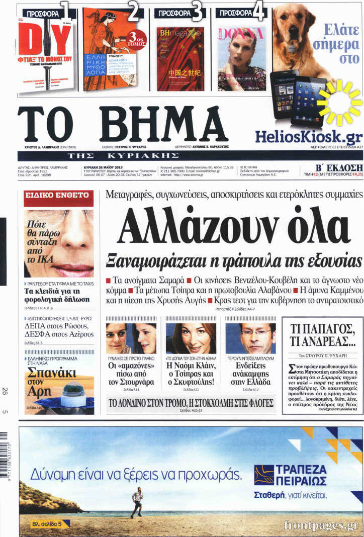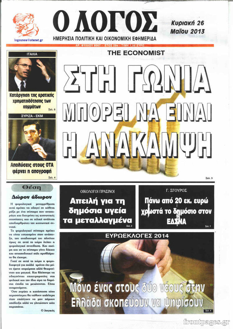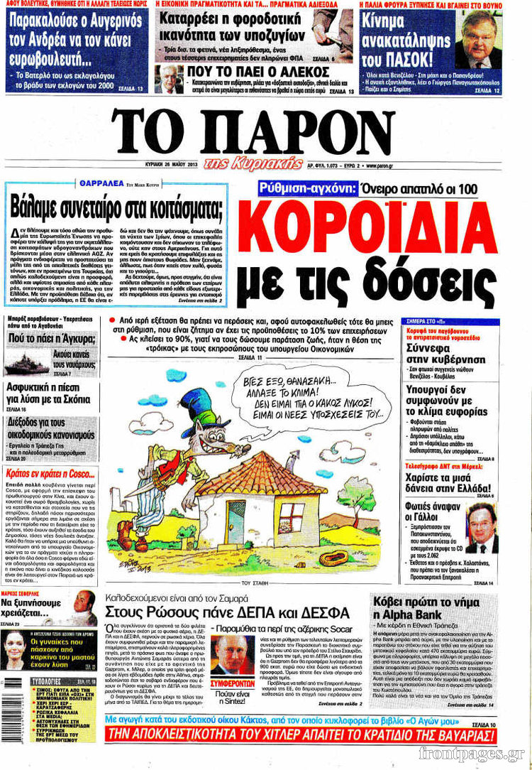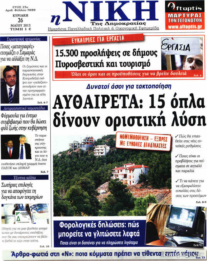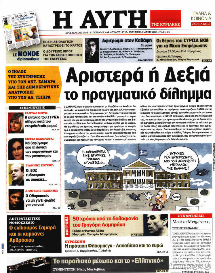 Οι πολιτικές εφημερίδες Enikos Newsroom 08:25, Κυριακή 26 Μαΐου 2013 Media Οι πολιτικές εφημερίδες ΕΦΗΜΕΡΙΔΕΣ ΠΟΛΙΤΙΚΕΣ ΕΦΗΜΕΡΙΔΕΣ Μοιράσου το: σχολίασε κι εσύ (0 σχόλια) Ακολουθήστε το enikos.gr στο Google News και μάθετε πρώτοι όλες τις ειδήσεις Δείτε όλες τις τελευταίες ειδήσεις από την Ελλάδα και τον Κόσμο στο enikos.gr Ειδήσεις Ροή Ειδήσεων 8 ώρες πριν Χριστούγεννα στα μπλόκα: Επιμένουν στις κινητοποιήσεις τους οι αγρότες – Ανοίγουν τα διόδια το Σαββατοκύριακο 9 ώρες πριν Ουκρανία: Η άνευ προηγουμένου επίθεση σε ρωσικό τάνκερ στη Μεσόγειο και το μήνυμα προς στον Πούτιν – Το «μακρύ χέρι» του Κιέβου 8 ώρες πριν Πούτιν: Τα μηνύματα σε Ευρώπη και ΝΑΤΟ από το μαραθώνιο «σόου» του – Η απαίτηση για «σεβασμό» και η ειρήνη «με τους όρους» της Μόσχας 7 ώρες πριν ΗΠΑ: Η κυβέρνηση του Ντόναλντ Τραμπ άρχισε να δημοσιοποιεί τα αρχεία Έπσταϊν 7 ώρες πριν Άνω Λιόσια: Πυροβολισμοί σε επιχείρηση με χαλιά – Εντοπίστηκαν 10 κάλυκες 56 λεπτά πριν Αυγά: Πόσα μπορείτε να τρώτε την ημέρα με ασφάλεια για μέγιστη πρόσληψη πρωτεΐνης 1 ώρα πριν Τα ζώδια σήμερα, Σάββατο 20 Δεκεμβρίου: Παρθένοι, το σύμπαν σας δίνει το κλειδί 8 ώρες πριν Ανακαλύφθηκαν αρχαία χρυσά νομίσματα 2.200 ετών που απεικονίζουν τον θεό Απόλλωνα – Η άγνωστη σύνδεση με τον Φίλιππο Β΄ της Μακεδονίας 9 ώρες πριν Ύπνος: Μια κρυφή κατάσταση του εγκεφάλου πριν από τον ύπνο μπορεί να είναι το “κλειδί” για υψηλή ευφυΐα και δημιουργικότητα 17 λεπτά πριν Κίριλ Ντμίτριεφ: Στις ΗΠΑ ο απεσταλμένος της Ρωσίας για συνομιλίες με τους ομολόγους του, Γουίτκοφ και Κούσνερ 24 λεπτά πριν ΔΕΔΔΗΕ: Διακοπές ρεύματος σήμερα (20/12) στην Αθήνα και σε άλλες 7 περιοχές της Αττικής 33 λεπτά πριν Κολομβία: Είκοσι χρόνια κάθειρξη σε πρώην ανώτερο αξιωματικό για 72 εκτελέσεις αμάχων 40 λεπτά πριν Οπτική ψευδαίσθηση: Μόνο αν είσαι ο Σέρλοκ Χολμς θα βρεις τον αριθμό «87» σε 7 δευτερόλεπτα 47 λεπτά πριν Σαρωτικοί οι έλεγχοι στους δρόμους ενόψει εορτών – Μπλόκα της τροχαίας σε κεντρικές αρτηρίες της Αττικής ENIKOS NETWORK Πρέπει να αποδέχεστε ή να απορρίπτετε όλα τα cookies; Ένας ειδικός εξηγεί Η αγαπημένη λιχουδιά των πόνι που μπορεί να ενισχύσει όραση, εγκέφαλο και ανοσοποιητικό Αναστολή μέτρων αναγκαστικής εκτέλεσης για κτηνοτρόφους που πλήττονται από την ευλογιά των αιγοπροβάτων Πλήρης επάρκεια προϊόντων στις λαϊκές της Αττικής, παρά τις αγροτικές κινητοποιήσεις – Τι απαντούν οι πωλητές Χαρτογραφώντας το «σημείο χωρίς επιστροφή»: Για πρώτη φορά αποκαλύπτεται με λεπτομέρεια το ακανθώδες όριο της ατμόσφαιρας τ... Η Google καταργεί τη λειτουργία «dark web report» – Πώς θα μπορούν οι χρήστες να διαγράφουν τα δεδομένα τους περισσότερα 05:48 , Σάββατο 20 Δεκεμβρίου 2025 Οι οικονομικές εφημερίδες 20/12/2025 Διαβάστε τα πρωτοσέλιδα από τις οικονομικές εφημερίδες, σήμερα 20/12/2025. 05:43 , Σάββατο 20 Δεκεμβρίου 2025 Οι αθλητικές εφημερίδες 20/12/2025 Διαβάστε τα πρωτοσέλιδα από τις αθλητικές εφημερίδες, σήμερα 20/12/2025. 05:38 , Σάββατο 20 Δεκεμβρίου 2025 Οι πολιτικές εφημερίδες 20/12/2025 Διαβάστε τα πρωτοσέλιδα από τις πολιτικές εφημερίδες, σήμερα 20/12/2025. 04:20 , Σάββατο 20 Δεκεμβρίου 2025 Αγγελική Νικολούλη: Τα συλλυπητήρια για την απώλεια της Ειρήνης Μαρινάκη Τα συλληπητήρια στον πρόεδρο του Mega, τον Βαγγέλη Μαρινάκη, για την απώλεια της μητέρας του Ε... ΤΕΛΕΥΤΑΙΕΣ ΕΙΔΗΣΕΙΣ 17 λεπτά πριν Κίριλ Ντμίτριεφ: Στις ΗΠΑ ο απεσταλμένος της Ρωσίας... 24 λεπτά πριν ΔΕΔΔΗΕ: Διακοπές ρεύματος σήμερα (20/12) στην Αθήνα και... 33 λεπτά πριν Κολομβία: