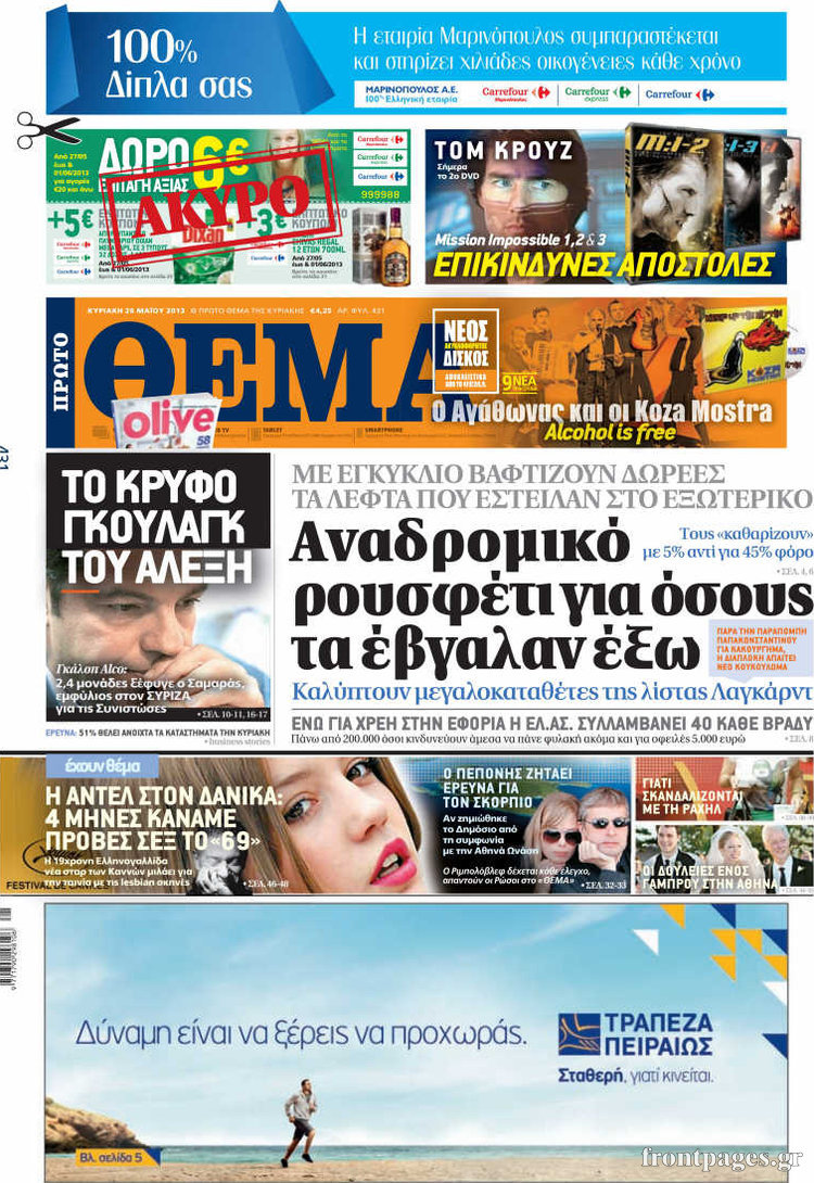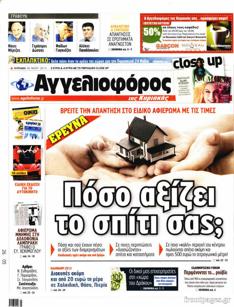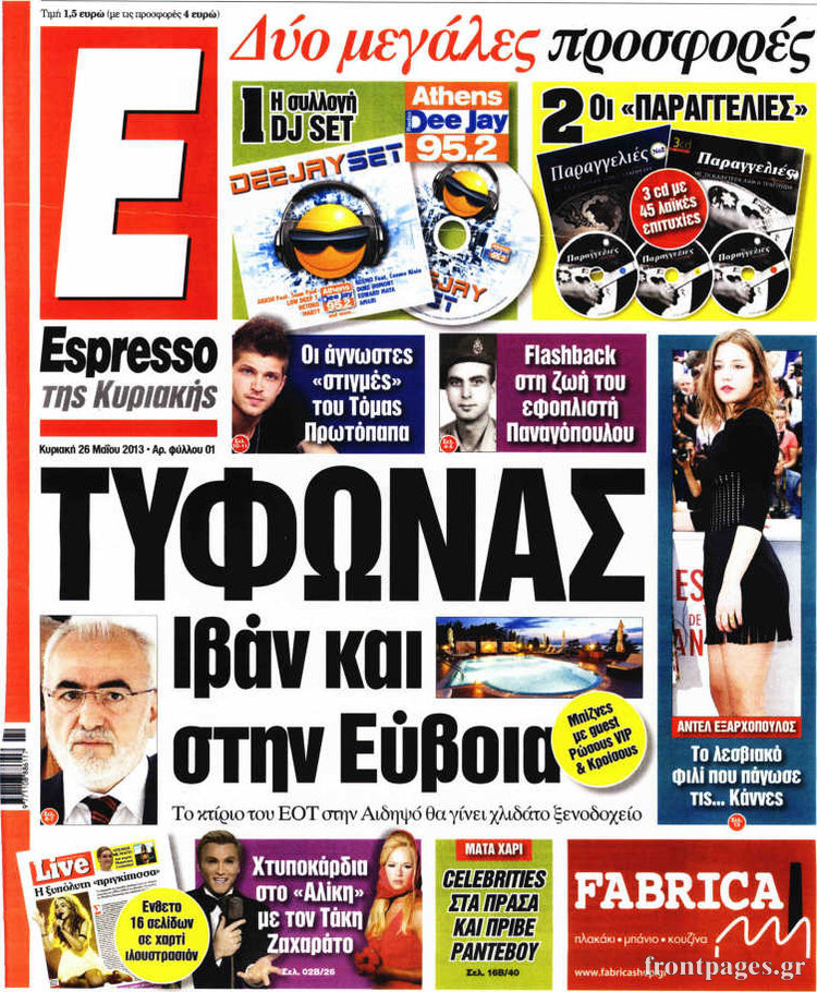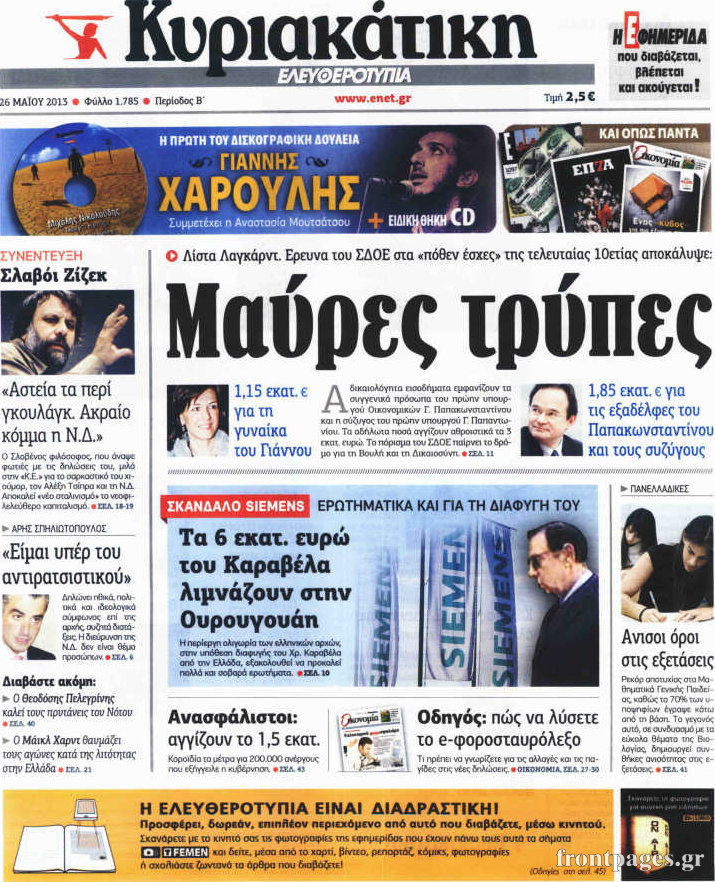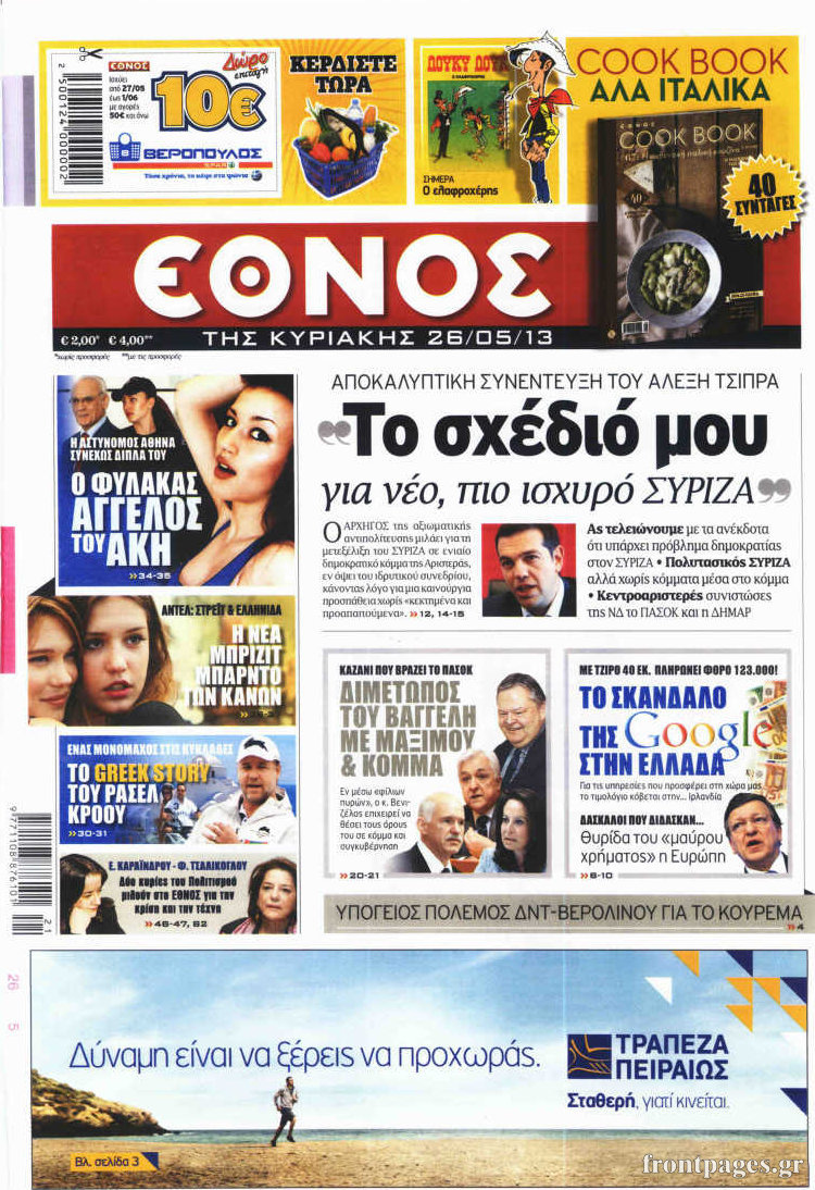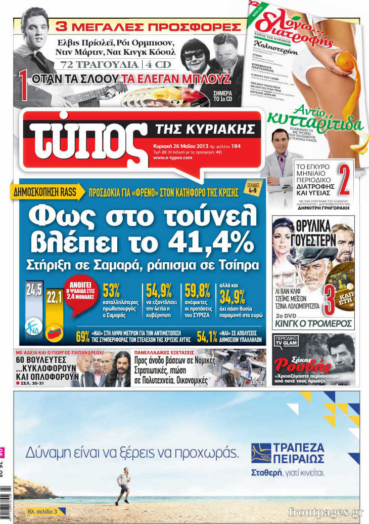 Οι πολιτικές εφημερίδες Enikos Newsroom 08:25, Κυριακή 26 Μαΐου 2013 Media Οι πολιτικές εφημερίδες ΕΦΗΜΕΡΙΔΕΣ ΠΟΛΙΤΙΚΕΣ ΕΦΗΜΕΡΙΔΕΣ Μοιράσου το: σχολίασε κι εσύ (0 σχόλια) Ακολουθήστε το enikos.gr στο Google News και μάθετε πρώτοι όλες τις ειδήσεις Δείτε όλες τις τελευταίες ειδήσεις από την Ελλάδα και τον Κόσμο στο enikos.gr Ειδήσεις Ροή Ειδήσεων 8 ώρες πριν Χριστούγεννα στα μπλόκα: Επιμένουν στις κινητοποιήσεις τους οι αγρότες – Ανοίγουν τα διόδια το Σαββατοκύριακο 9 ώρες πριν Ουκρανία: Η άνευ προηγουμένου επίθεση σε ρωσικό τάνκερ στη Μεσόγειο και το μήνυμα προς στον Πούτιν – Το «μακρύ χέρι» του Κιέβου 8 ώρες πριν Πούτιν: Τα μηνύματα σε Ευρώπη και ΝΑΤΟ από το μαραθώνιο «σόου» του – Η απαίτηση για «σεβασμό» και η ειρήνη «με τους όρους» της Μόσχας 7 ώρες πριν ΗΠΑ: Η κυβέρνηση του Ντόναλντ Τραμπ άρχισε να δημοσιοποιεί τα αρχεία Έπσταϊν 7 ώρες πριν Άνω Λιόσια: Πυροβολισμοί σε επιχείρηση με χαλιά – Εντοπίστηκαν 10 κάλυκες 56 λεπτά πριν Αυγά: Πόσα μπορείτε να τρώτε την ημέρα με ασφάλεια για μέγιστη πρόσληψη πρωτεΐνης 1 ώρα πριν Τα ζώδια σήμερα, Σάββατο 20 Δεκεμβρίου: Παρθένοι, το σύμπαν σας δίνει το κλειδί 8 ώρες πριν Ανακαλύφθηκαν αρχαία χρυσά νομίσματα 2.200 ετών που απεικονίζουν τον θεό Απόλλωνα – Η άγνωστη σύνδεση με τον Φίλιππο Β΄ της Μακεδονίας 9 ώρες πριν Ύπνος: Μια κρυφή κατάσταση του εγκεφάλου πριν από τον ύπνο μπορεί να είναι το “κλειδί” για υψηλή ευφυΐα και δημιουργικότητα 17 λεπτά πριν Κίριλ Ντμίτριεφ: Στις ΗΠΑ ο απεσταλμένος της Ρωσίας για συνομιλίες με τους ομολόγους του, Γουίτκοφ και Κούσνερ 24 λεπτά πριν ΔΕΔΔΗΕ: Διακοπές ρεύματος σήμερα (20/12) στην Αθήνα και σε άλλες 7 περιοχές της Αττικής 33 λεπτά πριν Κολομβία: Είκοσι χρόνια κάθειρξη σε πρώην ανώτερο αξιωματικό για 72 εκτελέσεις αμάχων 40 λεπτά πριν Οπτική ψευδαίσθηση: Μόνο αν είσαι ο Σέρλοκ Χολμς θα βρεις τον αριθμό «87» σε 7 δευτερόλεπτα 47 λεπτά πριν Σαρωτικοί οι έλεγχοι στους δρόμους ενόψει εορτών – Μπλόκα της τροχαίας σε κεντρικές αρτηρίες της Αττικής ENIKOS NETWORK Πρέπει να αποδέχεστε ή να απορρίπτετε όλα τα cookies; Ένας ειδικός εξηγεί Η αγαπημένη λιχουδιά των πόνι που μπορεί να ενισχύσει όραση, εγκέφαλο και ανοσοποιητικό Αναστολή μέτρων αναγκαστικής εκτέλεσης για κτηνοτρόφους που πλήττονται από την ευλογιά των αιγοπροβάτων Πλήρης επάρκεια προϊόντων στις λαϊκές της Αττικής, παρά τις αγροτικές κινητοποιήσεις – Τι απαντούν οι πωλητές Χαρτογραφώντας το «σημείο χωρίς επιστροφή»: Για πρώτη φορά αποκαλύπτεται με λεπτομέρεια το ακανθώδες όριο της ατμόσφαιρας τ... Η Google καταργεί τη λειτουργία «dark web report» – Πώς θα μπορούν οι χρήστες να διαγράφουν τα δεδομένα τους περισσότερα 05:48 , Σάββατο 20 Δεκεμβρίου 2025 Οι οικονομικές εφημερίδες 20/12/2025 Διαβάστε τα πρωτοσέλιδα από τις οικονομικές εφημερίδες, σήμερα 20/12/2025. 05:43 , Σάββατο 20 Δεκεμβρίου 2025 Οι αθλητικές εφημερίδες 20/12/2025 Διαβάστε τα πρωτοσέλιδα από τις αθλητικές εφημερίδες, σήμερα 20/12/2025. 05:38 , Σάββατο 20 Δεκεμβρίου 2025 Οι πολιτικές εφημερίδες 20/12/2025 Διαβάστε τα πρωτοσέλιδα από τις πολιτικές εφημερίδες, σήμερα 20/12/2025. 04:20 , Σάββατο 20 Δεκεμβρίου 2025 Αγγελική Νικολούλη: Τα συλλυπητήρια για την απώλεια της Ειρήνης Μαρινάκη Τα συλληπητήρια στον πρόεδρο του Mega, τον Βαγγέλη Μαρινάκη, για την απώλεια της μητέρας του Ε... ΤΕΛΕΥΤΑΙΕΣ ΕΙΔΗΣΕΙΣ 17 λεπτά πριν Κίριλ Ντμίτριεφ: Στις ΗΠΑ ο απεσταλμένος της Ρωσίας... 24 λεπτά πριν ΔΕΔΔΗΕ: Διακοπές ρεύματος σήμερα (20/12) στην Αθήνα και... 33 λεπτά πριν Κολομβία: