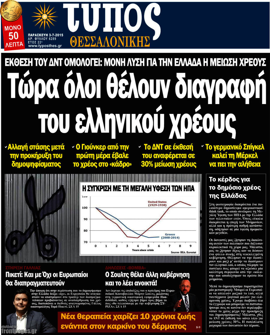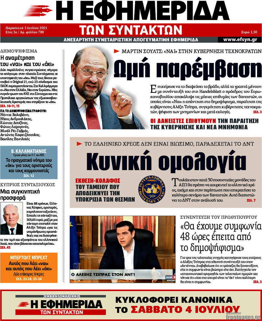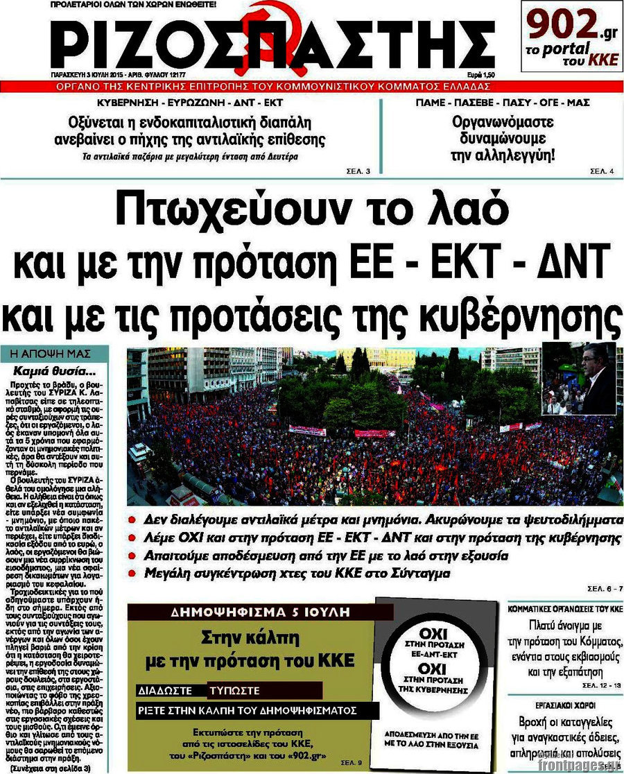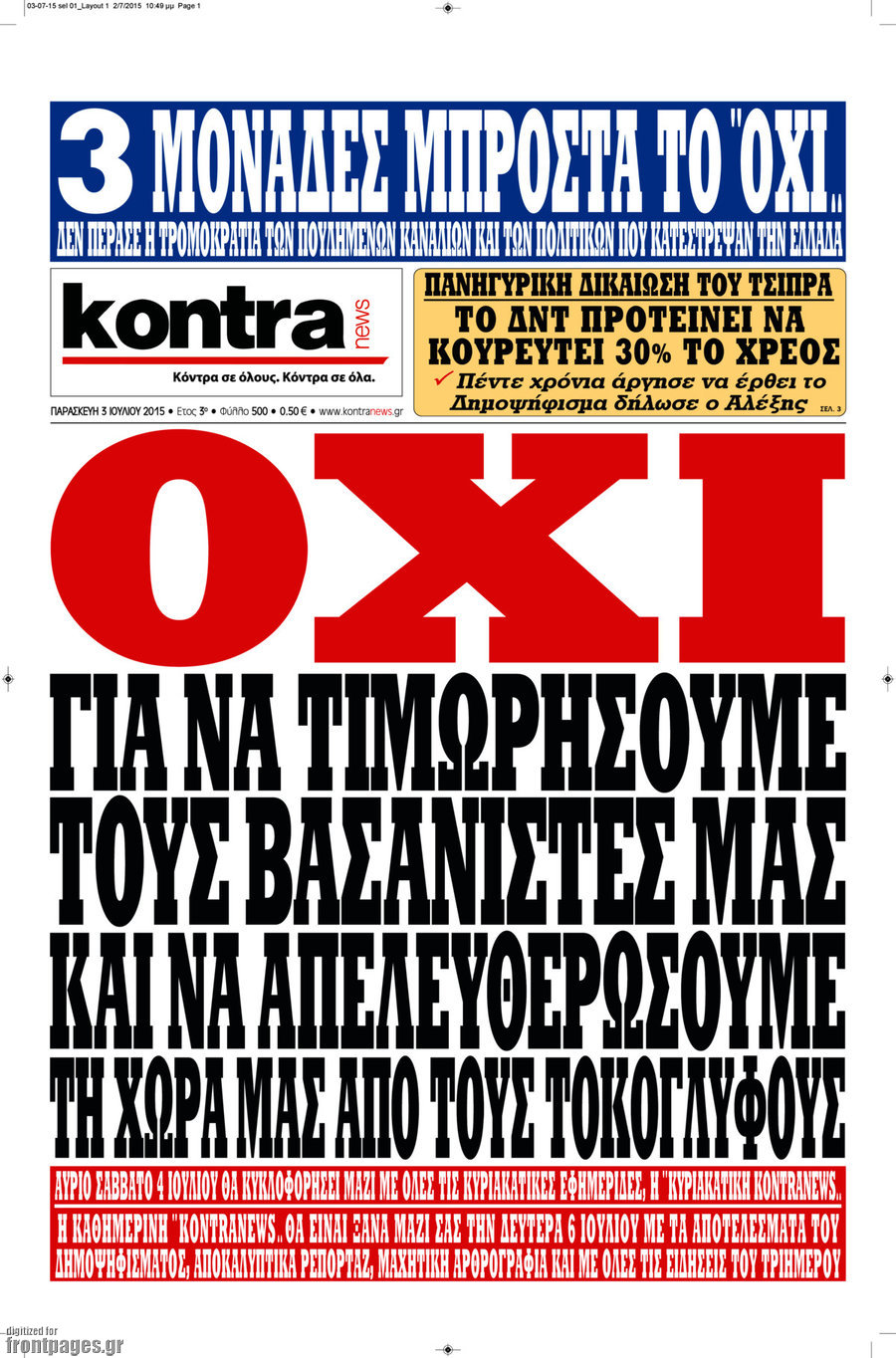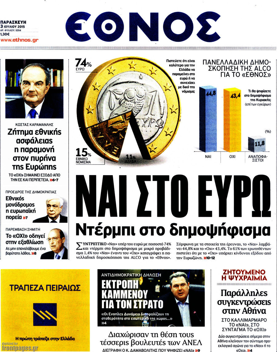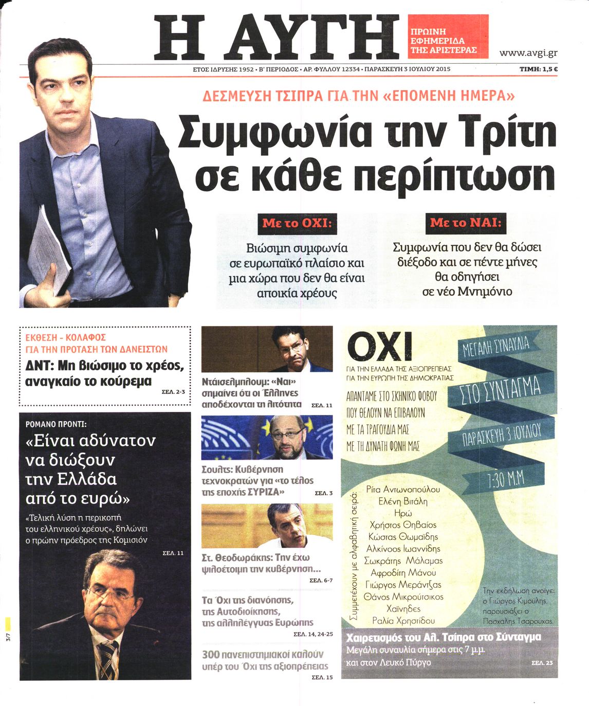 Οι πολιτικές εφημερίδες 3/7/2015 Enikos Newsroom 07:58, Παρασκευή 03 Ιουλίου 2015 Media Διαβάστε τα σημερινά πρωτοσέλιδα των σημερινών πολιτικών εφημερίδων: ΠΟΛΙΤΙΚΕΣ ΕΦΗΜΕΡΙΔΕΣ ΠΡΩΤΟΣΕΛΙΔΑ Μοιράσου το: σχολίασε κι εσύ (0 σχόλια) Ακολουθήστε το enikos.gr στο Google News και μάθετε πρώτοι όλες τις ειδήσεις Δείτε όλες τις τελευταίες ειδήσεις από την Ελλάδα και τον Κόσμο στο enikos.gr Ειδήσεις Ροή Ειδήσεων 4 ώρες πριν Από το Ορμένιο ως τα Μάλγαρα κι από τη Σιάτιστα μέχρι τη Νίκαια: Μπλόκα σε όλη την Ελλάδα – Το Σάββατο ανοίγουν τα διόδια οι αγρότες 1 ώρα πριν Εμπλοκή και αερομαχίες με οπλισμένα τουρκικά F-16 στο Αιγαίο 3 ώρες πριν Αττική: Θρίλερ με νεκρό βρέφος 5 μηνών – Κοιμόταν στο ίδιο κρεβάτι με τους γονείς του 1 ώρα πριν Πούτιν: «Ναι, είμαι ερωτευμένος» – Βίντεο από τη σπάνια προσωπική παραδοχή του 3 ώρες πριν Μεσόγειος: Η διαδρομή του ρωσικού τάνκερ «Qendil» και η στοχευμένη επίθεση της Ουκρανίας με drone – Ο Πούτιν προειδοποίησε για αντίποινα 5 ώρες πριν Τα 5 ζώδια που ευνοούνται στην ερωτική ζωή τους την επόμενη εβδομάδα – «Η ενέργεια του Αιγόκερου φέρνει αγάπη και σταθερότητα» 6 ώρες πριν Αυτό το έξυπνο μαθηματικό κόλπο θα μπορούσε να αλλάξει τον τρόπο με τον οποίο οι επιστήμονες μελετούν τους σεισμούς 2 ώρες πριν Μήπως έχετε χάσει τον εαυτό σας στη σχέση σας; 7 «αθόρυβες» υποχωρήσεις που μάλλον κάνατε, χωρίς να το συνειδητοποιήσετε 4 ώρες πριν Κουίζ για την παλιά Αθήνα: Αναγνωρίζετε την περιοχή; Έχετε περάσει 100% από εκεί 8 λεπτά πριν Μπαράκ Ομπάμα: Τα βιβλία, οι ταινίες και τα τραγούδια που ξεχώρισε το 2025 – Πλήρης λίστα 13 λεπτά πριν Don’t Forget The Lyrics: Η Έλλη Κοκκίνου υποδέχεται 4 παίκτες που θα κάνουν τα πάντα για να μη χάσουν ούτε… μισή λέξη από τους στίχους 19 λεπτά πριν Πλεύρης στον ΑΝΤ1: Η βασική πολιτική που ψηφίστηκε από τους υπουργούς Μετανάστευσης είναι η δημιουργία κέντρων κράτησης μεταναστών στην Αφρική – ΒΙΝΤΕΟ 24 λεπτά πριν Η εξομολόγηση της Νίκης Σερέτη: «Δεν κρύβω ότι ήταν πάρα πολύ δύσκολο όλο αυτό που βίωσα» 29 λεπτά πριν Αγρότες: Κλειστό ξανά το ρεύμα εισόδου στα Μάλγαρα – Άνοιξαν τον κόμβο της Χαλκηδόνας ENIKOS NETWORK Έχετε πραγματικά μεγάλη καρδιά; 10 χαρακτηριστικά όσων έχουν καλοσύνη «Η σούπερ» γρίπη εξαπλώνεται στην Ευρώπη-Στοιχεία από το ECDC για την αποτελεσματικότητα του εμβολίου Επίδομα παιδιού: Πότε ανοίγει ξανά η πλατφόρμα για τις αιτήσεις Προκήρυξη ΑΣΕΠ για 397 μόνιμες προσλήψεις στο Δημόσιο: Βγήκαν τα προσωρινά αποτελέσματα – Πότε αρχίζει η υποβολή ενστάσεων Χαρτογραφώντας το «σημείο χωρίς επιστροφή»: Για πρώτη φορά αποκαλύπτεται με λεπτομέρεια το ακανθώδες όριο της ατμόσφαιρας τ... Η Google καταργεί τη λειτουργία «dark web report» – Πώς θα μπορούν οι χρήστες να διαγράφουν τα δεδομένα τους περισσότερα 20:37 , Παρασκευή 19 Δεκεμβρίου 2025 Don’t Forget The Lyrics: Η Έλλη Κοκκίνου υποδέχεται 4 παίκτες που θα κάνουν τα πάντα για να μη χάσουν ούτε… μισή λέξη από τους στίχους Το «Don’t Forget The Lyrics» επιστρέφει απόψε, Παρασκευή 19 Δεκεμβρίου, στις 21:00 με νέο επει... 19:31 , Παρασκευή 19 Δεκεμβρίου 2025 GNTM: Απόψε ο μεγάλος τελικός για τους 4 φιναλίστ Έπειτα από μήνες γεμάτους μόδα, δημιουργία και έντονες αναμετρήσεις, το GNTM 2025 κορυφώνεται,... 18:11 , Παρασκευή 19 Δεκεμβρίου 2025 Το σόι σου: Ο Άρης έρχεται στην Ελλάδα για τις γιορτές των Χριστουγέννων – Τι θα δούμε στο αποψινό εορταστικό επεισόδιο Ένα απολαυστικό, εορταστικό επεισόδιο της σειράς “Το σόι σου”, γεμάτο ευτράπελα αλ... 15:15 , Παρασκευή 19 Δεκεμβρίου 2025 