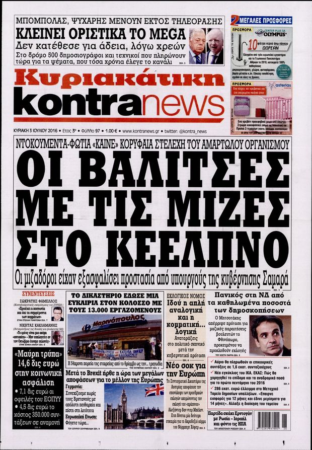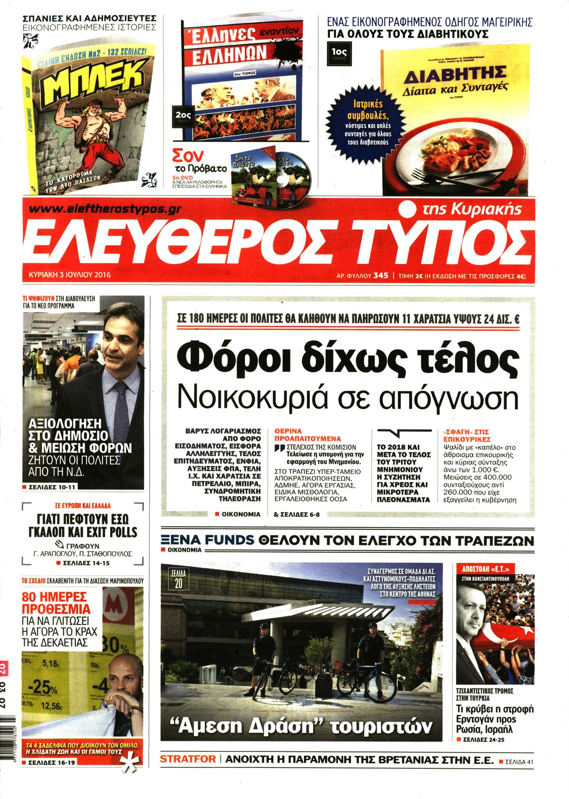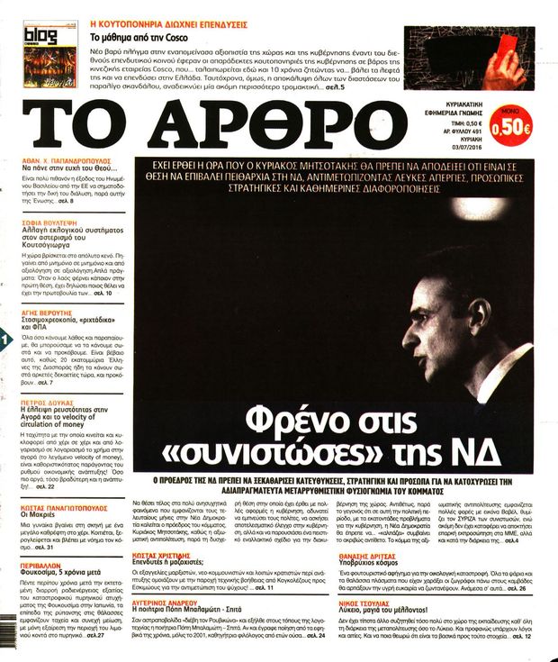 Oι πολιτικές εφημερίδες 3/7/2016 Enikos Newsroom 03:59, Κυριακή 03 Ιουλίου 2016 Media Διαβάστε τα σημερινά πρωτοσέλιδα των πολιτικών εφημερίδων: ΠΟΛΙΤΙΚΕΣ ΕΦΗΜΕΡΙΔΕΣ ΠΡΩΤΟΣΕΛΙΔΑ Μοιράσου το: σχολίασε κι εσύ (0 σχόλια) Ακολουθήστε το enikos.gr στο Google News και μάθετε πρώτοι όλες τις ειδήσεις Δείτε όλες τις τελευταίες ειδήσεις από την Ελλάδα και τον Κόσμο στο enikos.gr Ειδήσεις Ροή Ειδήσεων 1 ώρα πριν Δημοσκόπηση Metron Analysis: Στις 10 μονάδες η διαφορά ΝΔ-ΠΑΣΟΚ, στην 3η θέση η Πλεύση Ελευθερίας – 8 στους 10 στηρίζουν τον αγώνα των αγροτών 6 ώρες πριν Αγρότες: «Όχι στον διάλογο, μας εμπαίζει η κυβέρνηση» – Αποφάσισαν κλιμάκωση των κινητοποιήσεων, τι θα γίνει τα Χριστούγεννα 1 ώρα πριν Νίκος Παππάς στον ΑΝΤ1: «Δεν κρύβομαι – Μετά το συμβάν ακολούθησα κανονικά το πρόγραμμά μου» – ΒΙΝΤΕΟ 3 ώρες πριν Αθήνα: Εξαρθρώθηκε εγκληματική οργάνωση που διακινούσε ναρκωτικά σε μορφή σοκολάτας – Δύο τράπερ ανάμεσα στους 4 συλληφθέντες – ΒΙΝΤΕΟ 1 ώρα πριν Διαμαντής Καραναστάσης: Οδηγούσε υπό την επήρεια αλκοόλ – Του αφαιρέθηκε το δίπλωμα και του επιβλήθηκε πρόστιμο 350 ευρώ 2 ώρες πριν Manifesting: Πώς να συναντήσετε τον σύντροφο της ζωής σας, ανάλογα με τον μήνα γέννησής σας 4 ώρες πριν Γάμος: 11 ψυχρές αλλά ευγενικές φράσεις, που λέει ένας άνδρας όταν σκέφτεται τον χωρισμό 3 ώρες πριν Σφουγγάρισμα: Η συνήθεια που θα σας βοηθήσει να διατηρήσετε το σπίτι σας καθαρό και τακτοποιημένο 2 ημέρες πριν 20 χρόνια τα Χριστούγεννα ξεκινούν στα Public με μεγάλη ποικιλία σε δώρα! 2 λεπτά πριν Αυξάνουν την πίεση προς την κυβέρνηση οι αγρότες: Κλείνουν παρακαμπτήριους και ανοίγουν διόδια – Τι θα γίνει τις γιορτές 7 λεπτά πριν Ελισάβετ Κωνσταντινίδου για τον Γεράσιμο Μιχελή και την Πόπη Χριστοδούλου: «Ξέρω ότι έχουν πάει απλώς κάπου αλλού, ότι δεν είναι ο θάνατος έτσι όπως τον έχουμε στο μυαλό μας» 12 λεπτά πριν Κρήτη: Νέες αποκαλύψεις για τον 54χρονο που κατηγορείται ότι εξαπάτησε τους γονείς του 33χρονου – Ζητούσε τρίχες αγνοουμένων 19 λεπτά πριν Τσιάρας: Δεν θα κινδυνέψουν οι πληρωμές των αγροτών – Χρειαζόμαστε μια νέα πολιτική, ένα restart 25 λεπτά πριν Δέσποινα Βανδή: Το βίντεο που δημοσίευσε με τον Γιώργο Νικολαΐδη – «Έχουμε καταστραφεί από τα μελομακάρονά σου» ENIKOS NETWORK Σε περίοδο αυξημένης δραστηριότητας η γρίπη στην Ελλάδα-Μέτρα προστασίας από τον ΕΟΔΥ Σκέφτεστε συνέχεια συζητήσεις που έχετε κάνει; Τι σημαίνει αυτό, σύμφωνα με ειδικό ΑΣΕΠ 2ΓΒ/2025: Σήμερα αρχίζει η υποβολή ενστάσεων – Πότε θα βγουν τα οριστικά αποτελέσματα ΕΛΤΑ: Αυτό είναι το νέο σχέδιο μετασχηματισμού του Οργανισμού- Τι δήλωσαν Πιερρακάκης και Παπαστεργίου Χαρτογραφώντας το «σημείο χωρίς επιστροφή»: Για πρώτη φορά αποκαλύπτεται με λεπτομέρεια το ακανθώδες όριο της ατμόσφαιρας τ... Η Google καταργεί τη λειτουργία «dark web report» – Πώς θα μπορούν οι χρήστες να διαγράφουν τα δεδομένα τους περισσότερα 17:45 , Πέμπτη 18 Δεκεμβρίου 2025 ROUK ZOUK: Εορταστικό επεισόδιο με καλεσμένους τους πρωταγωνιστές του «Γιατί ρε πατέρα» Το Σάββατο 20 Δεκεμβρίου στις 21:00, η Ζέτα Μακρυπούλια υποδέχεται εκλεκτούς ηθοποιούς που όλο... 17:20 , Πέμπτη 18 Δεκεμβρίου 2025 Άγιος έρωτας: Η Χριστίνα εξομολογείται στον πατέρα Νικόλαο, απόψε στις 21:00 στον Alpha Η Νότα αποφασίζει να εκδικηθεί τον Πέτρο και τον Στέφανο, για χάρη του Λούη, όμως τα πράγματα ... 16:50 , Πέμπτη 18 Δεκεμβρίου 2025 Να μ’ αγαπάς: Ζωή και Φωτεινή συμφιλιώνονται ως μάνα με κόρη, απόψε στις 20:00 Η ταυτότητα του Άγγελου αποκαλύπτεται στο νέο επεισ