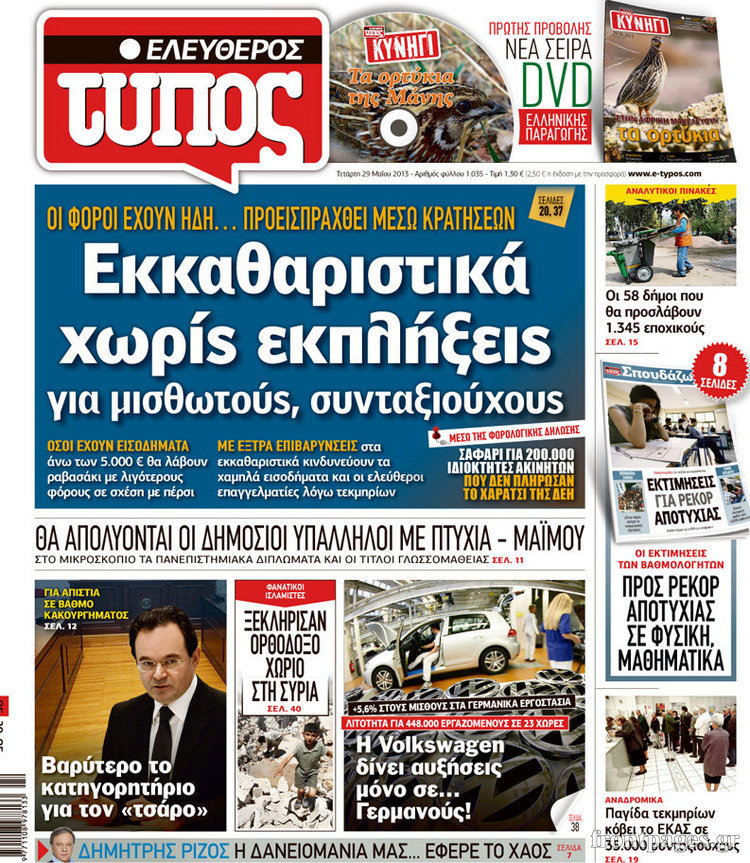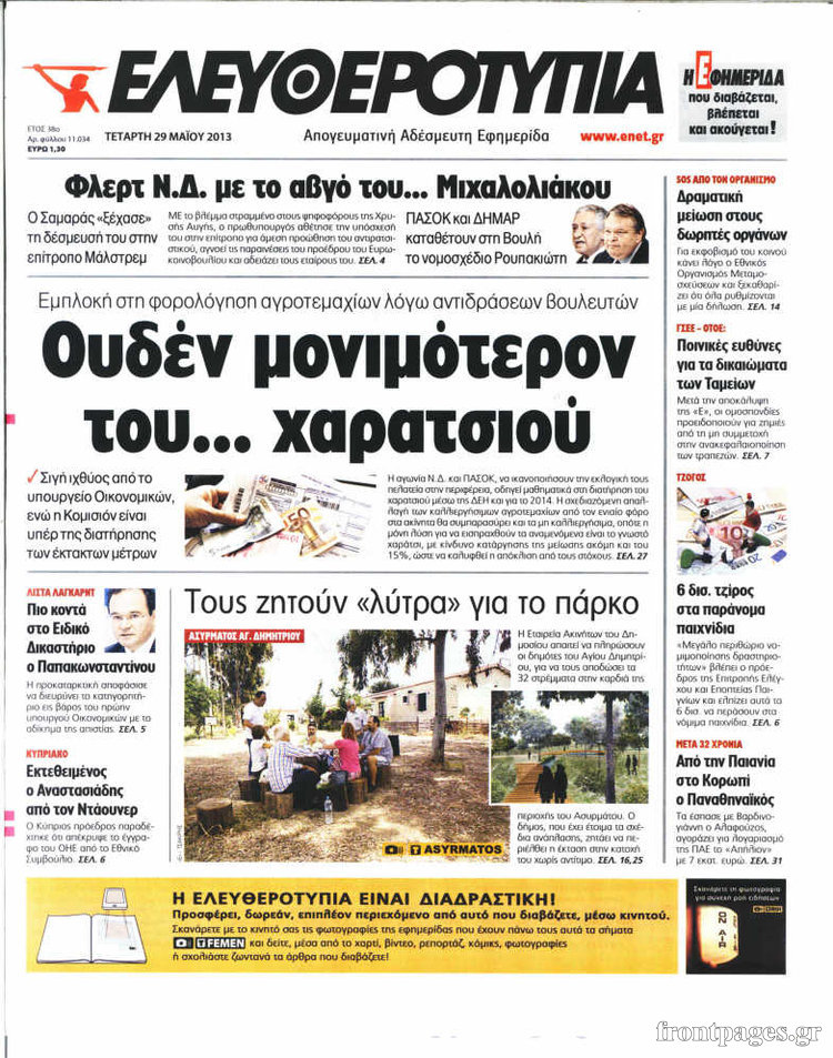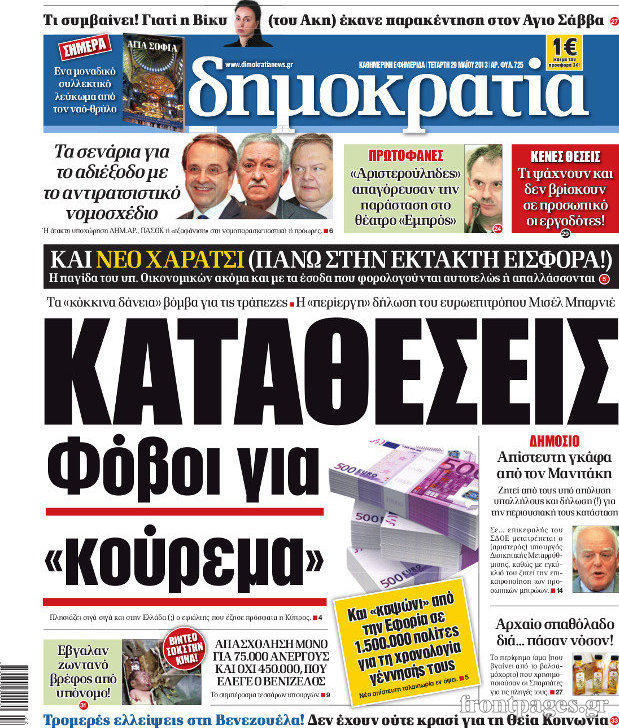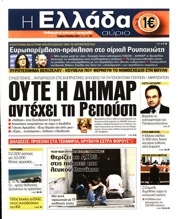 Οι πολιτικές εφημερίδες Enikos Newsroom 08:04, Τετάρτη 29 Μαΐου 2013 Media Οι πολιτικές εφημερίδες Διαβάστε τα πρωτοσέλιδα των πολιτικών εφημερίδων: ΕΦΗΜΕΡΙΔΕΣ ΠΟΛΙΤΙΚΕΣ ΕΦΗΜΕΡΙΔΕΣ ΠΡΩΤΟΣΕΛΙΔΑ Μοιράσου το: σχολίασε κι εσύ (0 σχόλια) Ακολουθήστε το enikos.gr στο Google News και μάθετε πρώτοι όλες τις ειδήσεις Δείτε όλες τις τελευταίες ειδήσεις από την Ελλάδα και τον Κόσμο στο enikos.gr Ειδήσεις Ροή Ειδήσεων 9 ώρες πριν Κύκλωμα διακίνησης ναρκωτικών σε σχολεία: Βίντεο ντοκουμέντο από τα βασανιστήρια στους ανήλικους – Συζητούσαν για το πώς θα κάνουν «ξέπλυμα χρήματος» 35 λεπτά πριν Επίδομα θέρμανσης: Μέχρι αύριο η προκαταβολή σε περισσότερα από 1 εκατ. νοικοκυριά – Τα ποσά που θα λάβουν οι δικαιούχοι 27 λεπτά πριν Δήμος Αθηναίων: Ξεκινά σήμερα η επιστροφή πινακίδων κυκλοφορίας από τη Δημοτική Αστυνομία 8 ώρες πριν Κλιμακώνουν τις κινητοποιήσεις τους οι αγρότες: Κλείνουν τη Δευτέρα τις σήραγγες των Τεμπών για τα φορτηγά – Ανοίγουν την Τρίτη τους δρόμους για τους εκδρομείς 8 ώρες πριν ΗΠΑ: Αυξάνουν την πίεση στην Βενεζουέλα – Το νέο ρεσάλτο σε τάνκερ και ο στόχος του Τραμπ 59 λεπτά πριν Οπτική ψευδαίσθηση: Μόνο οι πιο έξυπνοι άνθρωποι θα βρουν τον Άγιο Βασίλη σε 8 δευτερόλεπτα 1 ώρα πριν Άνοια και εγκεφαλικό: Γιατρός προειδοποιεί για ένα δημοφιλές ρόφημα που αυξάνει τον κίνδυνο κατά 290% και 300% αντίστοιχα 2 ώρες πριν Τα ζώδια σήμερα, Δευτέρα 22 Δεκεμβρίου: Ζυγοί, αφήστε την καρδιά σας ελεύθερη 2 ημέρες πριν Enerwave: Το νέο «ρεύμα» στη λιανική ενέργειας που αλλάζει την εμπειρία του καταναλωτή 6 λεπτά πριν Εορτολόγιο: Ποιοι γιορτάζουν σήμερα 22 Δεκεμβρίου 11 λεπτά πριν Αυτή την Κυριακή με τη Realnews: Το μυστήριο των Χριστουγέννων της Vicki Delany – Μαζί αστυνομικά μυθιστορήματα 18 λεπτά πριν Ντόναλντ Τραμπ: Διορίζει τον Τζεφ Λάντρι ειδικό απεσταλμένο στη Γροιλανδία 27 λεπτά πριν Δήμος Αθηναίων: Ξεκινά σήμερα η επιστροφή πινακίδων κυκλοφορίας από τη Δημοτική Αστυνομία 35 λεπτά πριν Επίδομα θέρμανσης: Μέχρι αύριο η προκαταβολή σε περισσότερα από 1 εκατ. νοικοκυριά – Τα ποσά που θα λάβουν οι δικαιούχοι ENIKOS NETWORK Την Κυριακή με τη Realnews: Δωροεπιταγή 10€ Μόνο όσοι έχουν την κοφτερή όραση του Άι Βασίλη θα μπορέσουν να εντοπίσουν τον λύκο σε αυτό το τεστ παρατηρητικότητας Νέο έτος ρεκόρ για τον ελληνικό τουρισμό το 2025: «Είμαστε μέσα στους 10 πλέον επισκέψιμους προορισμούς παγκοσμίως» λέει η ... Τιμές καυσίμων: Πόσο θα πληρώσουν οι εκδρομείς των Χριστουγέννων – Το κόστος μετακινήσεων σε δημοφιλείς προορισμούς Χαρτογραφώντας το «σημείο χωρίς επιστροφή»: Για πρώτη φορά αποκαλύπτεται με λεπτομέρεια το ακανθώδες όριο της ατμόσφαιρας τ... Η Google καταργεί τη λειτουργία «dark web report» – Πώς θα μπορούν οι χρήστες να διαγράφουν τα δεδομένα τους περισσότερα 07:02 , Δευτέρα 22 Δεκεμβρίου 2025 Αυτή την Κυριακή με τη Realnews: Το μυστήριο των Χριστουγέννων της Vicki Delany – Μαζί αστυνομικά μυθιστορήματα Αυτή την Κυριακή με τη Realnews: Το μυστήριο των Χριστουγέννων της Vicki Delany – Μαζί α... 05:48 , Δευτέρα 22 Δεκεμβρίου 2025 Οι οικονομικές εφημερίδες 22/12/2025 Διαβάστε τα πρωτοσέλιδα από τις οικονομικές εφημερίδες, σήμερα 22/12/2025 05:43 , Δευτέρα 22 Δεκεμβρίου 2025 Οι αθλητικές εφημερίδες 22/12/2025 Διαβάστε τα πρωτοσέλιδα από τις αθλητικές εφημερίδες, σήμερα 22/12/2025. 05:38 , Δευτέρα 22 Δεκεμβρίου 2025 Οι πολιτικές εφημερίδες 22/12/2025 Διαβάστε τα πρωτοσέλιδα από τις πολιτικές εφημερίδες, σήμερα 22/12/2025. ΤΕΛΕΥΤΑΙΕΣ ΕΙΔΗΣΕΙΣ 6 λεπτά πριν Εορτολόγιο: Ποιοι γιορτάζουν σήμε
