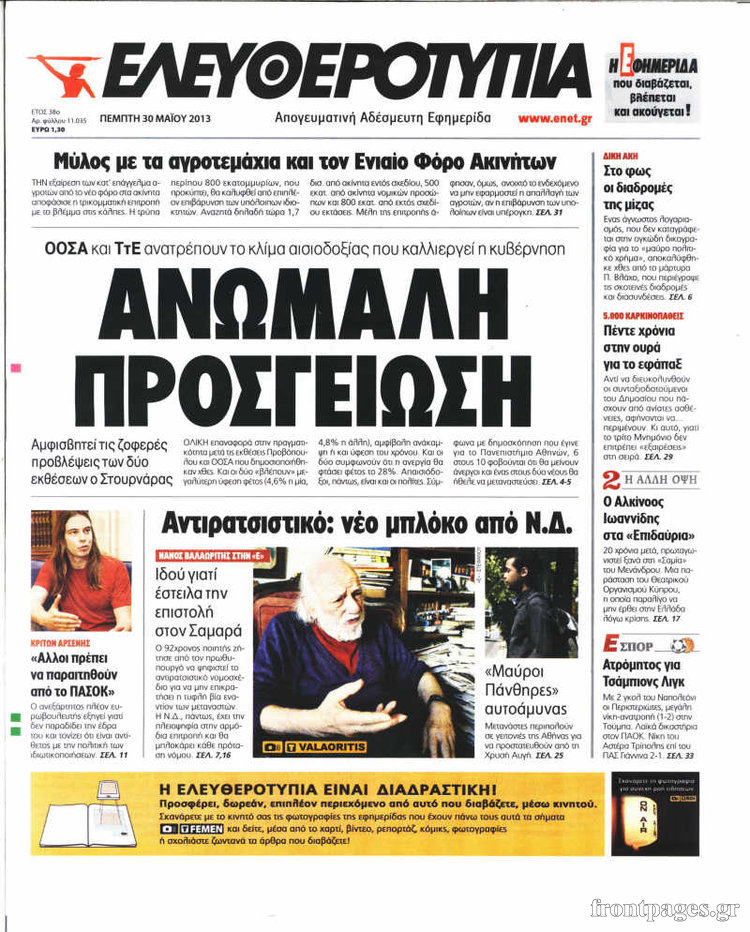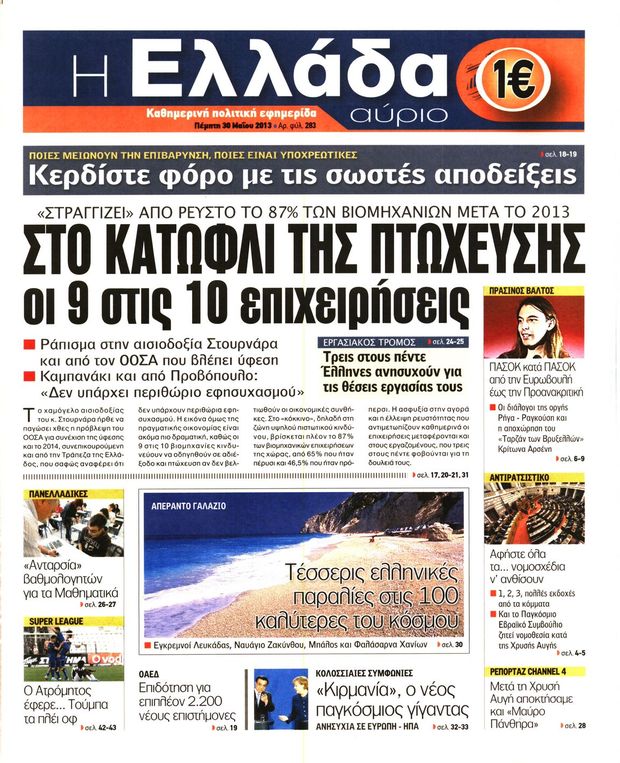 Οι πολιτικές εφημερίδες Enikos Newsroom 08:10, Πέμπτη 30 Μαΐου 2013 Media Οι πολιτικές εφημερίδες Διαβάστε τα πρωτοσέλιδα των πολιτικών εφημερίδων: ΕΦΗΜΕΡΙΔΕΣ ΠΟΛΙΤΙΚΕΣ ΕΦΗΜΕΡΙΔΕΣ ΠΡΩΤΟΣΕΛΙΔΑ Μοιράσου το: σχολίασε κι εσύ (0 σχόλια) Ακολουθήστε το enikos.gr στο Google News και μάθετε πρώτοι όλες τις ειδήσεις Δείτε όλες τις τελευταίες ειδήσεις από την Ελλάδα και τον Κόσμο στο enikos.gr Ειδήσεις Ροή Ειδήσεων 7 ώρες πριν Εκτός ευρωομάδας ΣΥΡΙΖΑ ο Νίκος Παππάς μετά την επίθεση στον δημοσιογράφο Νίκο Γιαννόπουλο – Η μήνυση και οι νέες δηλώσεις 7 ώρες πριν «Αγριεύουν» οι αγρότες: «Δεν συντρέχει λόγος συνάντησης με τον πρωθυπουργό» – Ώρα αποφάσεων στη σύσκεψη της Πέμπτης 7 ώρες πριν Κυψέλη: Χωρίς την οικογένειά της δίπλα της απολογήθηκε η 16χρονη – «Της είχε επιτεθεί κάποιος για να την βιάσει, φοβήθηκε και κυκλοφορούσε με μαχαίρι» 7 ώρες πριν Politico: Το πρόβλημα της Ευρώπης δεν είναι το Βέλγιο αλλά ο Ντόναλντ Τραμπ 8 ώρες πριν Αλεξανδρούπολη: Πολυοργανική ανεπάρκεια λόγω υποσιτισμού η αιτία θανάτου του 3χρονου αγοριού 7 ώρες πριν Μυστήριο με τεράστιες κυκλικές πέτρες 200 κιλών – Ανακαλύφθηκαν τυχαία κατά τη διάρκεια οδικών έργων και κανείς δεν ξέρει από πού προέρχονται 8 ώρες πριν Ύπνος: Ειδικός εξηγεί τον πραγματικό λόγο που ξυπνάτε στις 4 τα ξημερώματα – Ο ρόλος των ορμονών και του κιρκάδιου ρυθμού 9 ώρες πριν Αριθμολογία: Οι άνθρωποι που έχουν γεννηθεί αυτές τις 4 ημερομηνίες, είναι τρυφεροί και αγαπούν ανιδιοτελώς 21 ώρες πριν 20 χρόνια τα Χριστούγεννα ξεκινούν στα Public με μεγάλη ποικιλία σε δώρα! 47 δευτερόλεπτα πριν Καούρα: Το μπαχαρικό που είναι «εξίσου αποτελεσματικό» με την ομεπραζόλη, σύμφωνα με ειδικούς 8 λεπτά πριν Σαν σήμερα 18 Δεκεμβρίου: Τα σημαντικότερα γεγονότα της ημέρας 13 λεπτά πριν Οι οικονομικές εφημερίδες 18/12/2025 18 λεπτά πριν Οι αθλητικές εφημερίδες 18/12/2025 23 λεπτά πριν Οι πολιτικές εφημερίδες 18/12/2025 ENIKOS NETWORK Αϋπνία: Το κόλπο που θα σας βοηθήσει να κοιμηθείτε απόψε – Είναι απλό και έχει αποτέλεσμα 2,6 εκατομμύρια πολίτες έχουν ήδη εμβολιαστεί κατά της γρίπης ΕΛΣΤΑΤ: Τι δείχνουν τα νέα στοιχεία για τις ηλεκτρονικές παραγγελίες των επιχειρήσεων ΚΕΠΕ: Οι 3 διακριτές συμβολές των ΜμΕ και της μεταποίησης στην ελληνική οικονομία Χαρτογραφώντας το «σημείο χωρίς επιστροφή»: Για πρώτη φορά αποκαλύπτεται με λεπτομέρεια το ακανθώδες όριο της ατμόσφαιρας τ... Η Google καταργεί τη λειτουργία «dark web report» – Πώς θα μπορούν οι χρήστες να διαγράφουν τα δεδομένα τους περισσότερα 05:48 , Πέμπτη 18 Δεκεμβρίου 2025 Οι οικονομικές εφημερίδες 18/12/2025 Διαβάστε τα πρωτοσέλιδα από τις οικονομικές εφημερίδες, σήμερα 18/12/2025. 05:43 , Πέμπτη 18 Δεκεμβρίου 2025 Οι αθλητικές εφημερίδες 18/12/2025 Διαβάστε τα πρωτοσέλιδα από τις αθλητικές εφημερίδες, σήμερα 18/12/2025. 05:38 , Πέμπτη 18 Δεκεμβρίου 2025 Οι πολιτικές εφημερίδες 18/12/2025 Διαβάστε τα πρωτοσέλιδα από τις πολιτικές εφημερίδες, σήμερα 18/12/2025. 05:22 , Πέμπτη 18 Δεκεμβρίου 2025 Το Ποντίκι σήμερα Πέμπτη 18/12/2025 Διαβάστε το πρωτοσέλιδο της εφημερίδας «Το Ποντίκι» σήμερα 18/12/2025. ΤΕΛΕΥΤΑΙΕΣ ΕΙΔΗΣΕΙΣ 8 λεπτά πριν Σαν σήμερα 18 Δεκεμβρίου: Τα σημαντικότερα γεγονότα... 13 λεπτά πριν Οι οικονομικές εφημερίδες 18/12/2025 18 λεπτά πριν Οι αθλητικές εφημερίδες 18/12/2025 23 λεπτά πριν Οι πολιτικές εφημερίδες 18/12/2025 31 λεπτά πριν Τα ζώδια σήμερα, Πέμπτη 18 Δεκεμβρίου: Λέοντες, η καρδιά... 39 λεπτά πριν Το Ποντίκι σήμερα Πέμπτη 18/12/2025 44 λεπτά πριν Εφημερεύοντα φαρμακεία σε Αθήνα και Θεσσαλονίκη (18/12) 46 λεπτά πρ