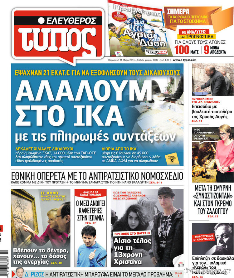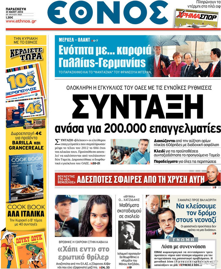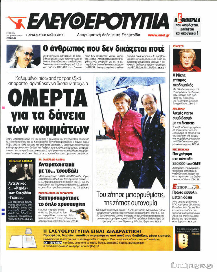 Οι πολιτικές εφημερίδες Enikos Newsroom 08:28, Παρασκευή 31 Μαΐου 2013 Media Οι πολιτικές εφημερίδες Διαβάστε τα πρωτοσέλιδα των πολιτικών εφημερίδων: ΕΦΗΜΕΡΙΔΕΣ ΠΟΛΙΤΙΚΕΣ ΕΦΗΜΕΡΙΔΕΣ ΠΡΩΤΟΣΕΛΙΔΑ Μοιράσου το: σχολίασε κι εσύ (0 σχόλια) Ακολουθήστε το enikos.gr στο Google News και μάθετε πρώτοι όλες τις ειδήσεις Δείτε όλες τις τελευταίες ειδήσεις από την Ελλάδα και τον Κόσμο στο enikos.gr Ειδήσεις Ροή Ειδήσεων 7 ώρες πριν Χριστούγεννα στα μπλόκα οι αγρότες: Άνοιξαν στα διόδια και μοίρασαν προϊόντα στους πολίτες – Νέα σύσκεψη την Κυριακή στη Νίκαια 5 ώρες πριν Ρετζέπ Ταγίπ Ερντογάν: Δεν έχουμε καμία βλέψη στα εδάφη ή την κυριαρχία κανενός – Δεν θα επιτρέψουμε να παραβιαστούν τα δικαιώματά μας 6 ώρες πριν H ακτοφυλακή των ΗΠΑ κατάσχεσε και δεύτερο τάνκερ στα ανοιχτά της Βενεζουέλας – Δείτε βίντεο 7 ώρες πριν Κύκλωμα διακίνησης ναρκωτικών σε σχολεία: Τηλεφωνούσαν στους ανηλίκους την ώρα του μαθήματος – Οι διάλογοι-σοκ, τα «ψευδώνυμα» και τα βασανιστήρια 7 ώρες πριν Αρχεία Επστάιν: Οι 500 σελίδες που λείπουν, τα αναπάντητα ερωτήματα και οι επώνυμοι – Τι έπεται 7 ώρες πριν Αποκαλύφθηκε το άγνωστο «GPS» της αρχαιότητας – Πώς οι ναοί «φώτιζαν» τον δρόμο των ναυτικών πριν από την εφεύρεση των φάρων 8 ώρες πριν Ύπνος: Η διατροφή που μπορεί να σας βοηθήσει να κοιμάστε καλύτερα και να ζήσετε περισσότερο 9 ώρες πριν Αριθμολογία: Ο αριθμός του φύλακα αγγέλου σας, με βάση τον μήνα γέννησής σας – «Έτσι σας στέλνει σημάδια το σύμπαν» 21 ώρες πριν Enerwave: Το νέο «ρεύμα» στη λιανική ενέργειας που αλλάζει την εμπειρία του καταναλωτή 6 λεπτά πριν Οι αθλητικές εφημερίδες 21/12/2025 14 λεπτά πριν Οι πολιτικές εφημερίδες 21/12/2025 22 λεπτά πριν Τα ζώδια σήμερα, Κυριακή 21 Δεκεμβρίου: Αιγόκεροι, αποφασίζετε για το επόμενο κεφάλαιο της ζωής σας 30 λεπτά πριν Εφημερεύοντα φαρμακεία σε Αθήνα και Θεσσαλονίκη (21/12) 37 λεπτά πριν Γιαννούλης Λαρεντζάκης: Πρόταση γάμου στην αρραβωνιαστικιά του, Γιώτα Γεωργοπούλου, έκανε ο παίκτης του Ολυμπιακού – Δείτε φωτογραφίες και βίντεο ENIKOS NETWORK Οι γυναίκες αποκαλύπτουν το πιο ελκυστικό πράγμα που μπορεί να κάνει ένας άνδρας Ομορφιά και αντιγήρανση: Ειδικοί μιλούν για συσκευές περιποίησης του δέρματος «Πολεμική» προετοιμασία από την ευρωπαϊκή βιομηχανία ενέργειας – Η Eurelectric ζητεί «ομπρέλα» προστασίας για τις υποδομές Ακύρωση ΑΦΜ για απάτες – Ποιους βάζει στο στόχαστρο η ΑΑΔΕ Χαρτογραφώντας το «σημείο χωρίς επιστροφή»: Για πρώτη φορά αποκαλύπτεται με λεπτομέρεια το ακανθώδες όριο της ατμόσφαιρας τ... Η Google καταργεί τη λειτουργία «dark web report» – Πώς θα μπορούν οι χρήστες να διαγράφουν τα δεδομένα τους περισσότερα 05:46 , Κυριακή 21 Δεκεμβρίου 2025 Οι αθλητικές εφημερίδες 21/12/2025 Διαβάστε τα πρωτοσέλιδα από τις αθλητικές εφημερίδες, σήμερα 21/12/2025. 05:38 , Κυριακή 21 Δεκεμβρίου 2025 Οι πολιτικές εφημερίδες 21/12/2025 Διαβάστε τα πρωτοσέλιδα από τις πολιτικές εφημερίδες, σήμερα 21/12/2025. 05:08 , Κυριακή 21 Δεκεμβρίου 2025 Σήμερα με τη Realnews: Δωροεπιταγή 10€ Δωροεπιταγή αξίας 10€ για αγορές άνω των 60€ από τα πολυκαταστήματα FactoryOutlet H προσφορά ι... 04:08 , Κυριακή 21 Δεκεμβρίου 2025 Σήμερα με τη Realnews: Ό,τι και αν αγοράσεις, σκανάρεις και κερδίζεις! Σήμερα με τη Realnews: Ό,τι και αν αγοράσεις, σκανάρεις και κερδίζεις! Με το PADU app, το κορυ... ΤΕΛΕΥΤΑΙΕΣ ΕΙΔΗΣΕΙΣ 6 λεπτά πριν Οι αθλητικές εφημερίδες 21/12/2025 14 λεπτά πριν Οι πολιτικές εφημερίδες 21/12/2025 22 λεπτά πριν Τα ζώδια σήμερα, Κυριακή 21 Δεκεμβρίου: Αιγόκεροι,... 30 λεπτά πριν Εφημ